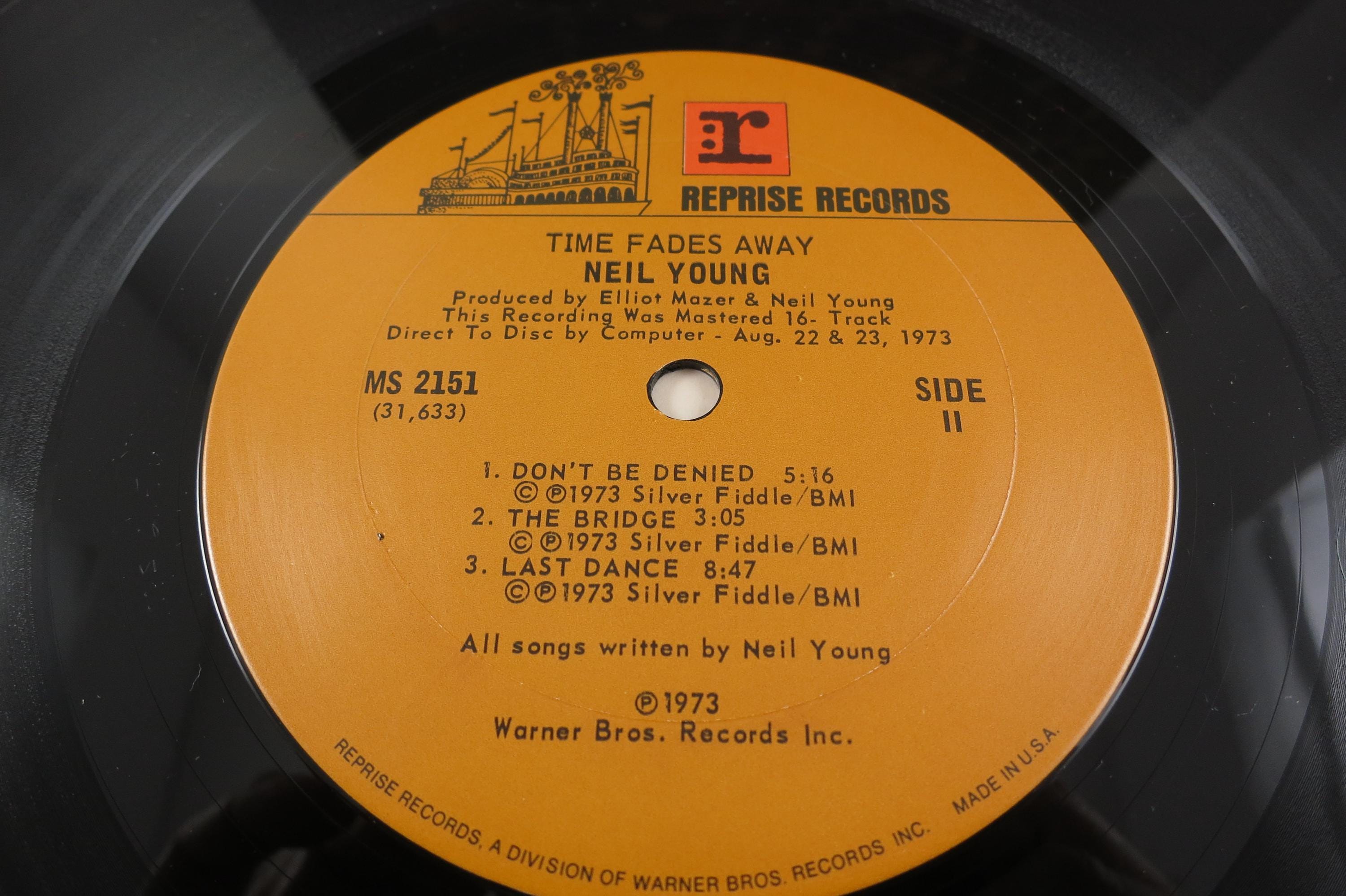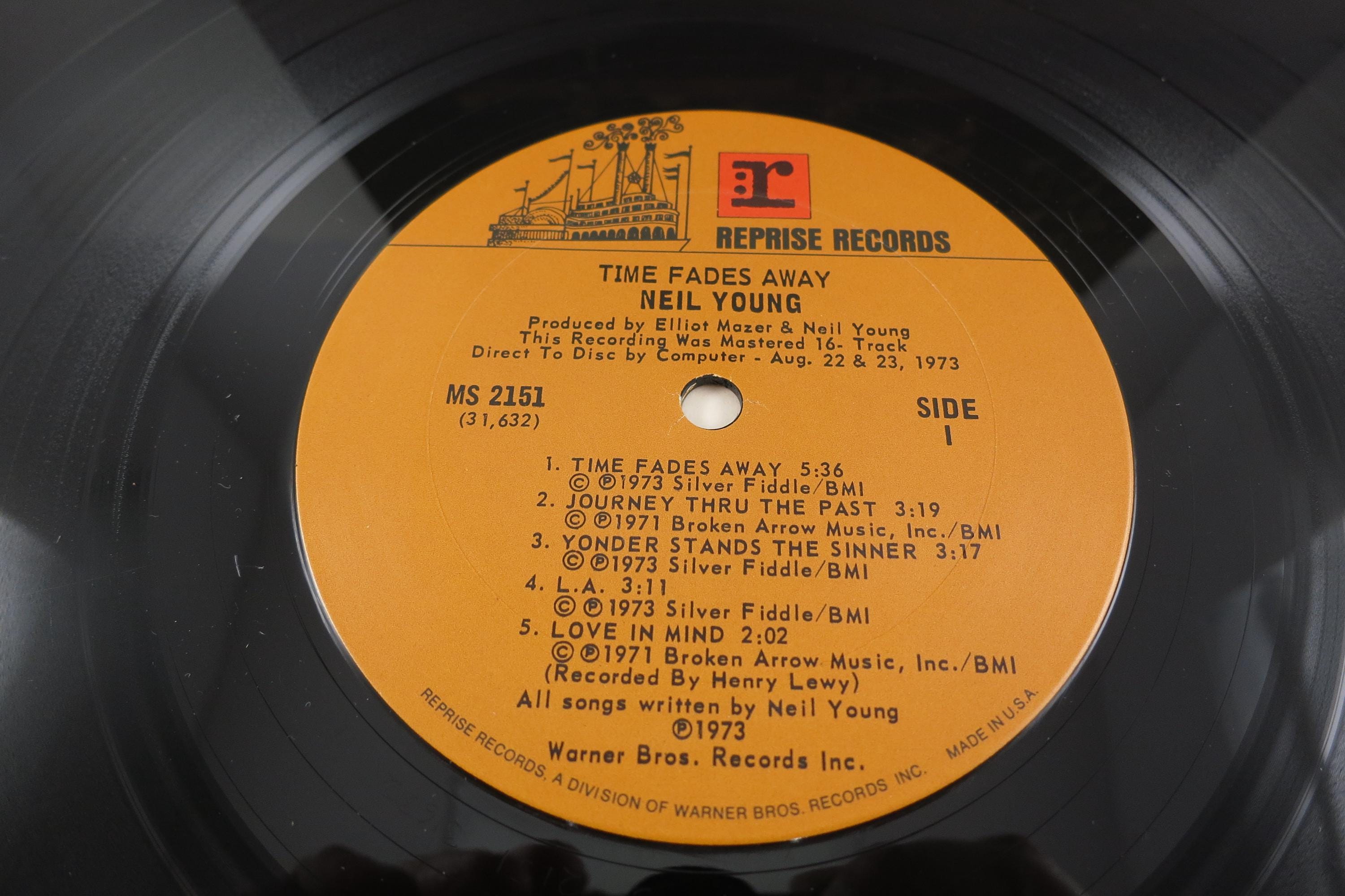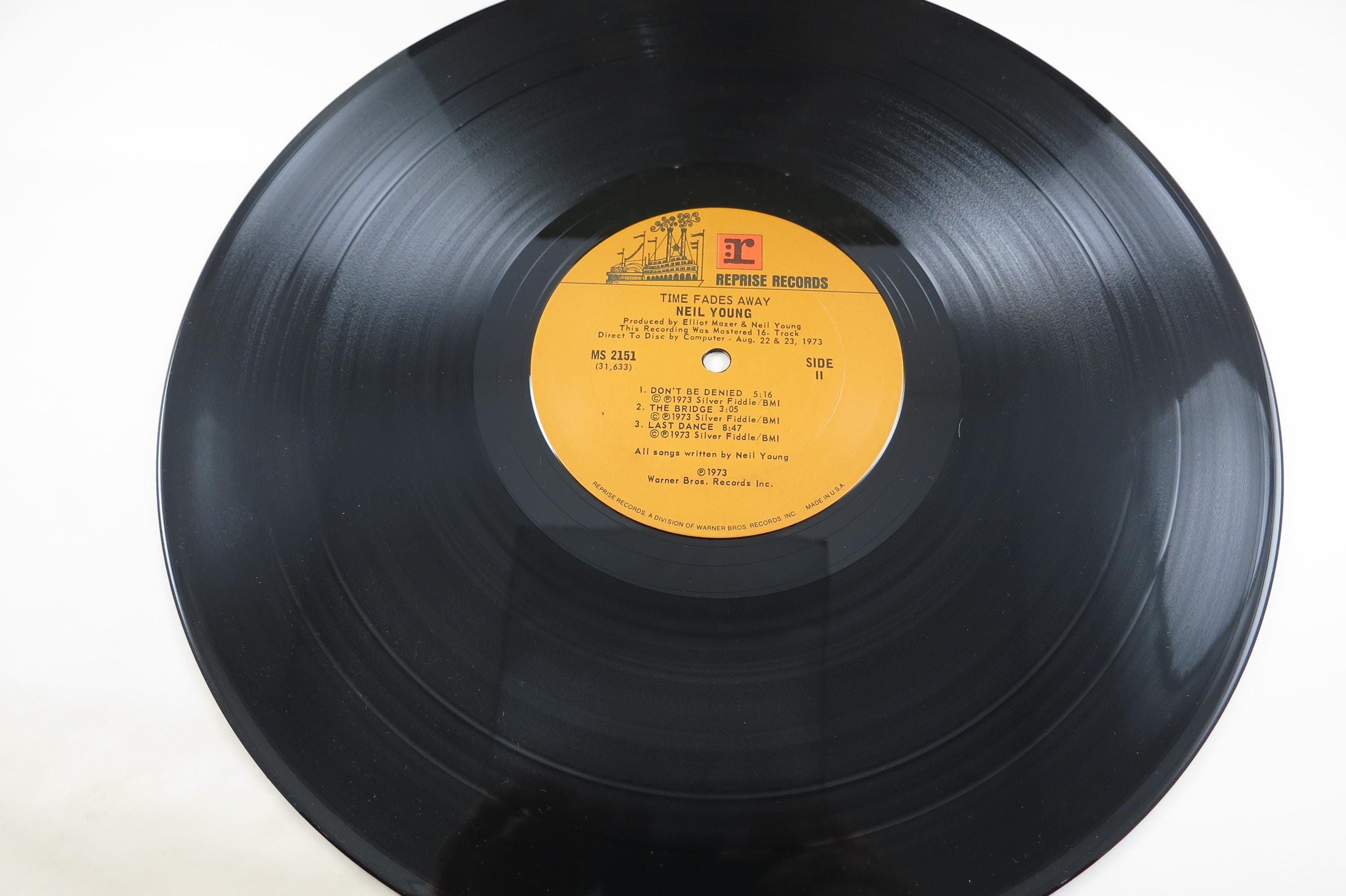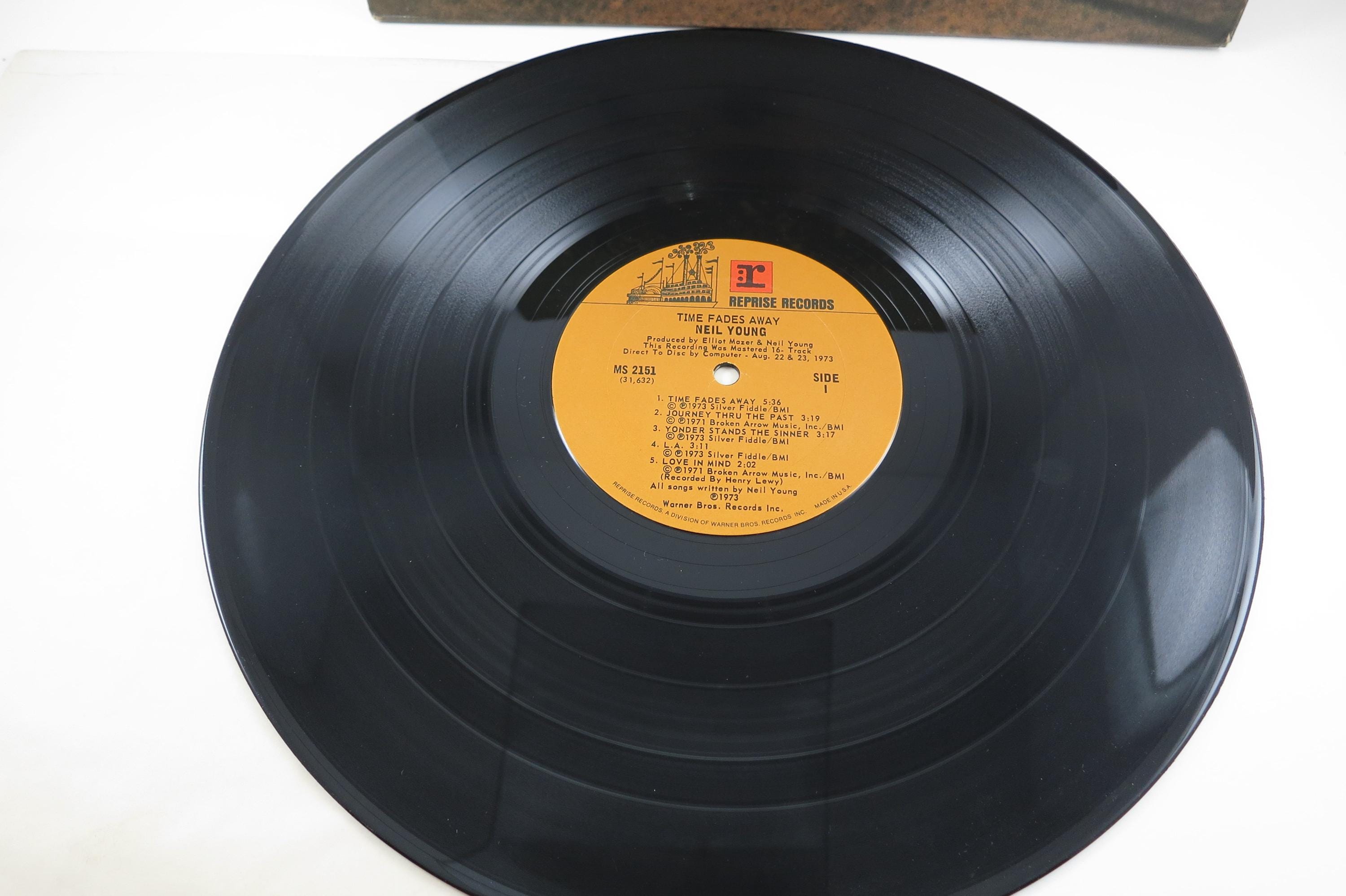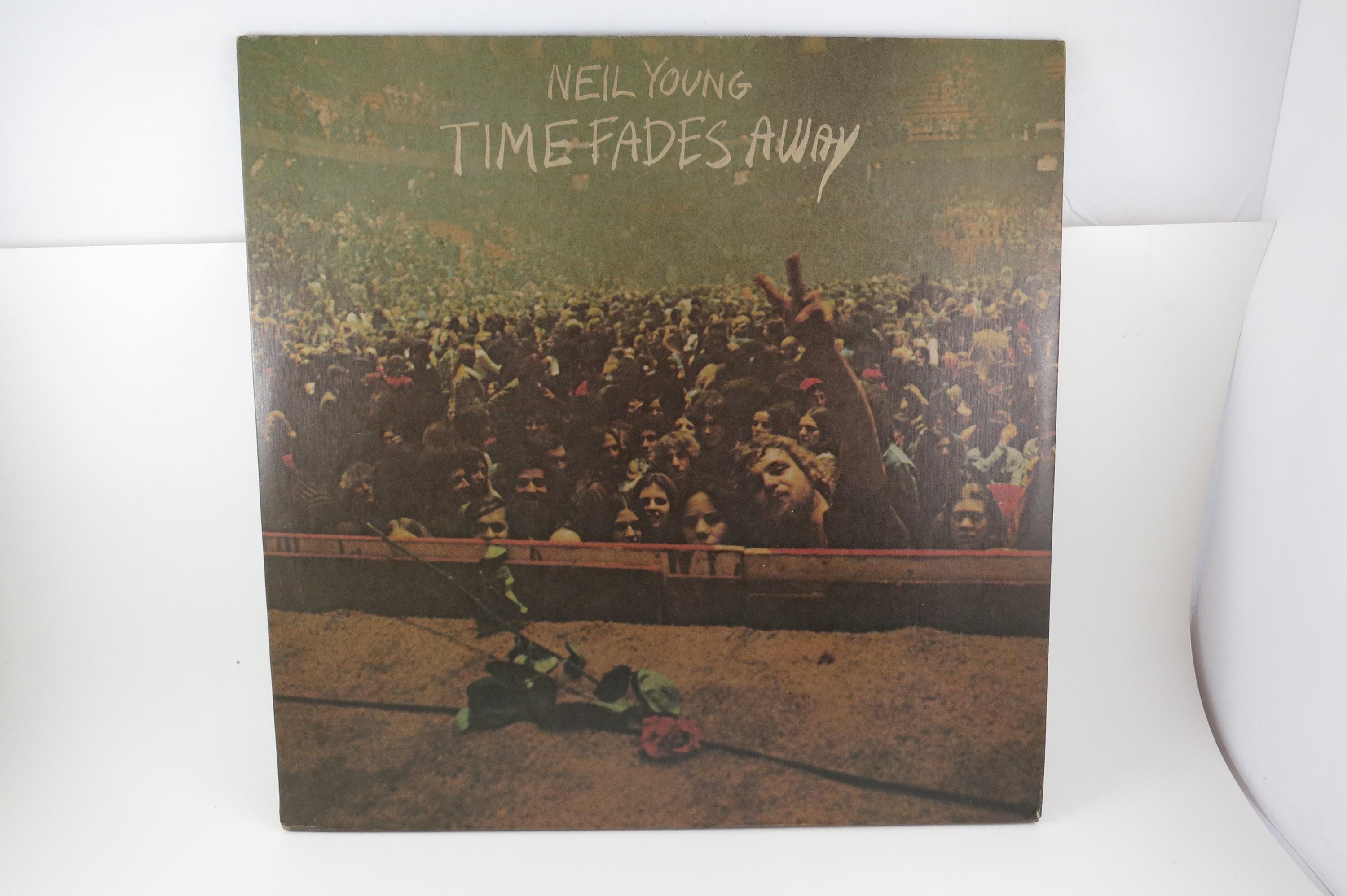 1973 Vinyl LP Record Neil Young Time Fades Away LIVE Excellent Plus Condition. Original cover is excellent plus and includes the inner paper sleeve and lyric sheet. Record is excellent plus as well. Very Nice Copy! Tracks are as follows