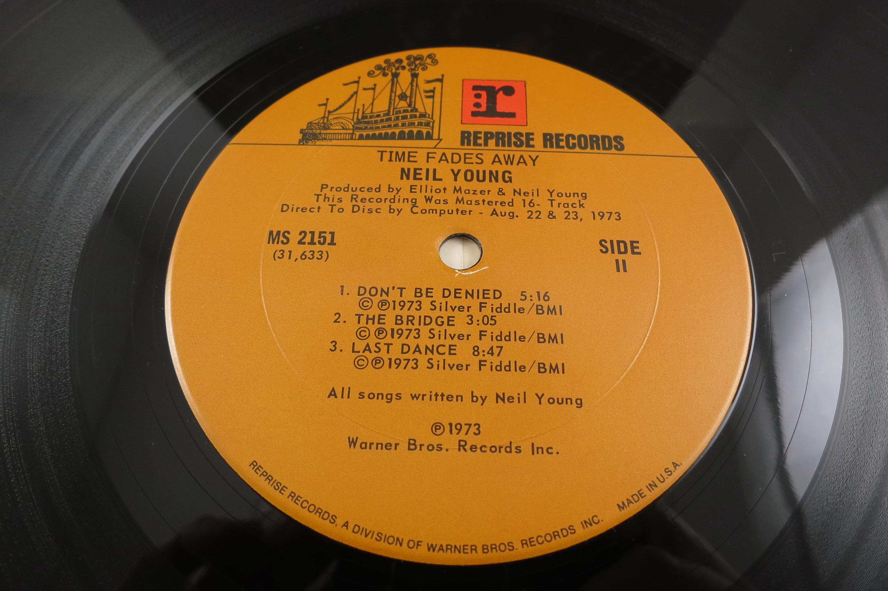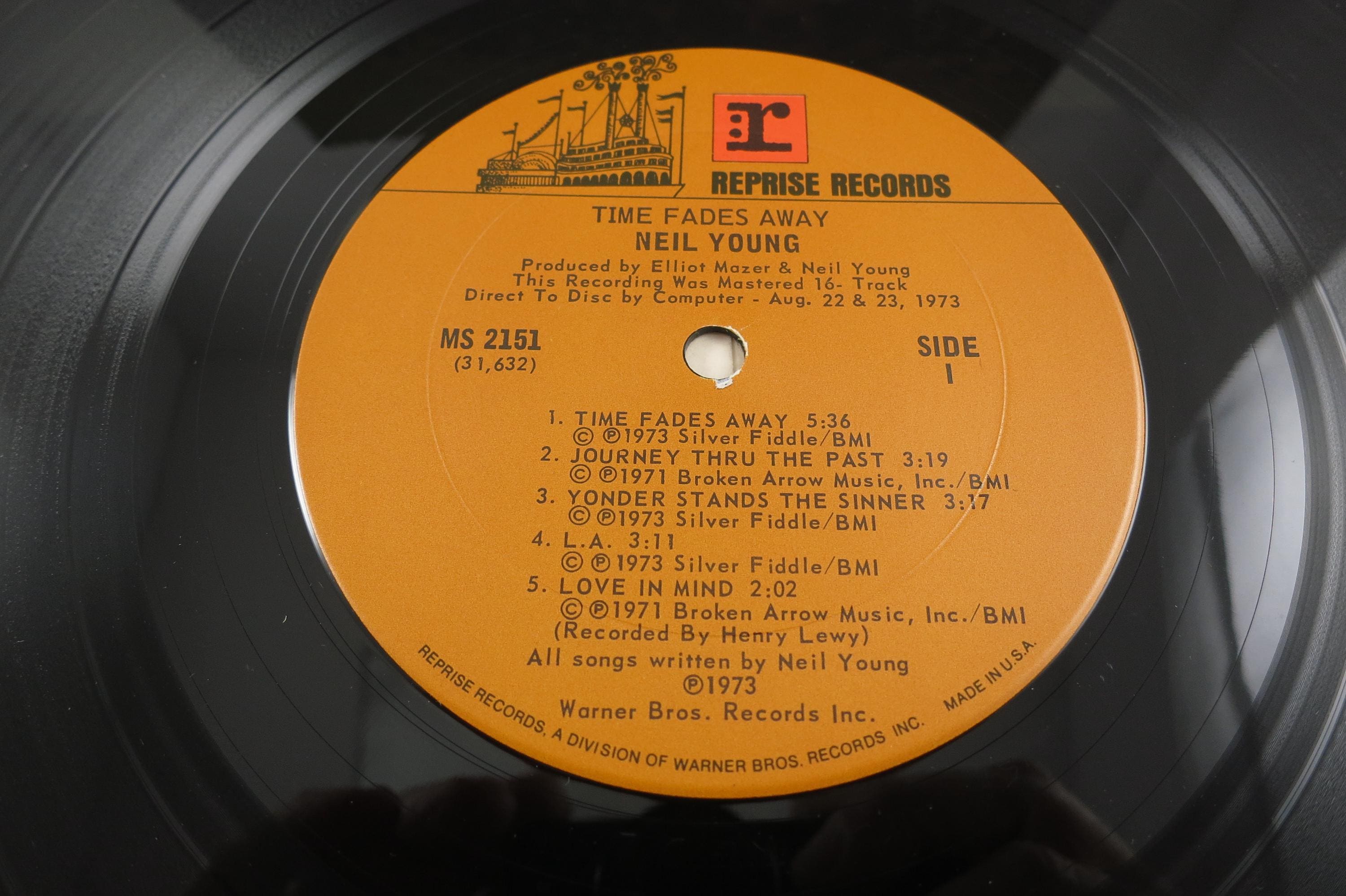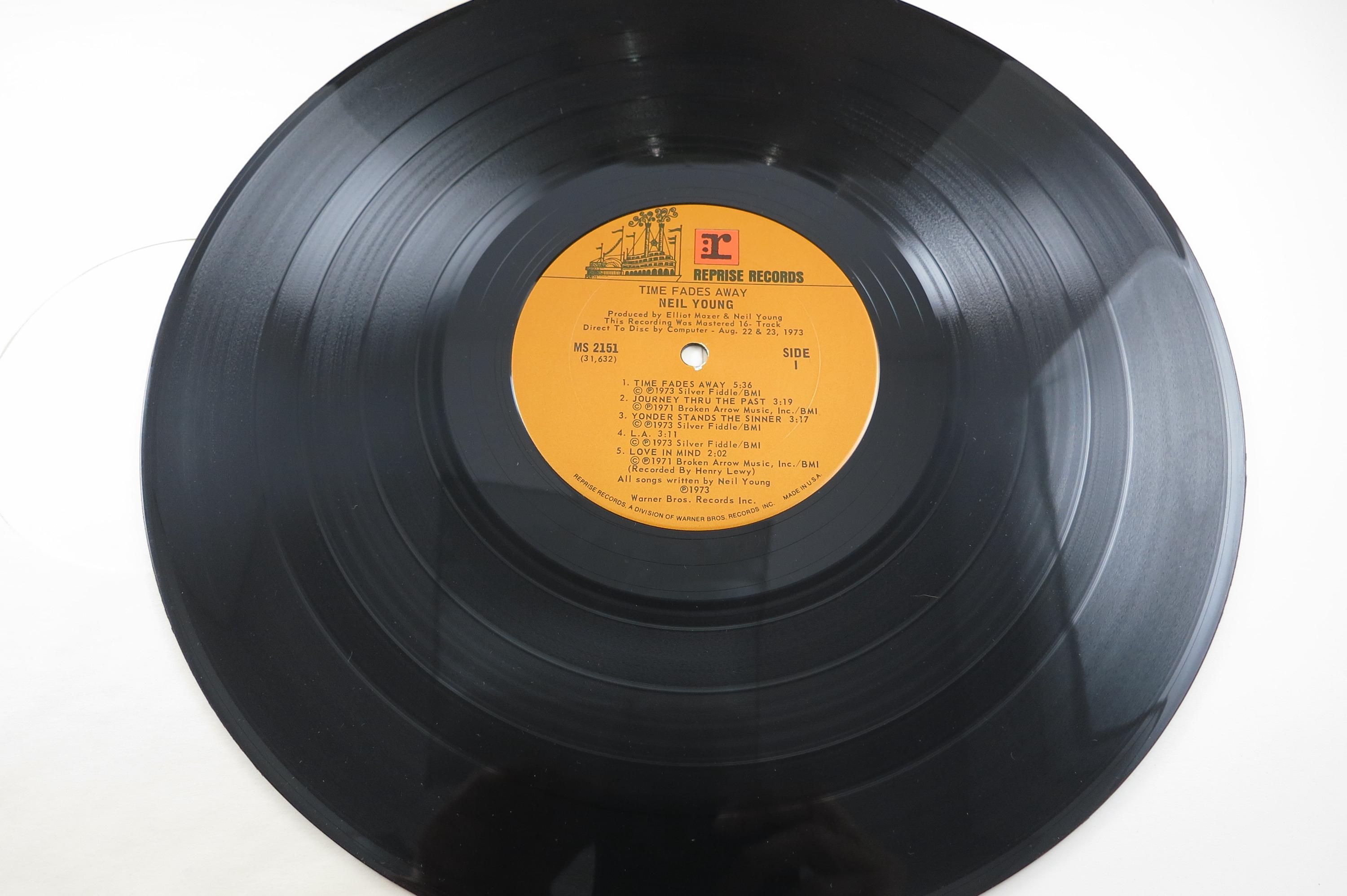 1973 Vinyl LP Record Neil Young Time Fades Away LIVE Excellent Plus Condition. Original cover is excellent plus and includes the inner paper sleeve and lyric sheet. Record is excellent plus as well. Very Nice Copy! Tracks are as follows