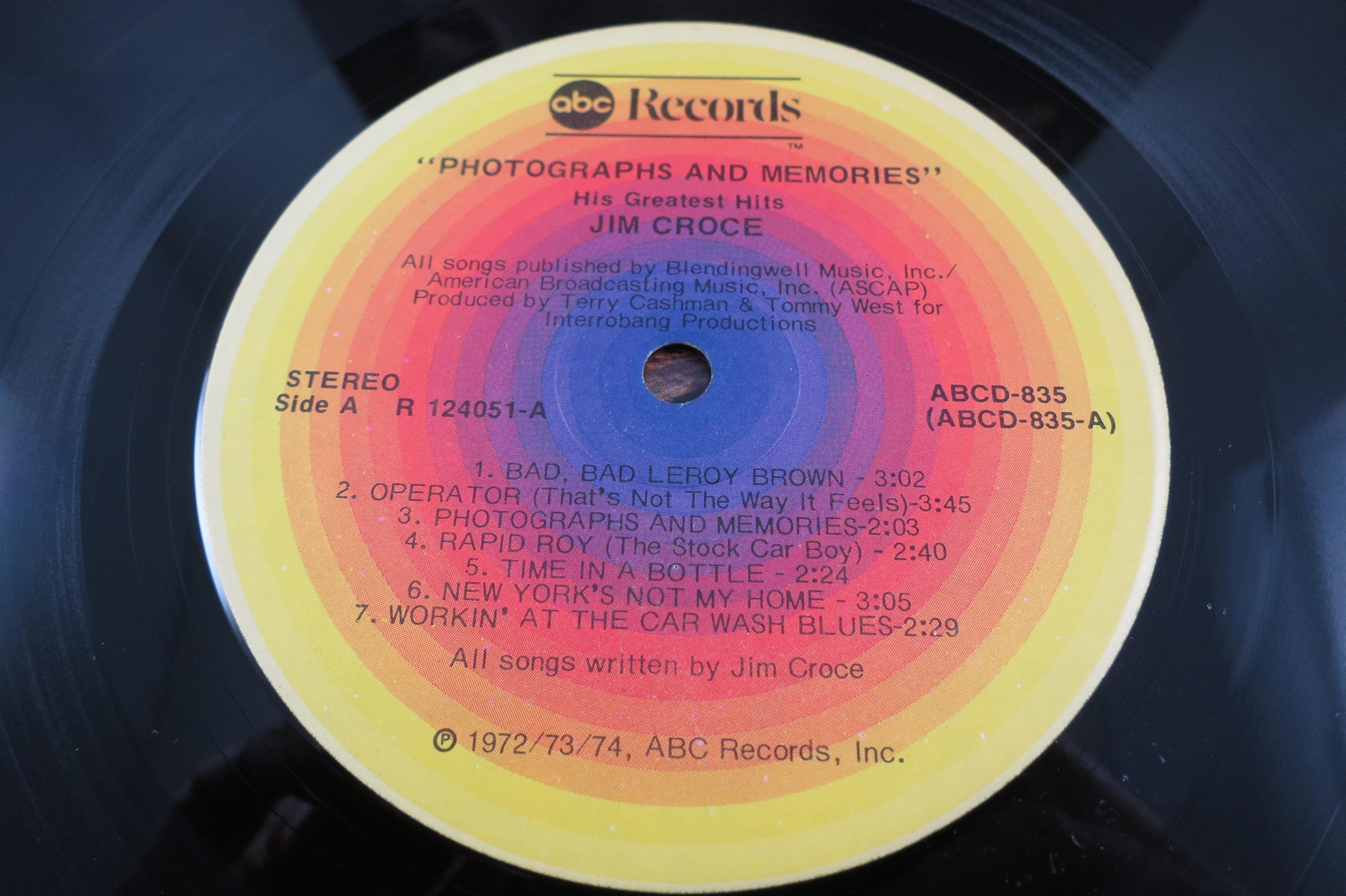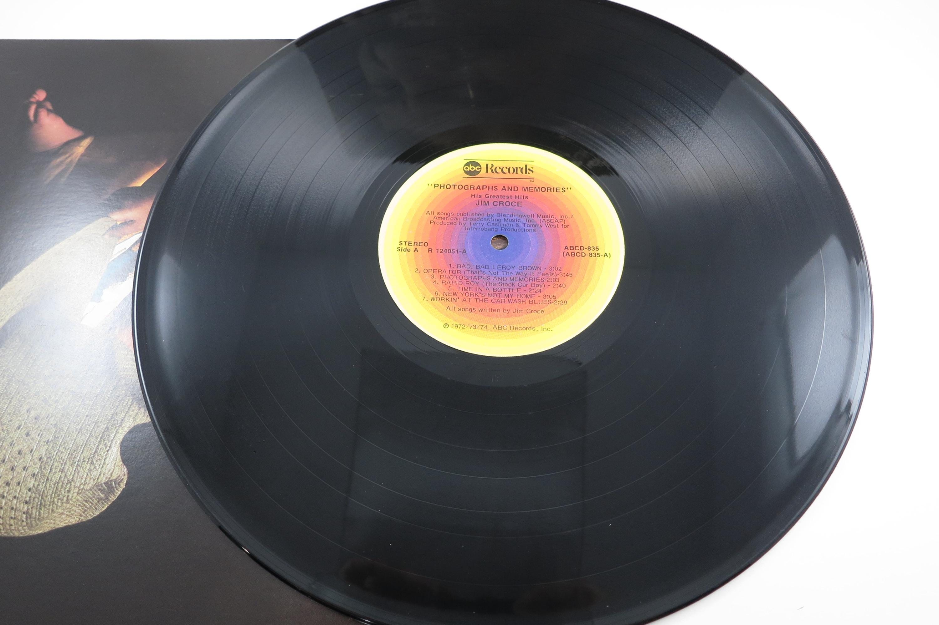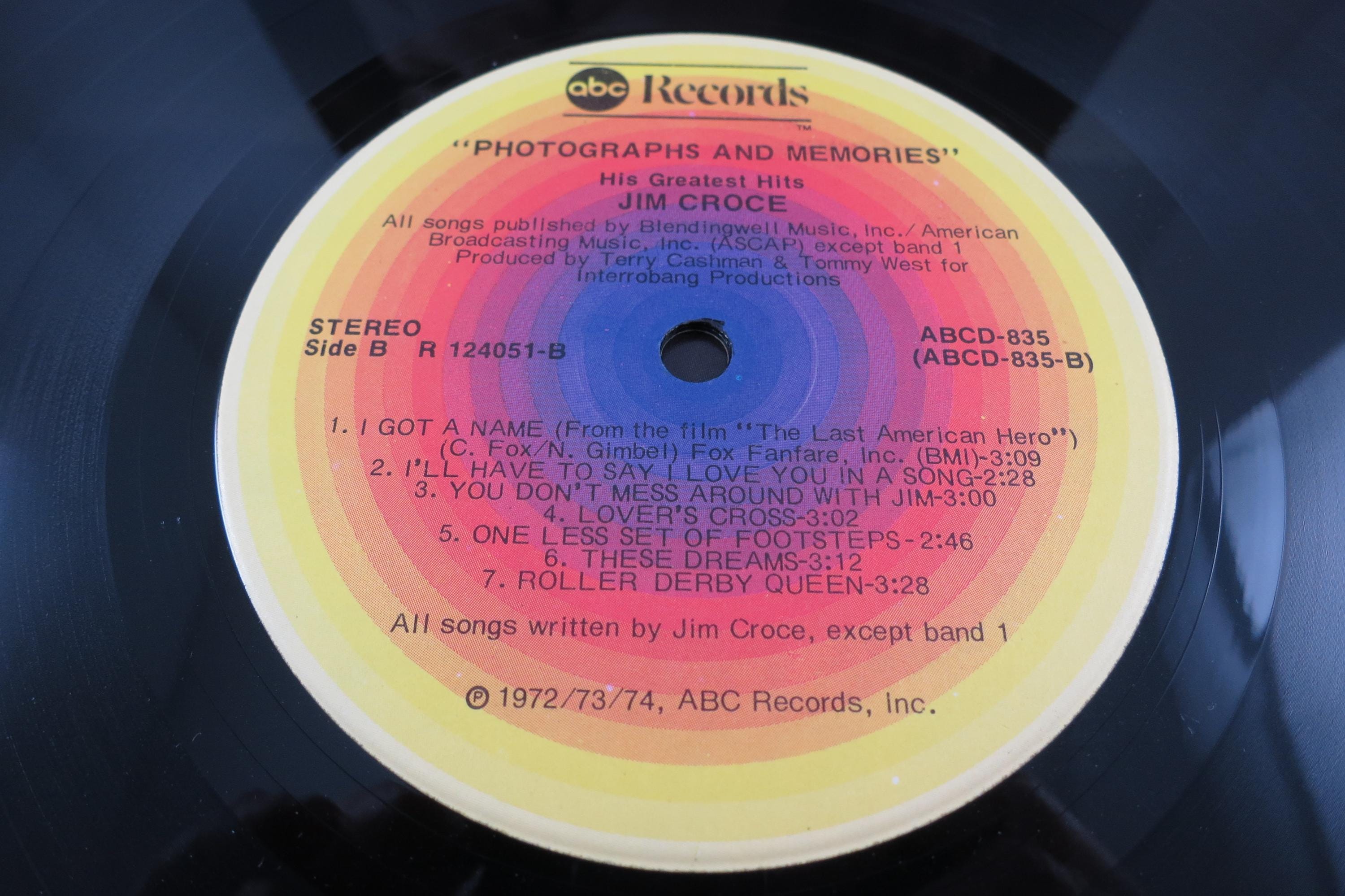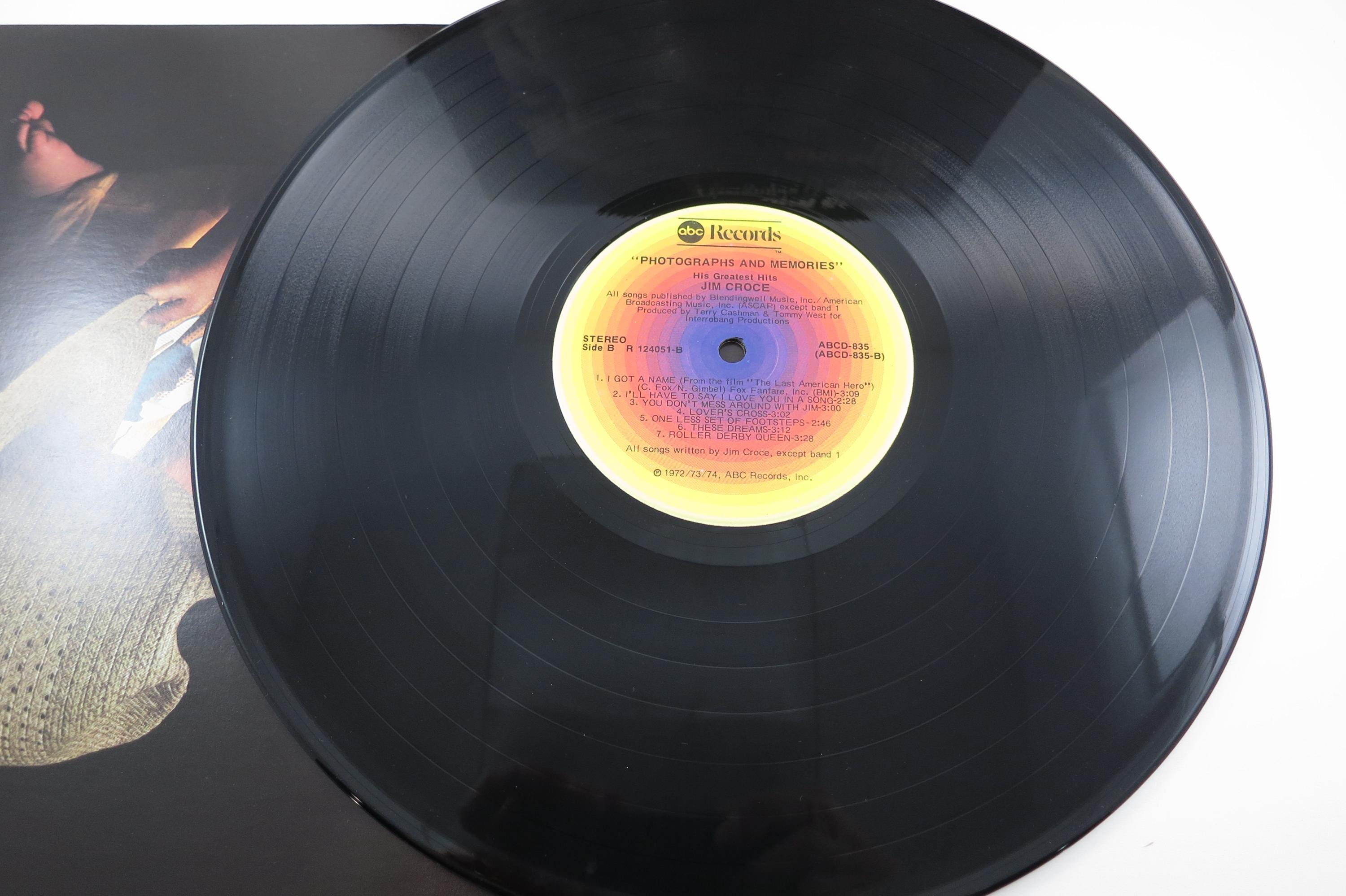 Vintage 1974 LP Record Jim Croce Photographs & Memories His Greatest Hits. Original cover is excellent and includes the original inner paper sleeve. Record is excellent with a few light marks. Tracks are as follows
