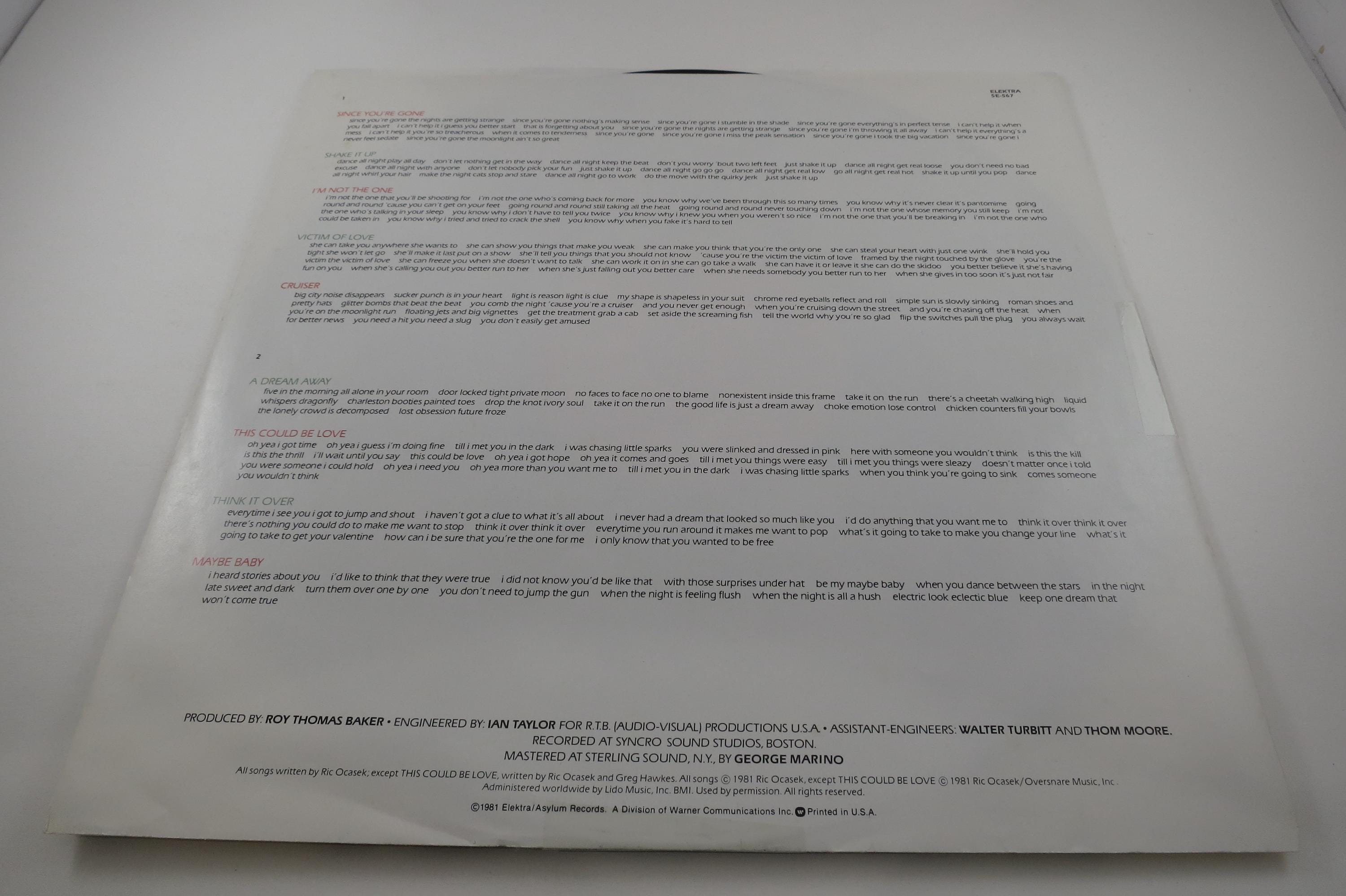 1981 Vinyl LP Record Shake It Up The Cars Excellent Plus Condition.