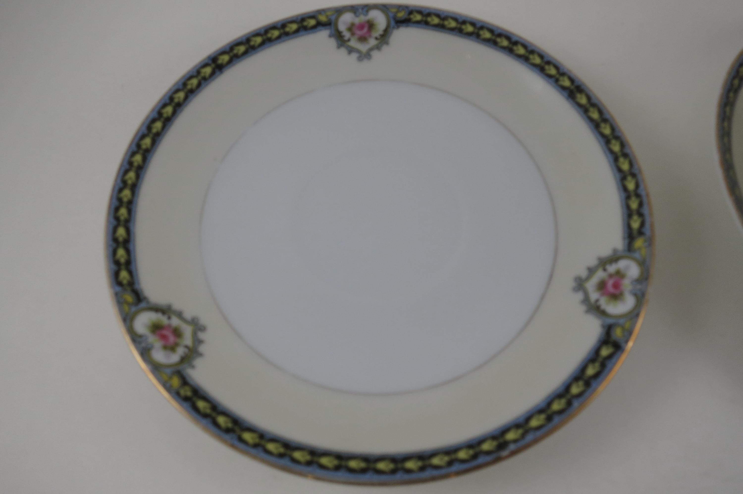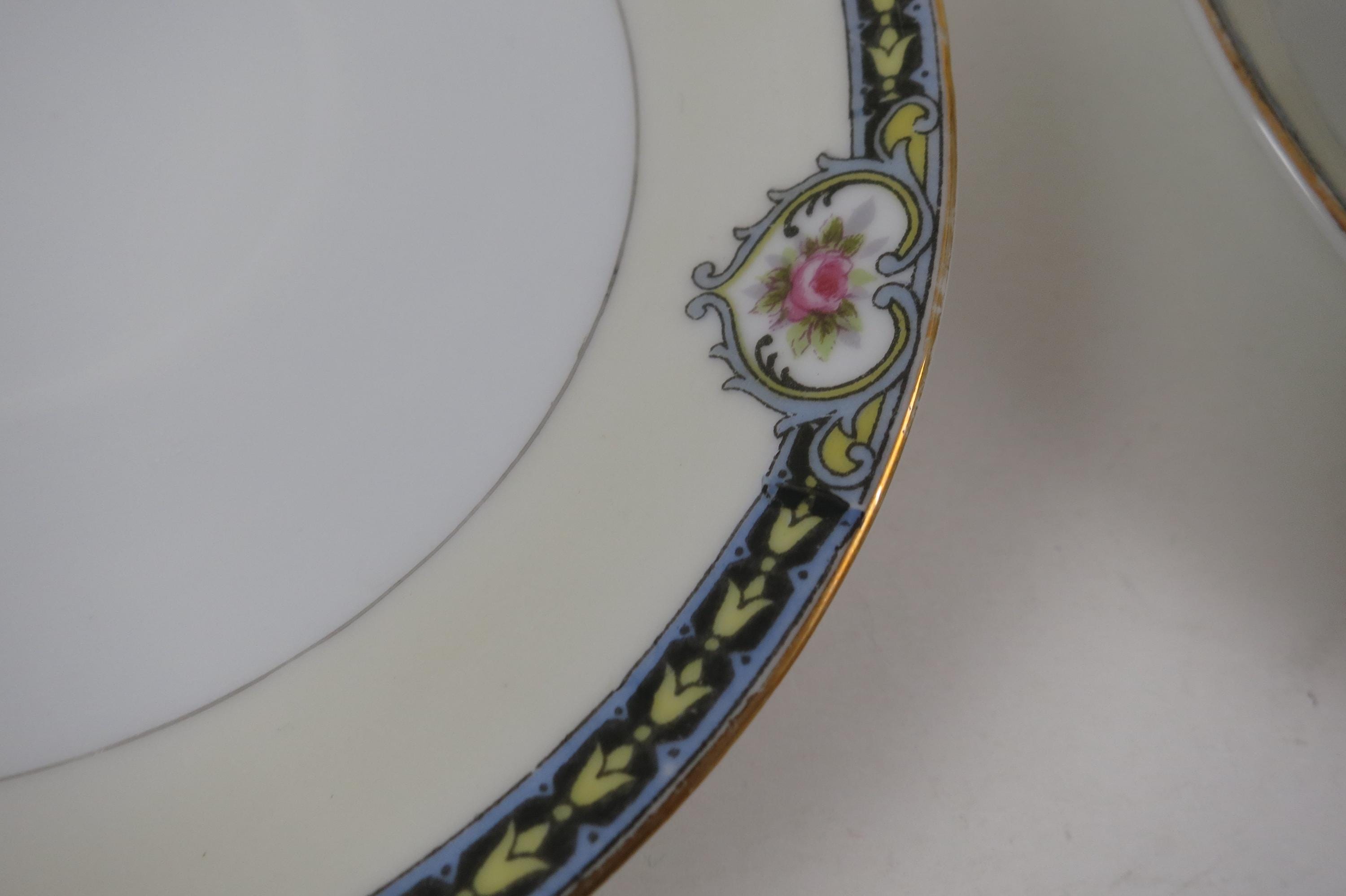 Beautiful Noritake Pattern Produced 1921-1947. Yellow Laurel, Pink Roses and a Black Band. We have a huge set we are listing in several listings, so please see our other items for more pieces.