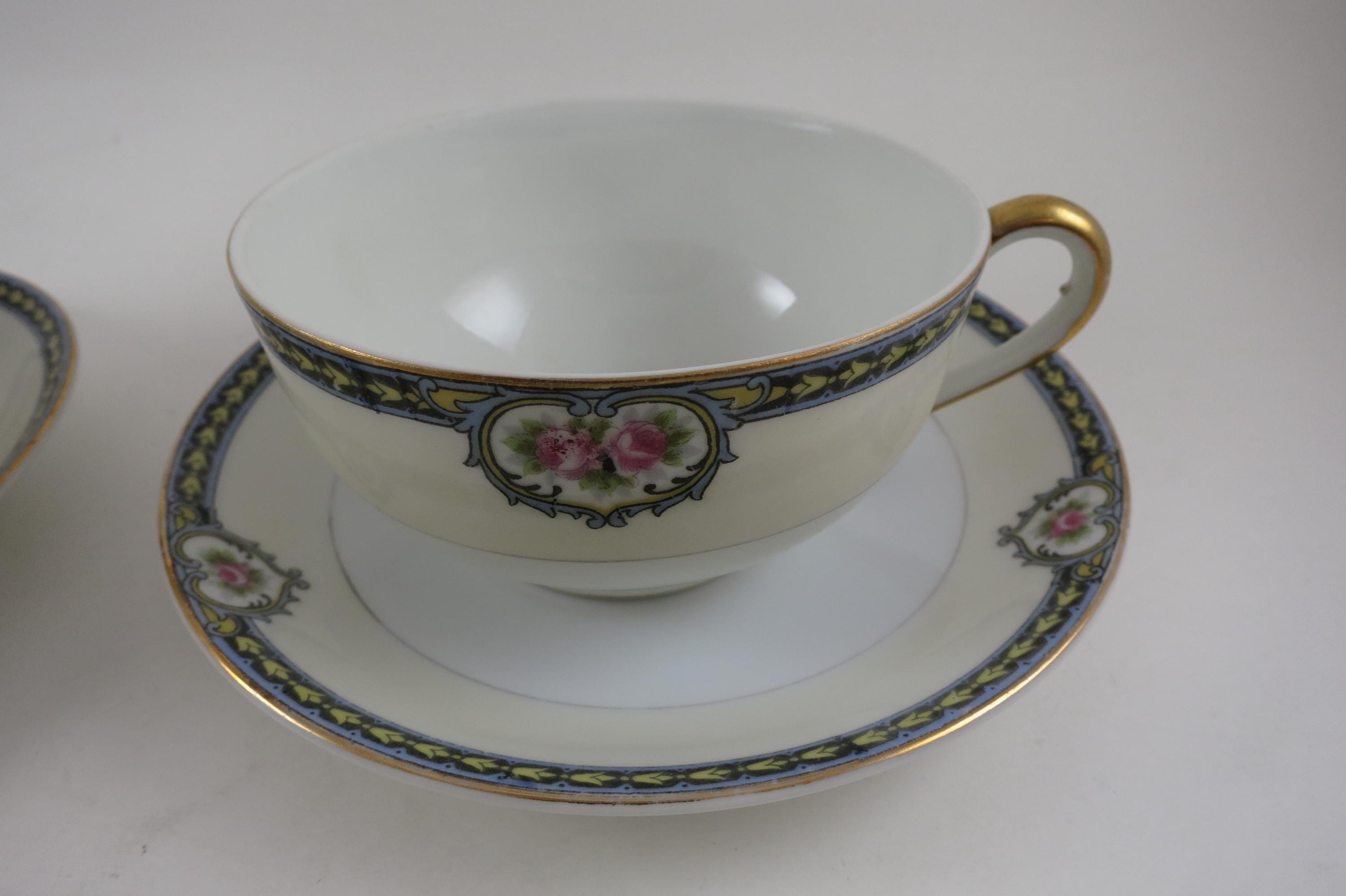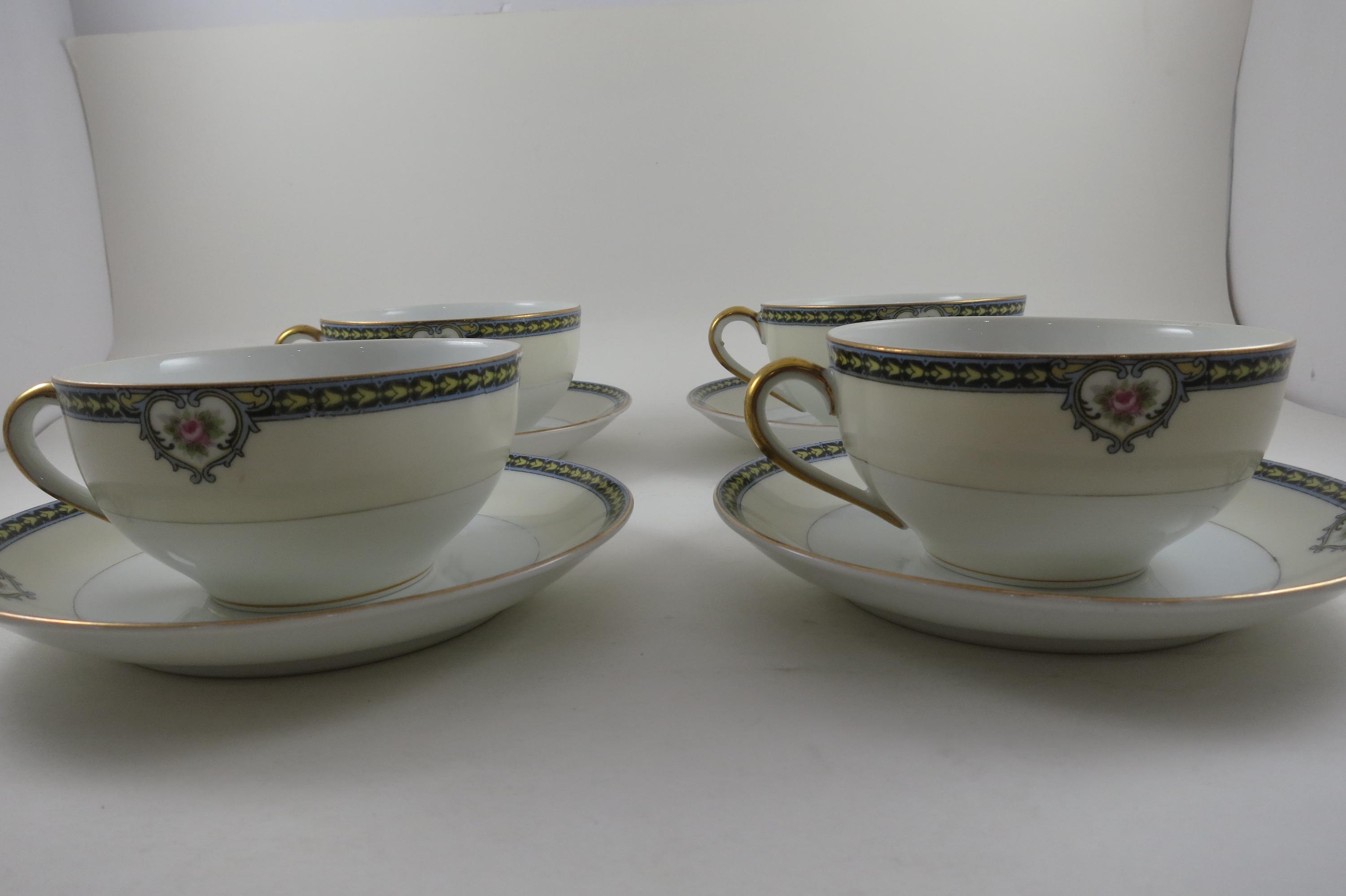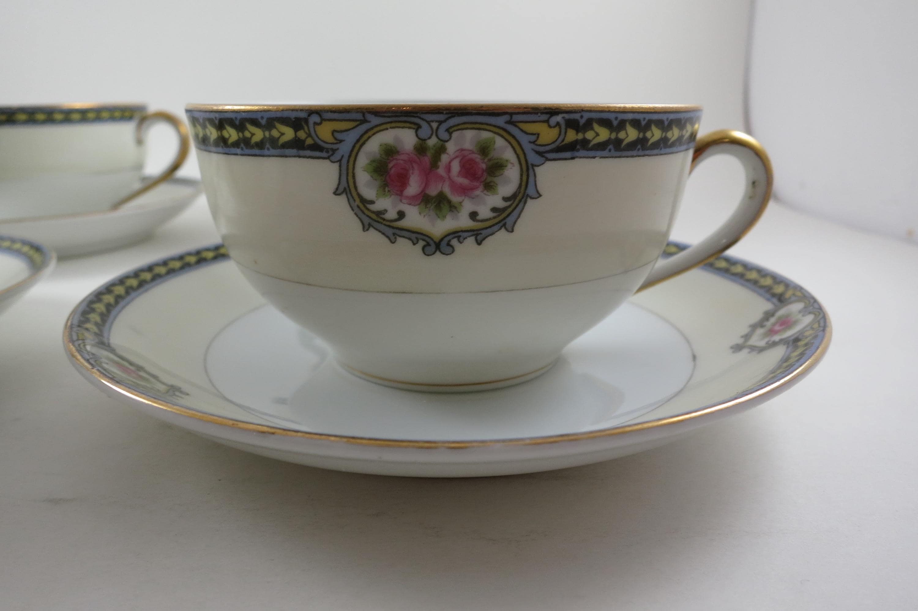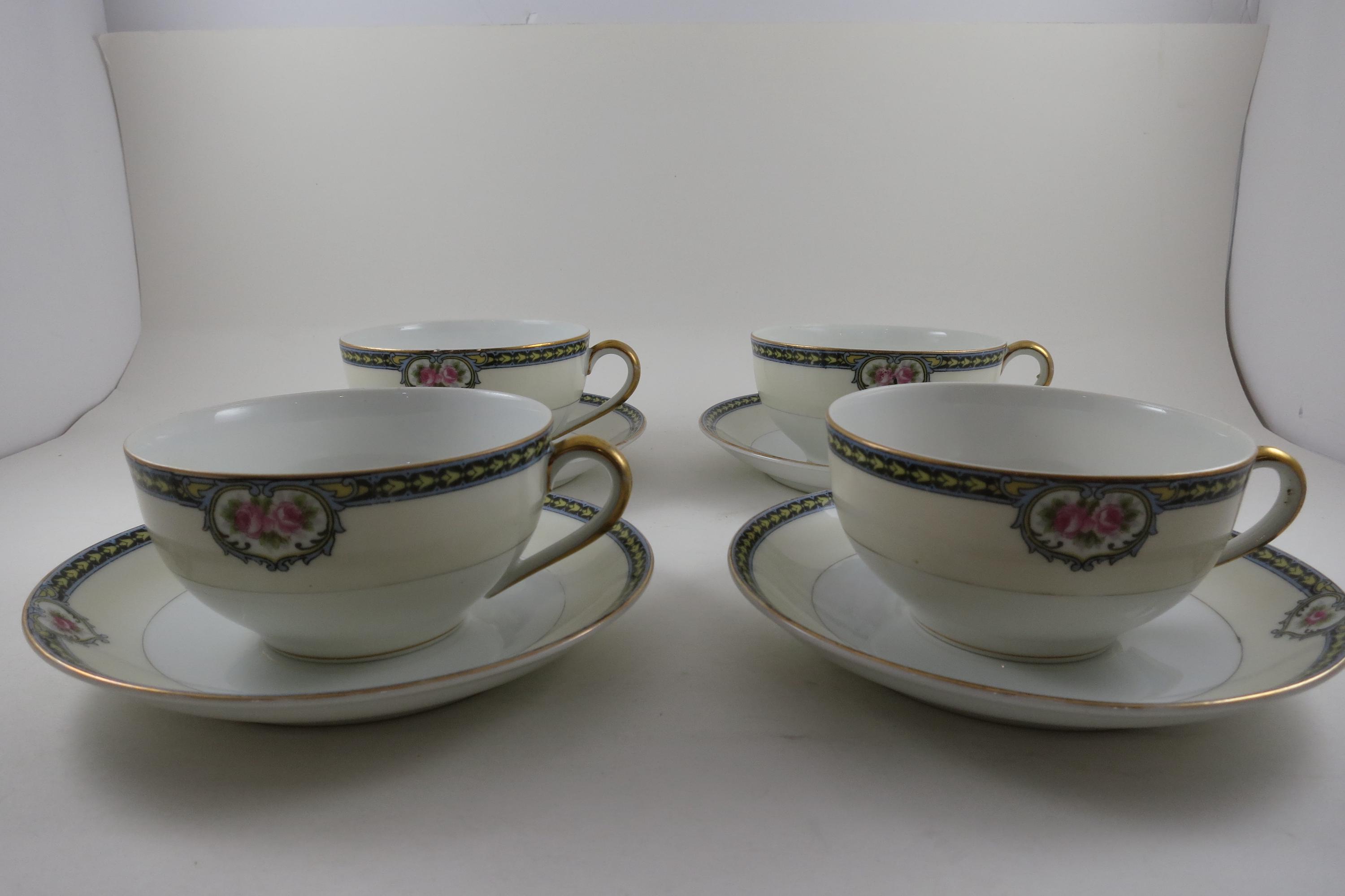 Set of Four Vintage 1920's Noritake Kenosha Pattern Cup and Saucer Sets