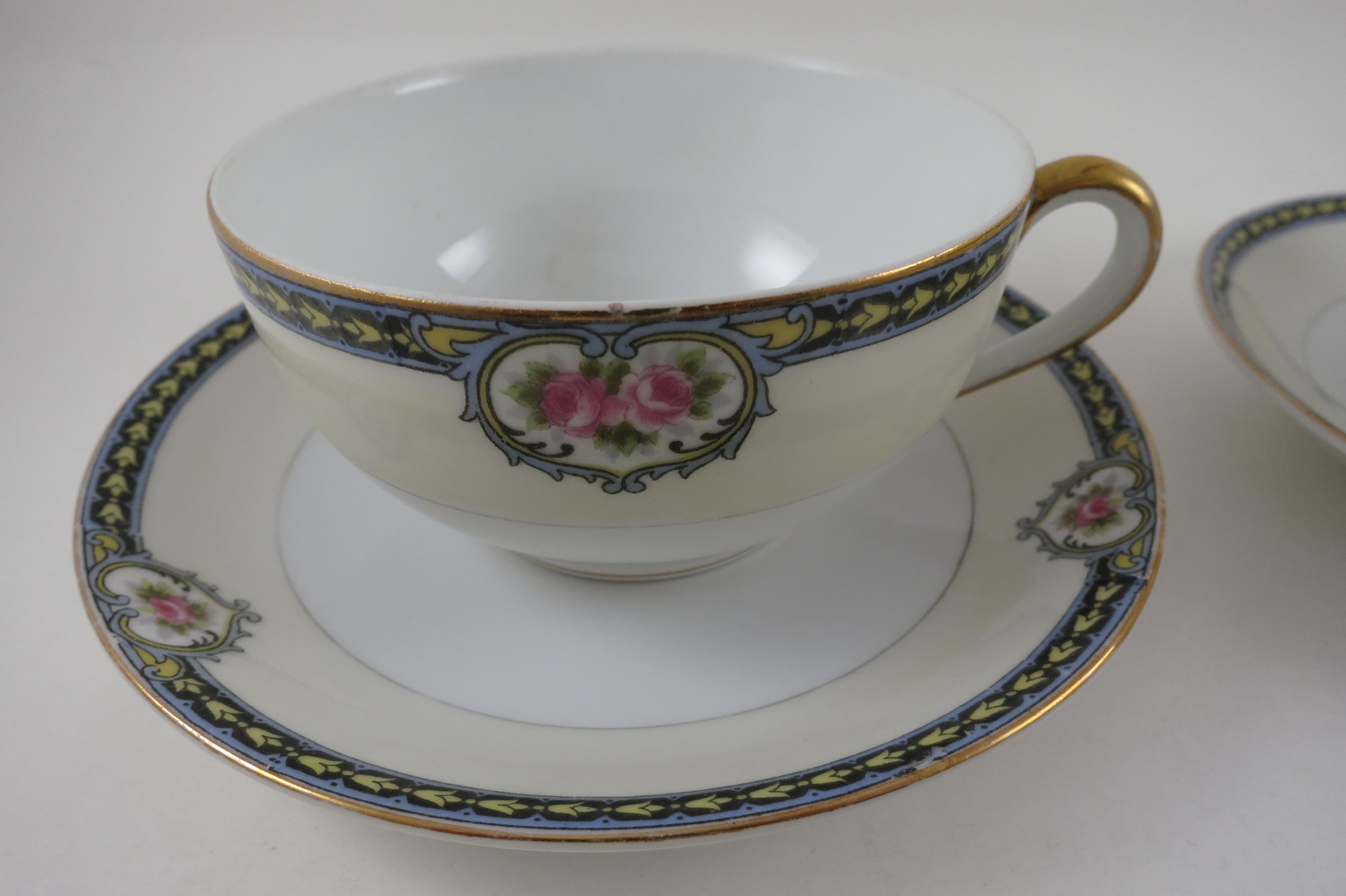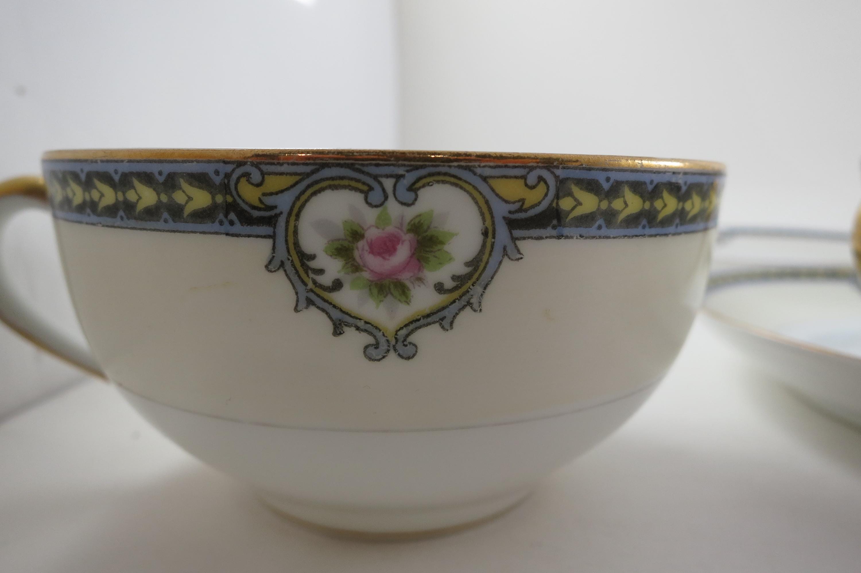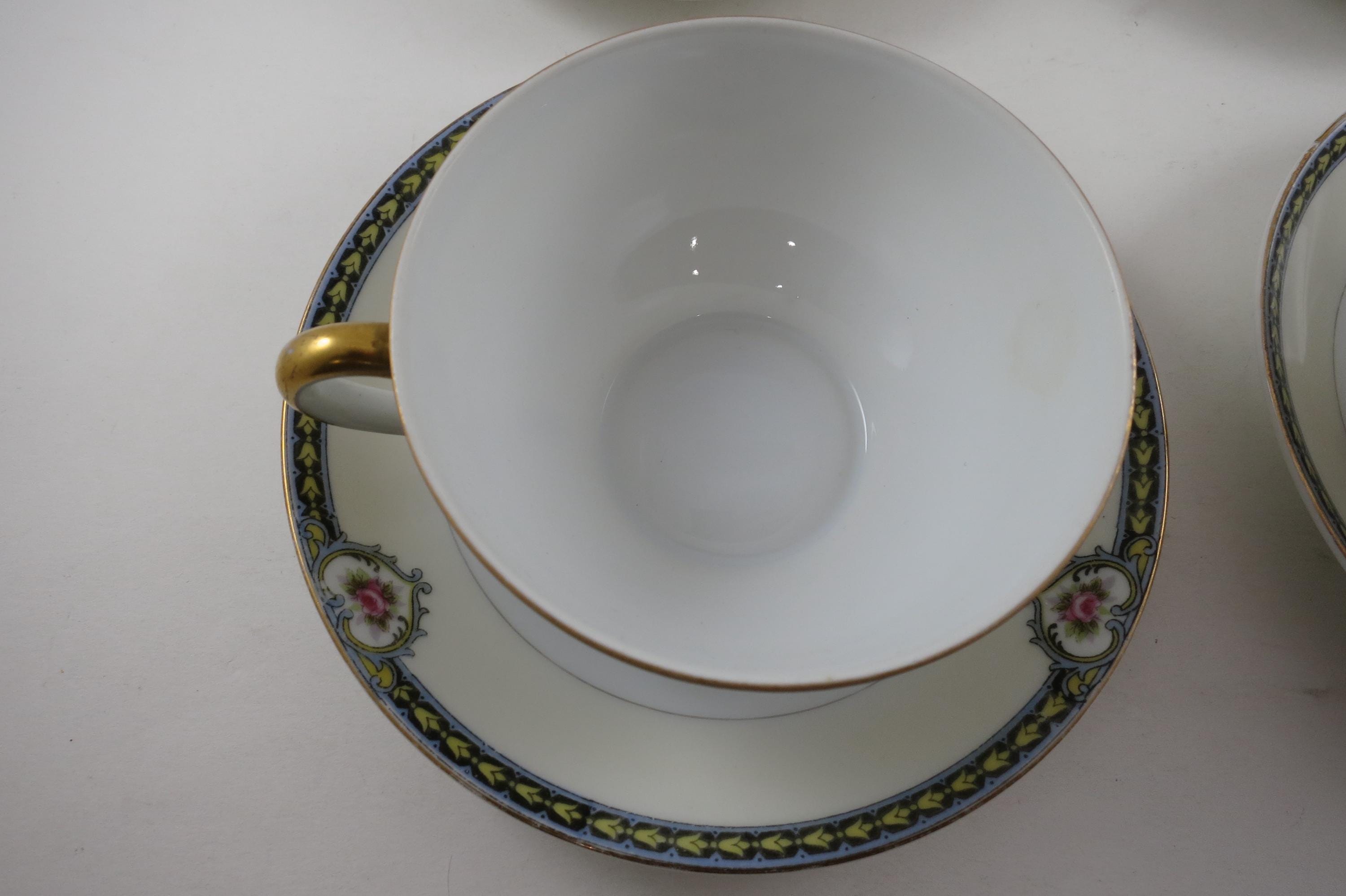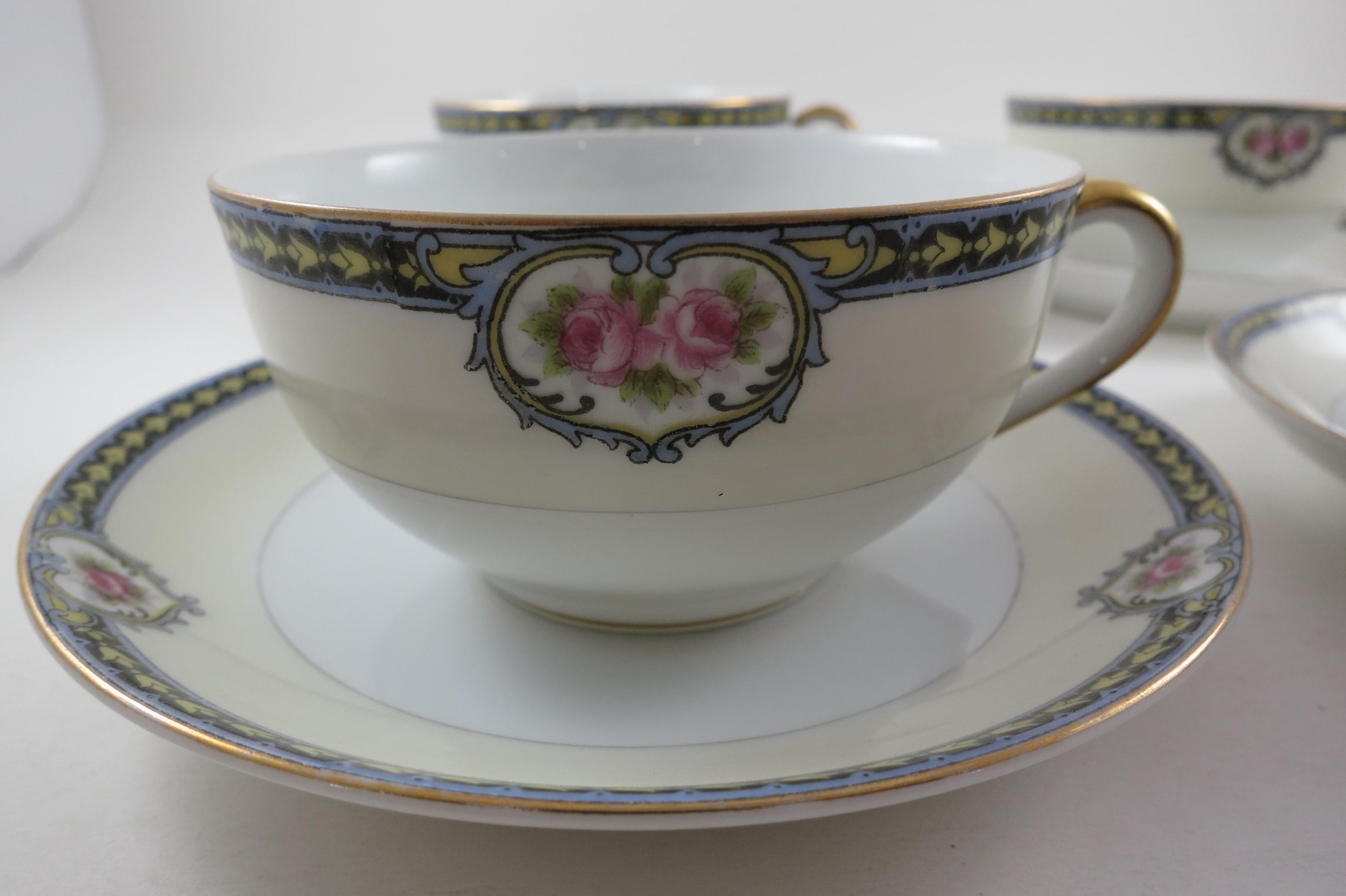 Set of Four Vintage 1920's Noritake Kenosha Pattern Cup and Saucer Sets