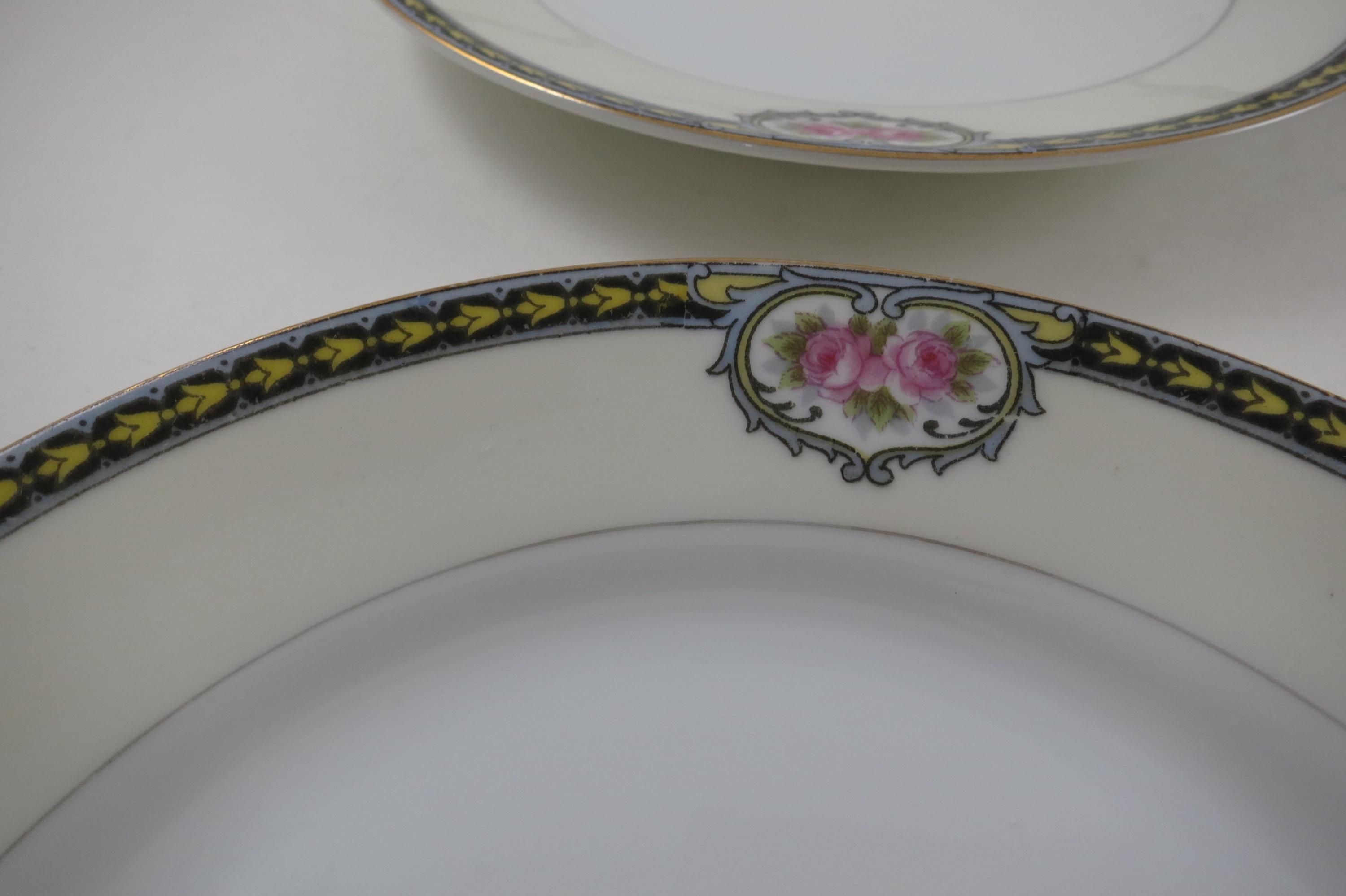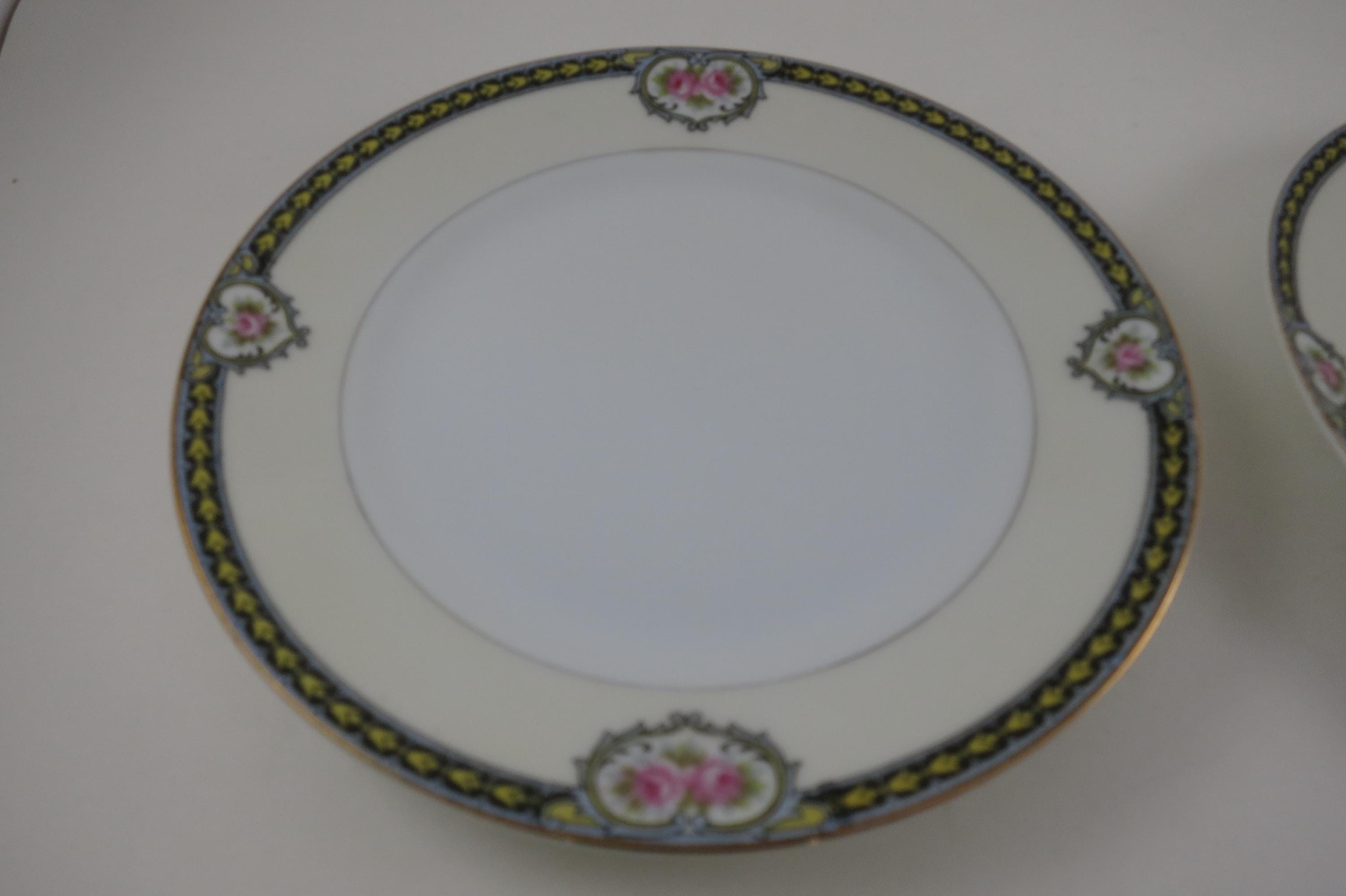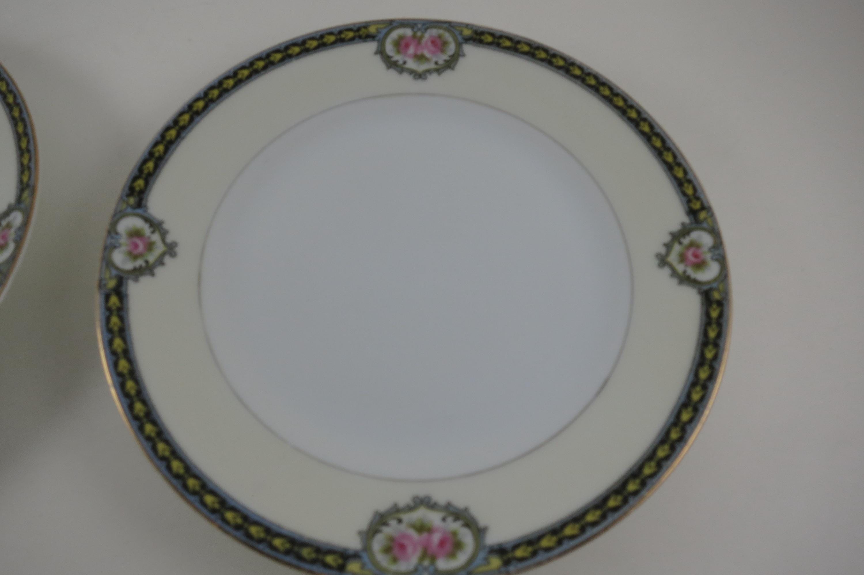 Beautiful Noritake Pattern Produced 1921-1947. Yellow Laurel, Pink Roses and a Black Band. We have a huge set we are listing in several listings, so please see our other items for more pieces.