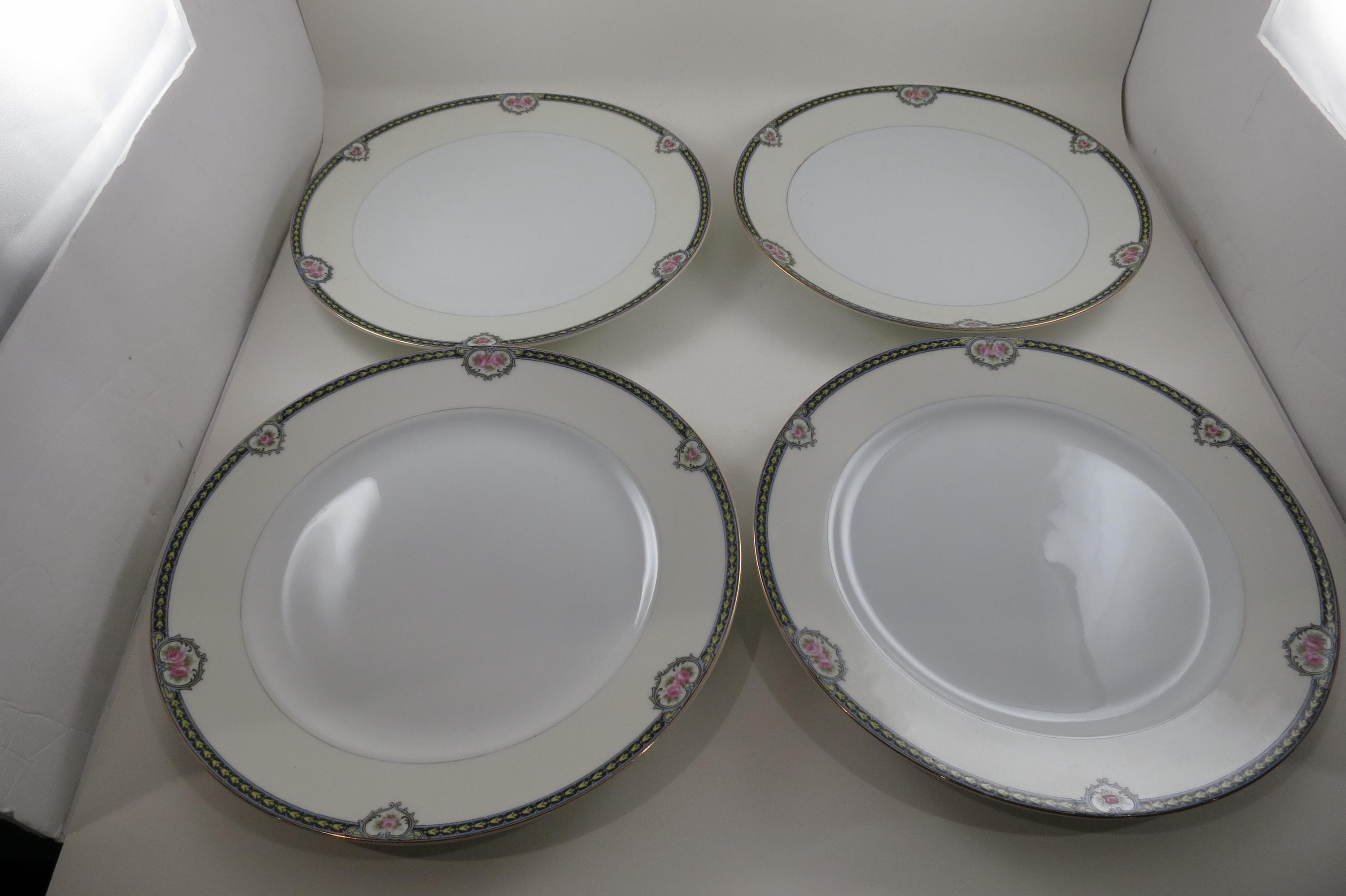 Set of Four Vintage 1920's Noritake Kenosha Pattern 10 Inch Dinner Plates.