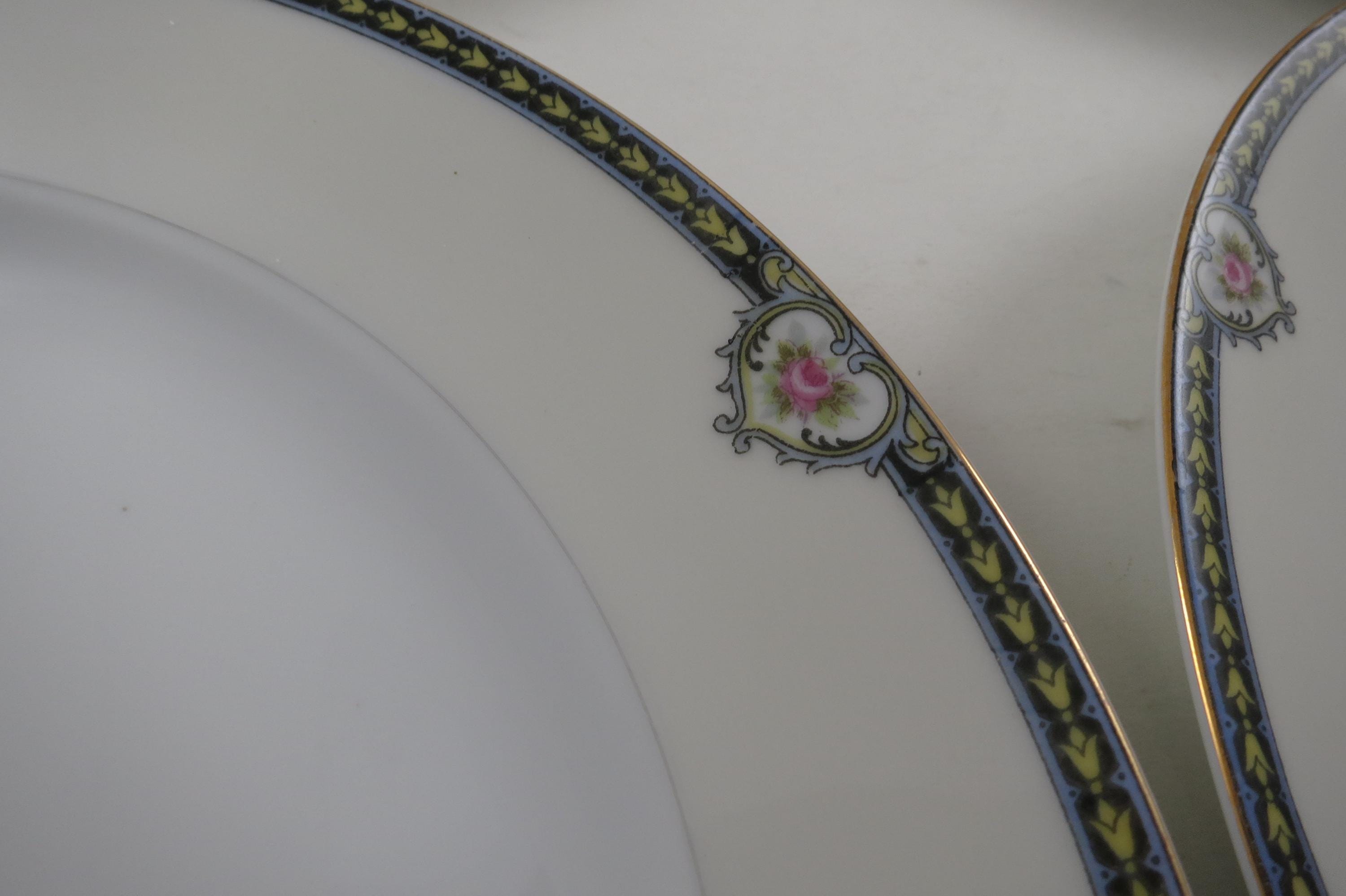 Beautiful Noritake Pattern Produced 1921-1947. Yellow Laurel, Pink Roses and a Black Band. We have a huge set we are listing in several listings, so please see our other items for more pieces.