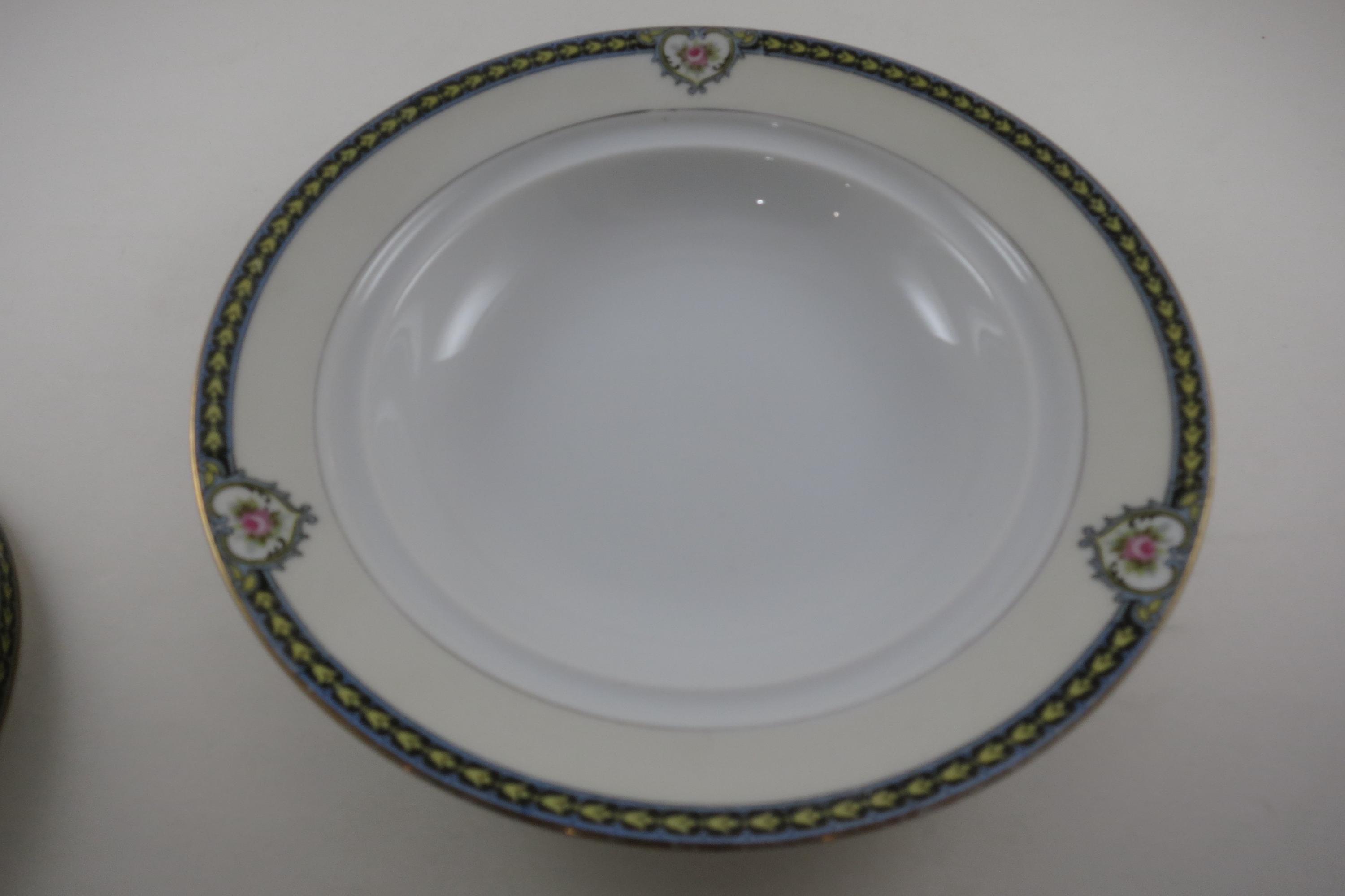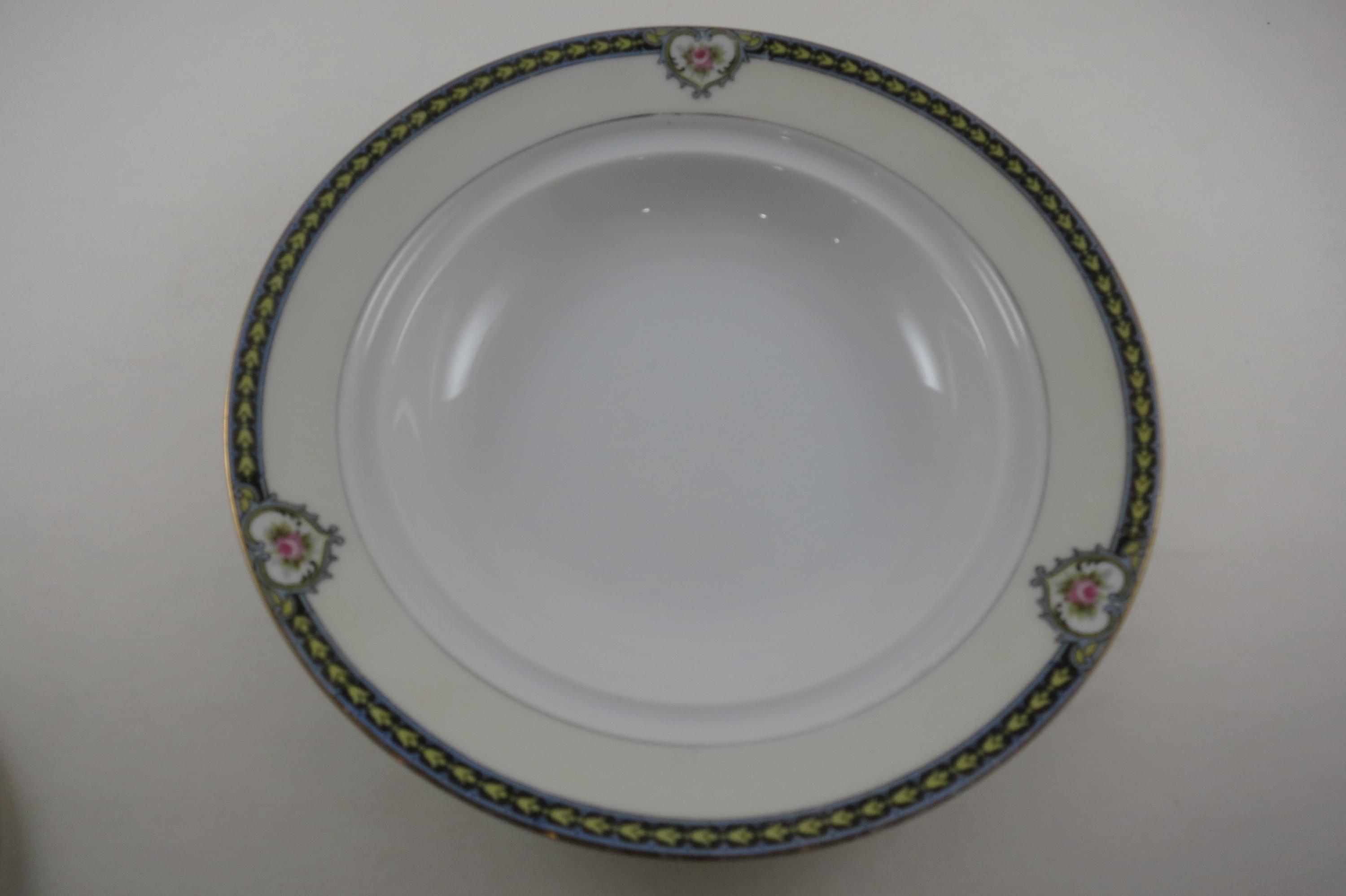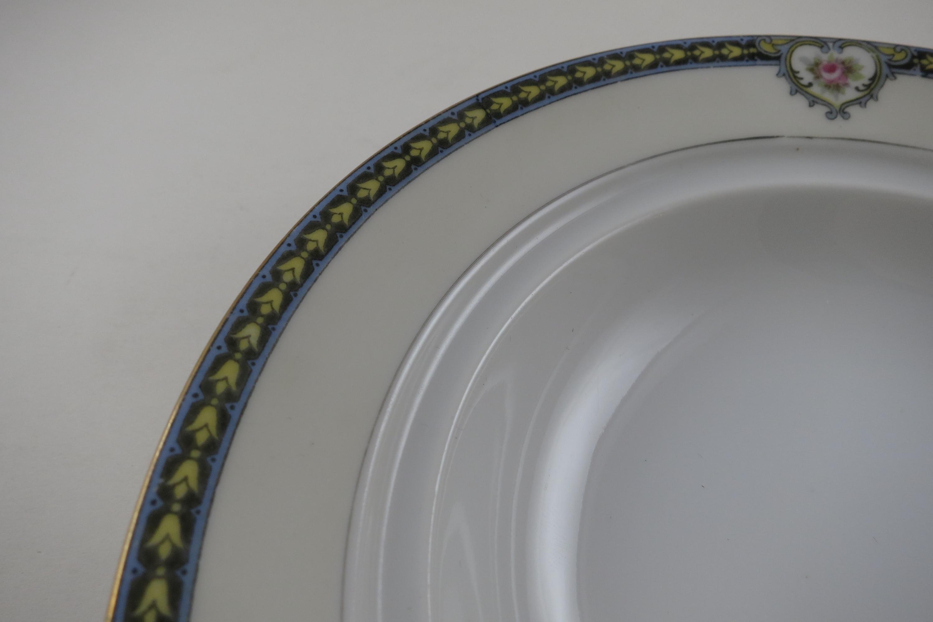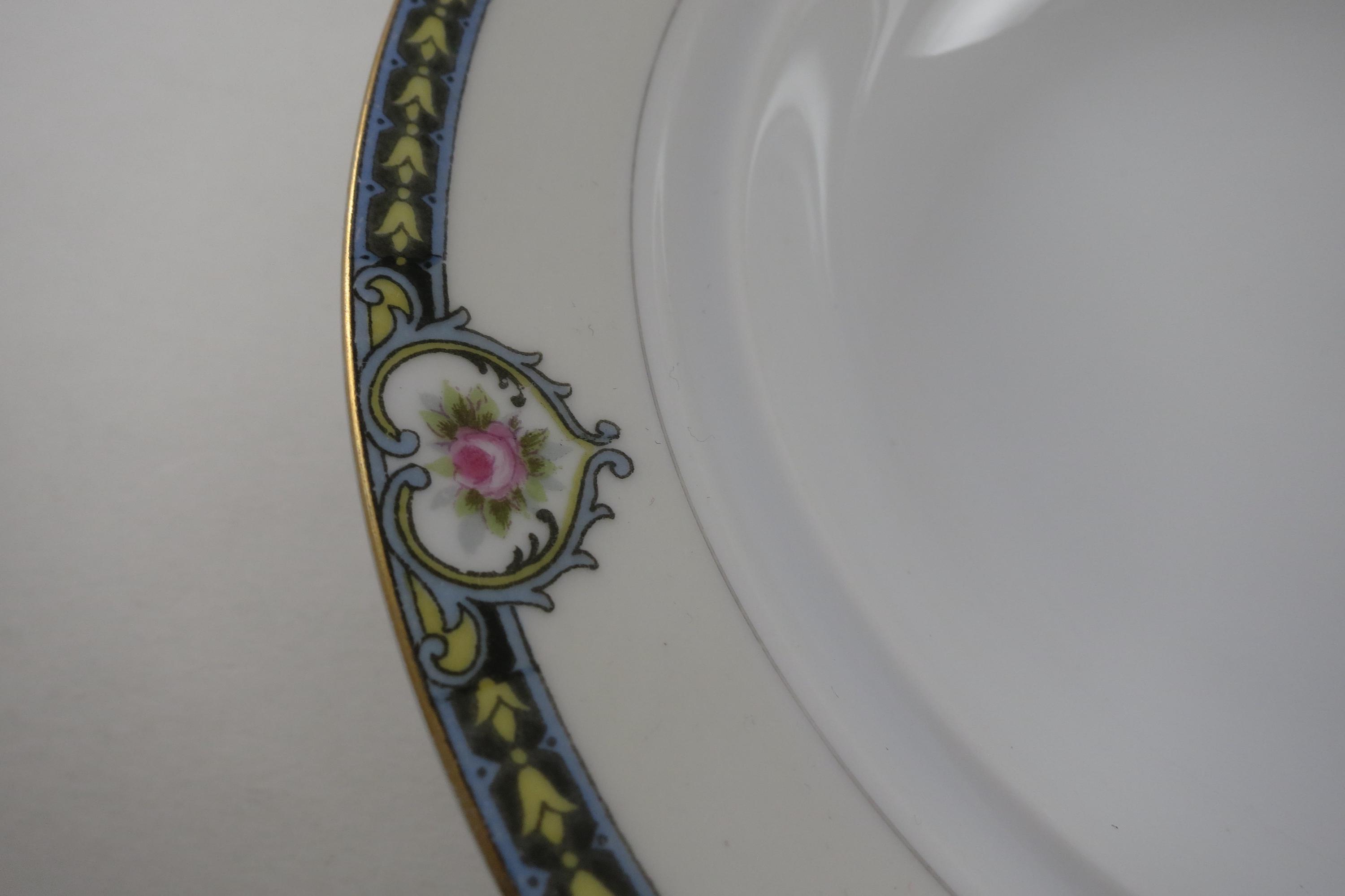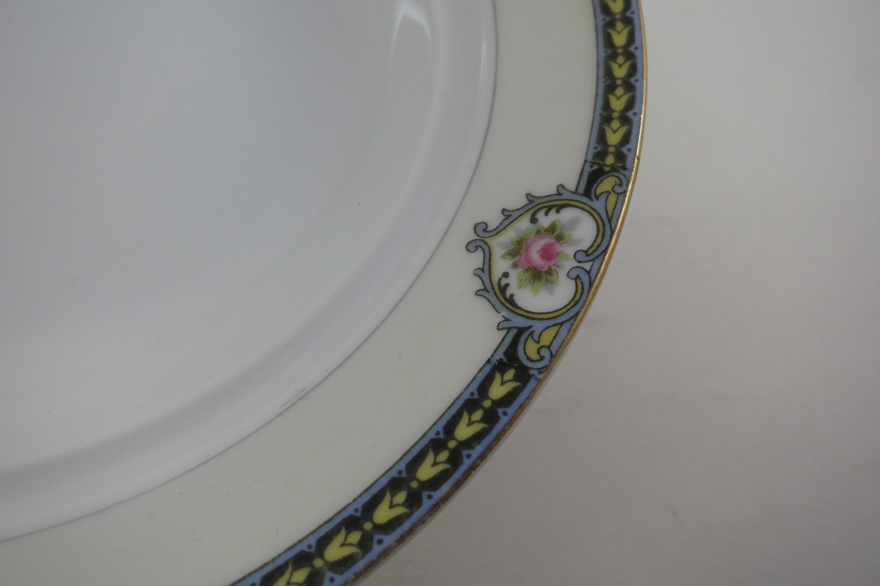 Beautiful Noritake Pattern Produced 1921-1947. Yellow Laurel, Pink Roses and a Black Band. We have a huge set we are listing in several listings, so please see our other items for more pieces.