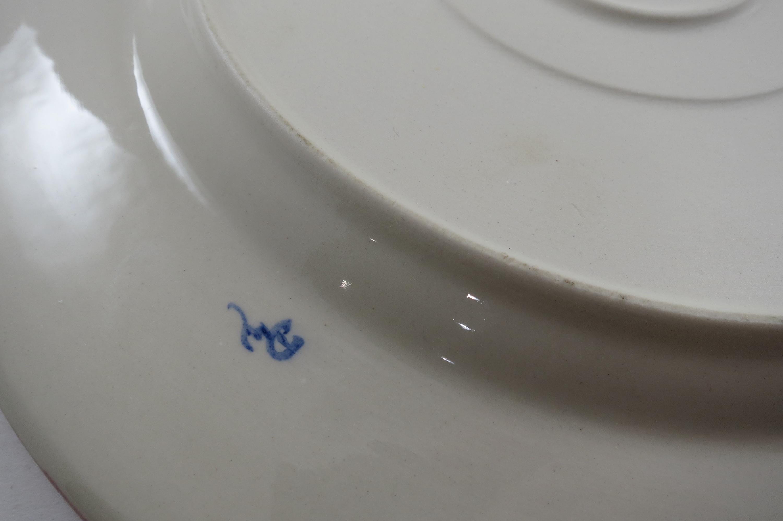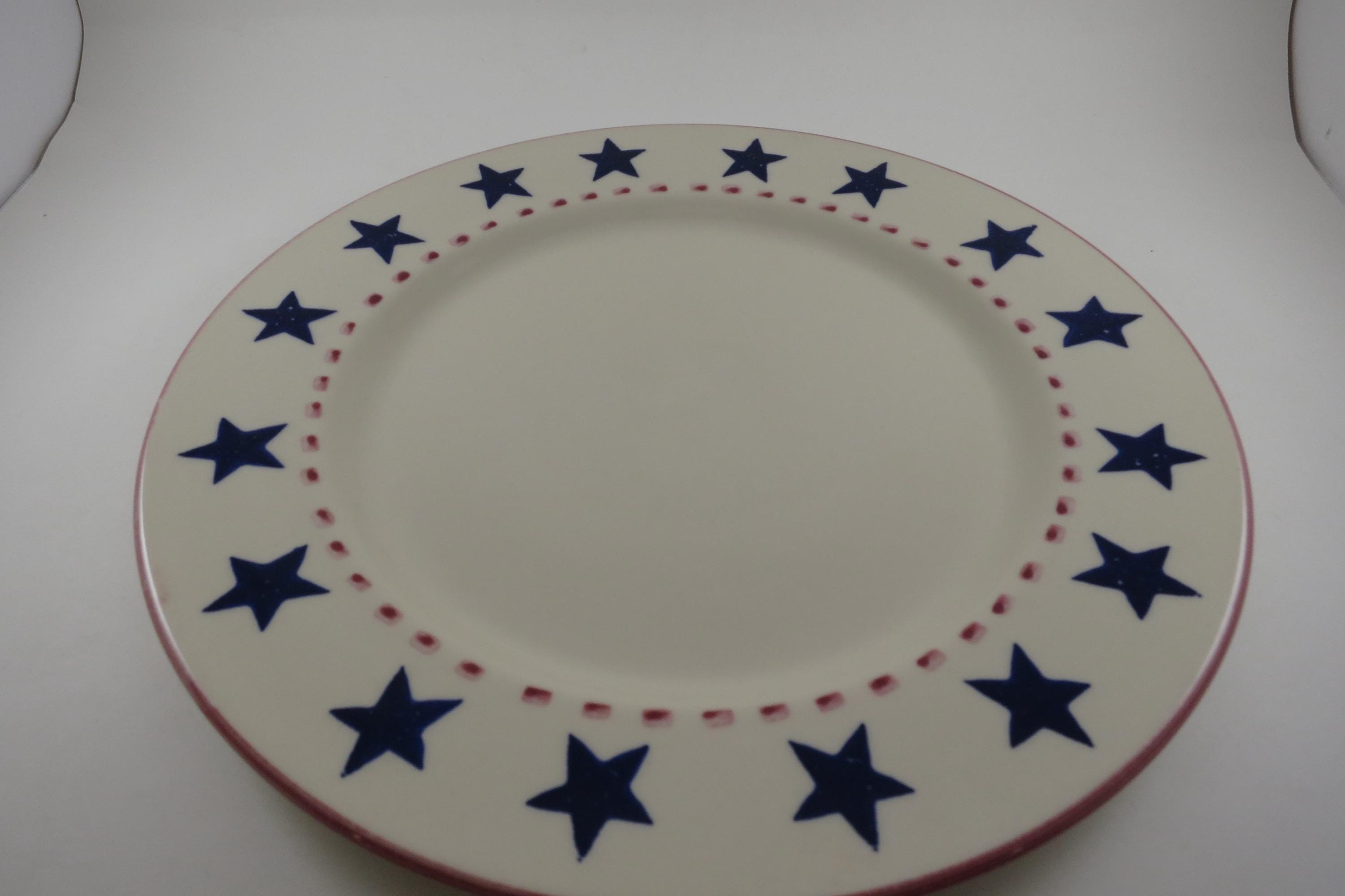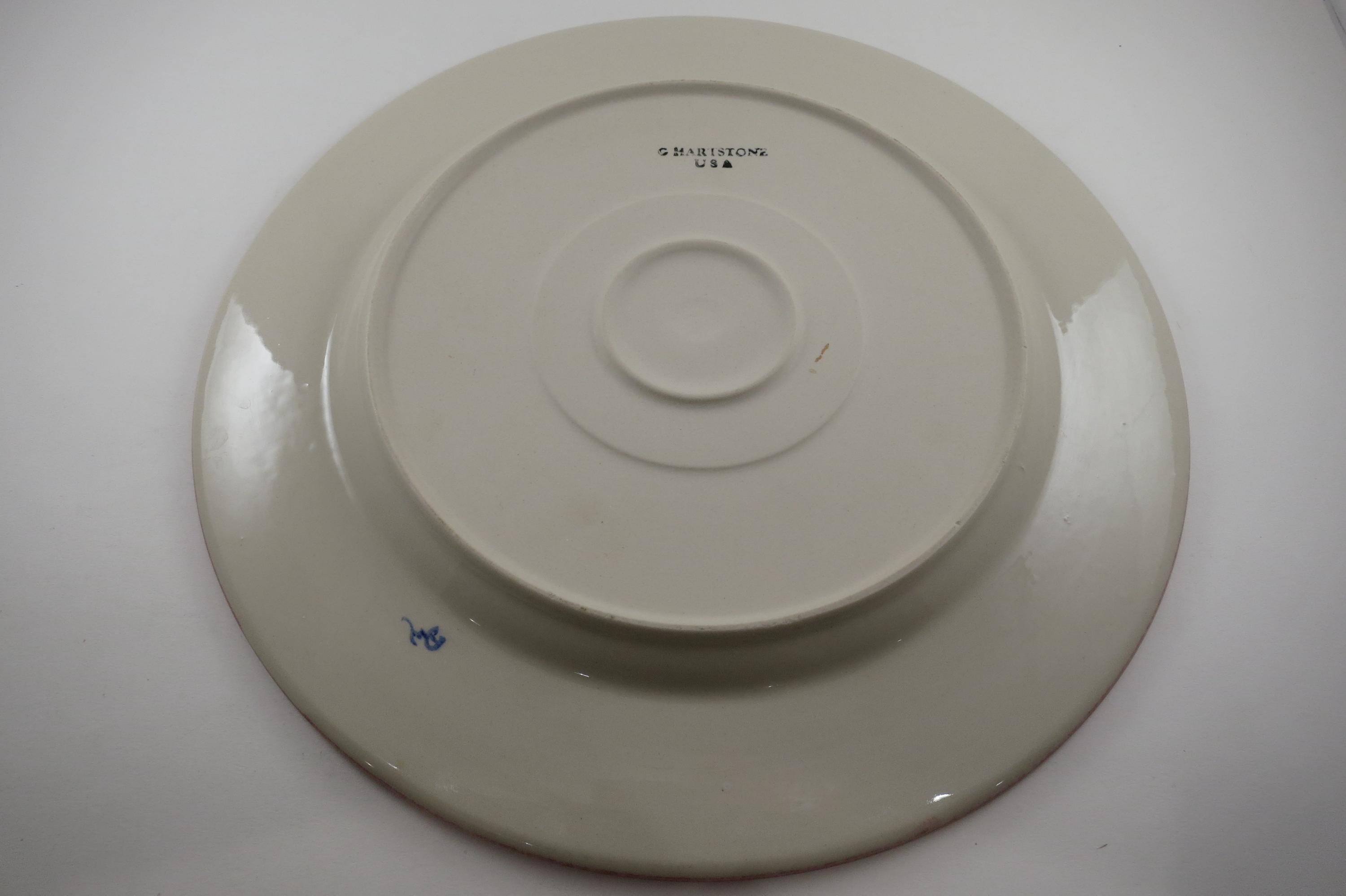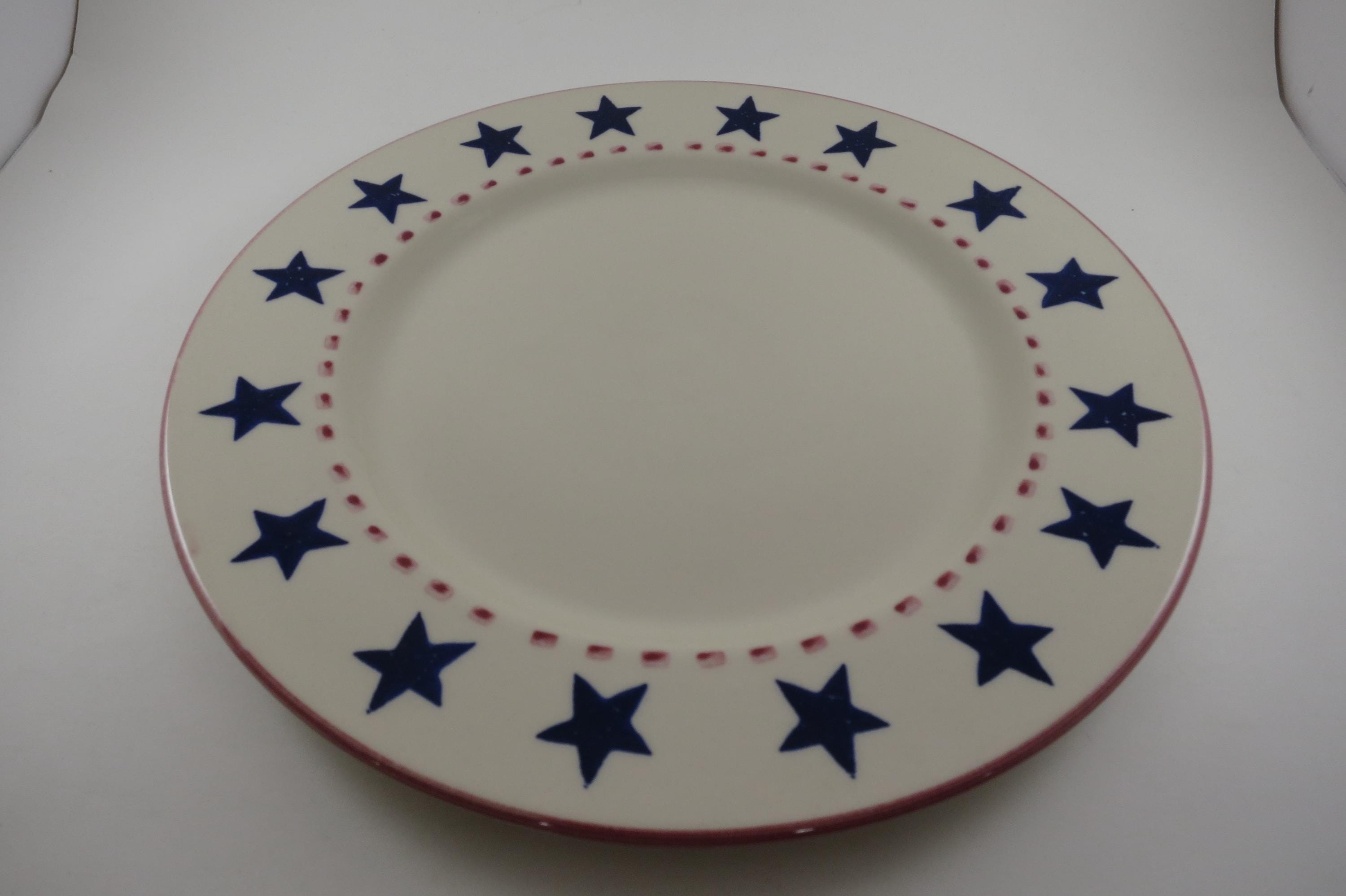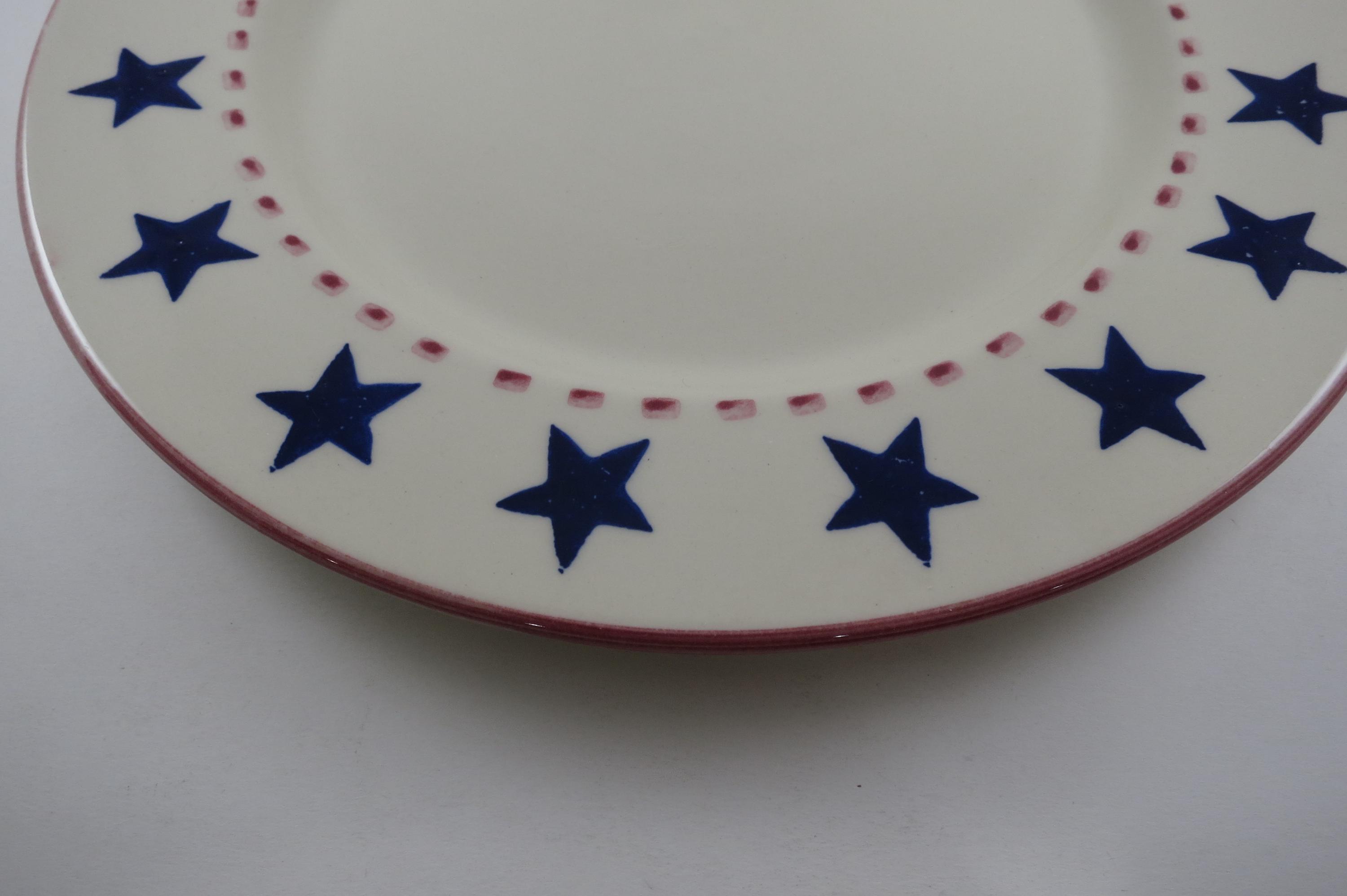 Beautiful old platter, measuring 12 1/4 inches diameter. White with a red border and blue stars. Hartstone Stoneware.