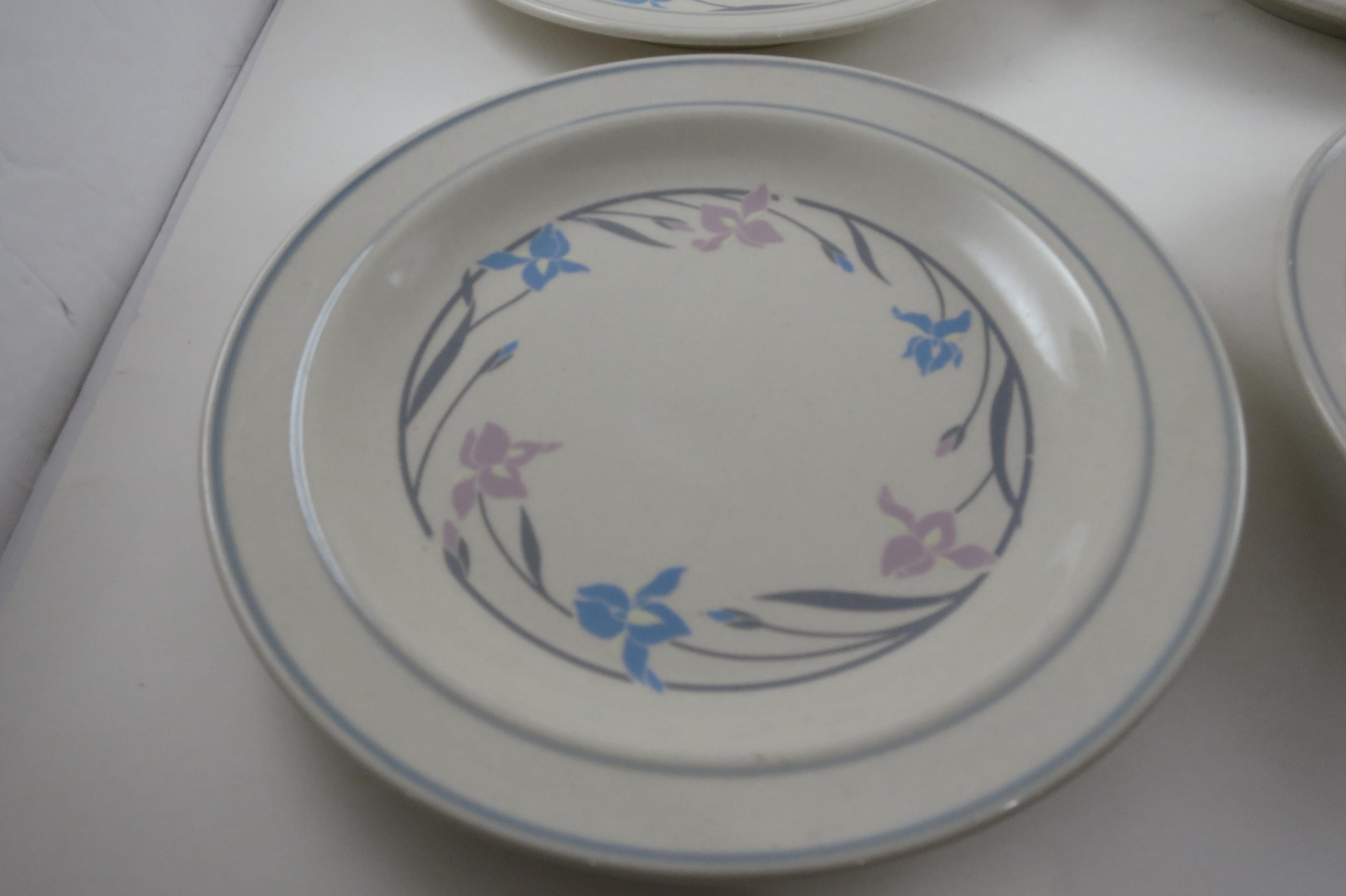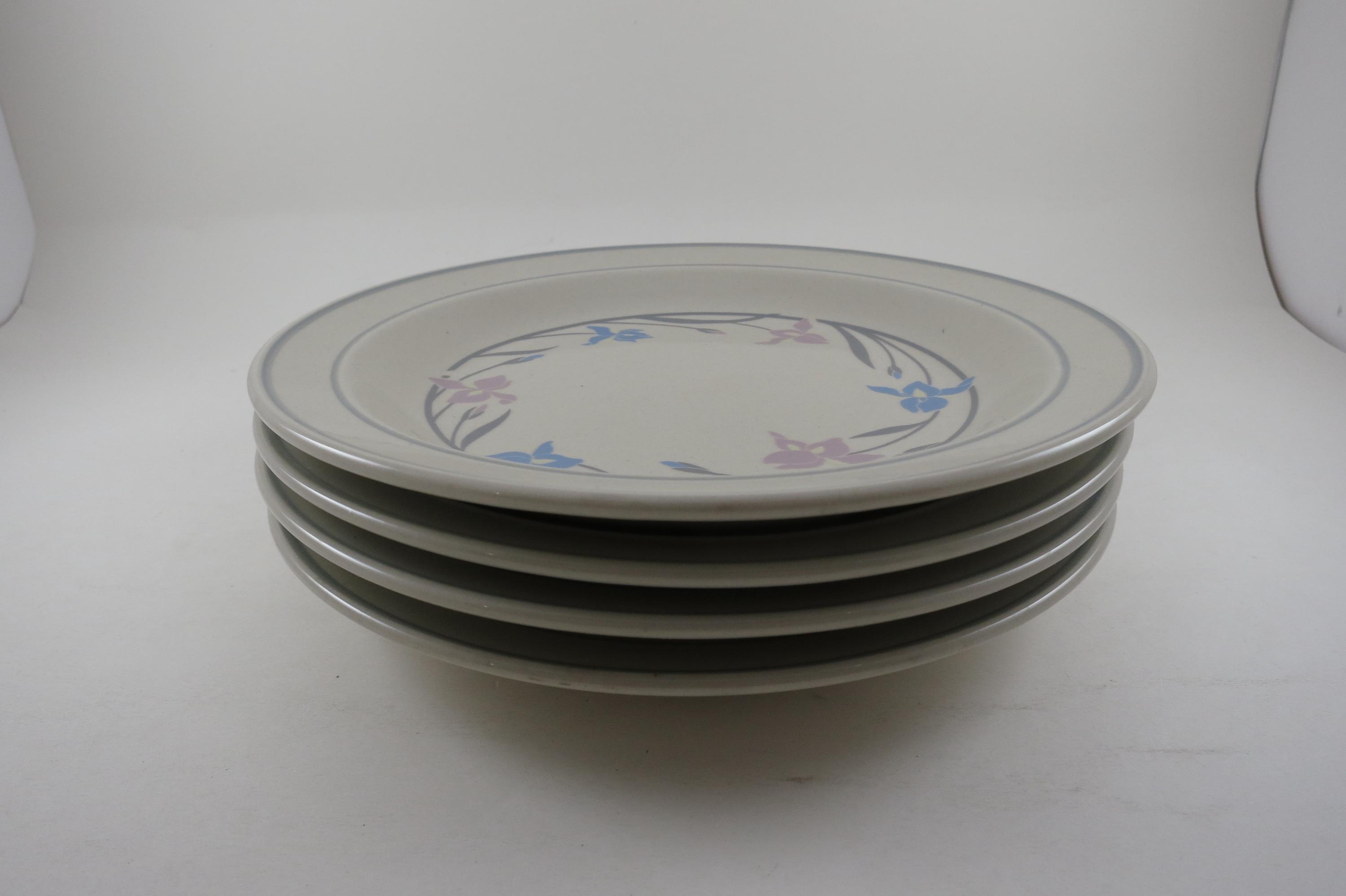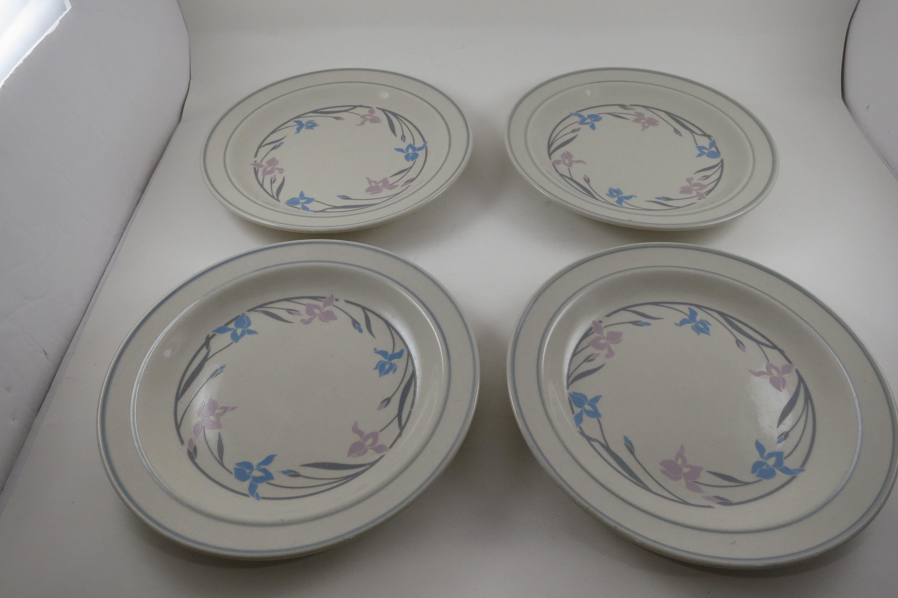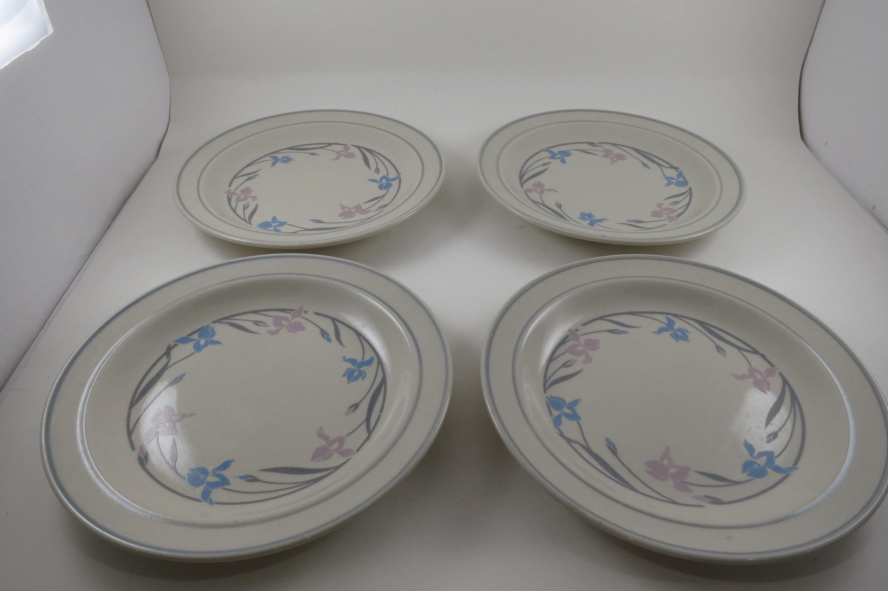 Set of Four Vintage Brick Oven Stoneware Stockholm Pattern 7 3/4 Inch Salad Plates.
