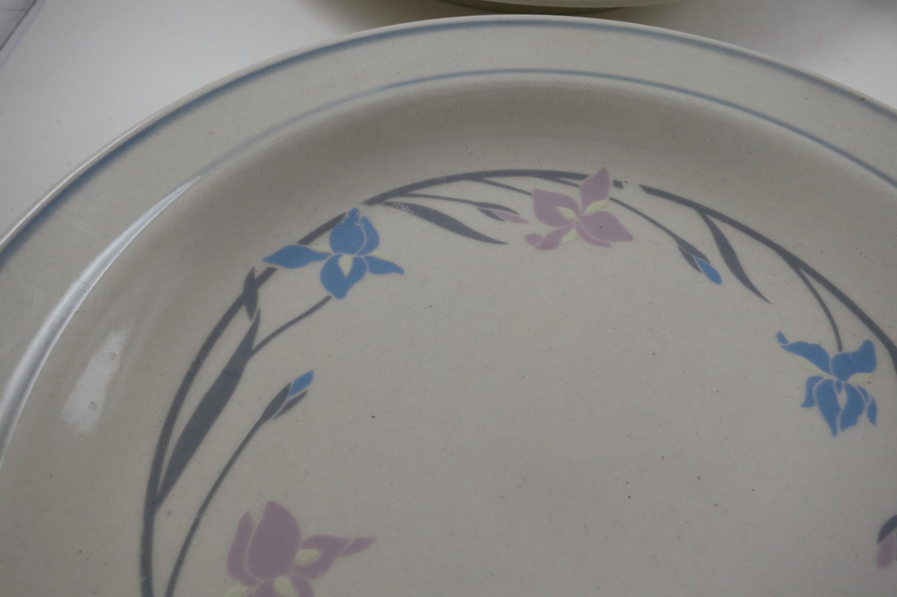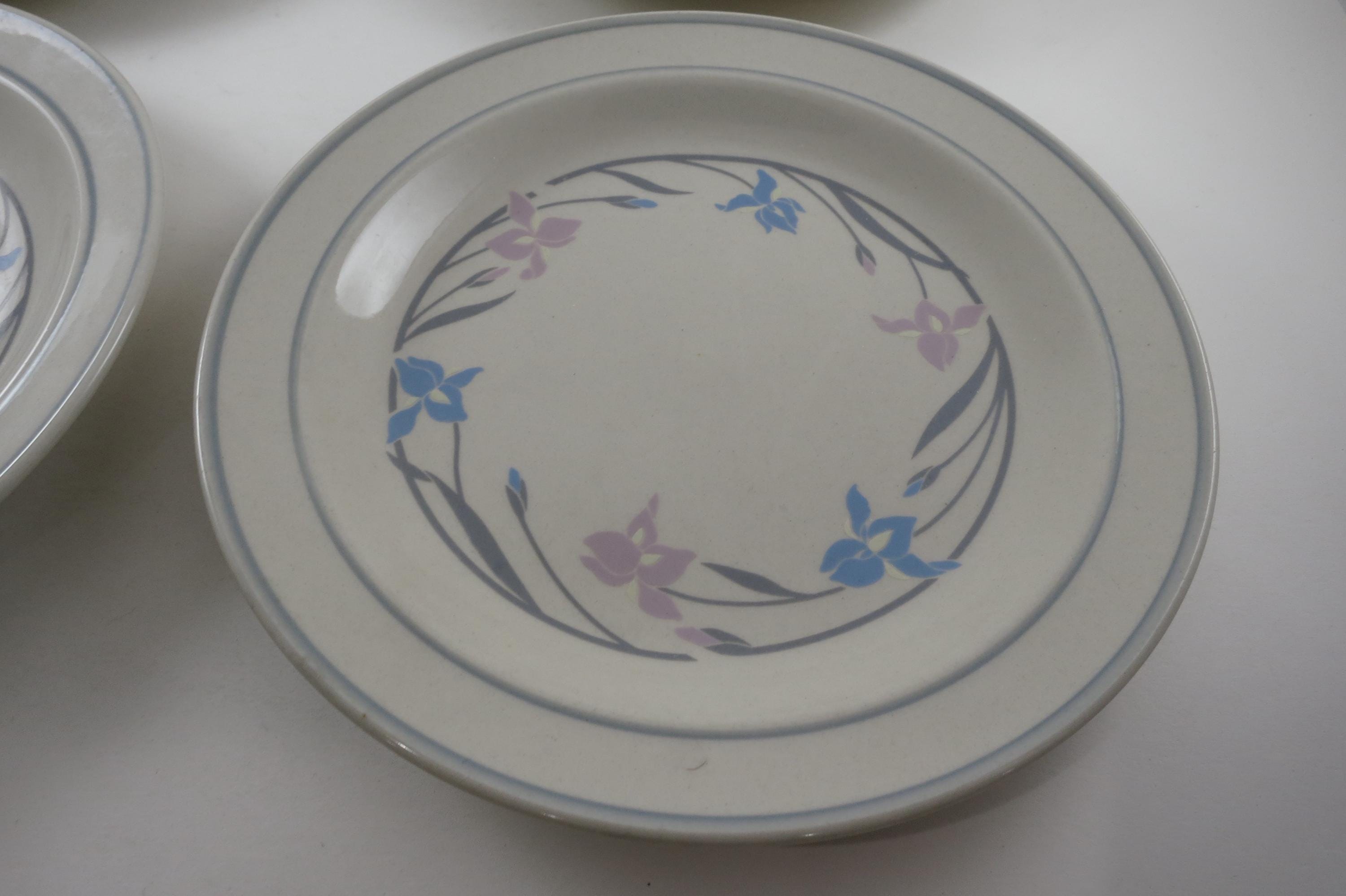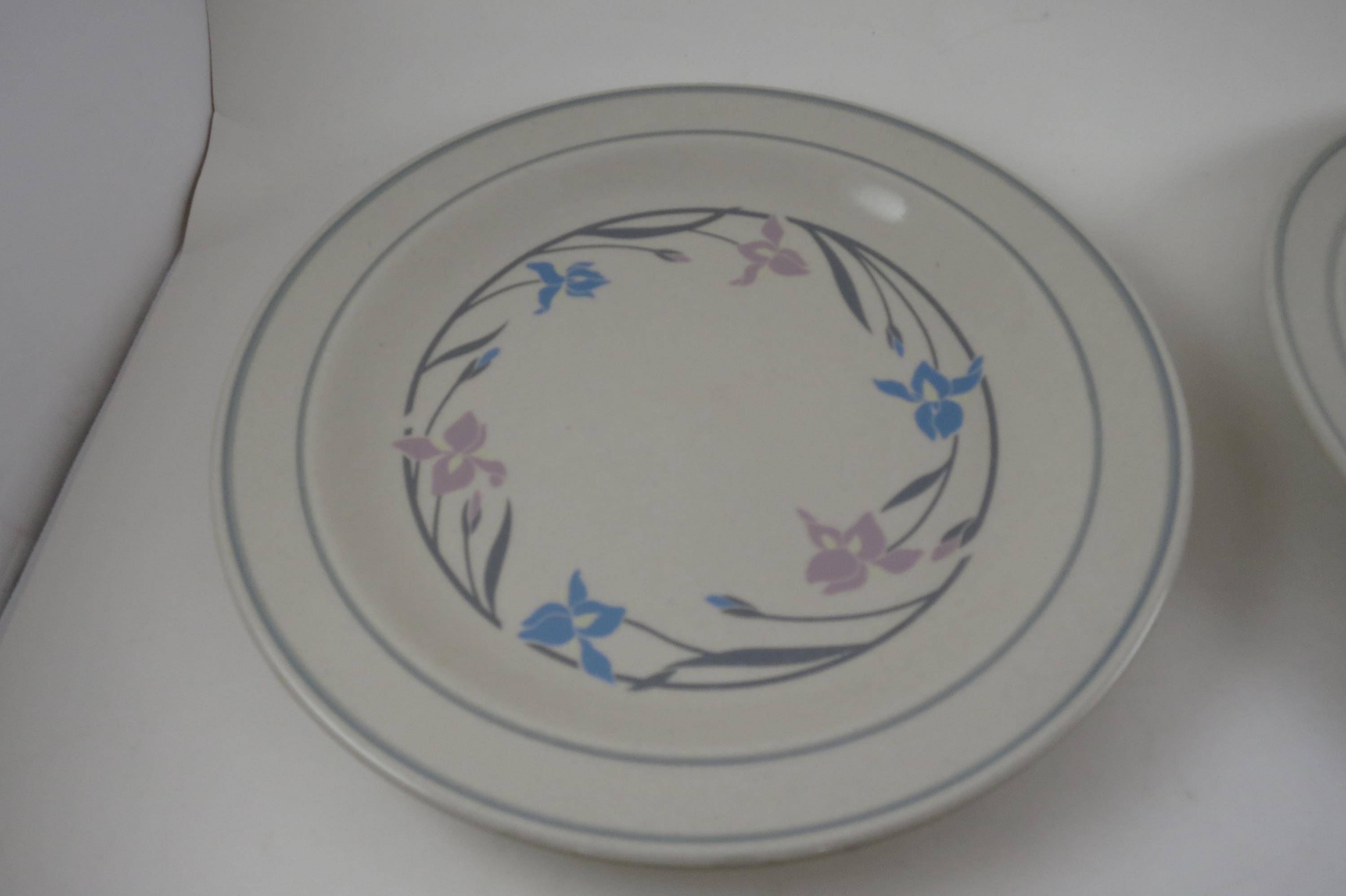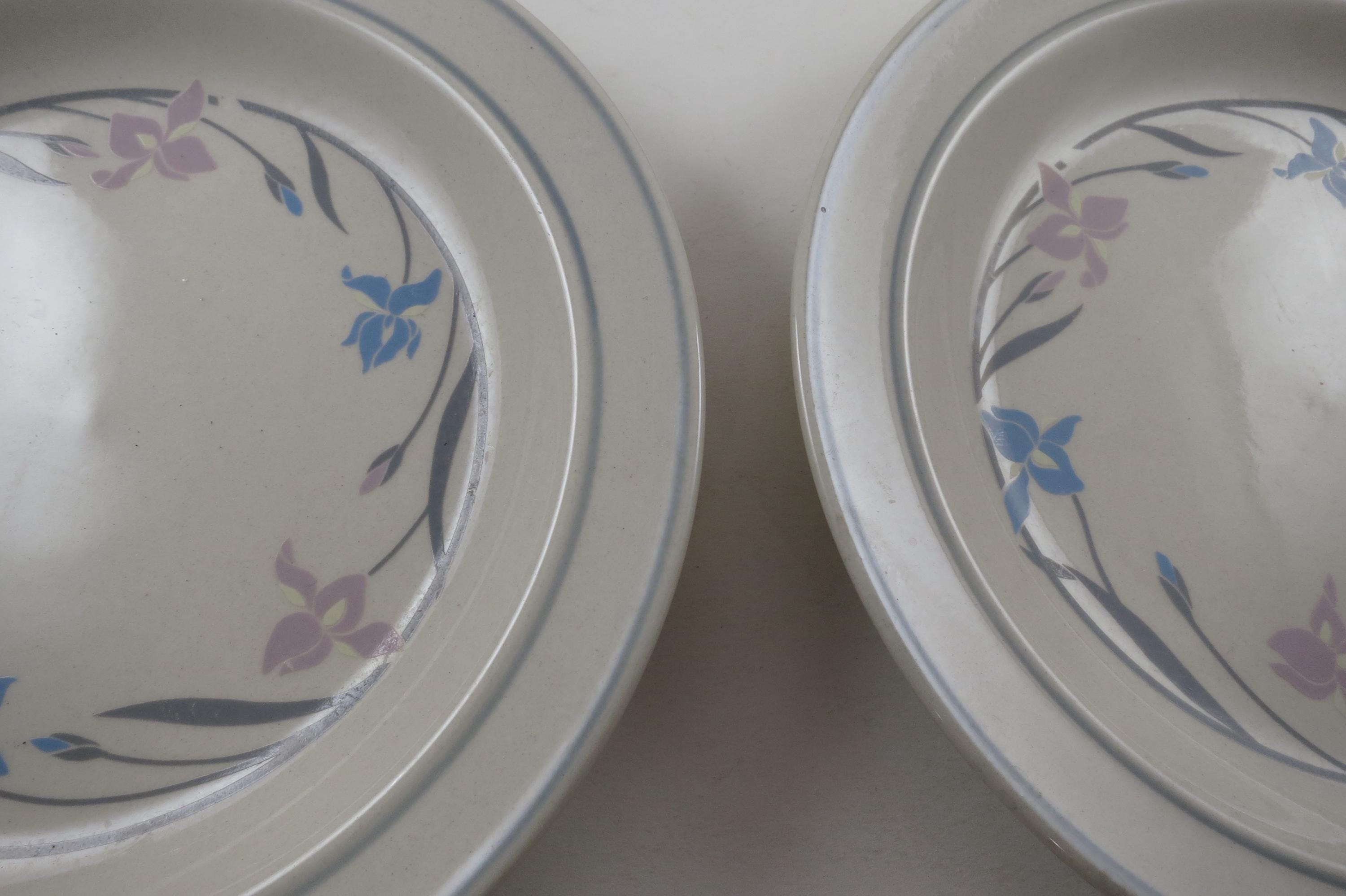 Set of Four Vintage Brick Oven Stoneware Stockholm Pattern 7 3/4 Inch Salad Plates.