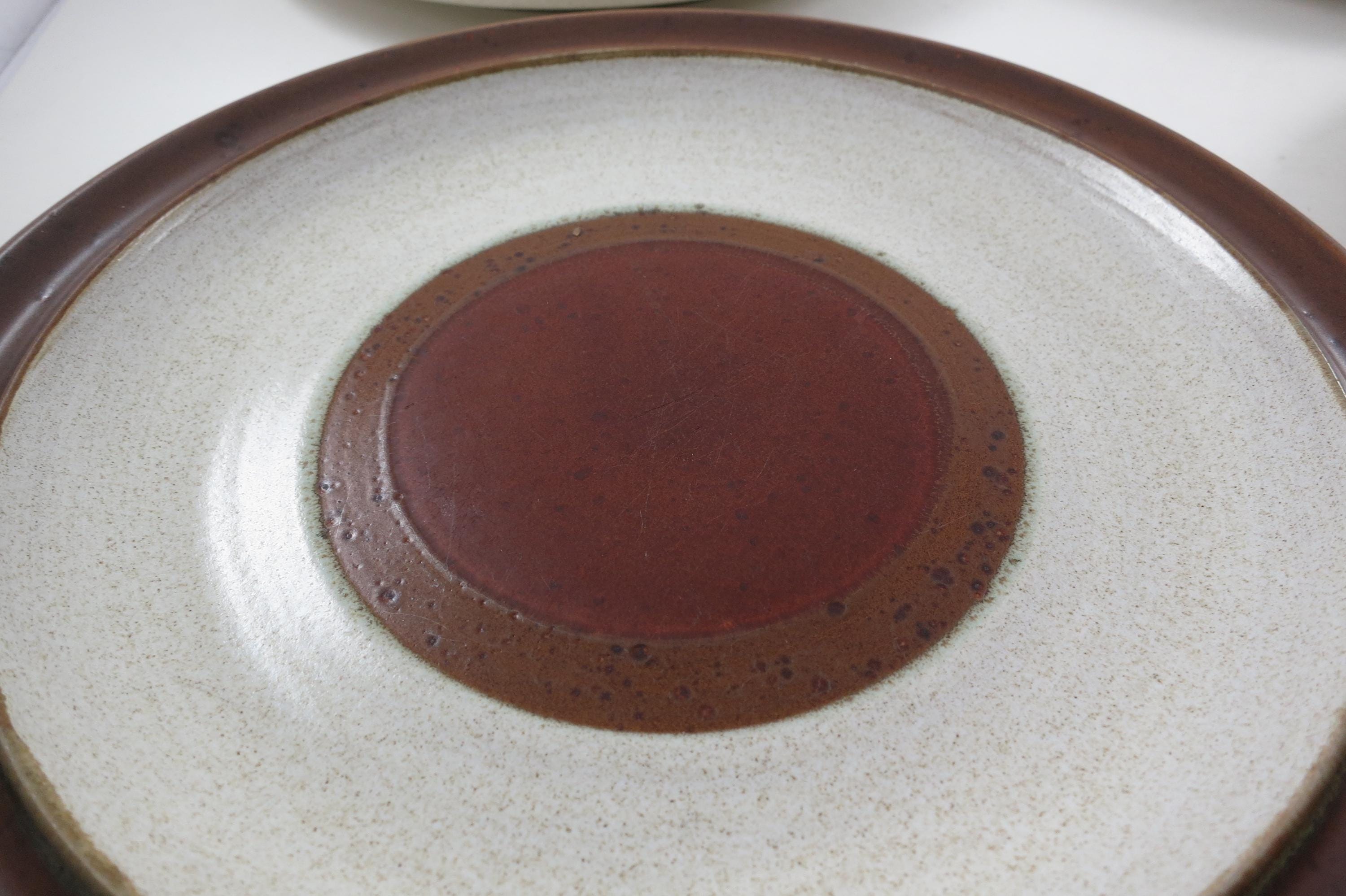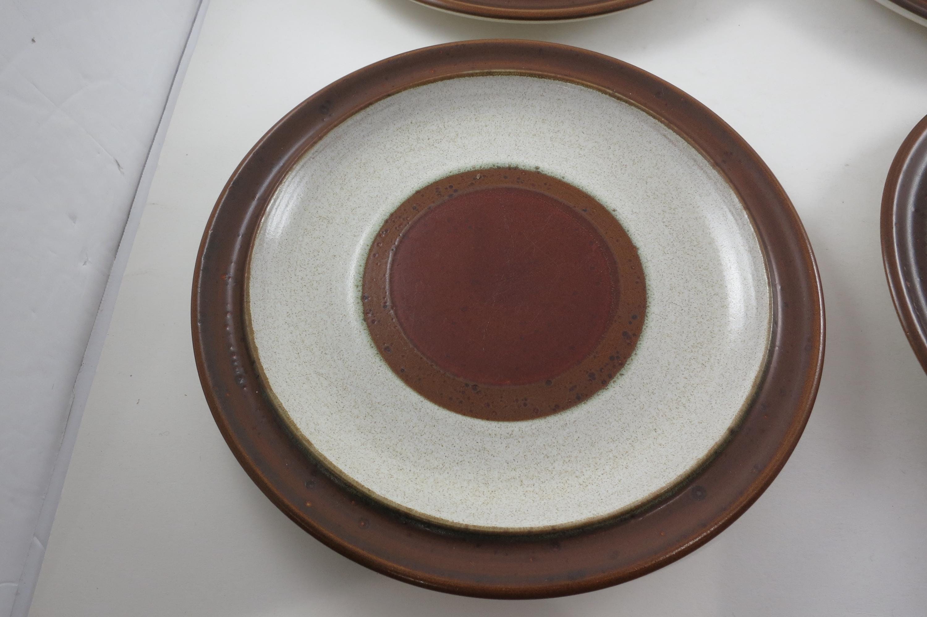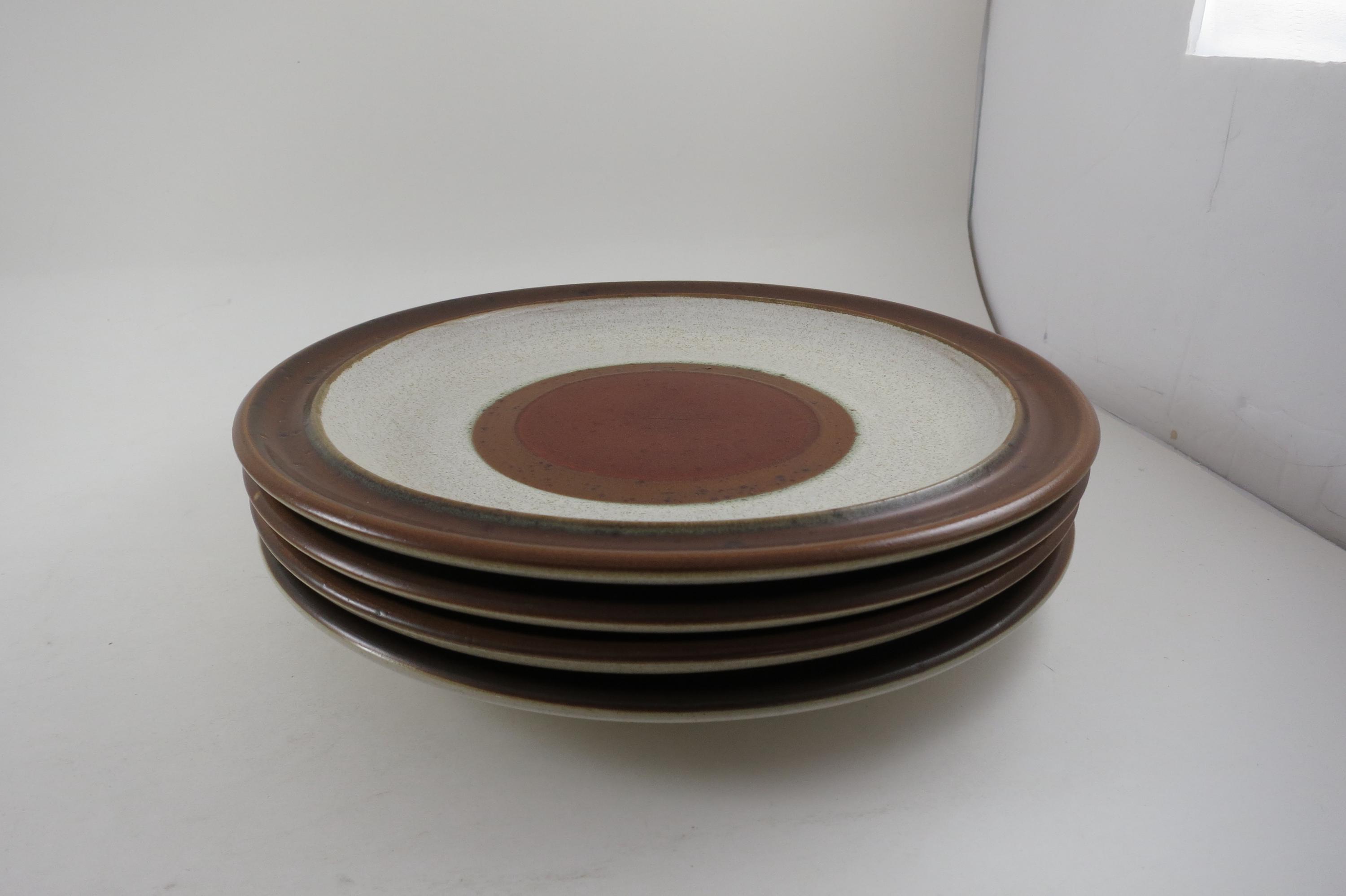 Set of Four Vintage Denby England Rust Red Potters Wheel Stoneware 8 1/4 Inch Salad Plates.