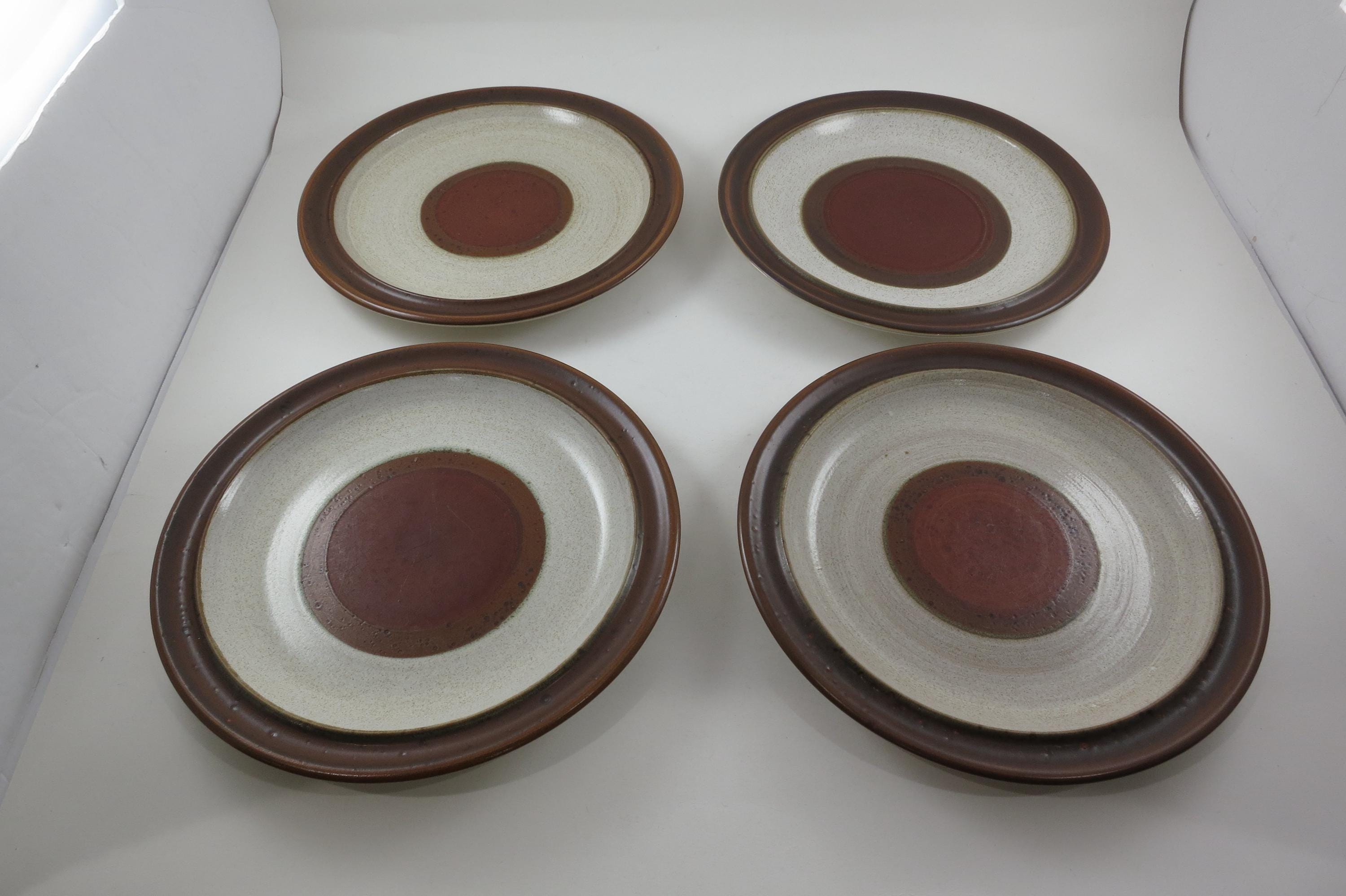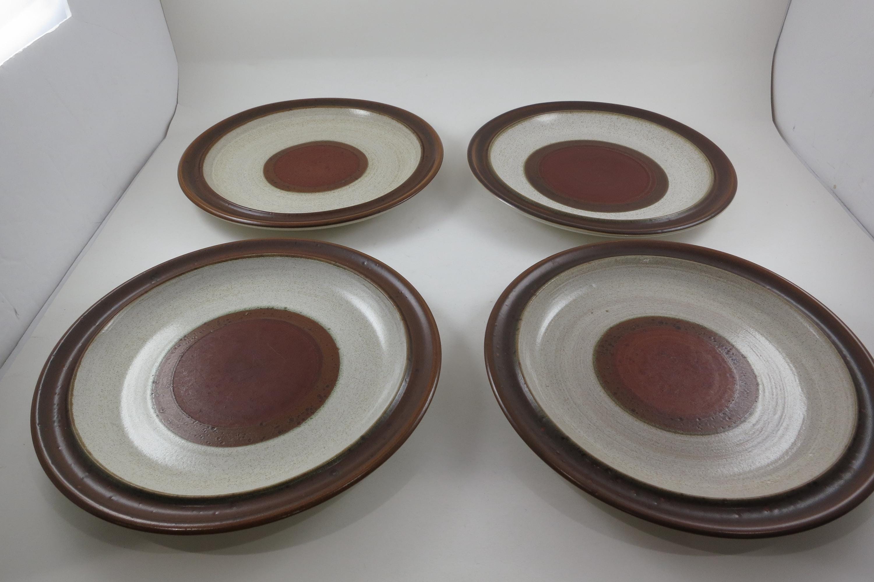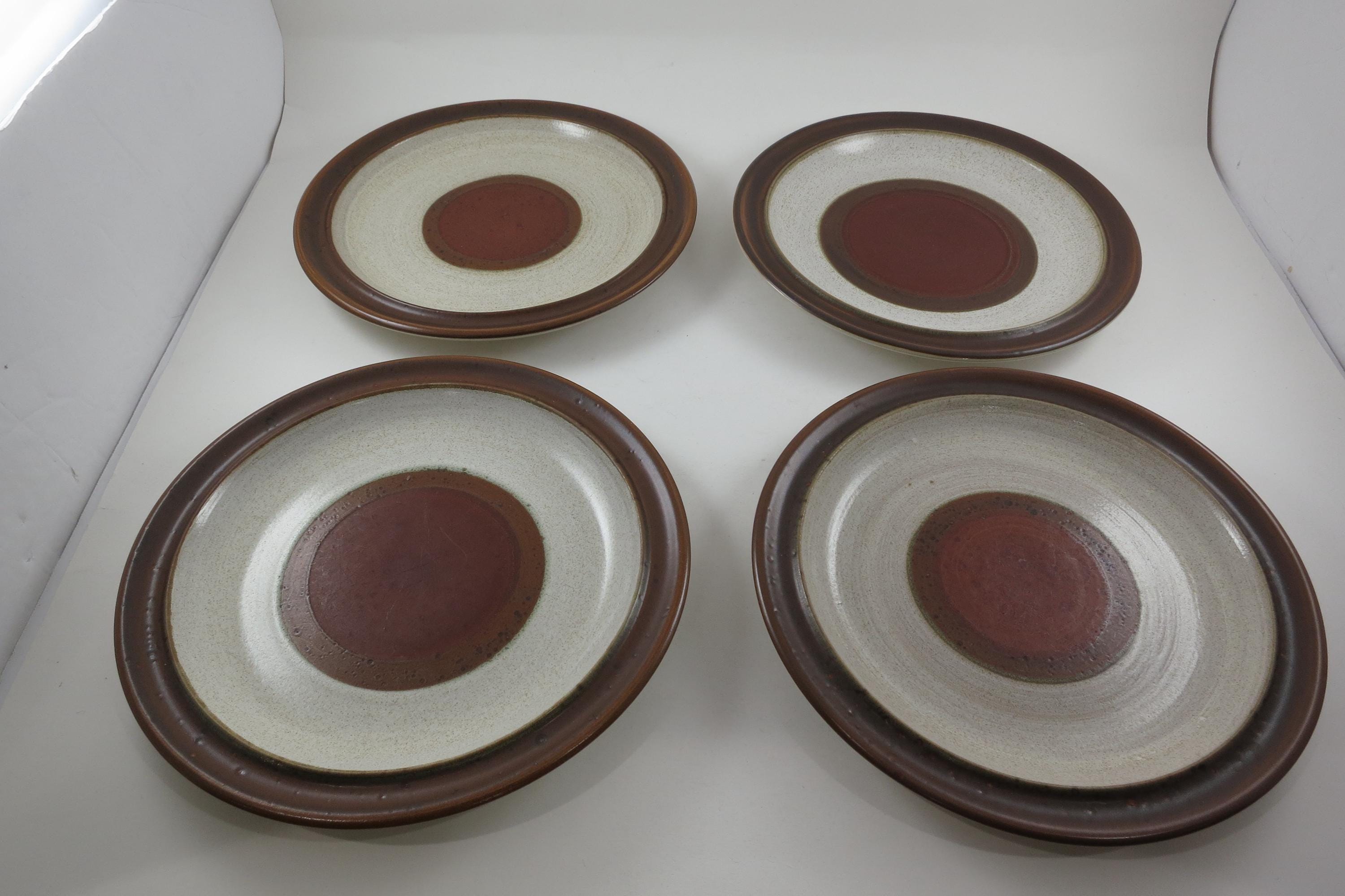 Set of Four Vintage Denby England Rust Red Potters Wheel Stoneware 8 1/4 Inch Salad Plates.