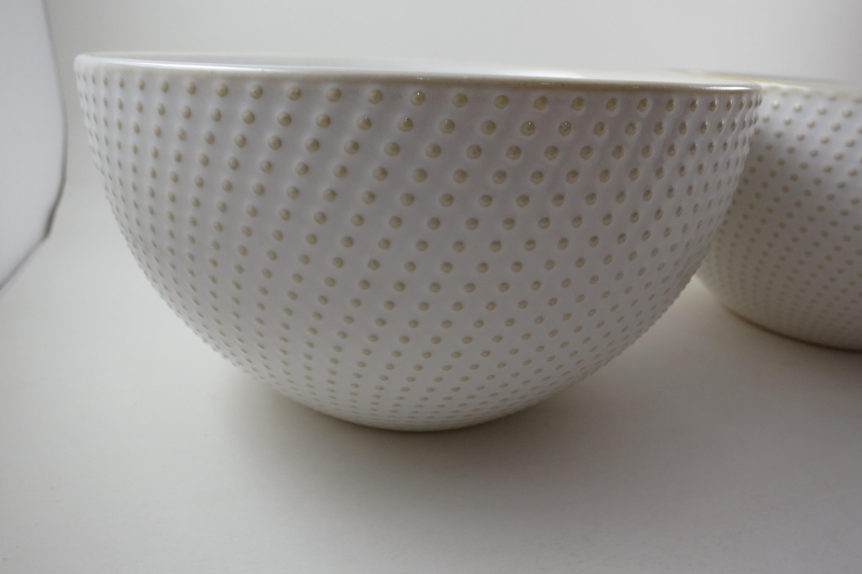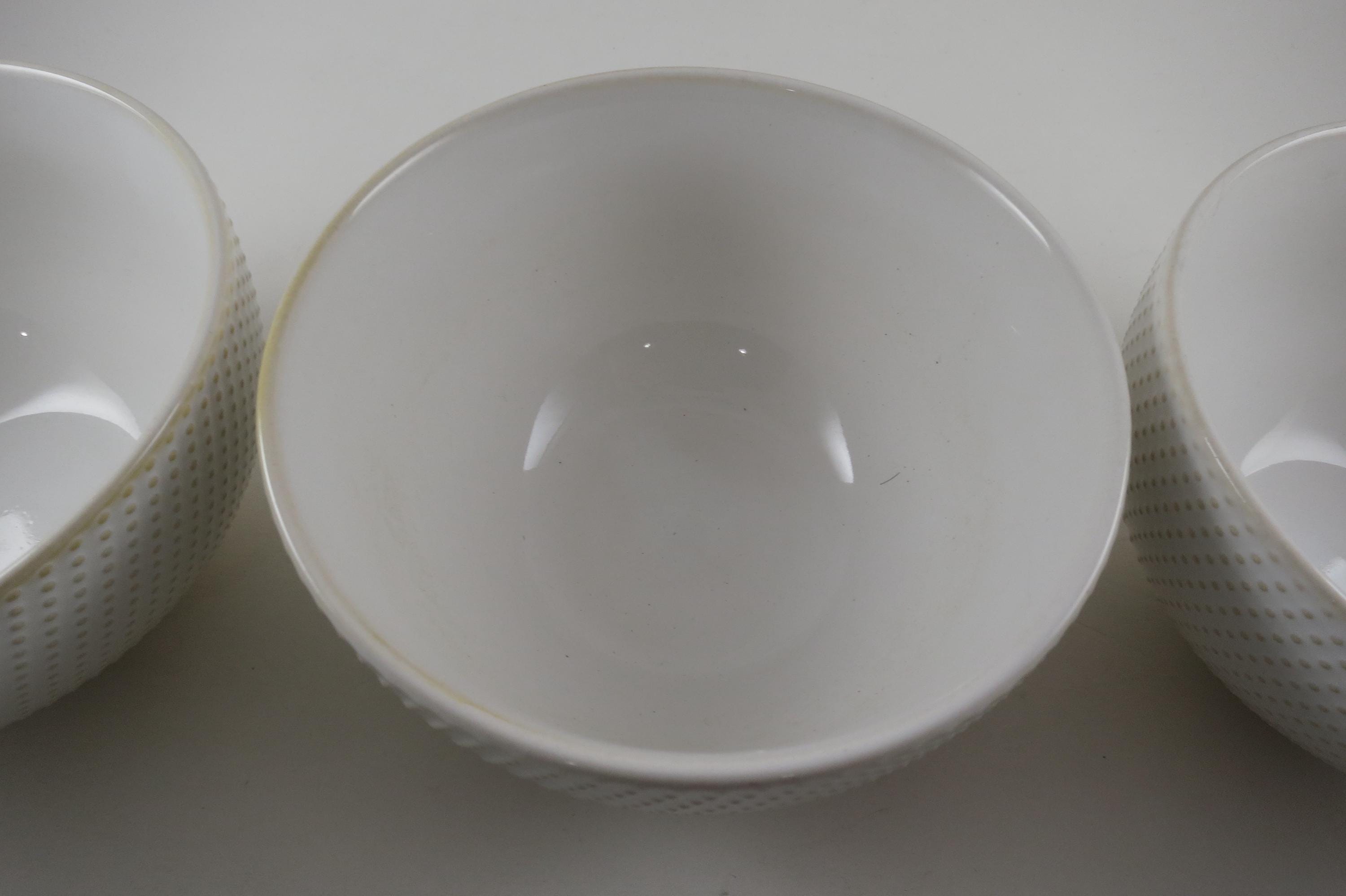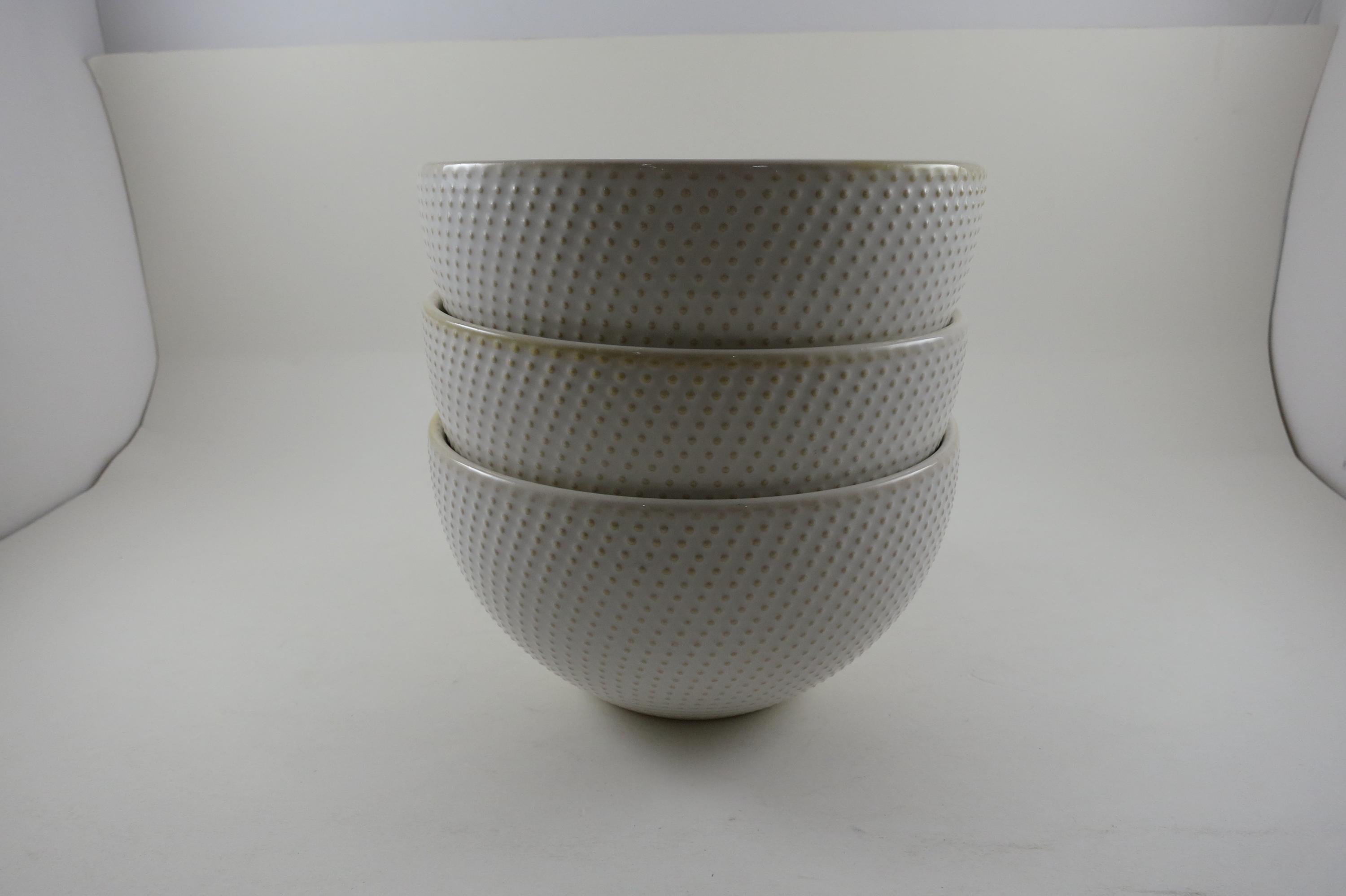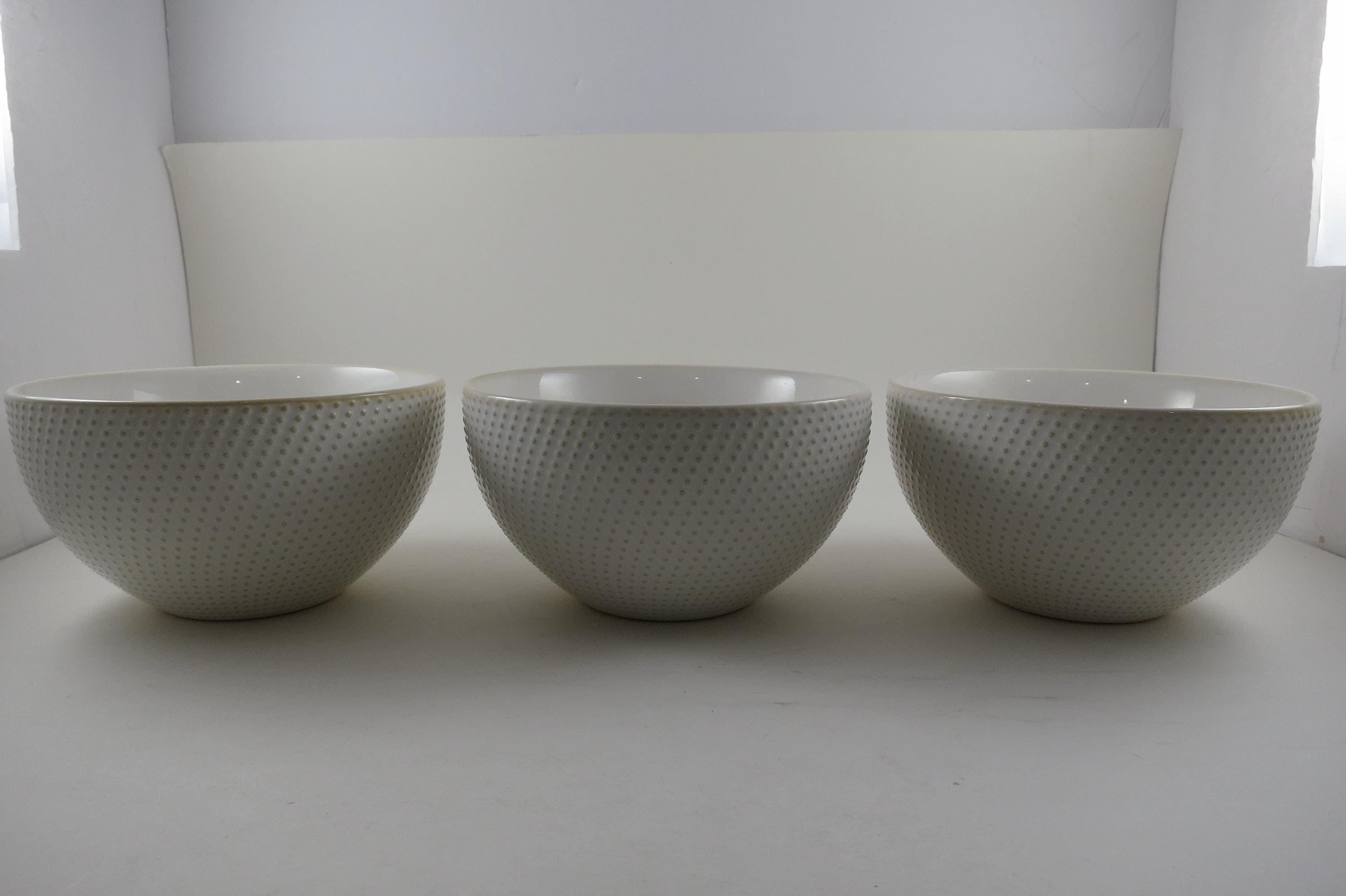Set of Three Vintage West Elm White & Brown Textured 5 1/2 Inch Soup Bowls.