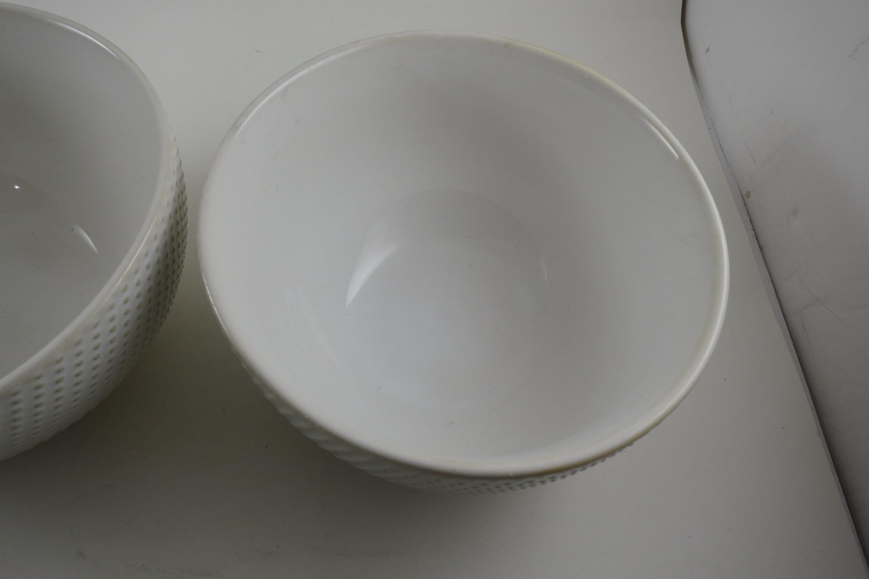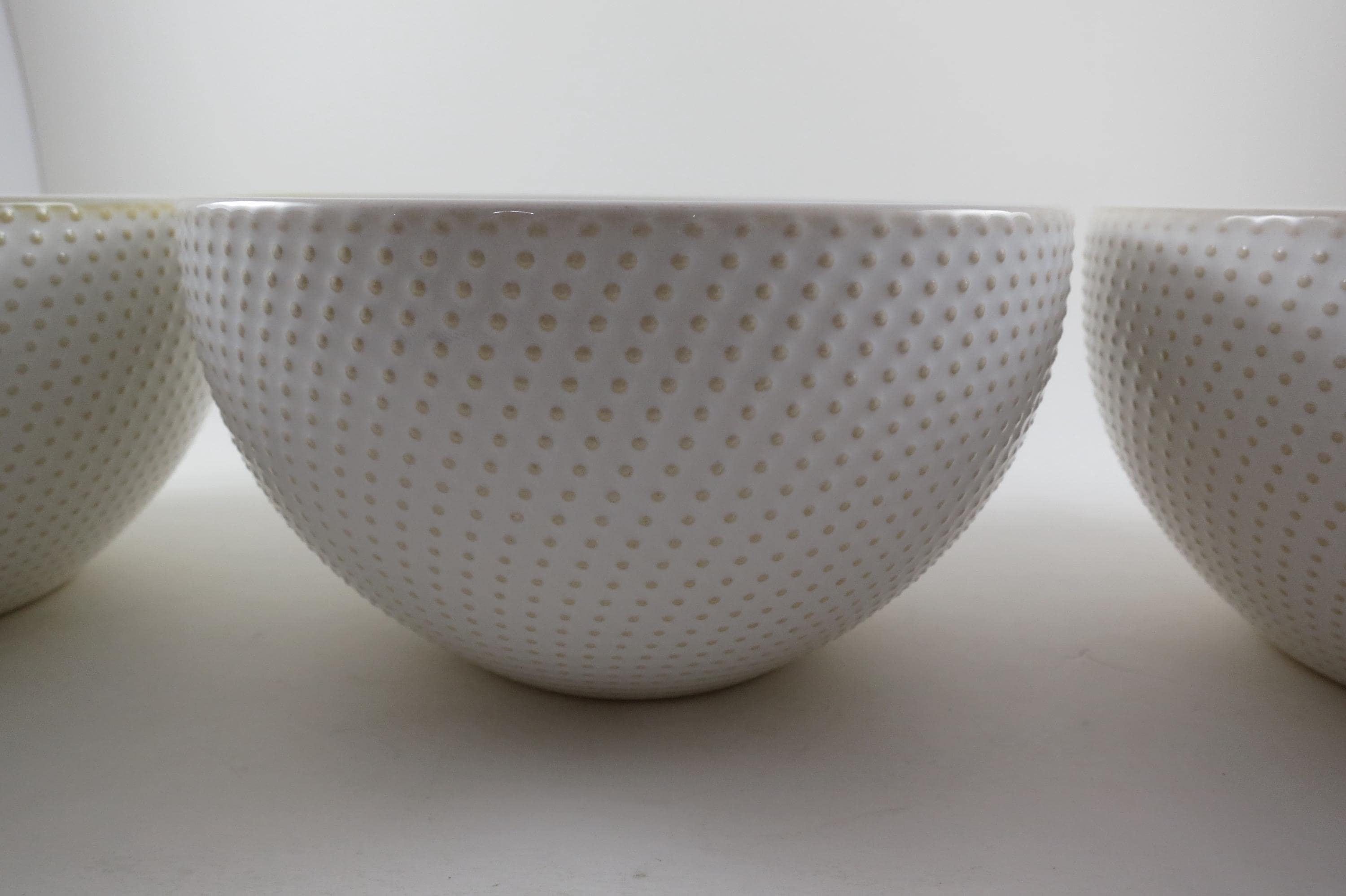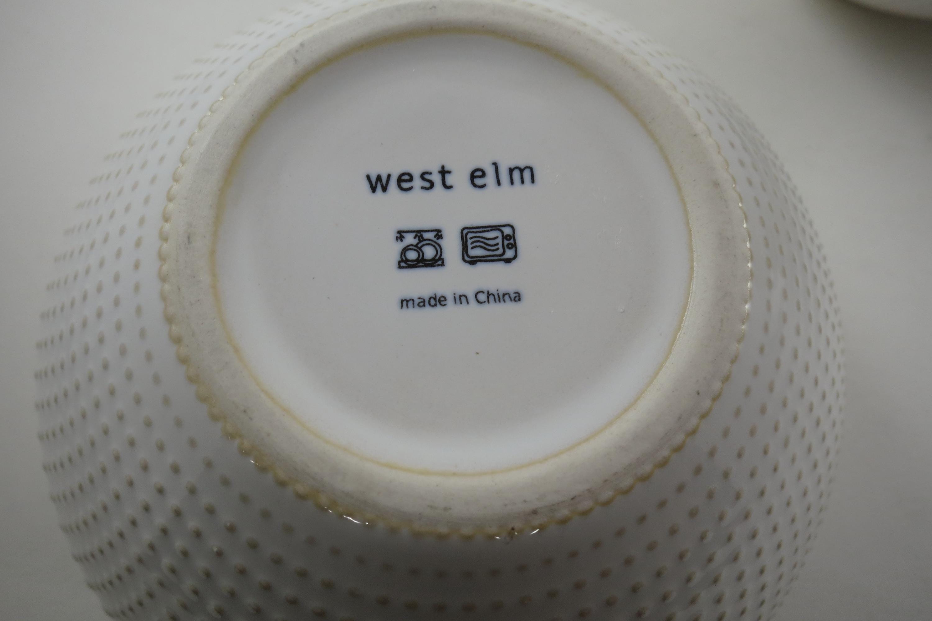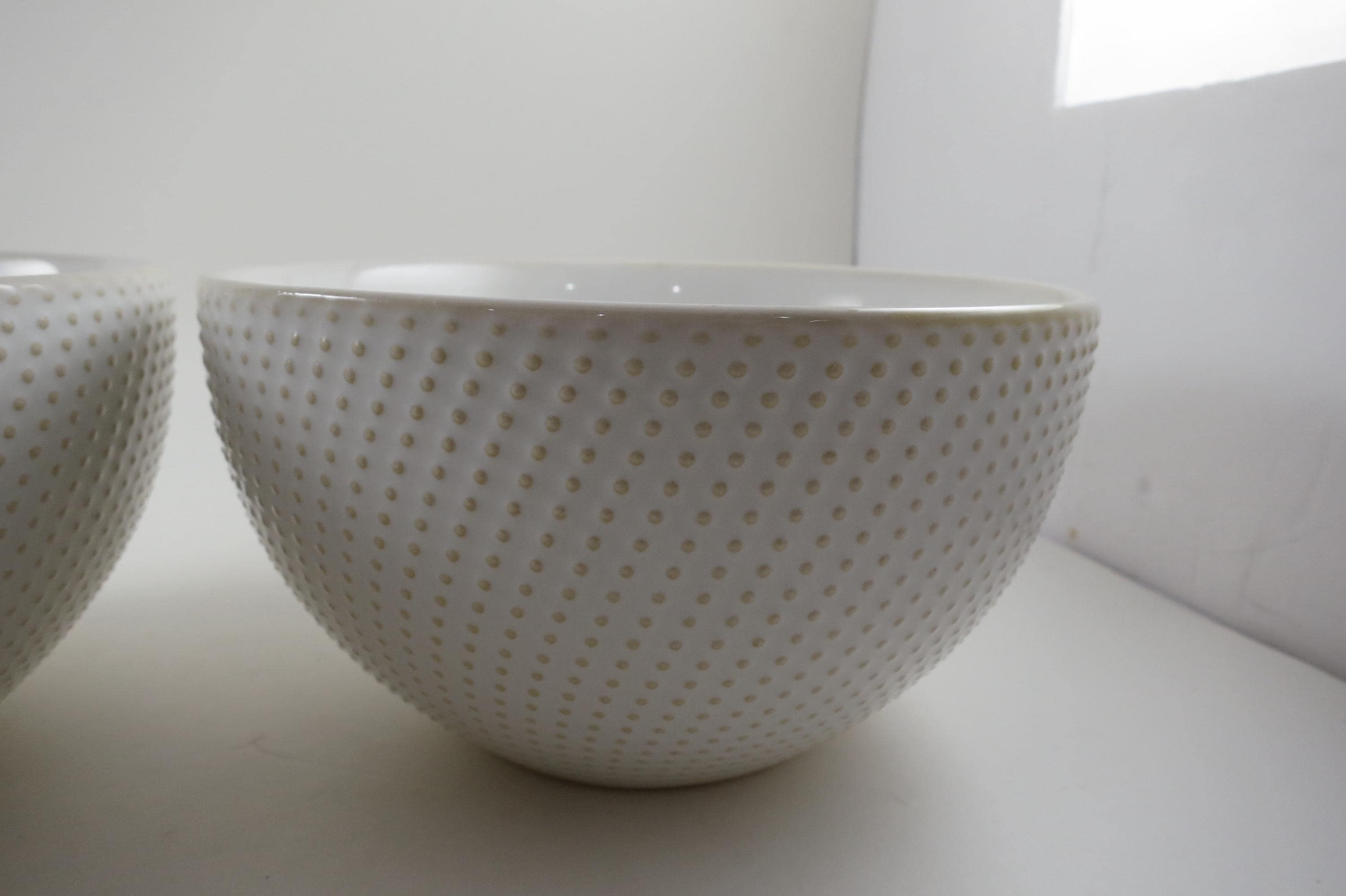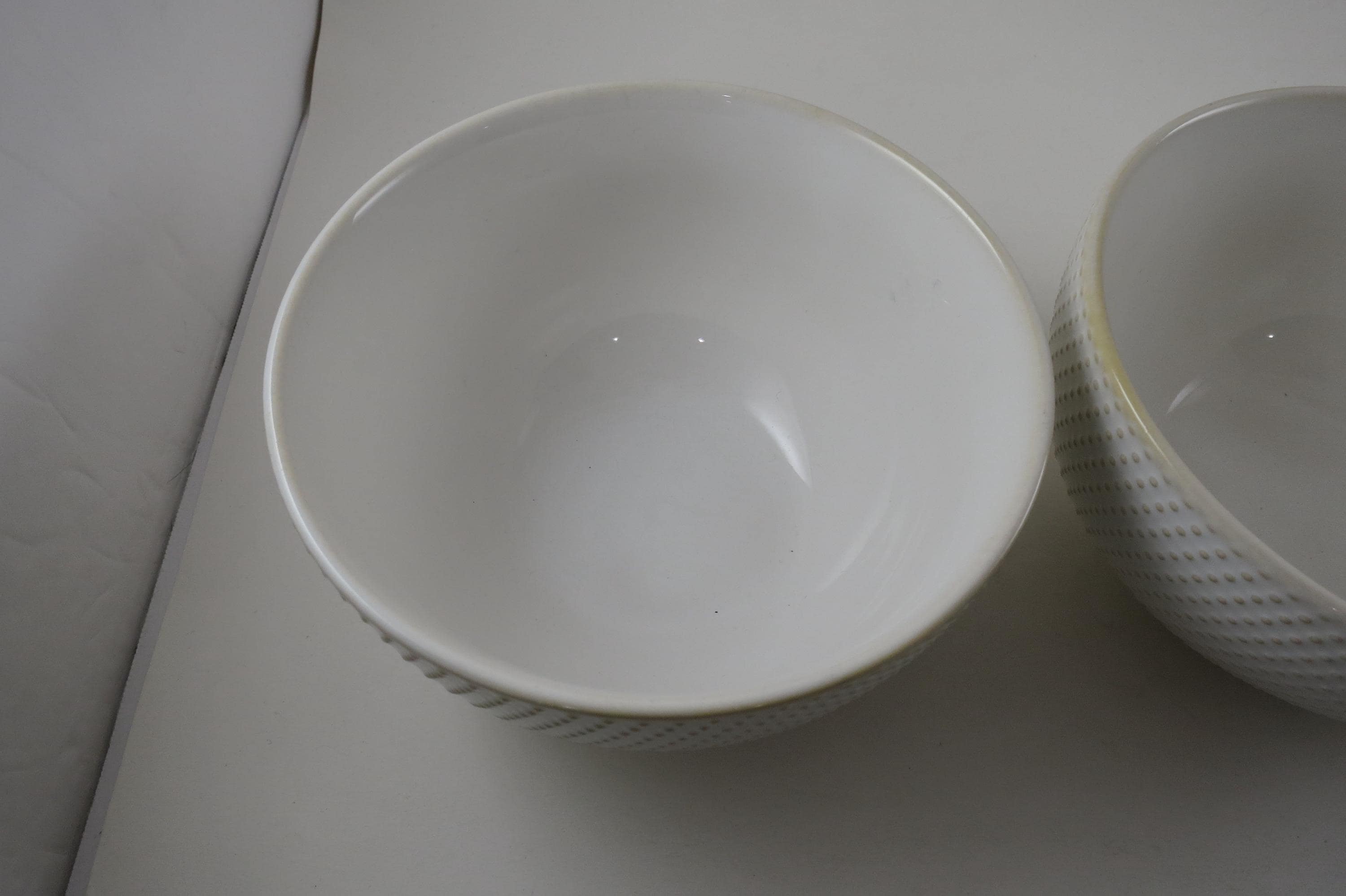 Set of Three Vintage West Elm White & Brown Textured 5 1/2 Inch Soup Bowls.