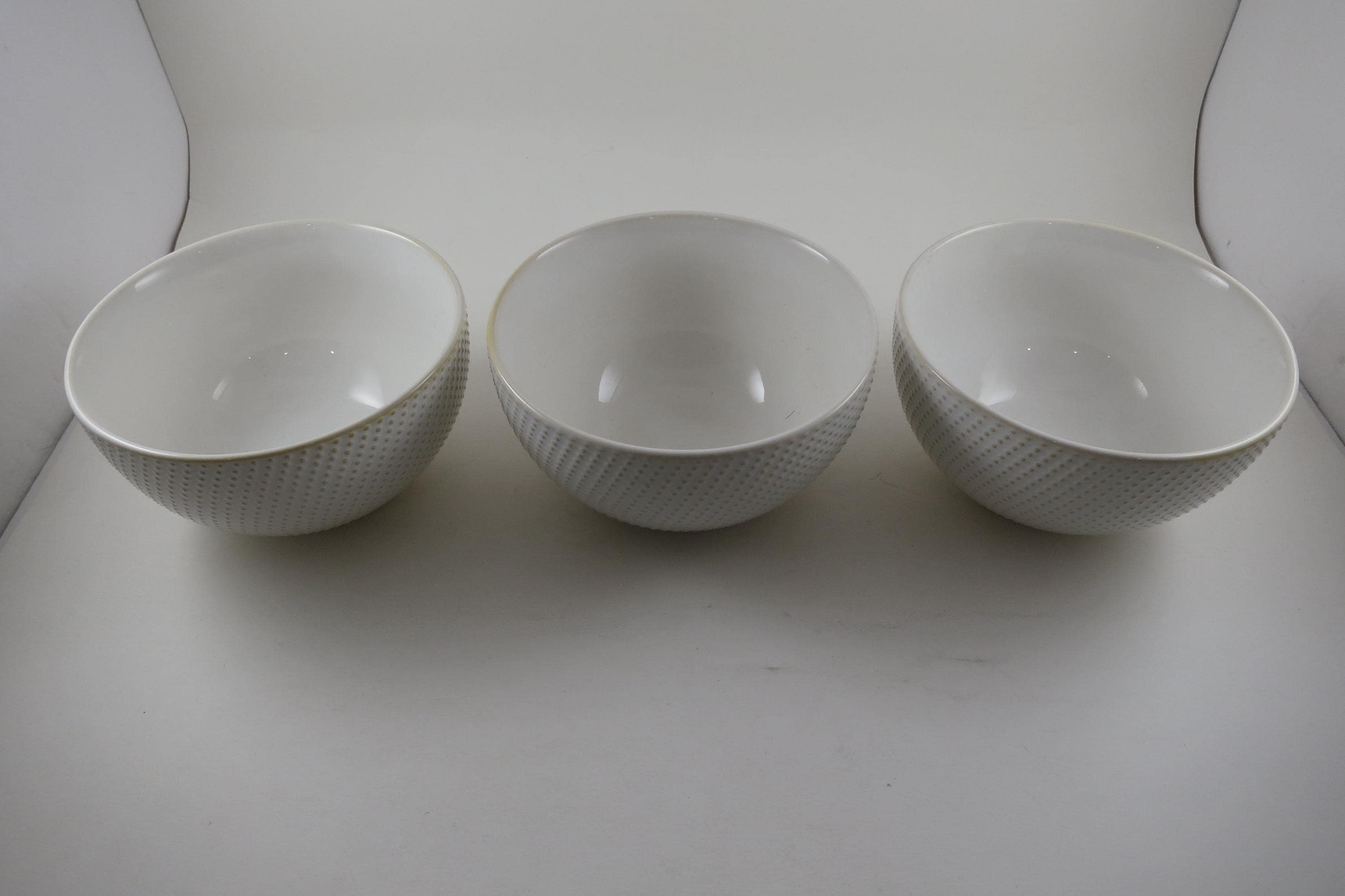 All three are in excellent condition with no chips, cracks or damages. You are purchasing 3 Soup Bowls. We have 2 sets of 3 available.