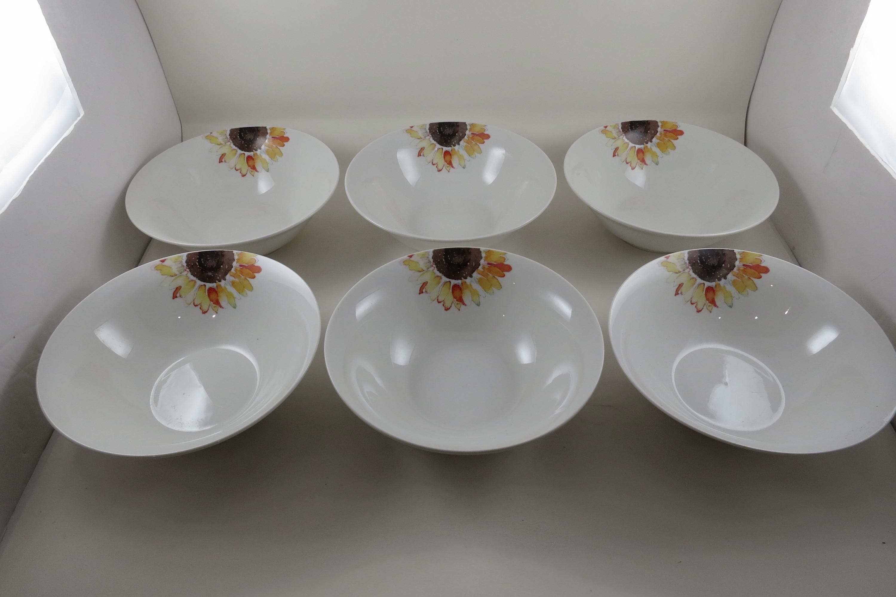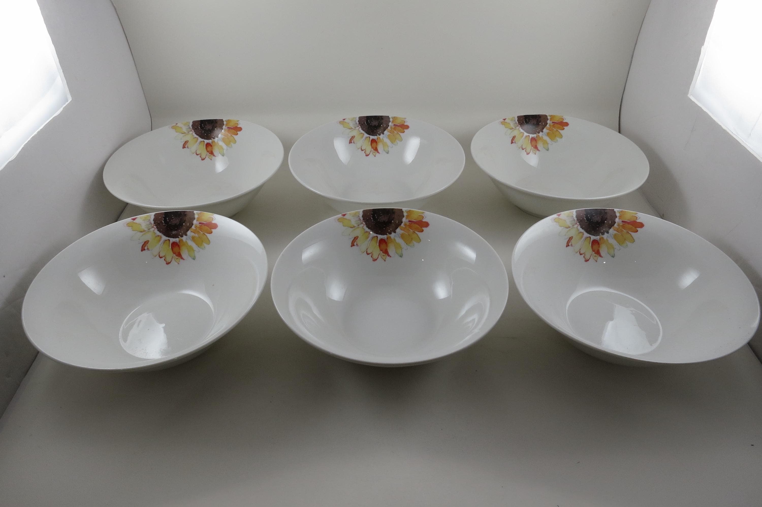 Set of Six Vintage Sonoma Life Style Sunflower Pattern 7 Inch Soup Bowls