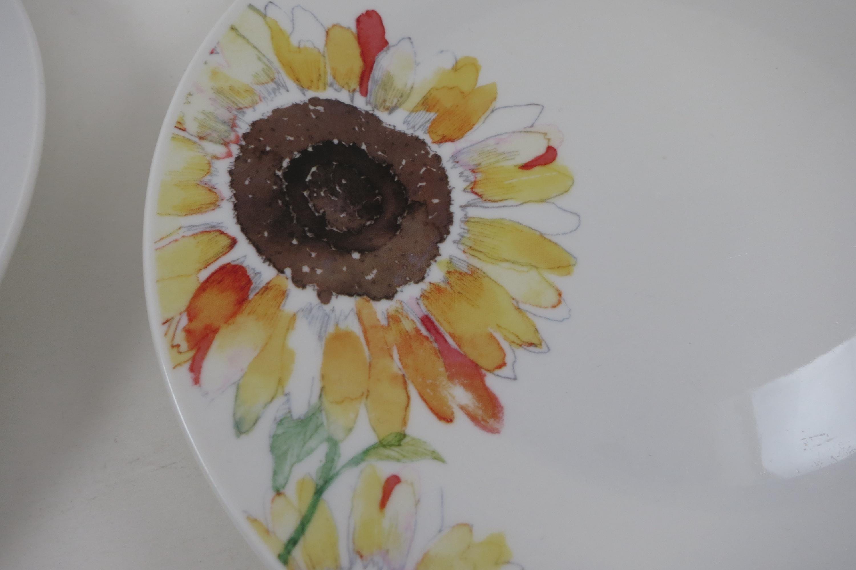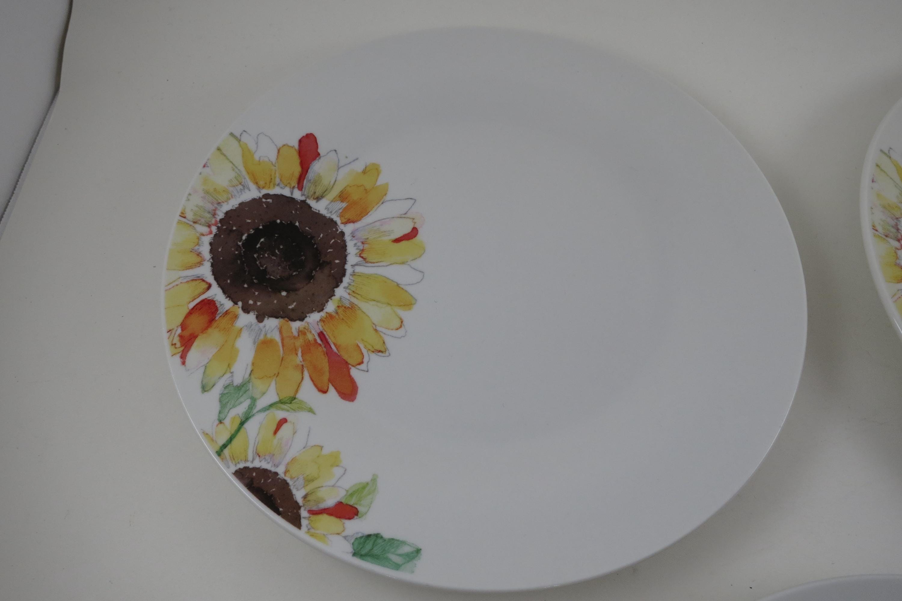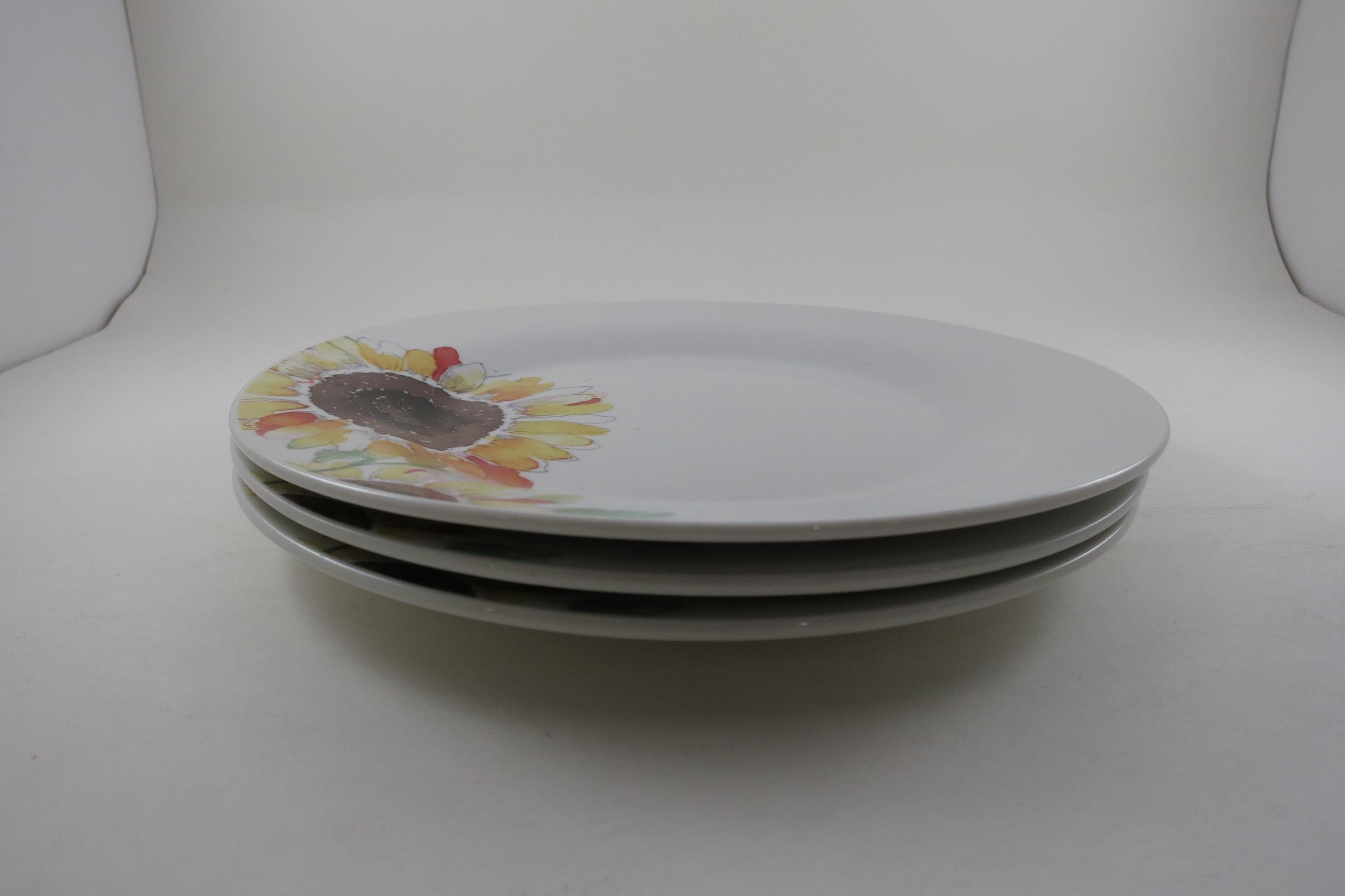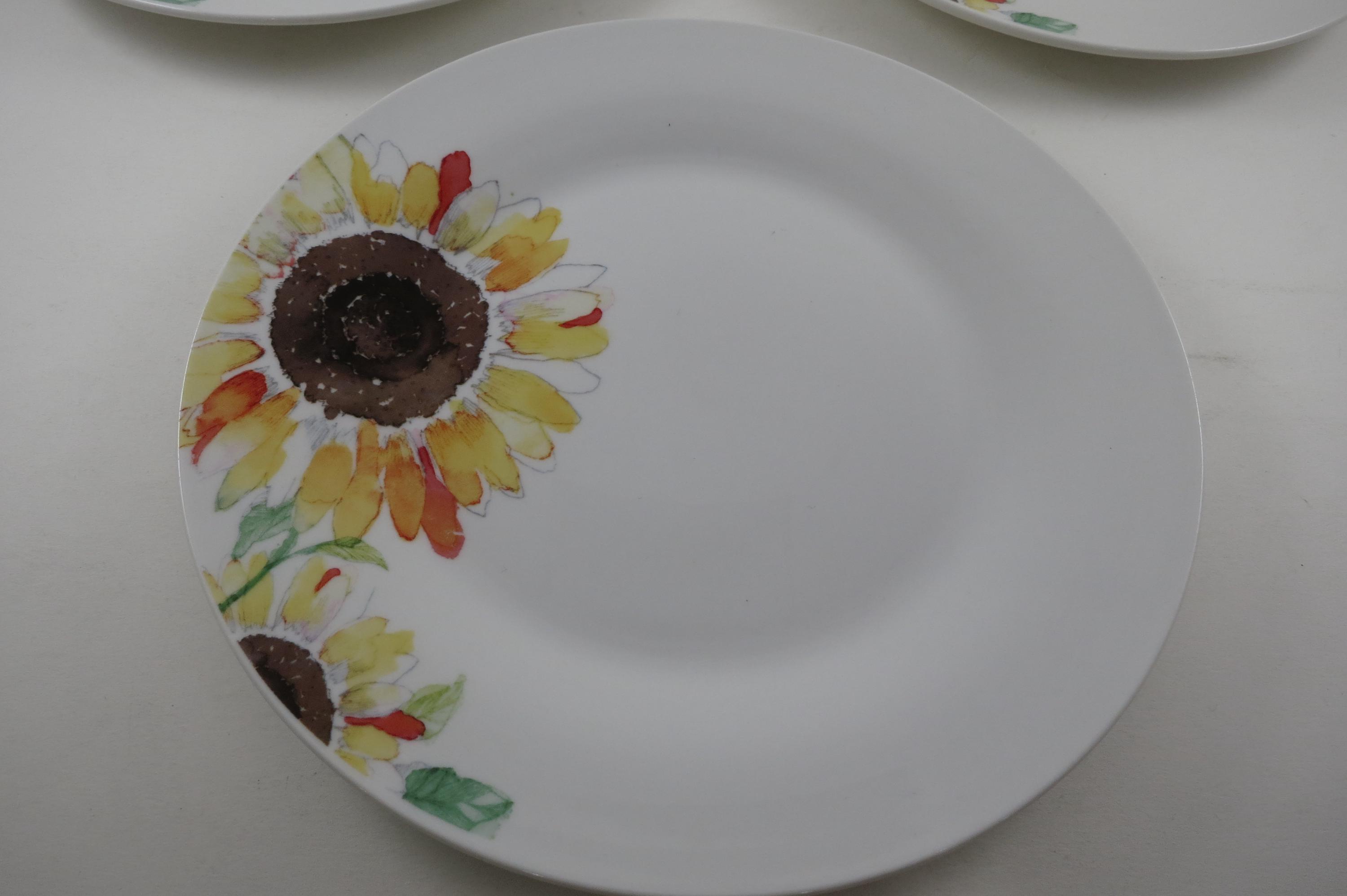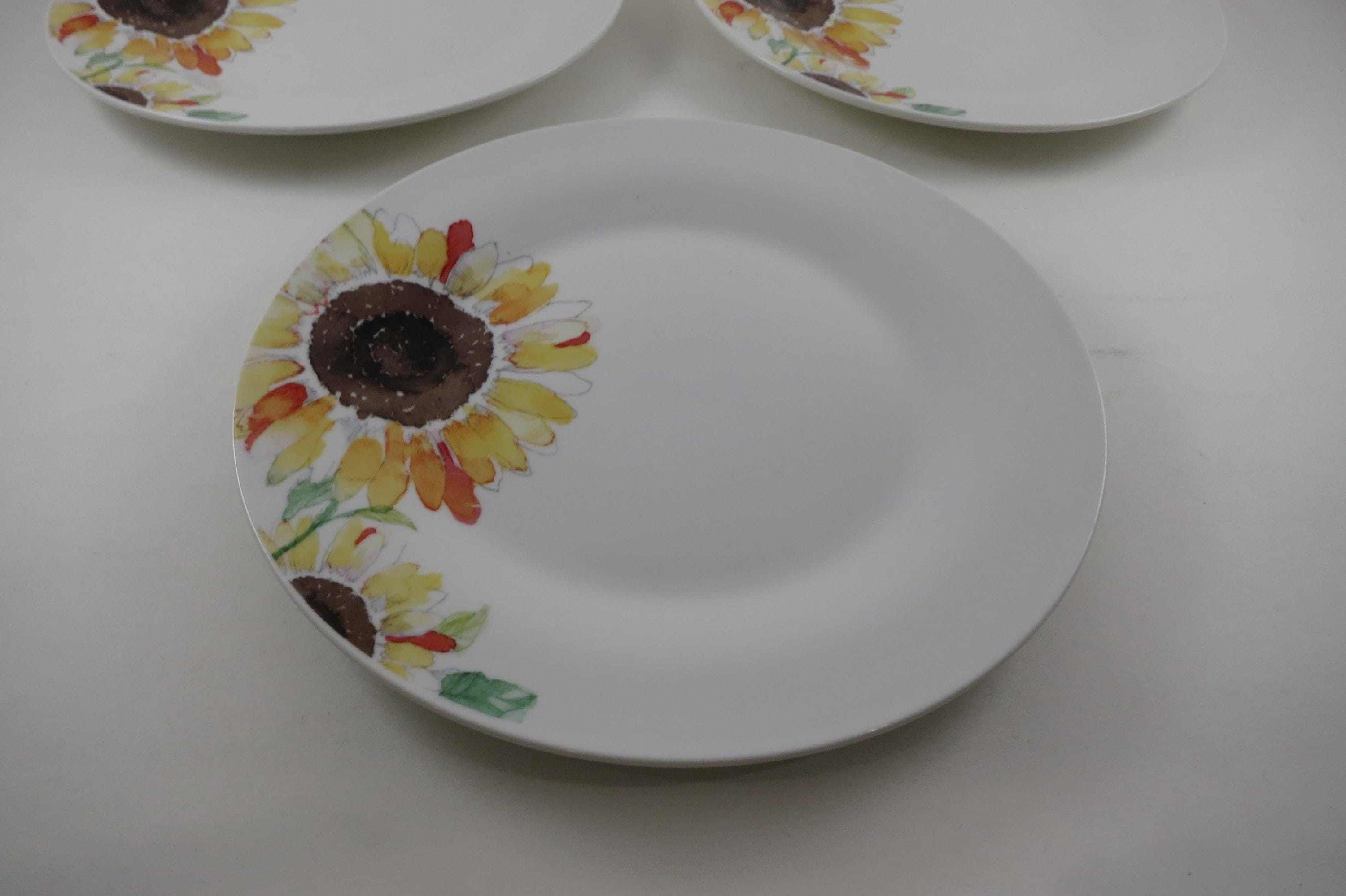Set of Four Vintage Sonoma Life Style Sunflower Pattern 7 1/2 Inch Salad Plates.