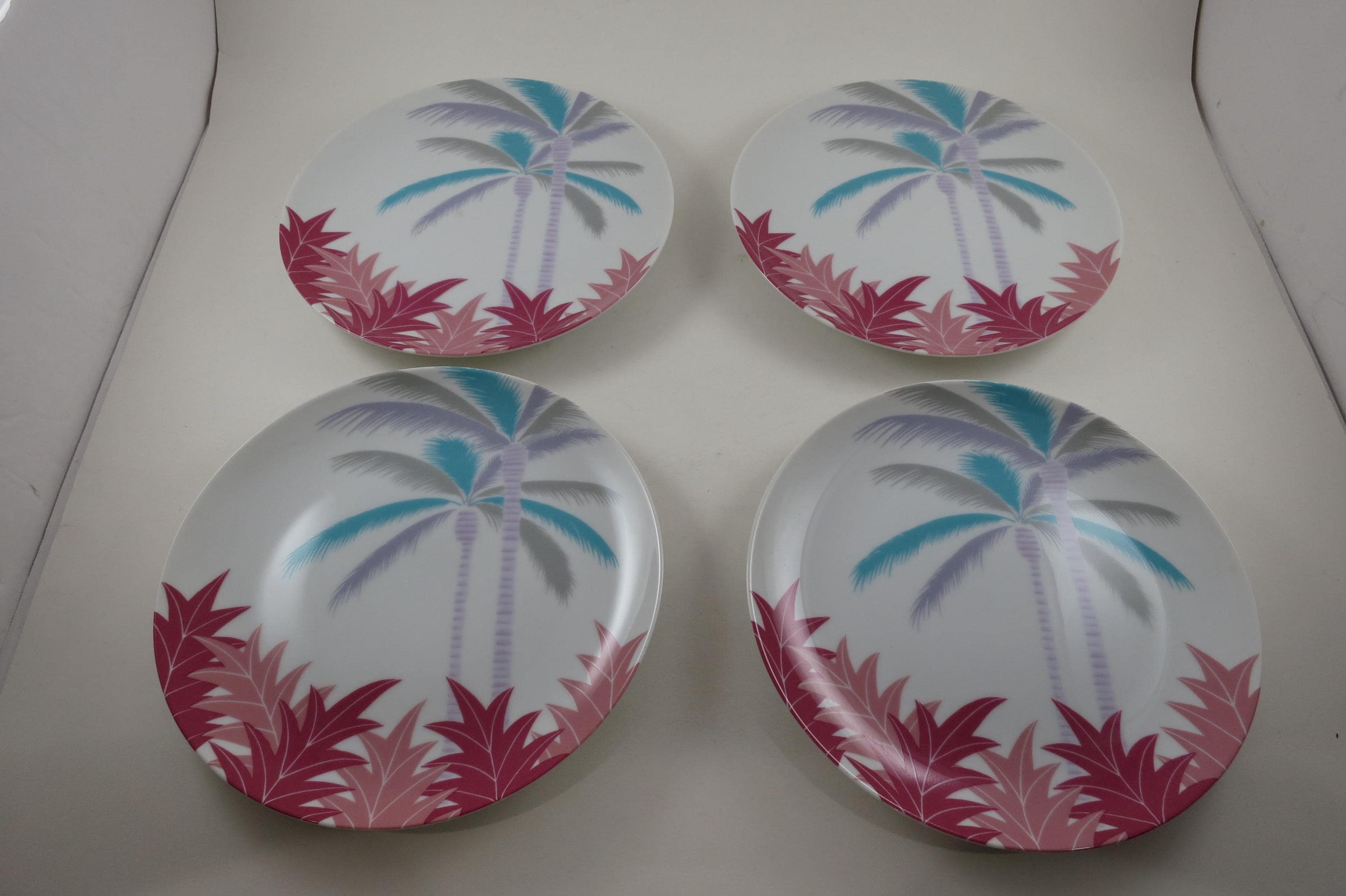 Set of 4 Vintage Fitz & Floyd Porcelain Las Palmas 29S Salad Plates. They measure 7 5/8 Inches Diameter.