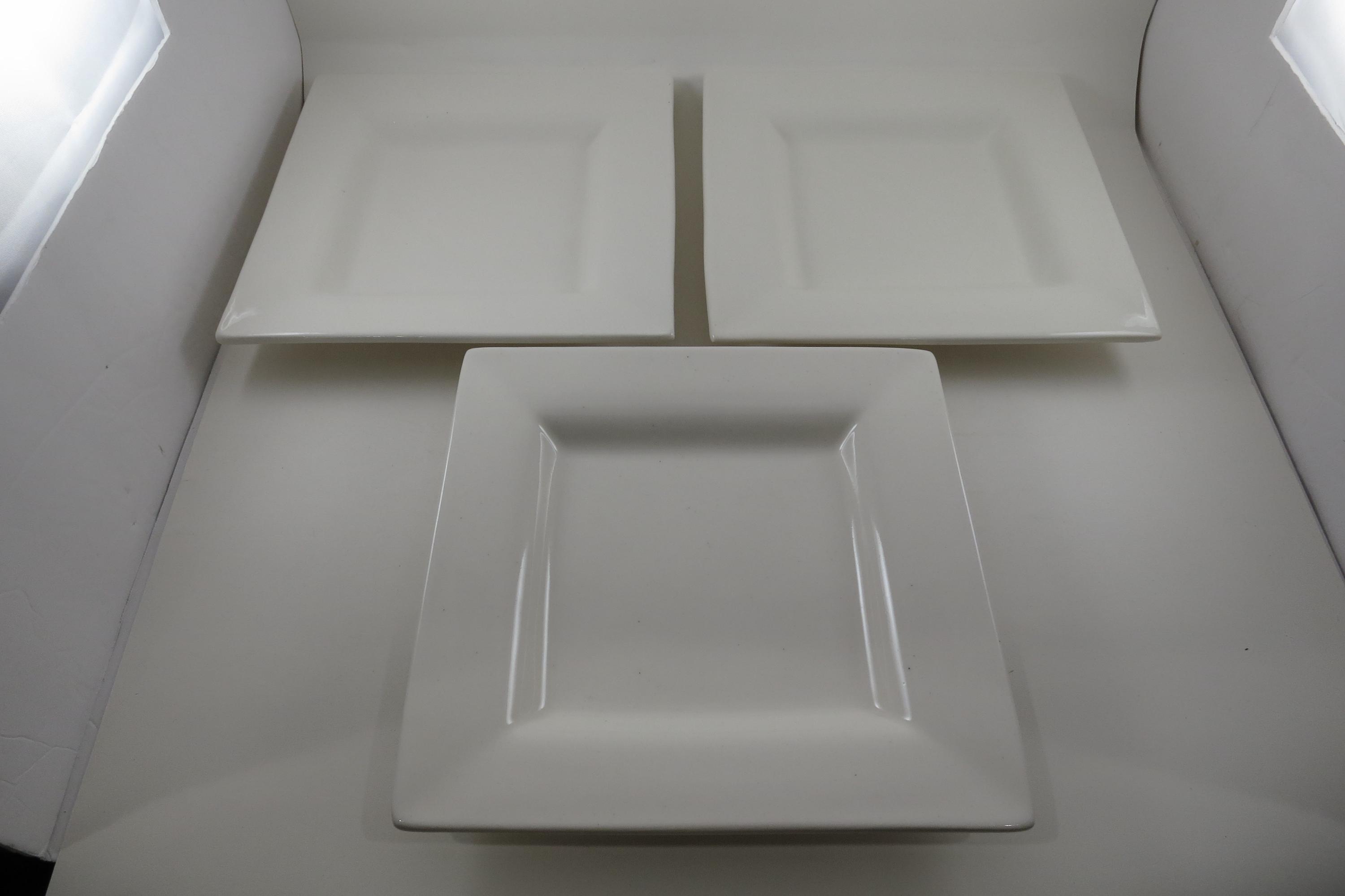 All three are in excellent condition with no chips, cracks or damages. You are purchasing 3 Square Lunch Plates.