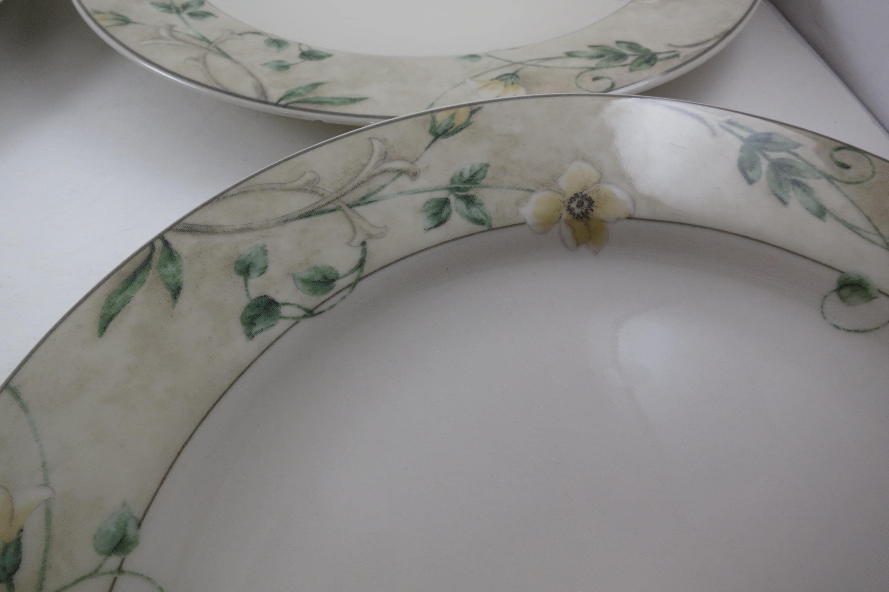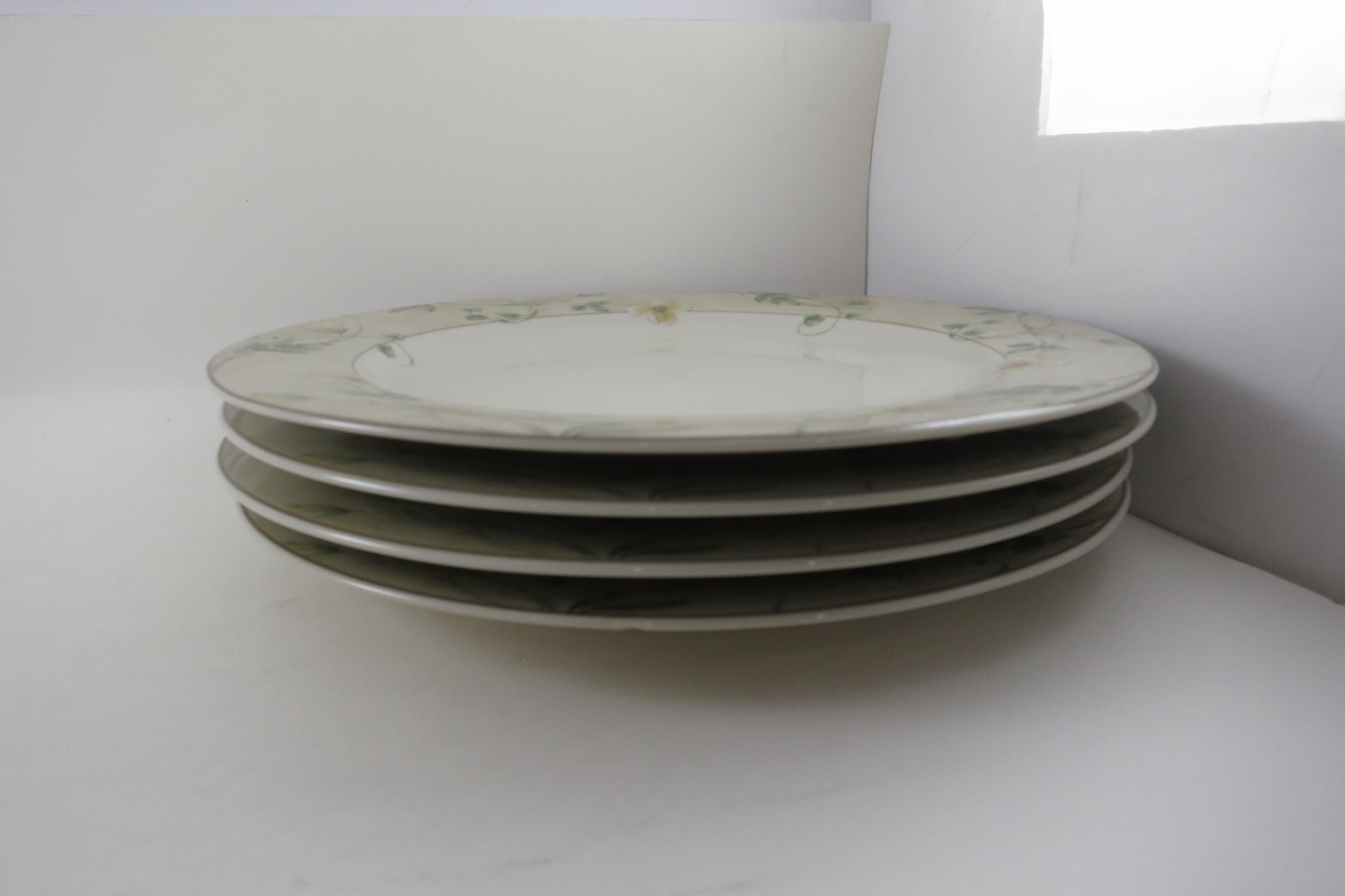 All four are in excellent condition with no chips, cracks or damages. They show light use wear. Elegant and hard to find pattern. Each measures 11 inches Diameter.