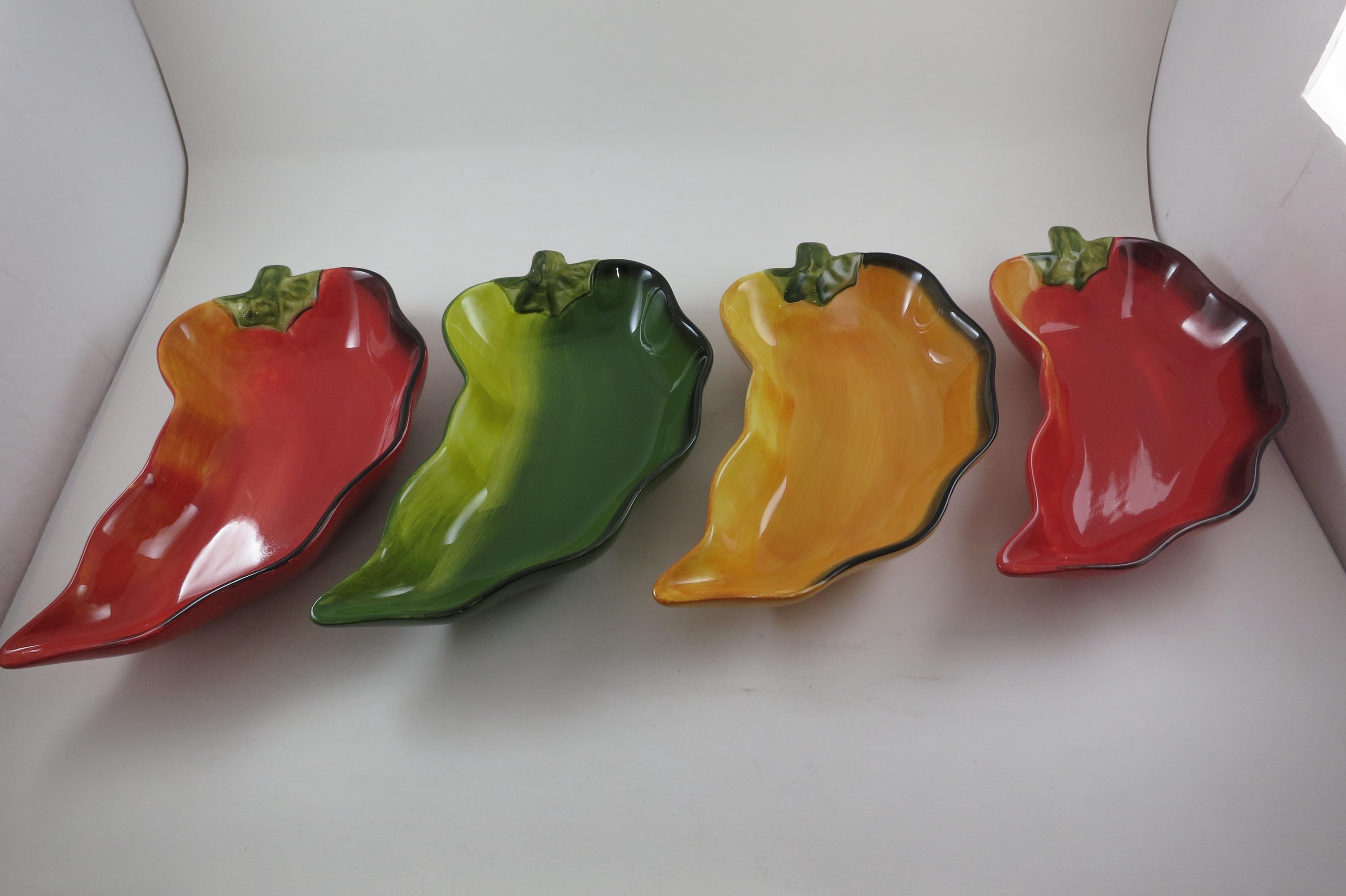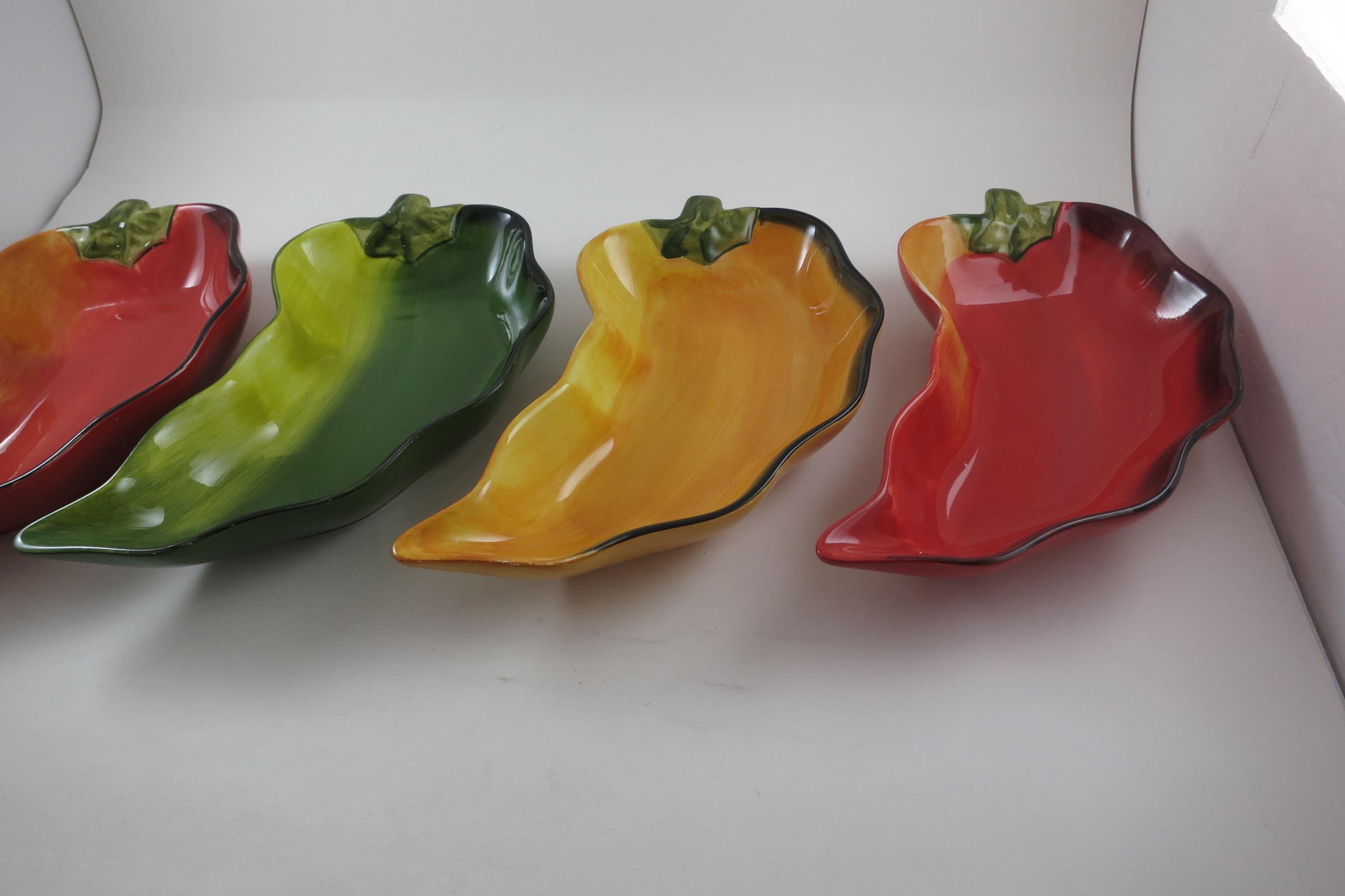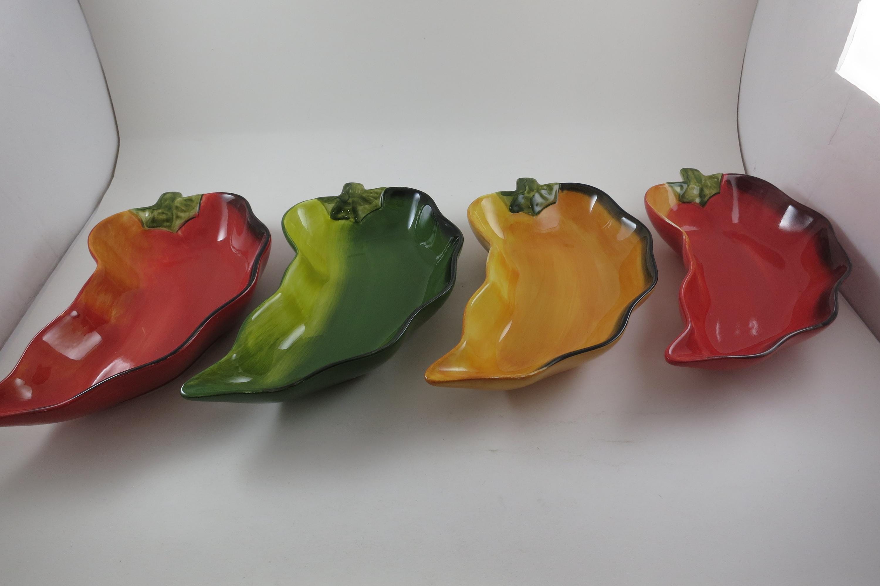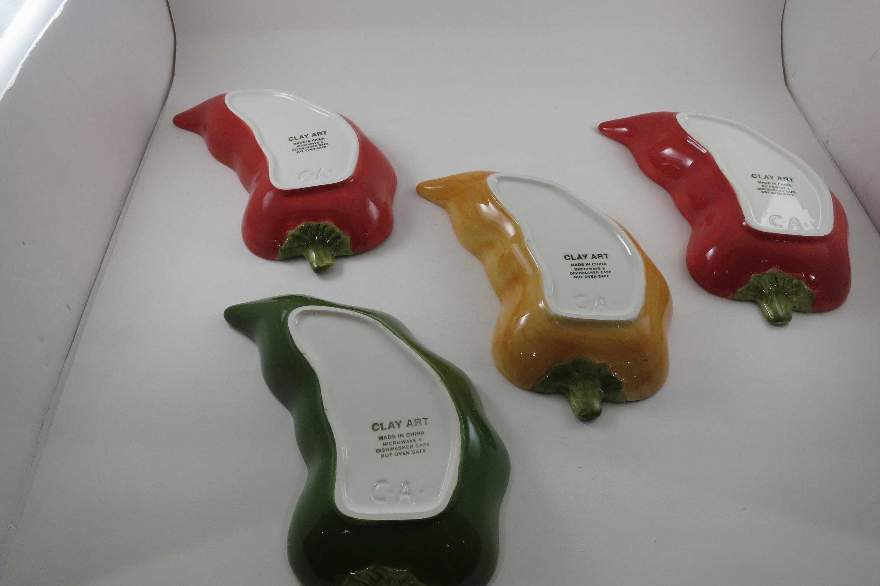 Vintage Clay Art Chili Pepper Shaped Salsa Dip Condiment Bowls Set of Four.