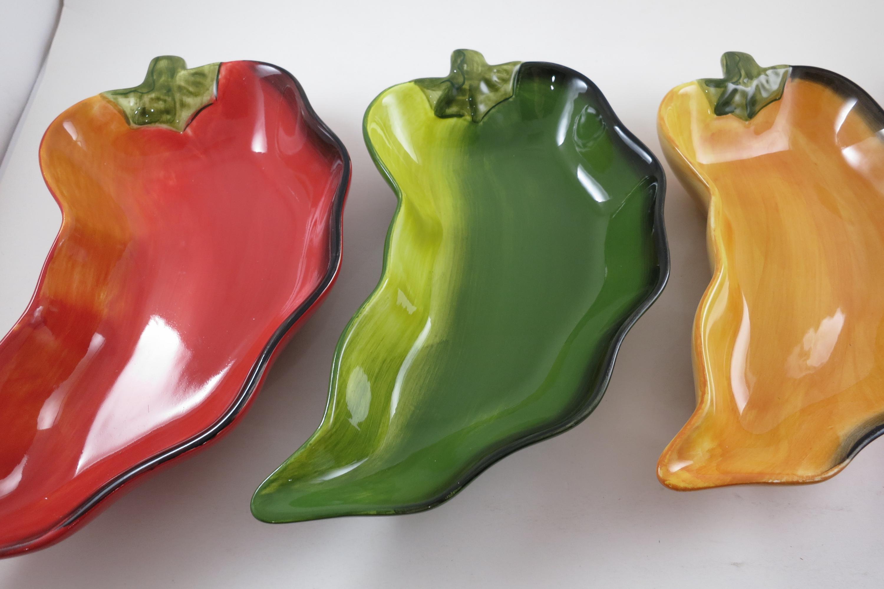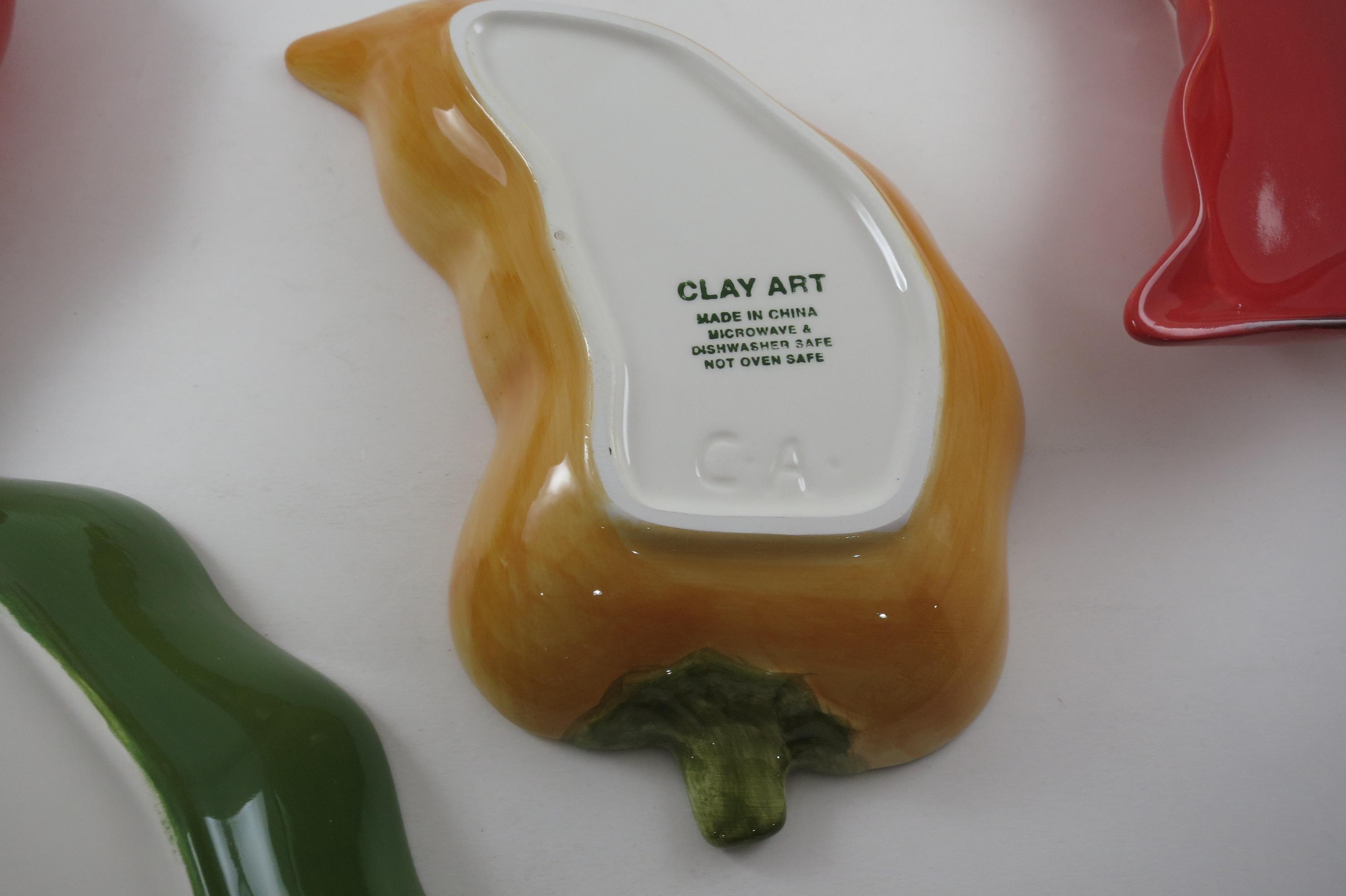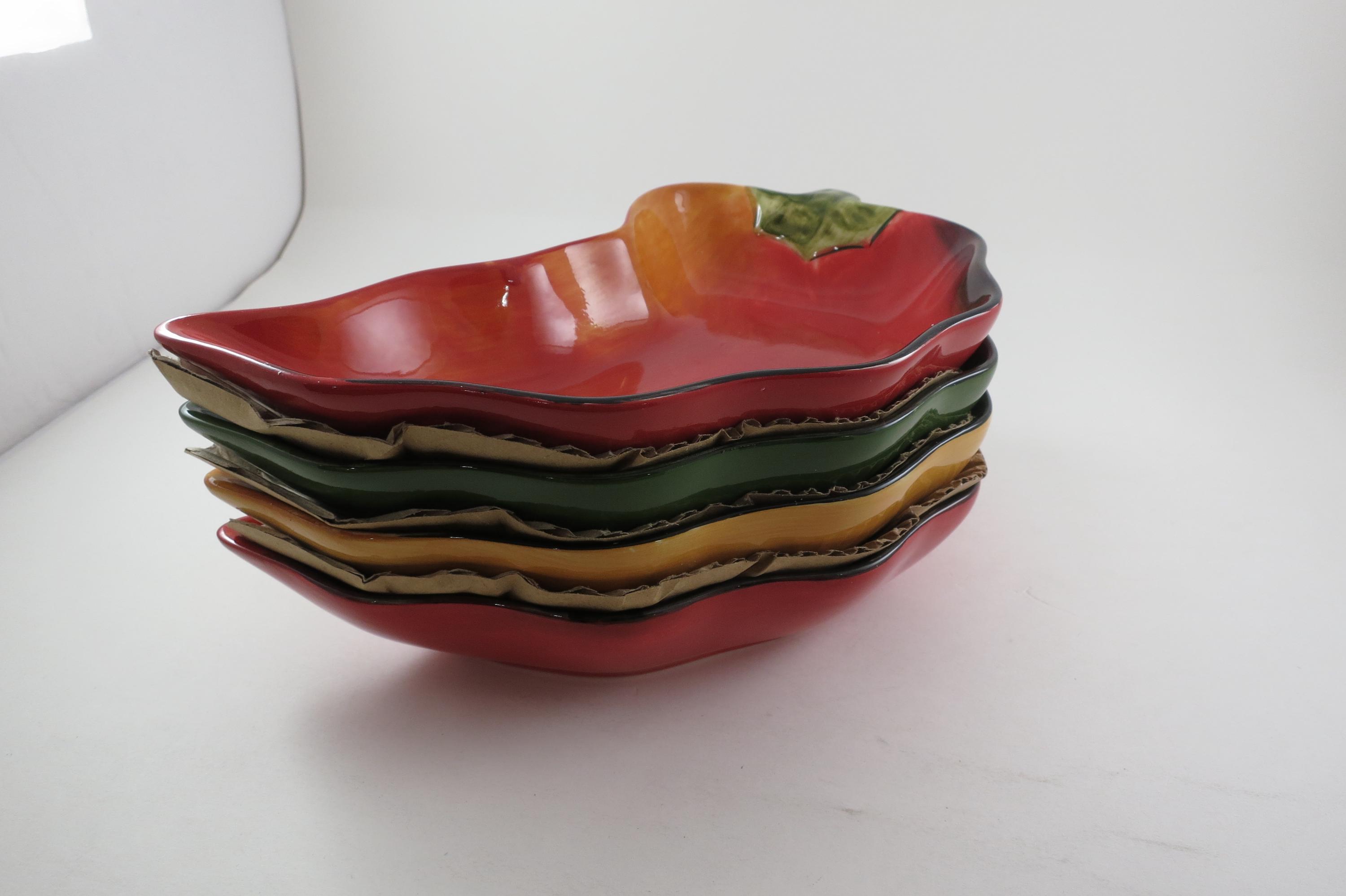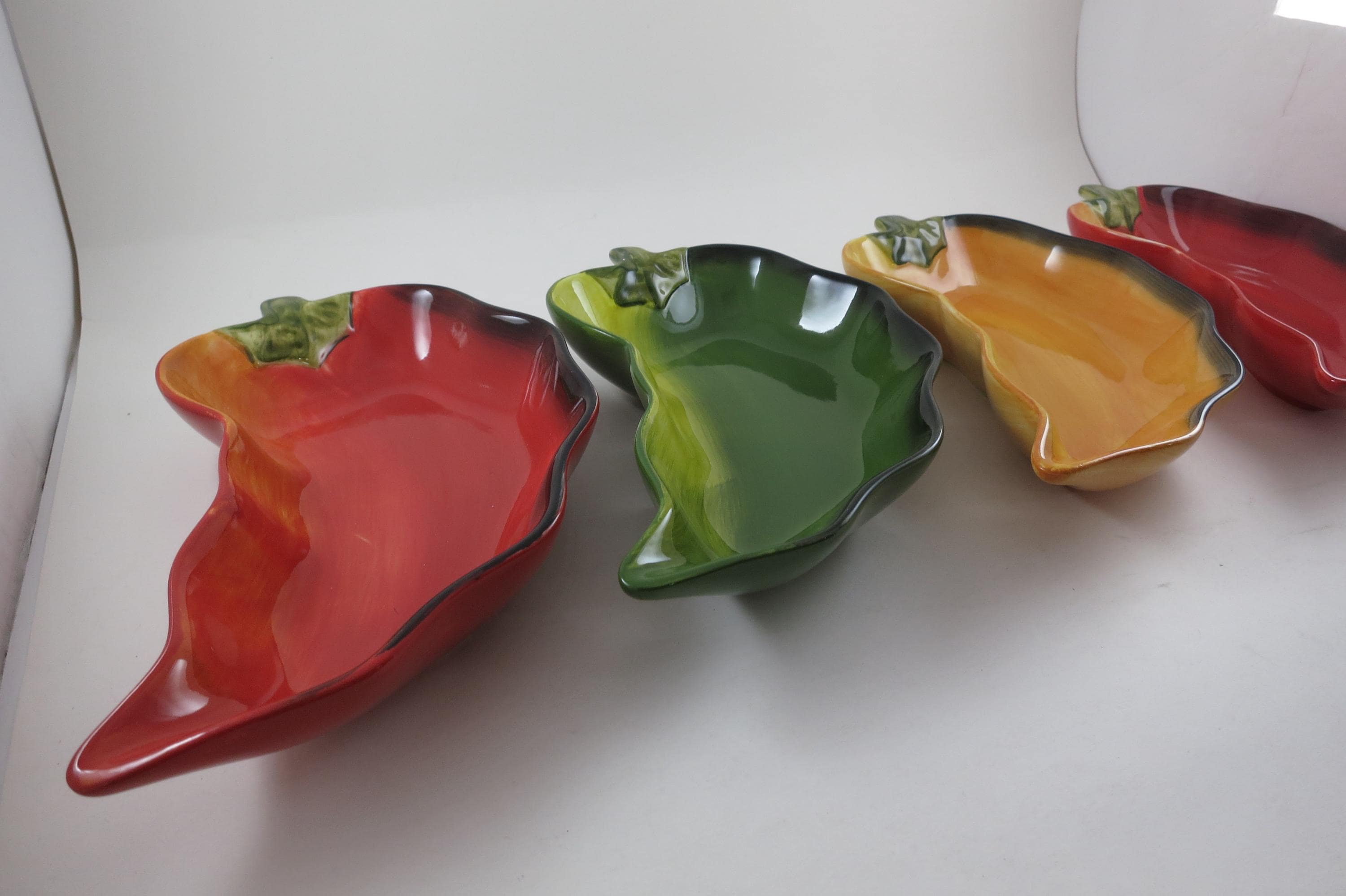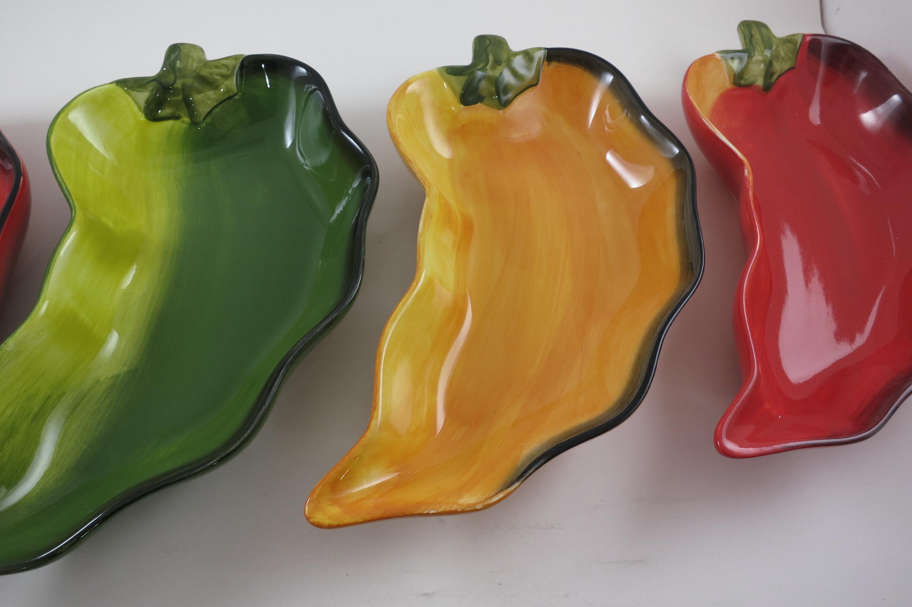 Vintage Clay Art Chili Pepper Shaped Salsa Dip Condiment Bowls Set of Four.