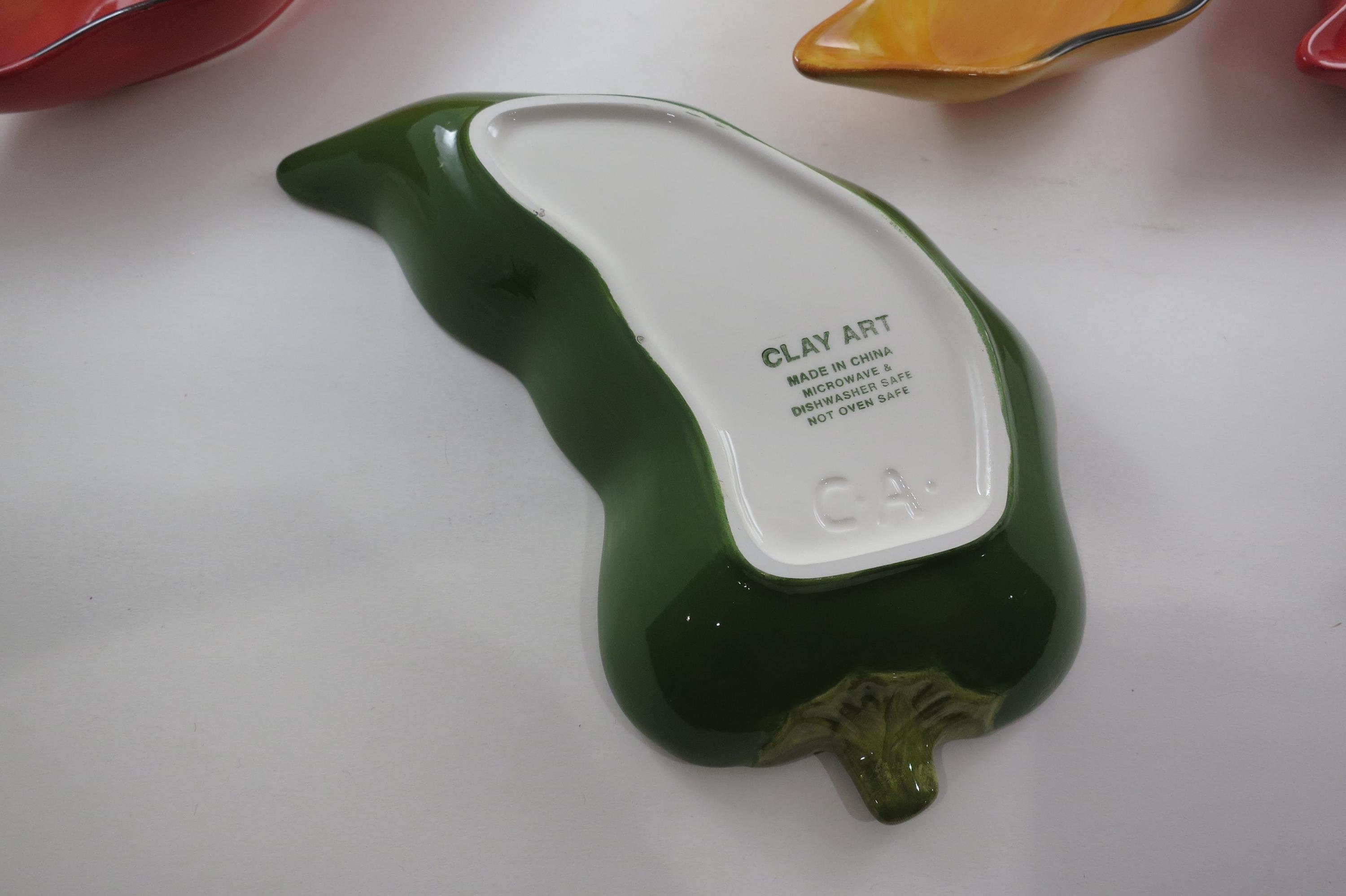 Vintage Clay Art Chili Pepper Shaped Salsa Dip Condiment Bowls Set of Four