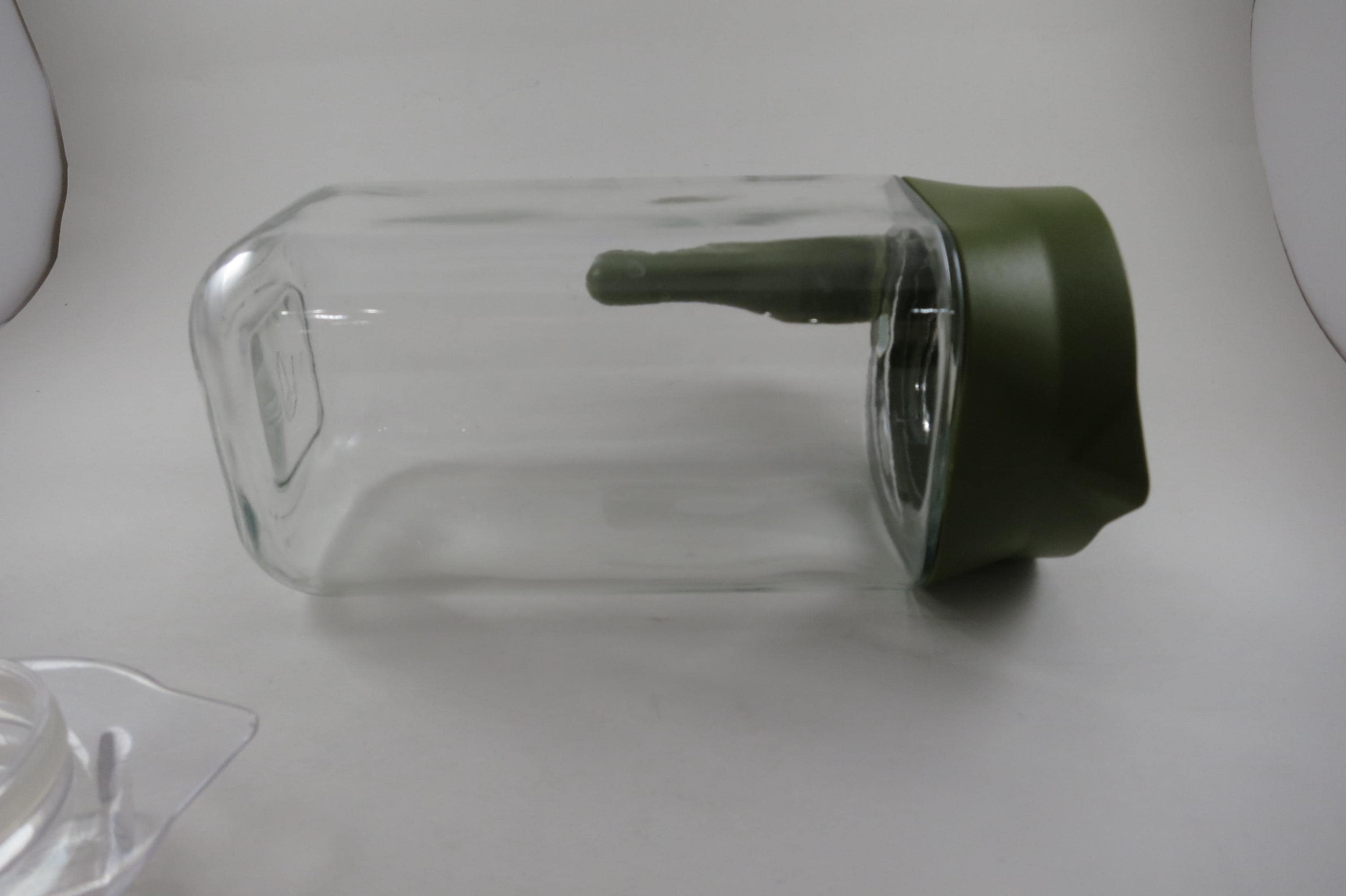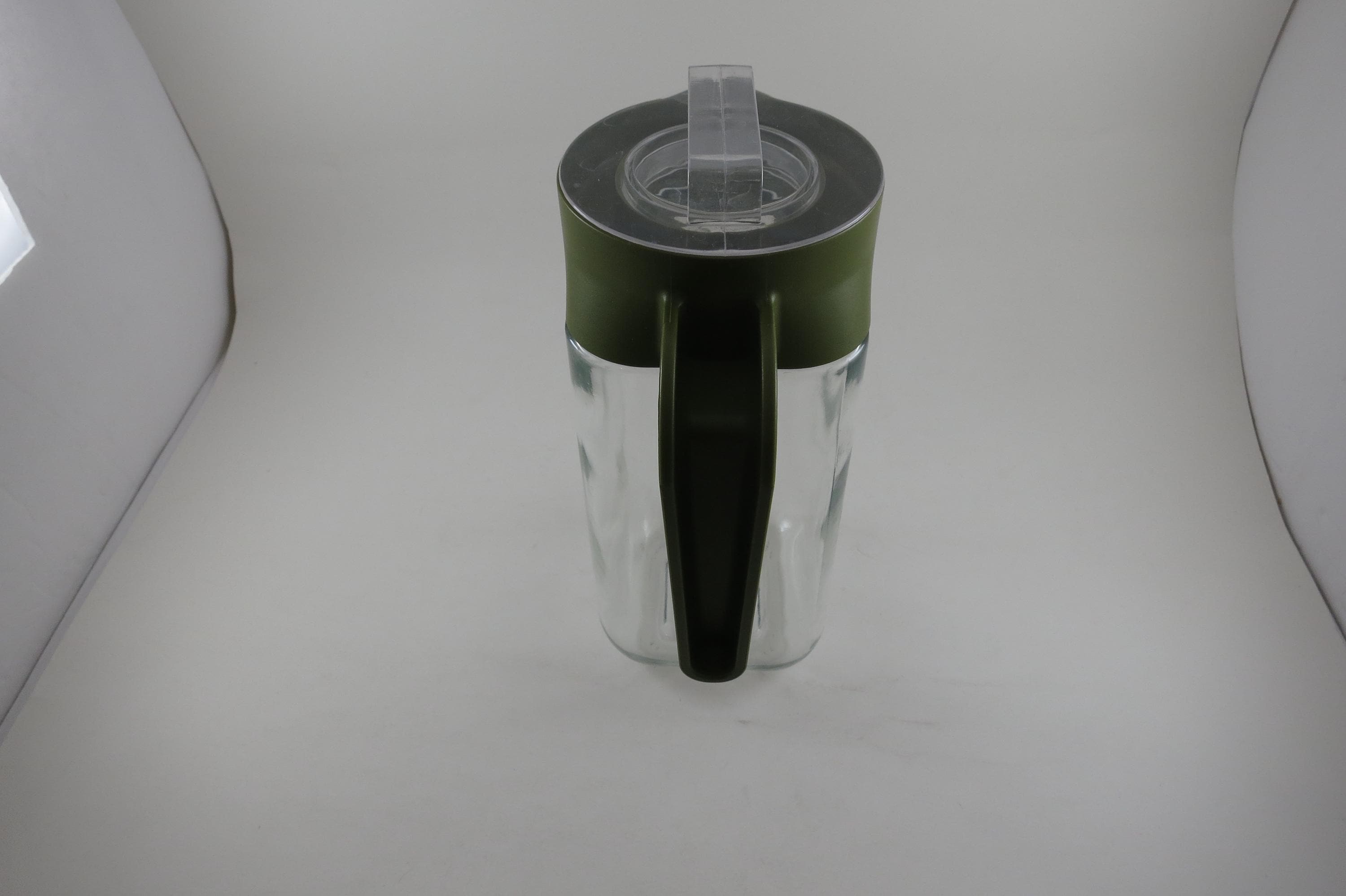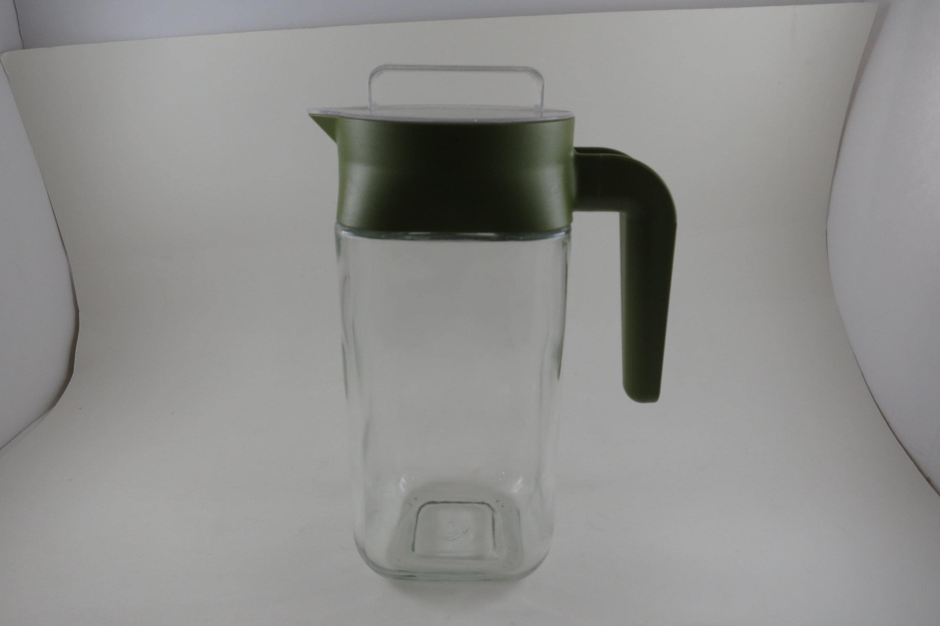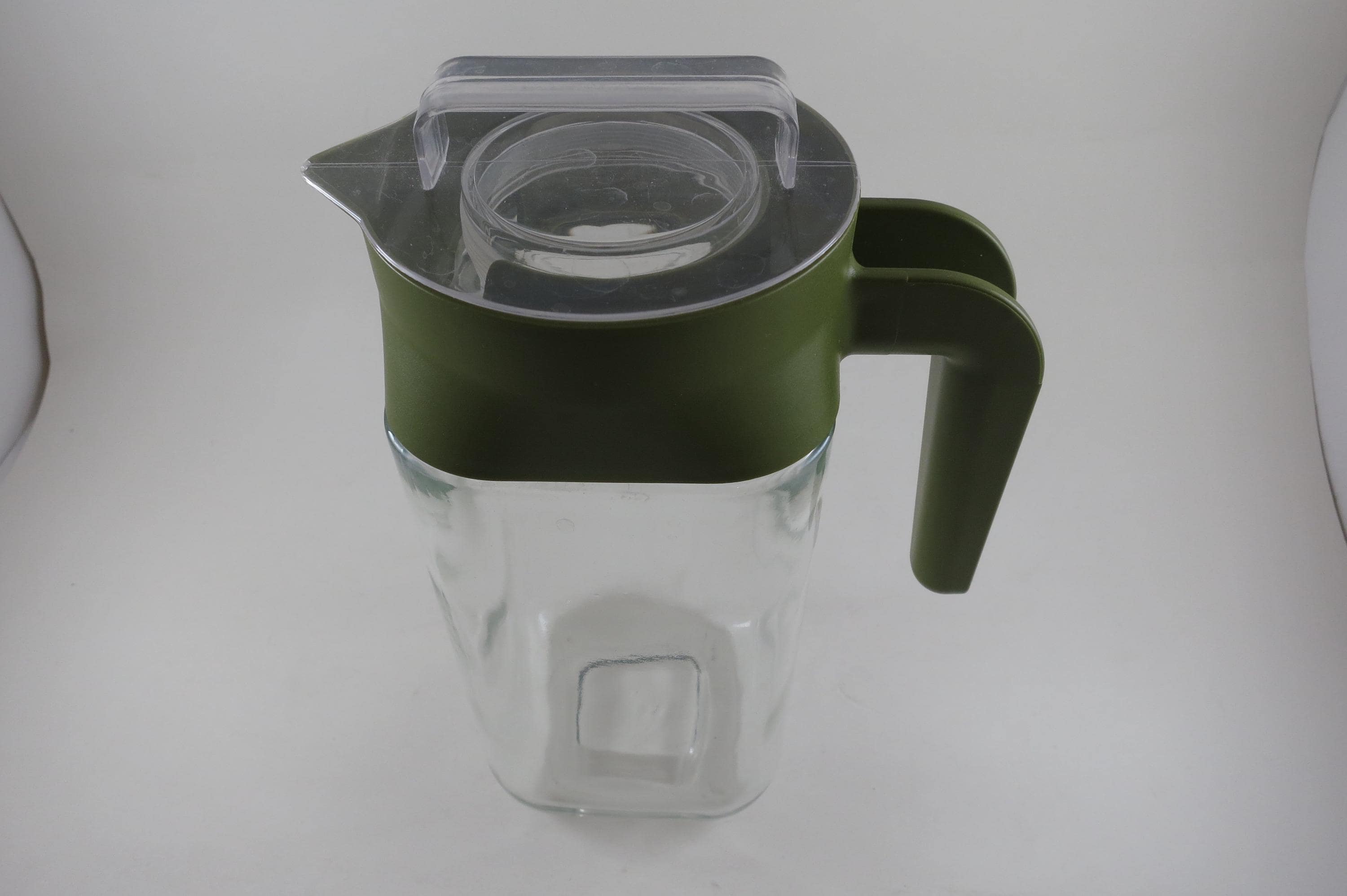 Vintage ARC France Ribbed Glass Juice/Water Jar Green Top and Plastic Lid