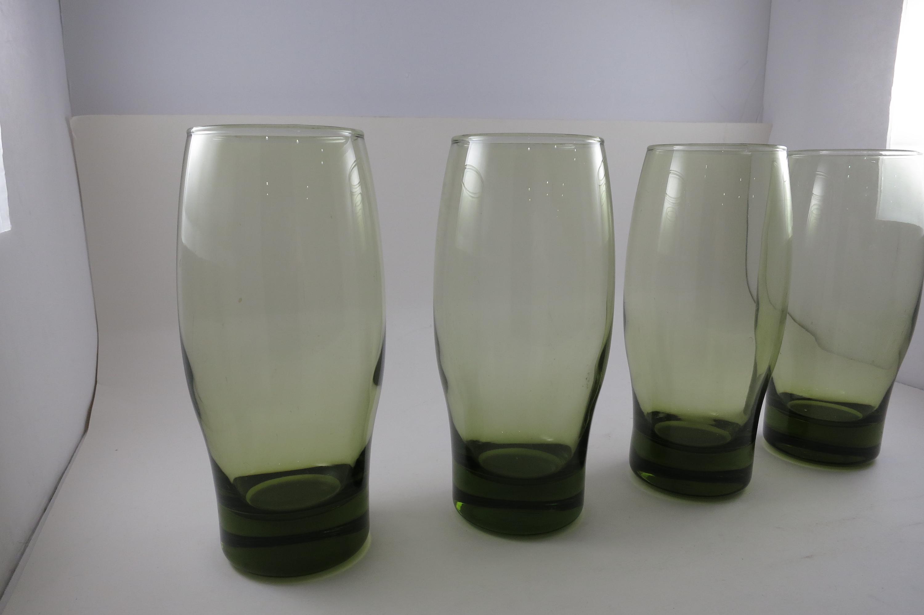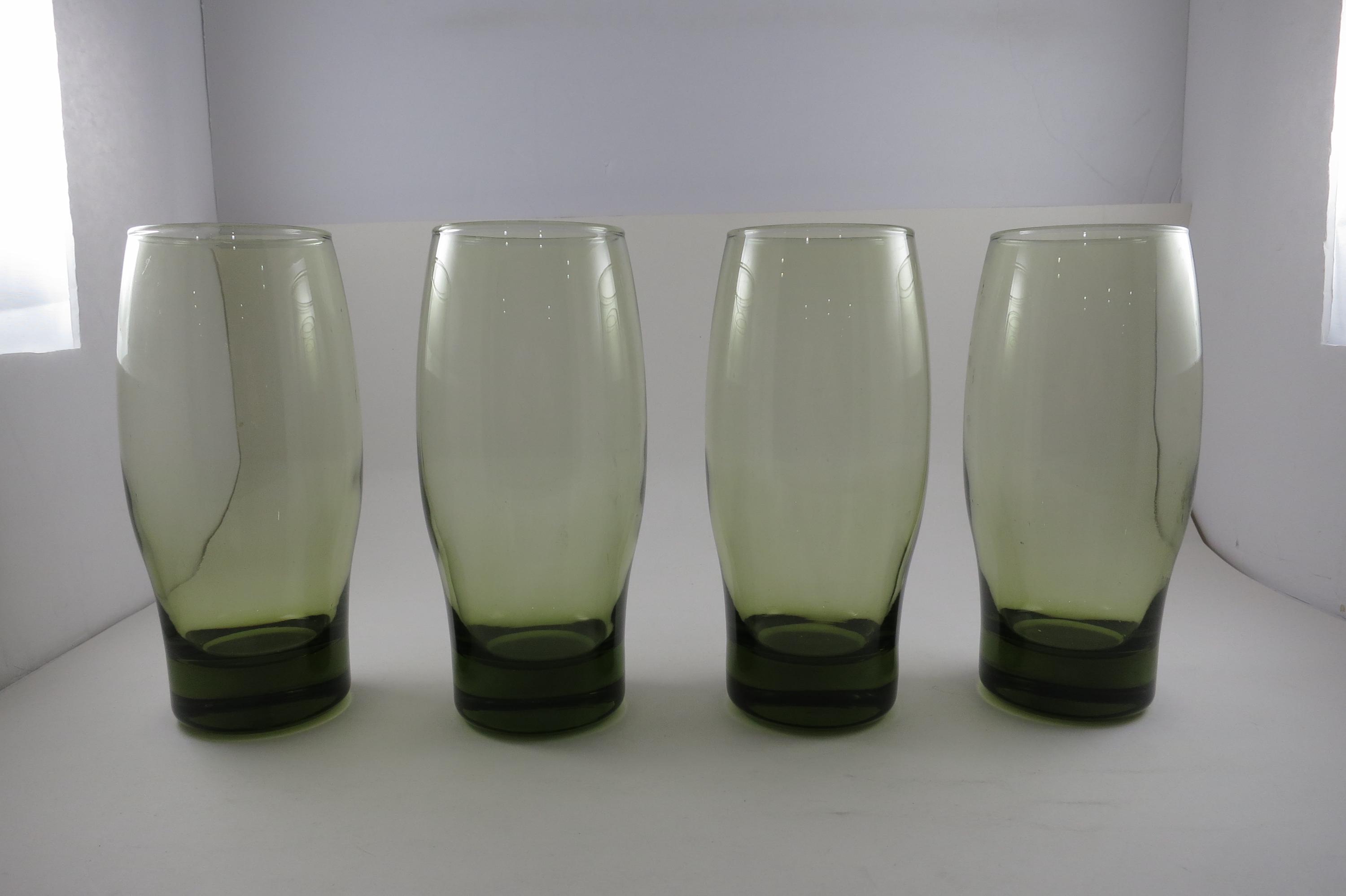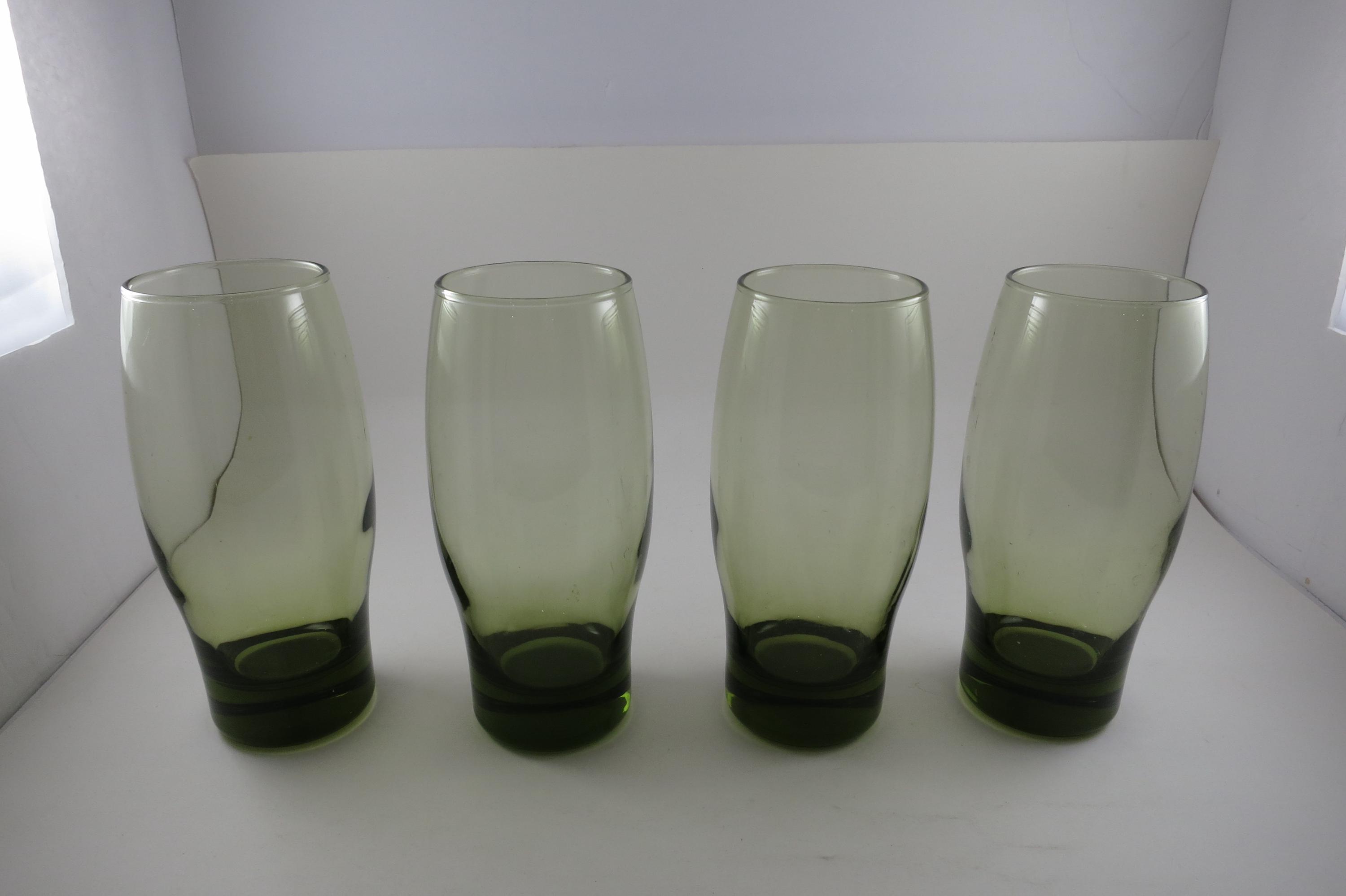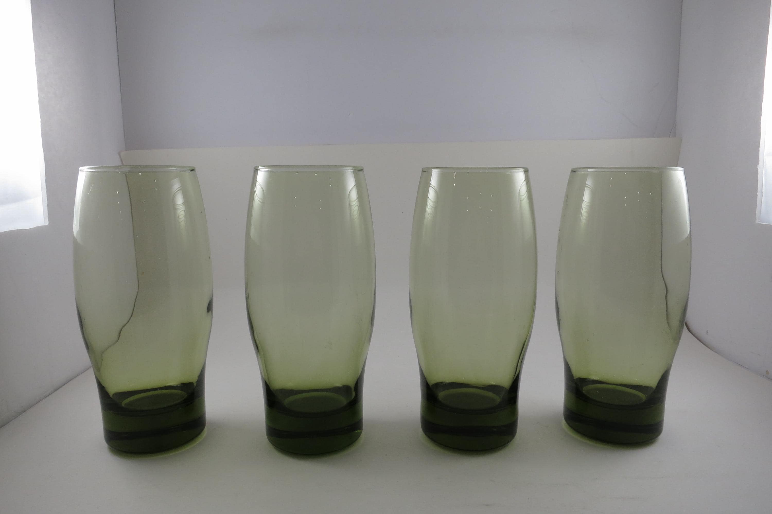 Set of 4 Libbey Perception Olive Green Atomic Water Curved Cooler 16oz Glasses.