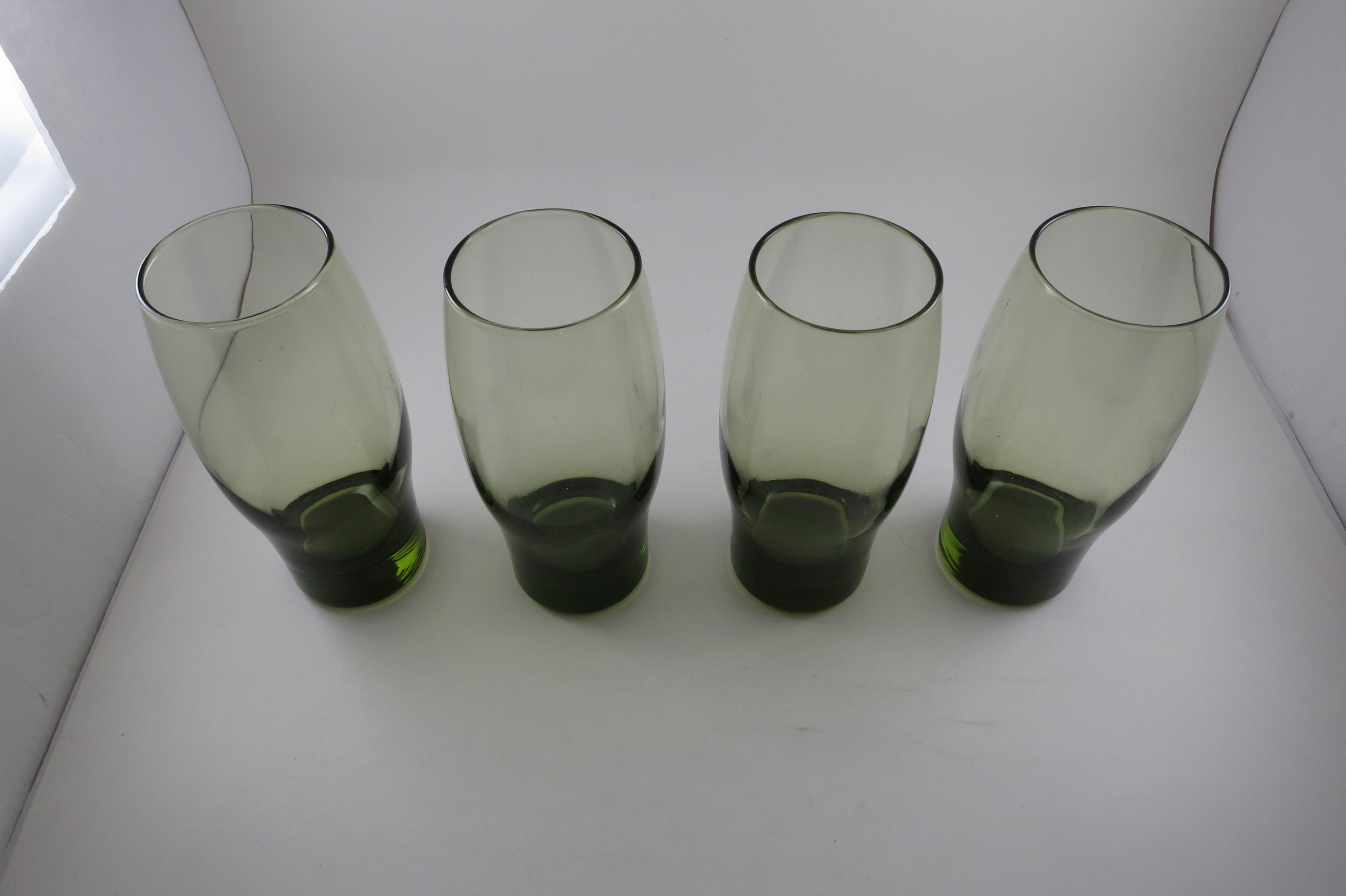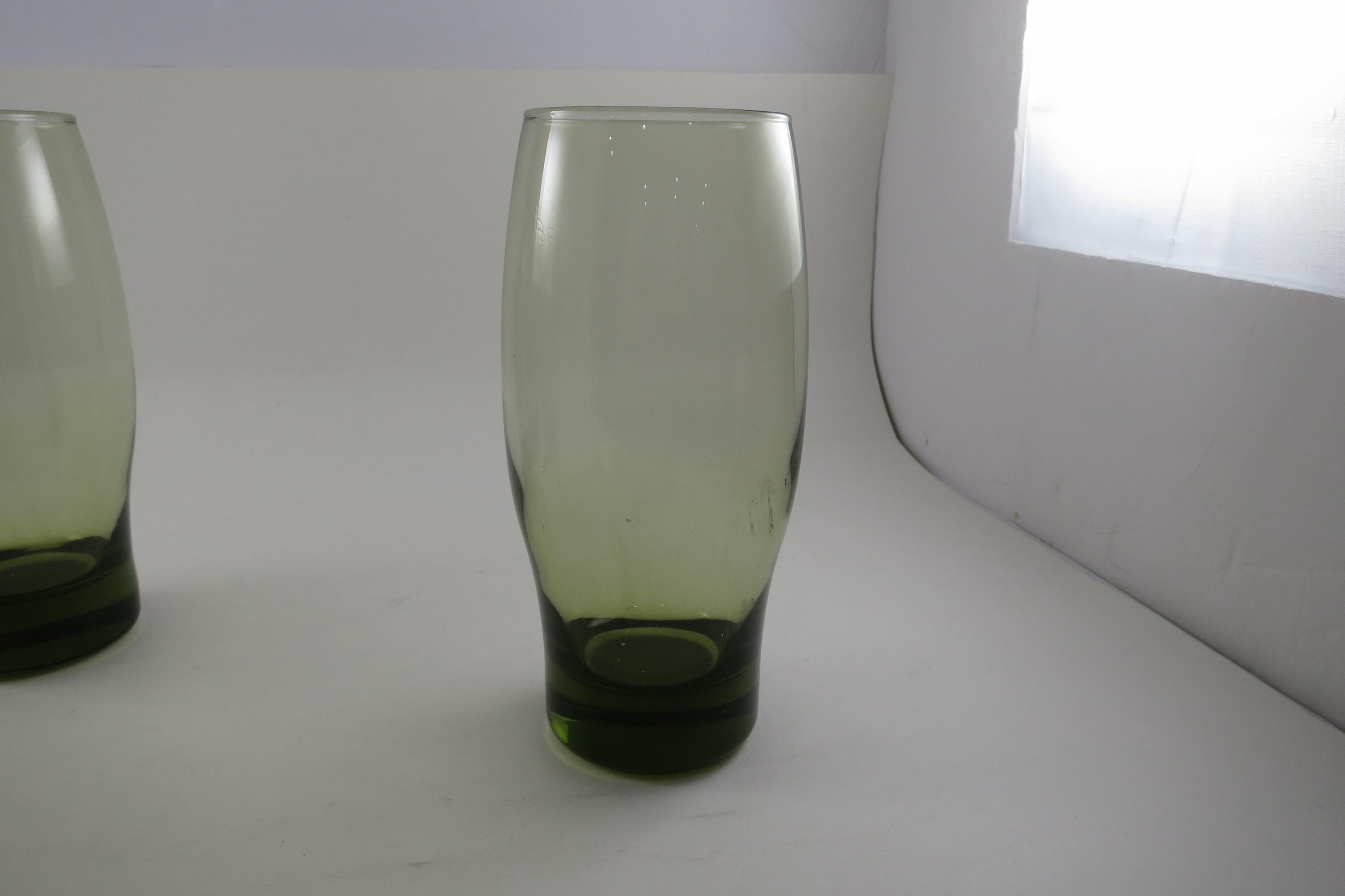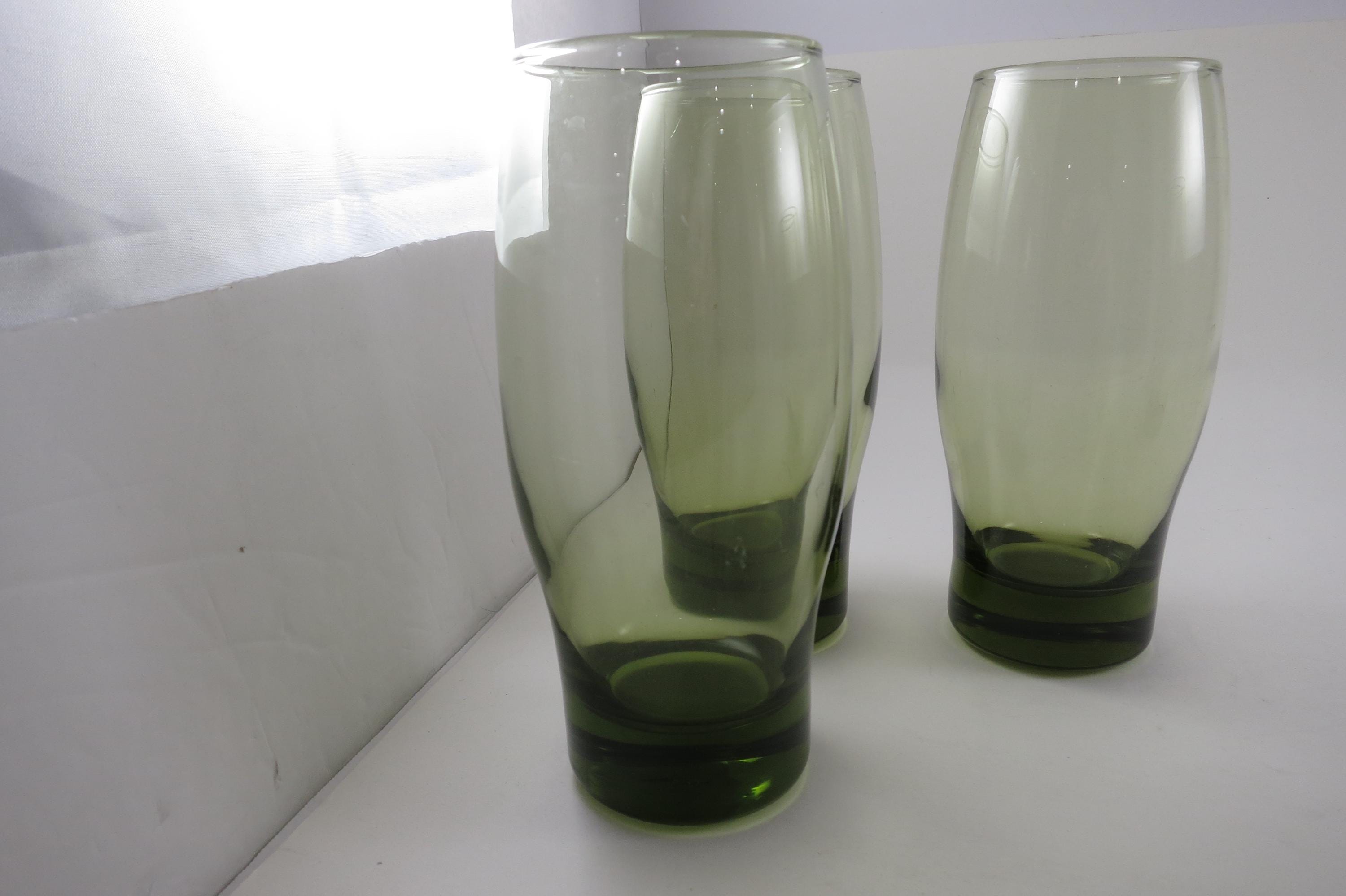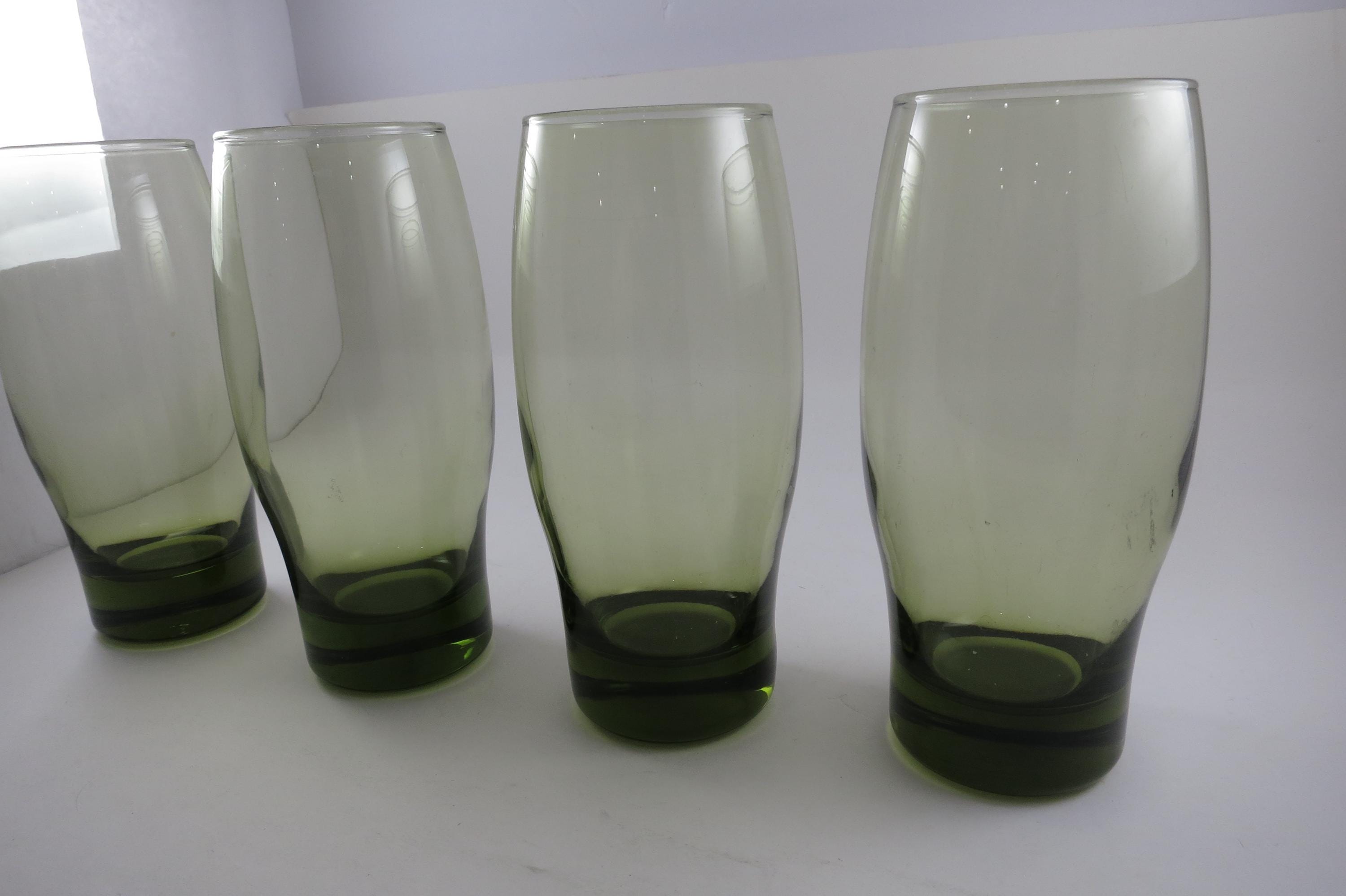 Set of 4 Libbey Perception Olive Green Atomic Water Curved Cooler 16oz Glasses.
