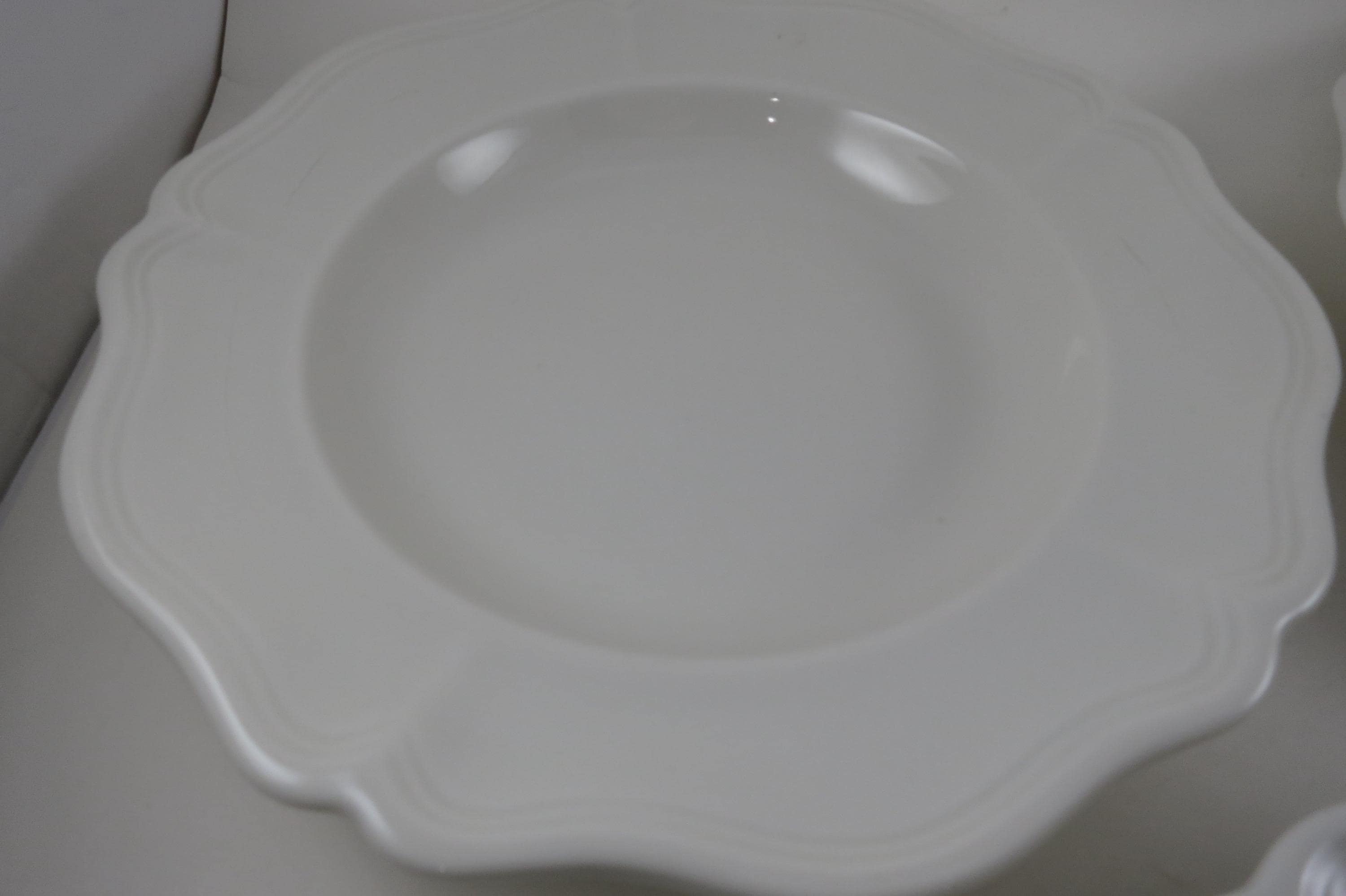 Beautiful Pattern,all white and scalloped, we have other pieces listed in our store as well.