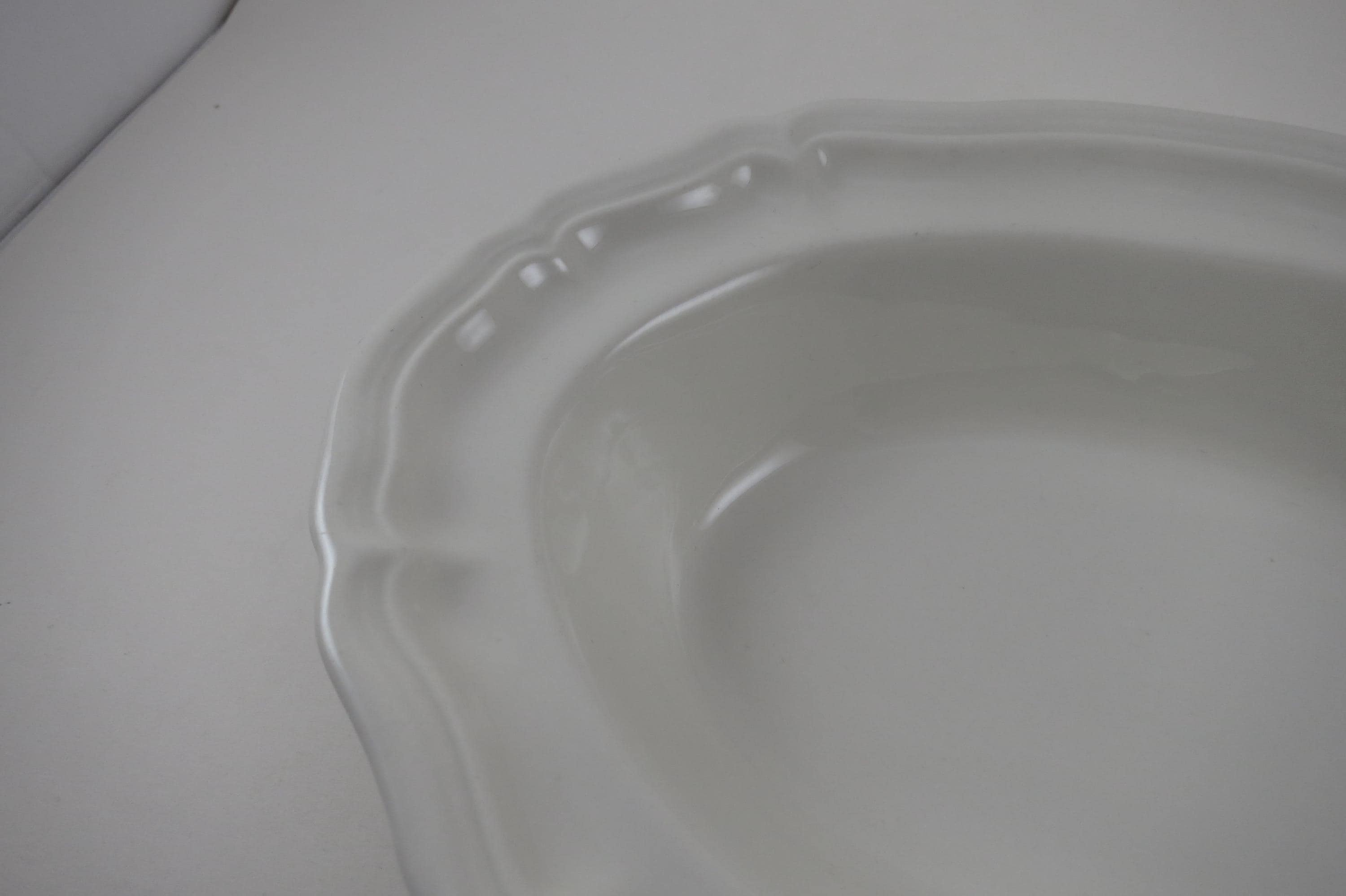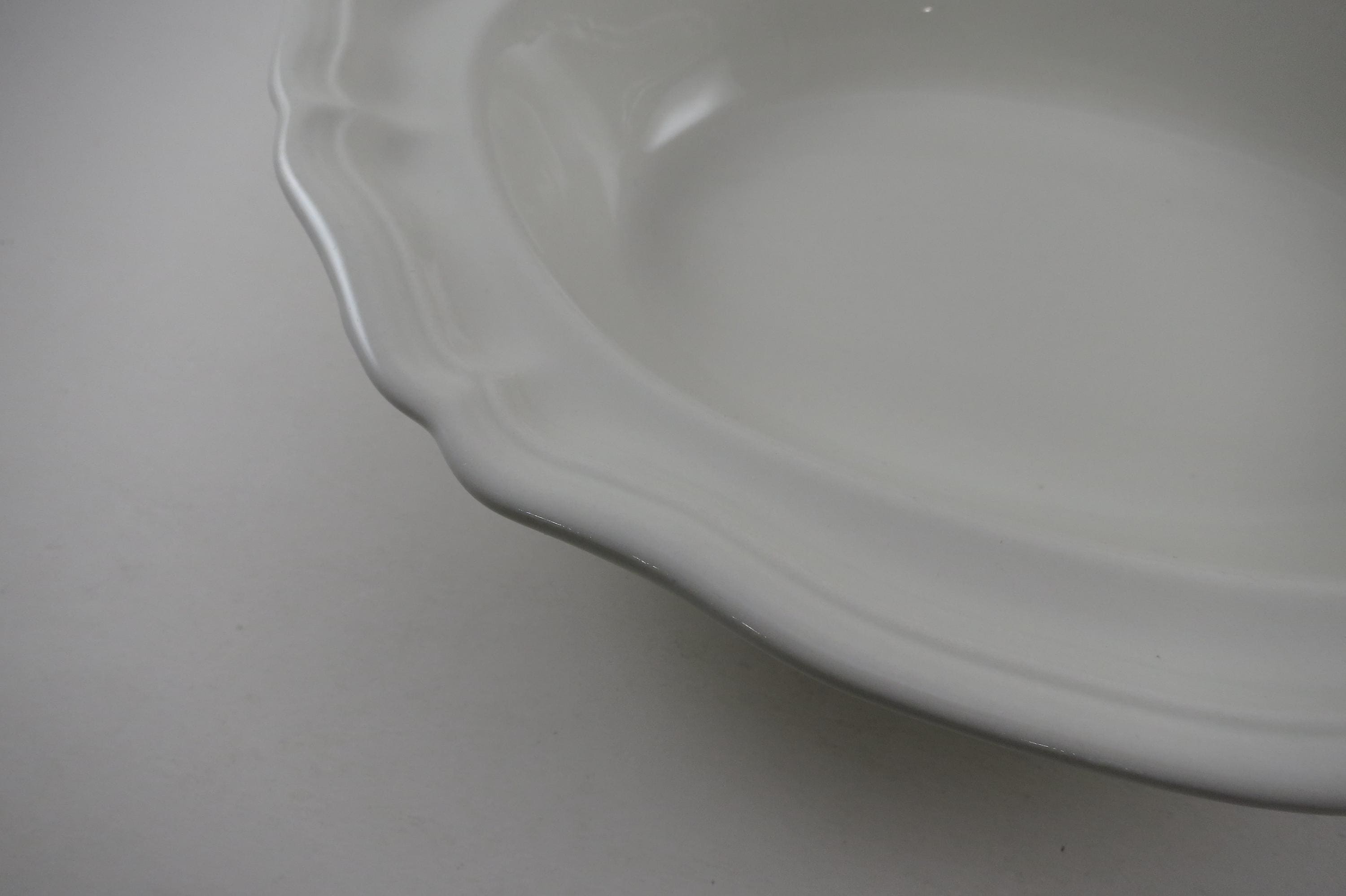 Beautiful Pattern,all white and scalloped, we have other pieces listed in our store as well.