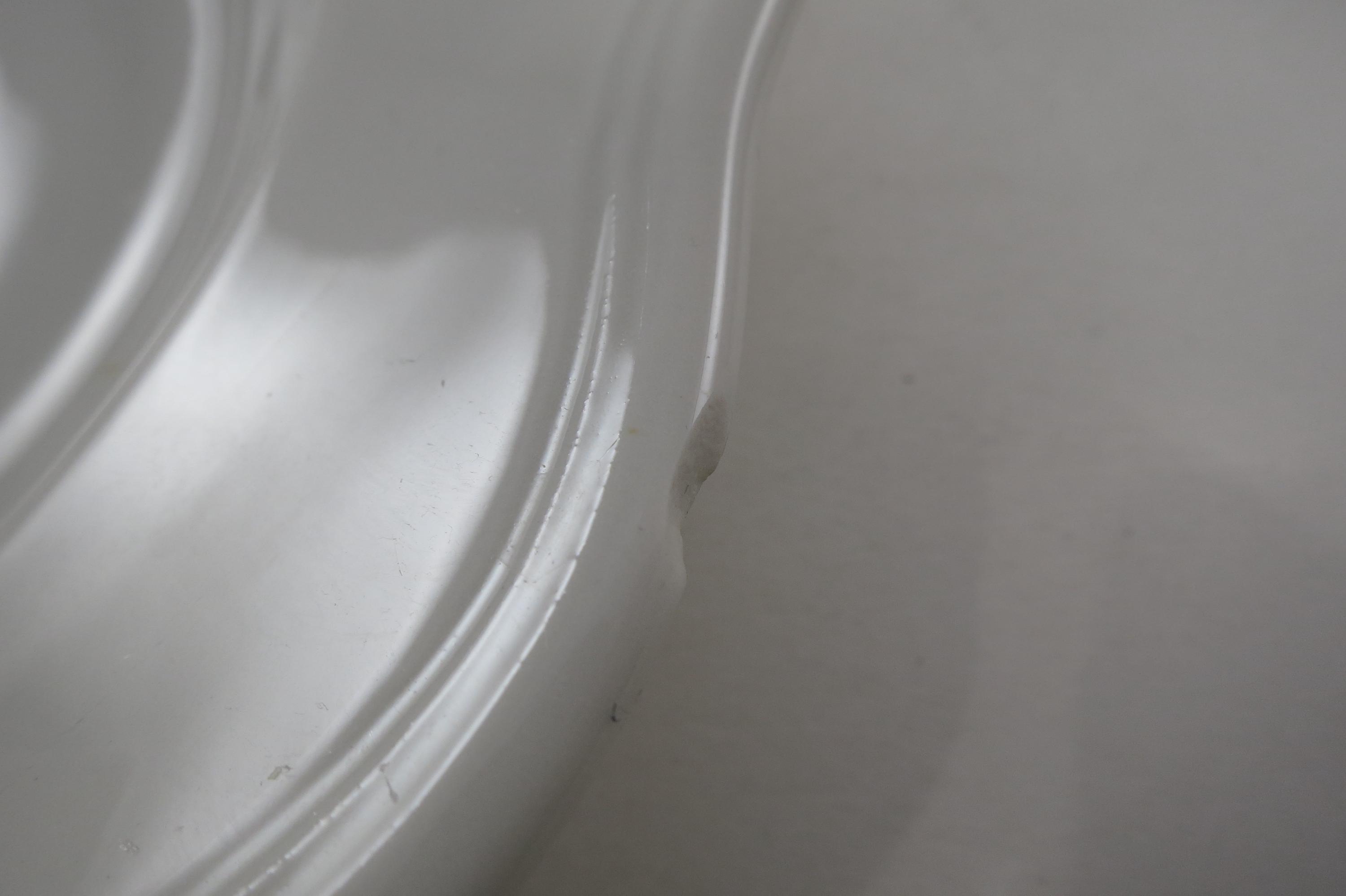Beautiful Pattern,all white and scalloped, we have other pieces listed in our store as well.