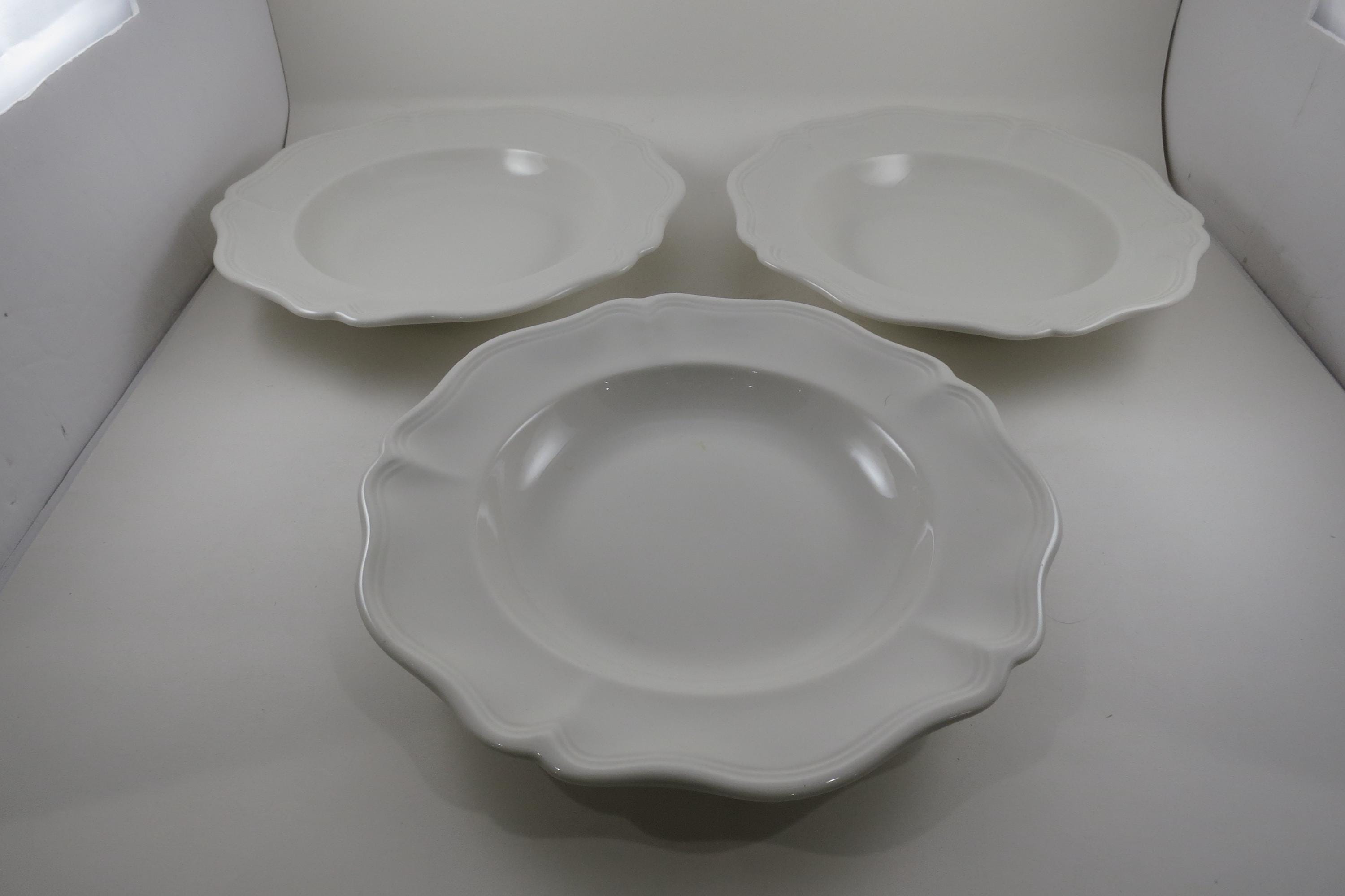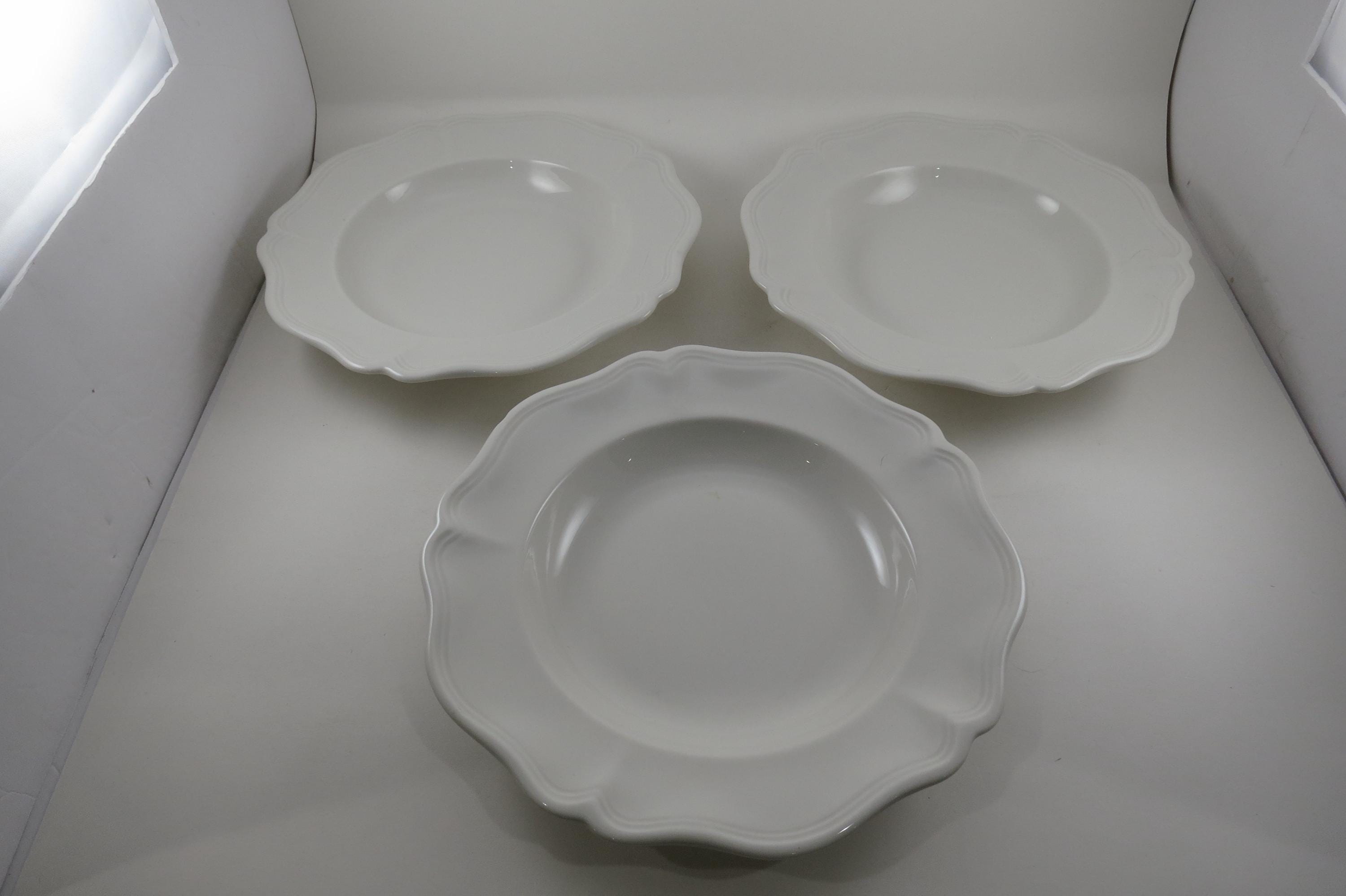 Three Vintage Red Cliff Ironstone Heirloom Pattern 9 5/8 Inch Large Rim Soup Bowls