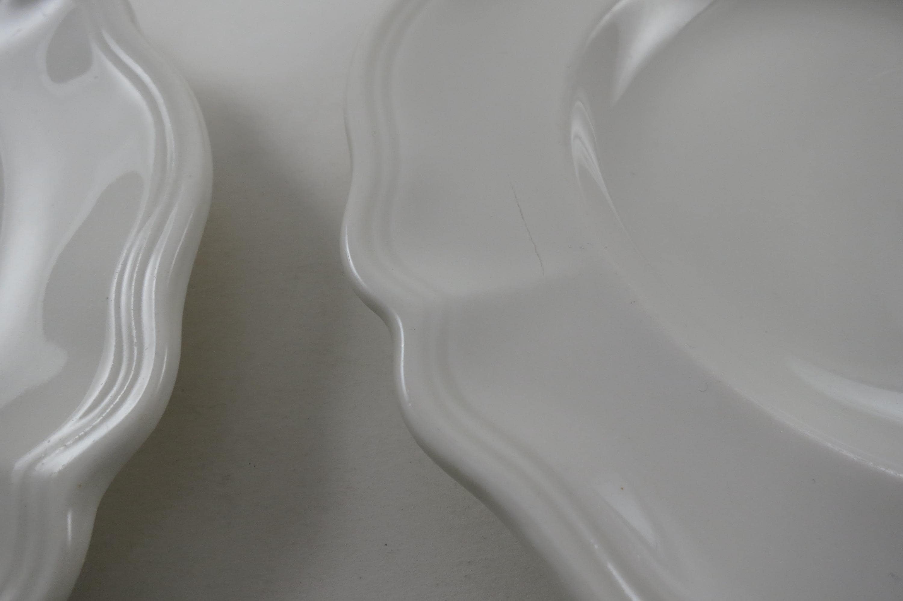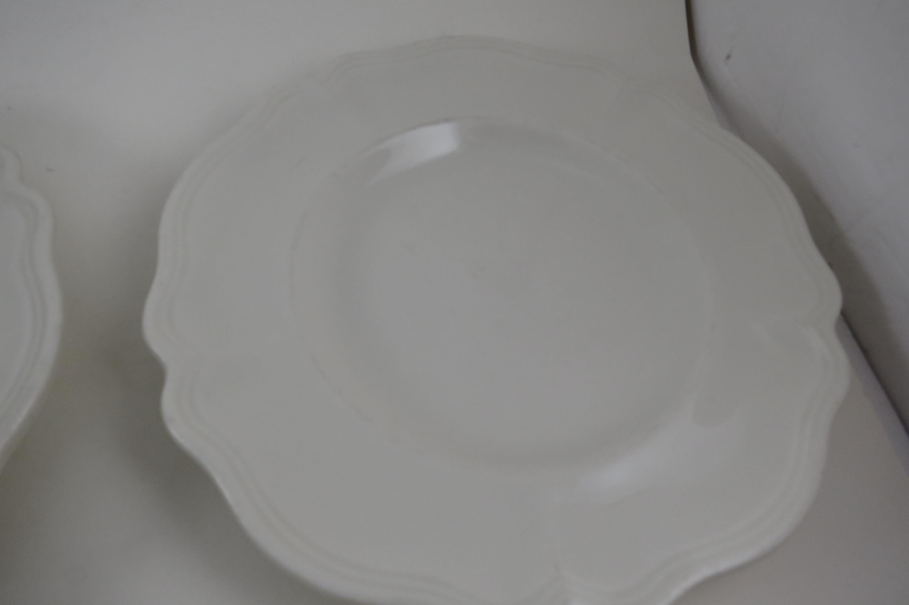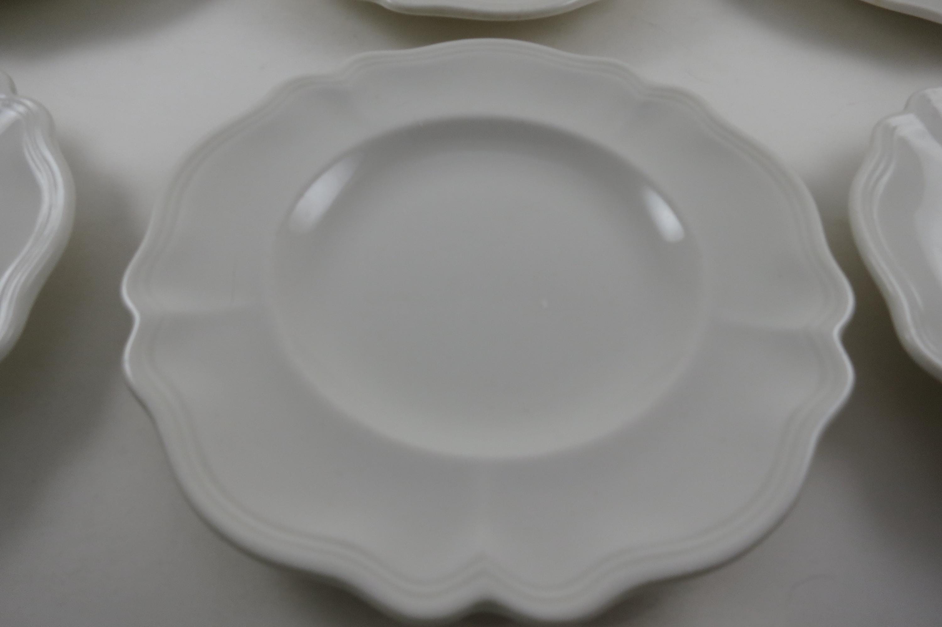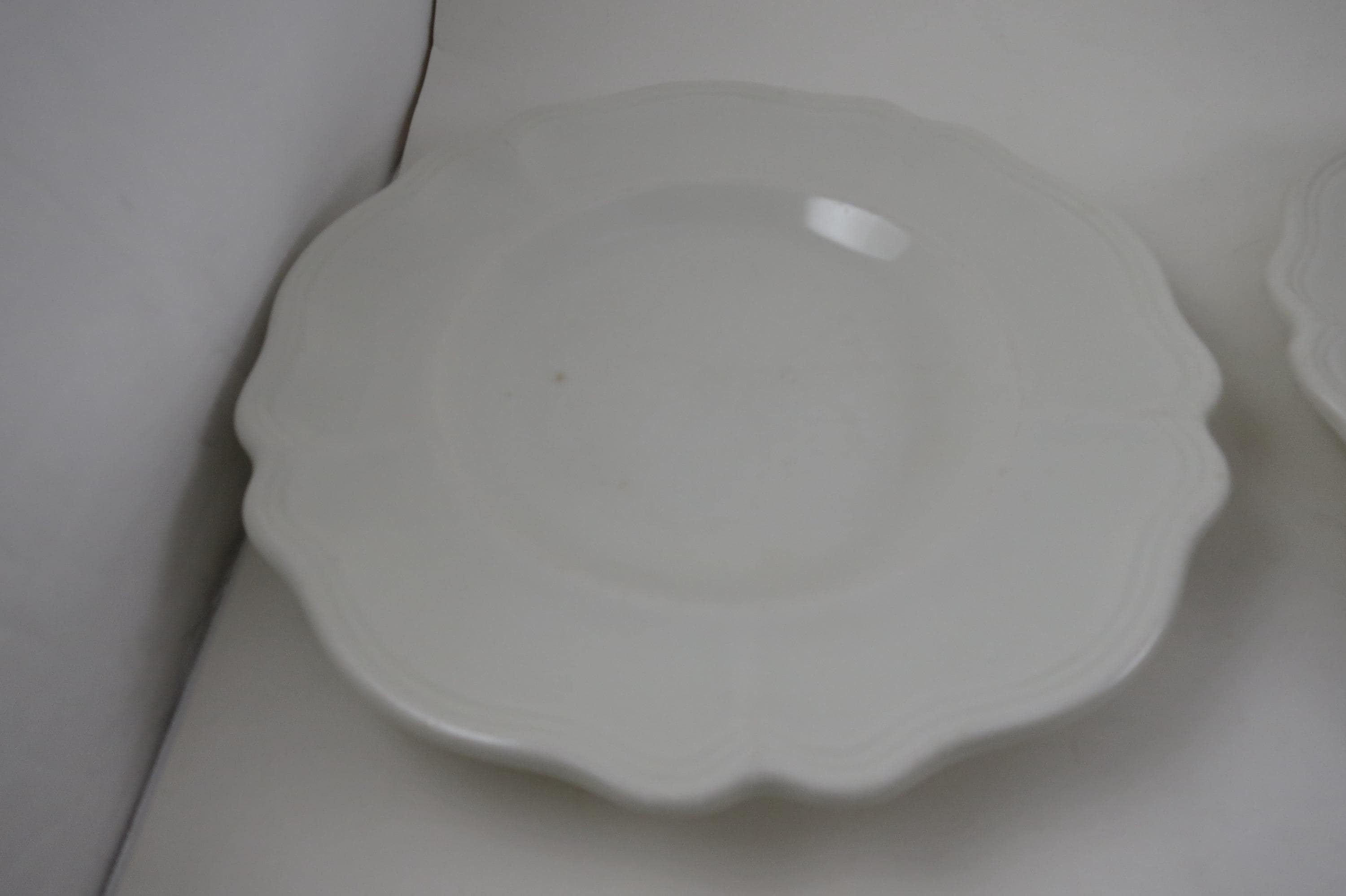 Beautiful Pattern,all white and scalloped, we have other pieces listed in our store as well.