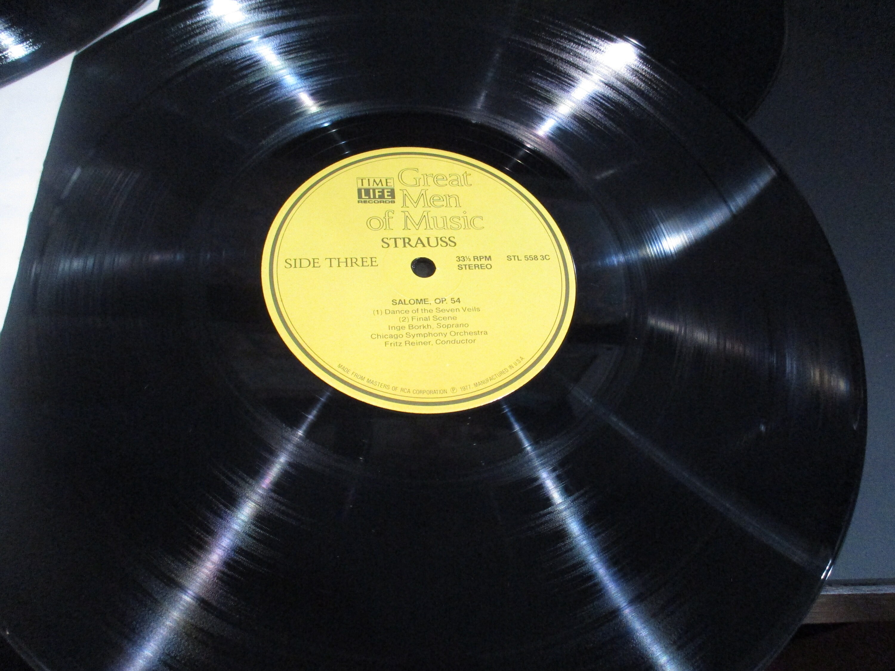 Vinyl... Record will have scuffs and scratches, but they will not affect the play quality. Record should play through with no skips or major pops. Label may have writing on it.
