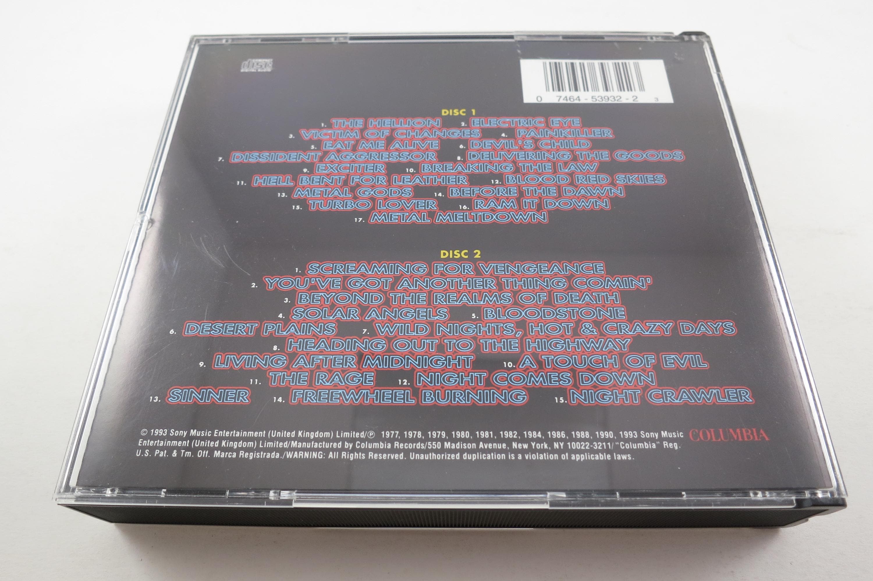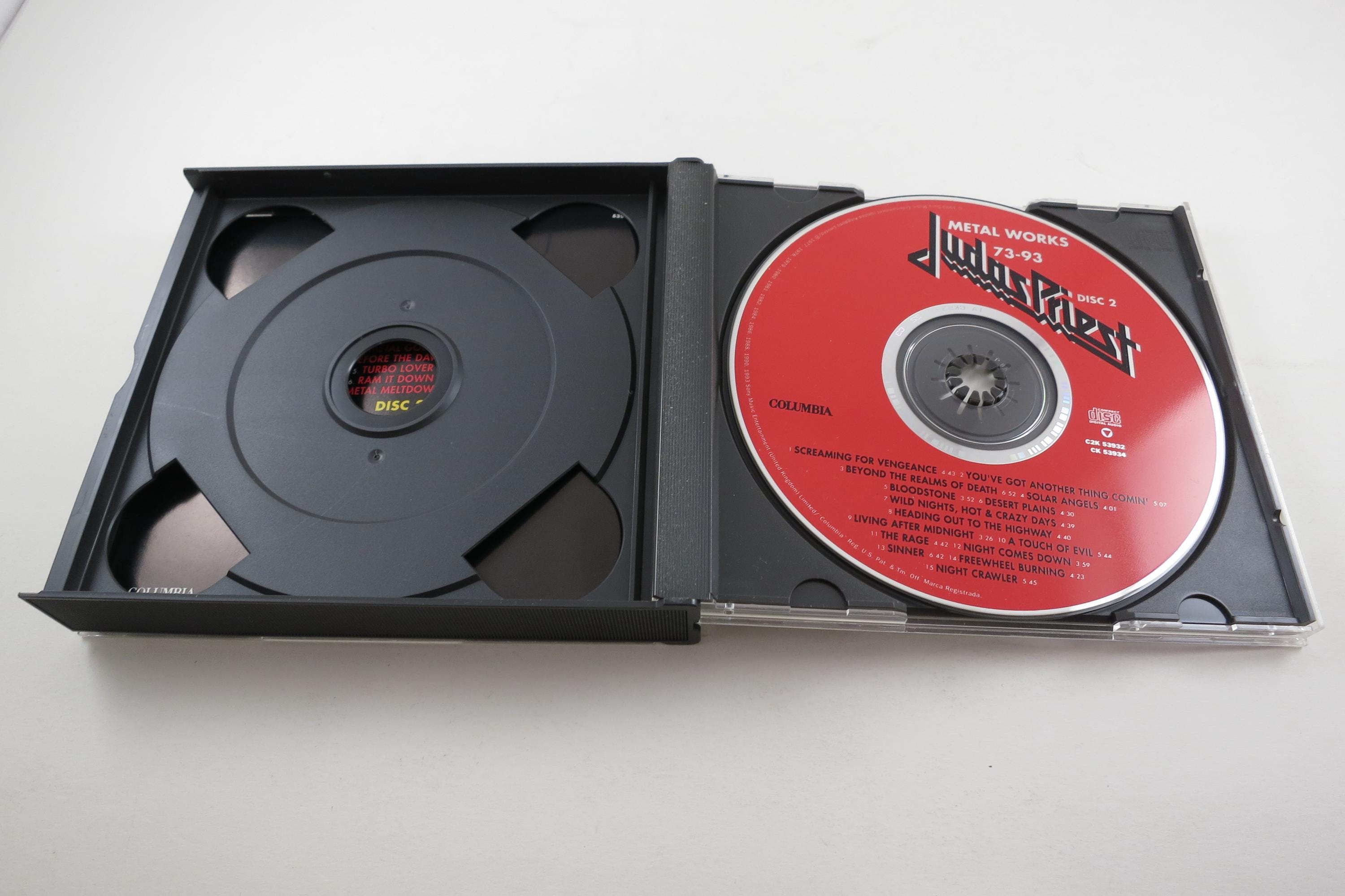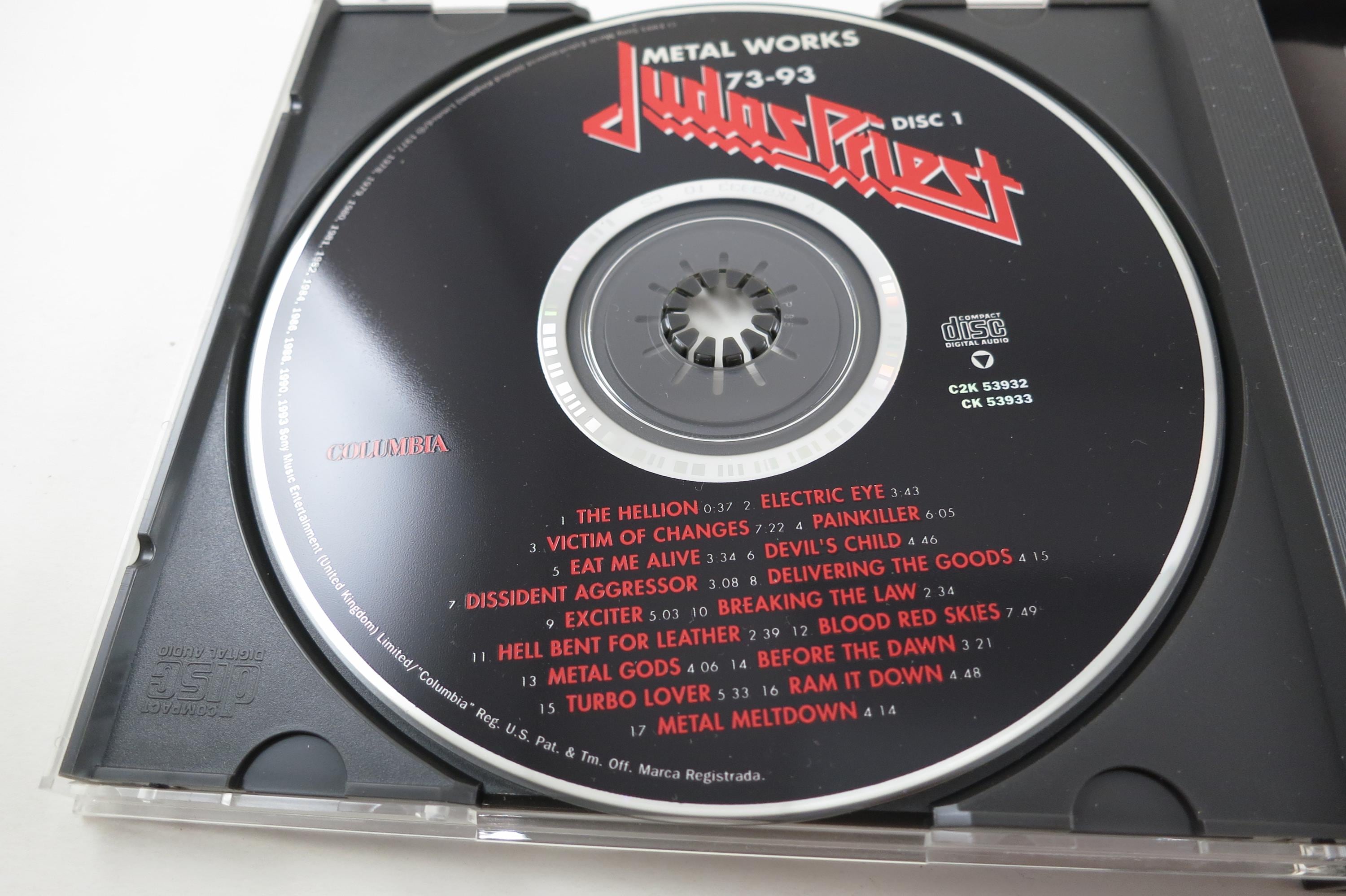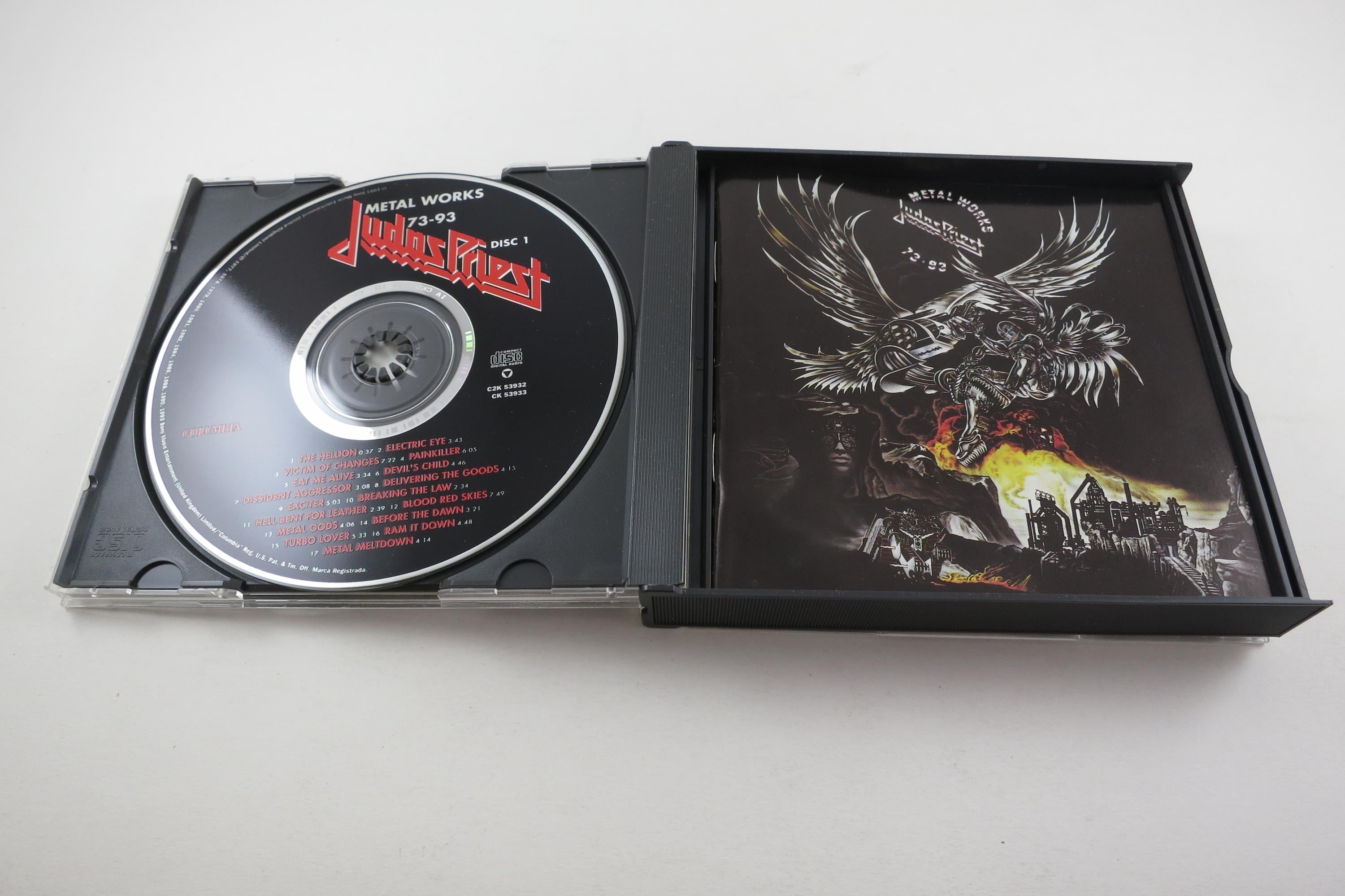 1993 Judas Priest CD Set Metal Works 73-93 2 Disc Set. Includes the booklet and Hype Sticker. Tracks are as follows