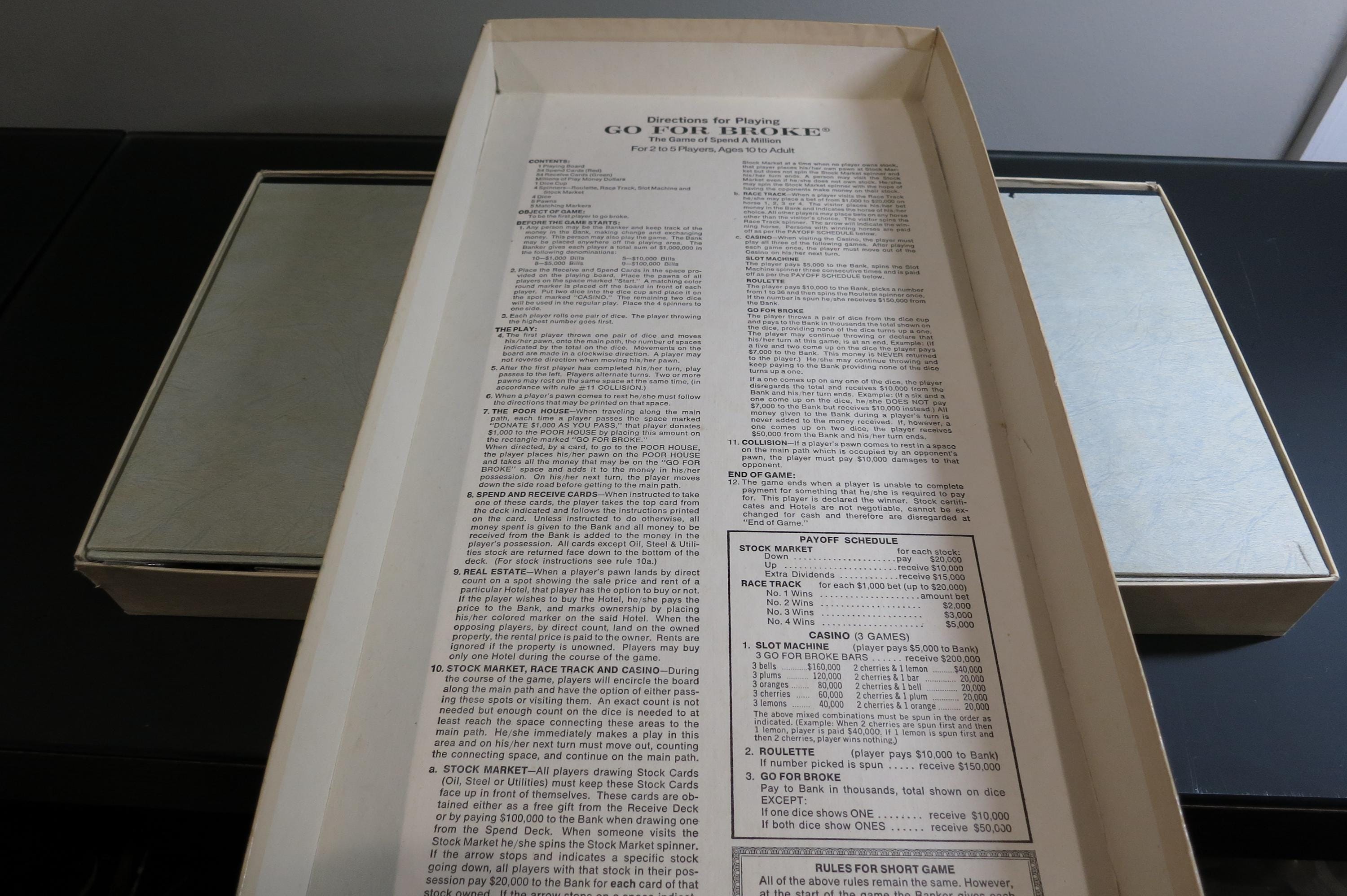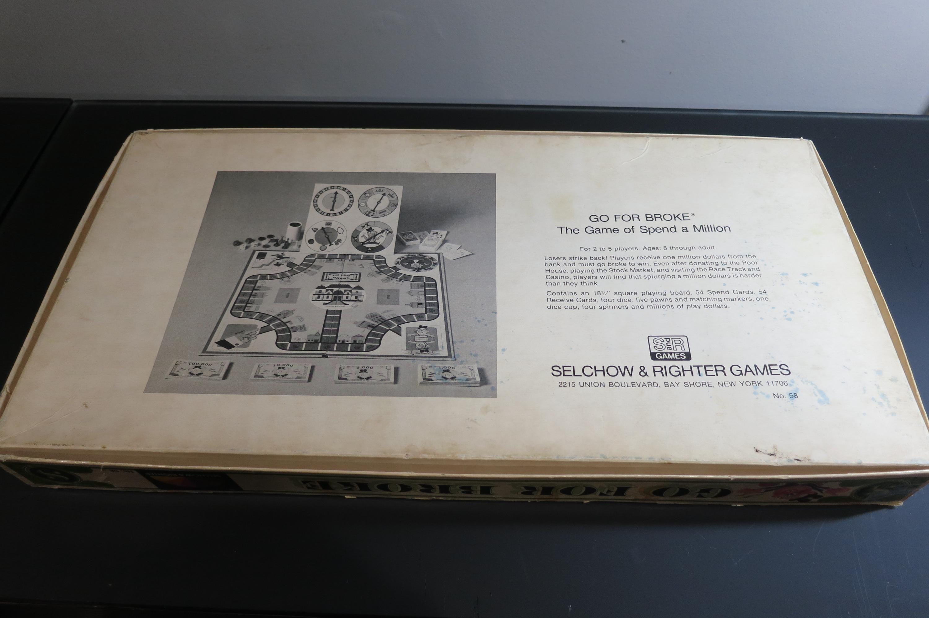 Vintage 1976 Board Game Go For Broke Sel-Right Games. The Game of Spend a Million!!