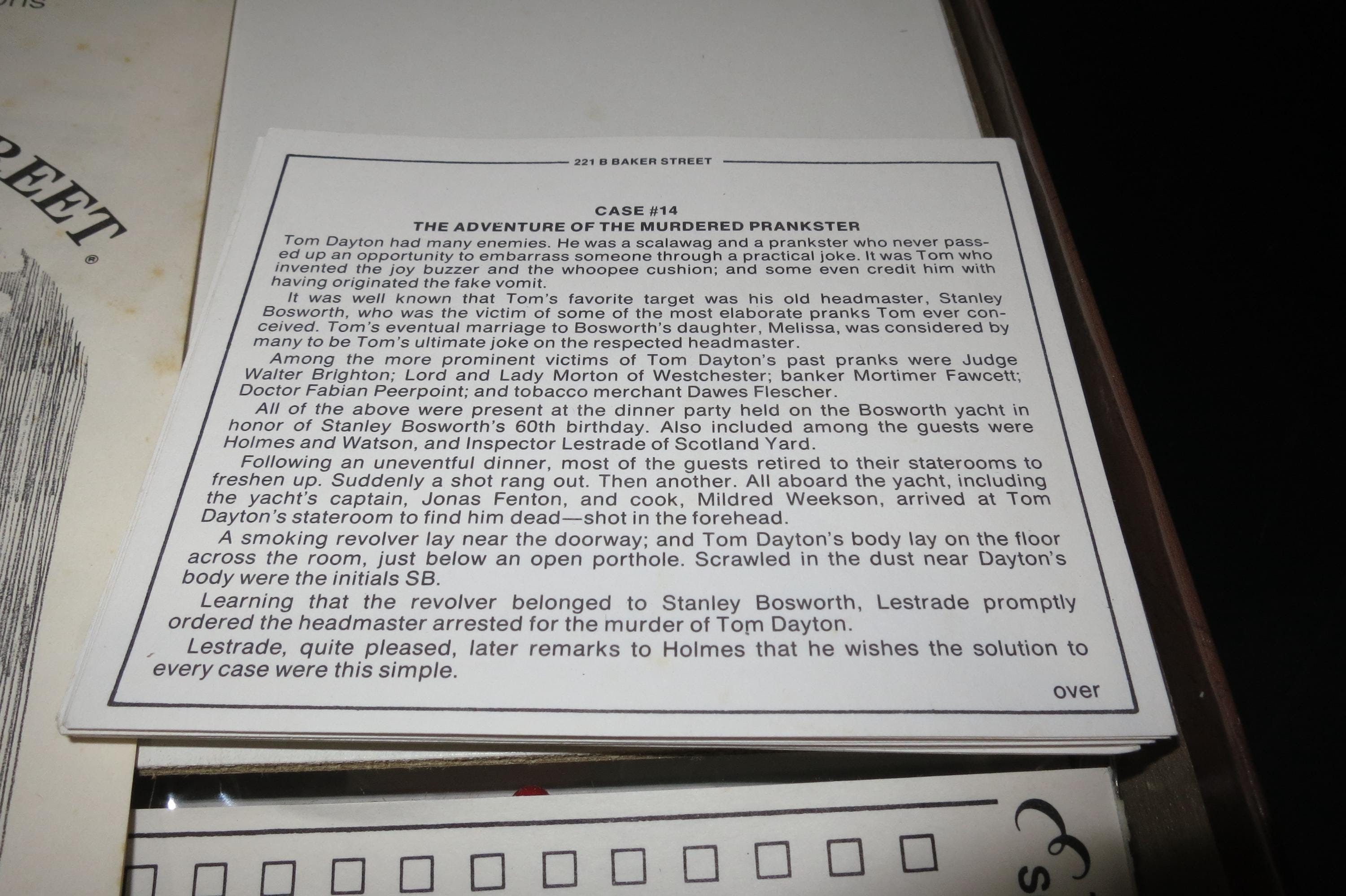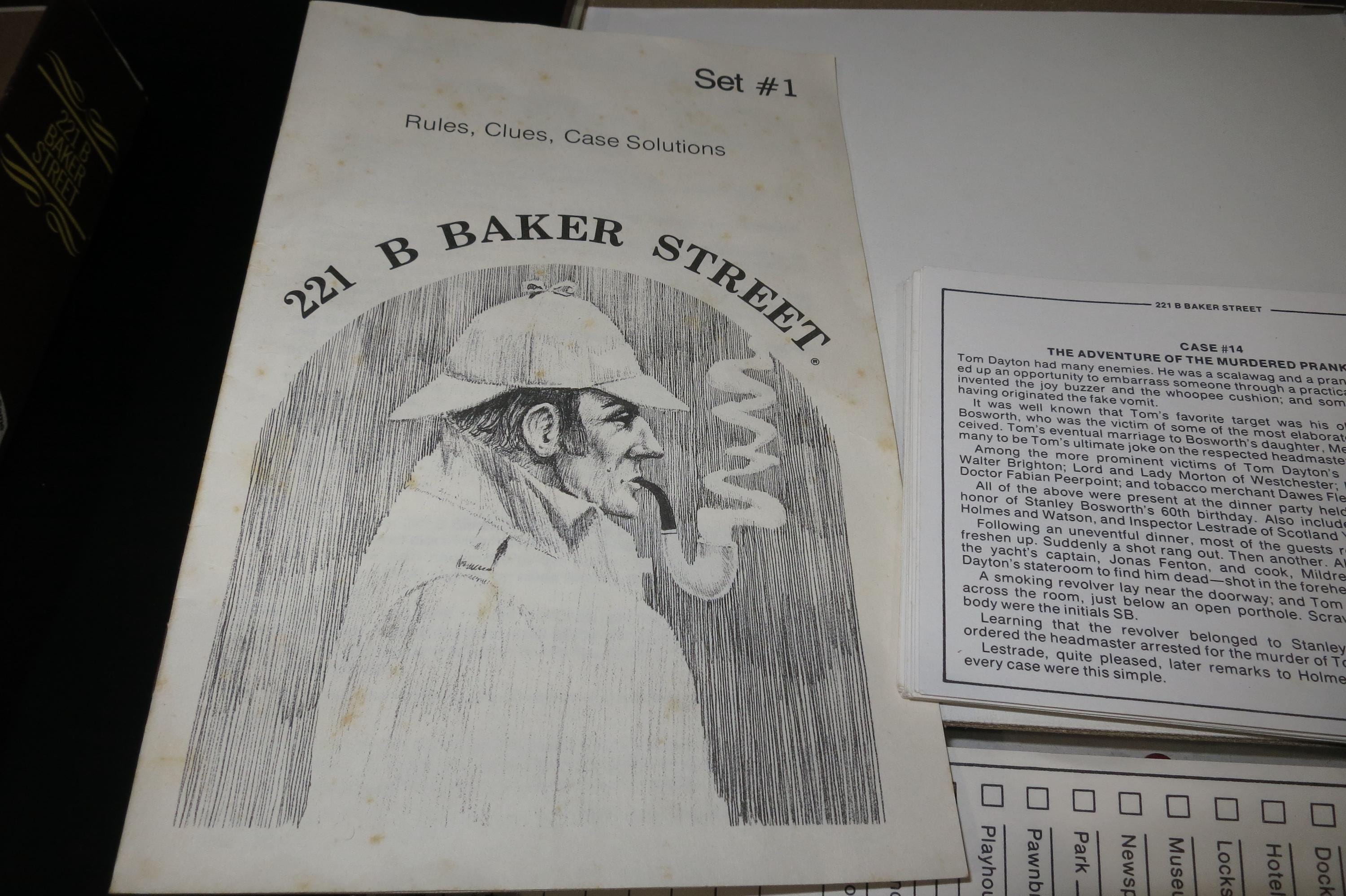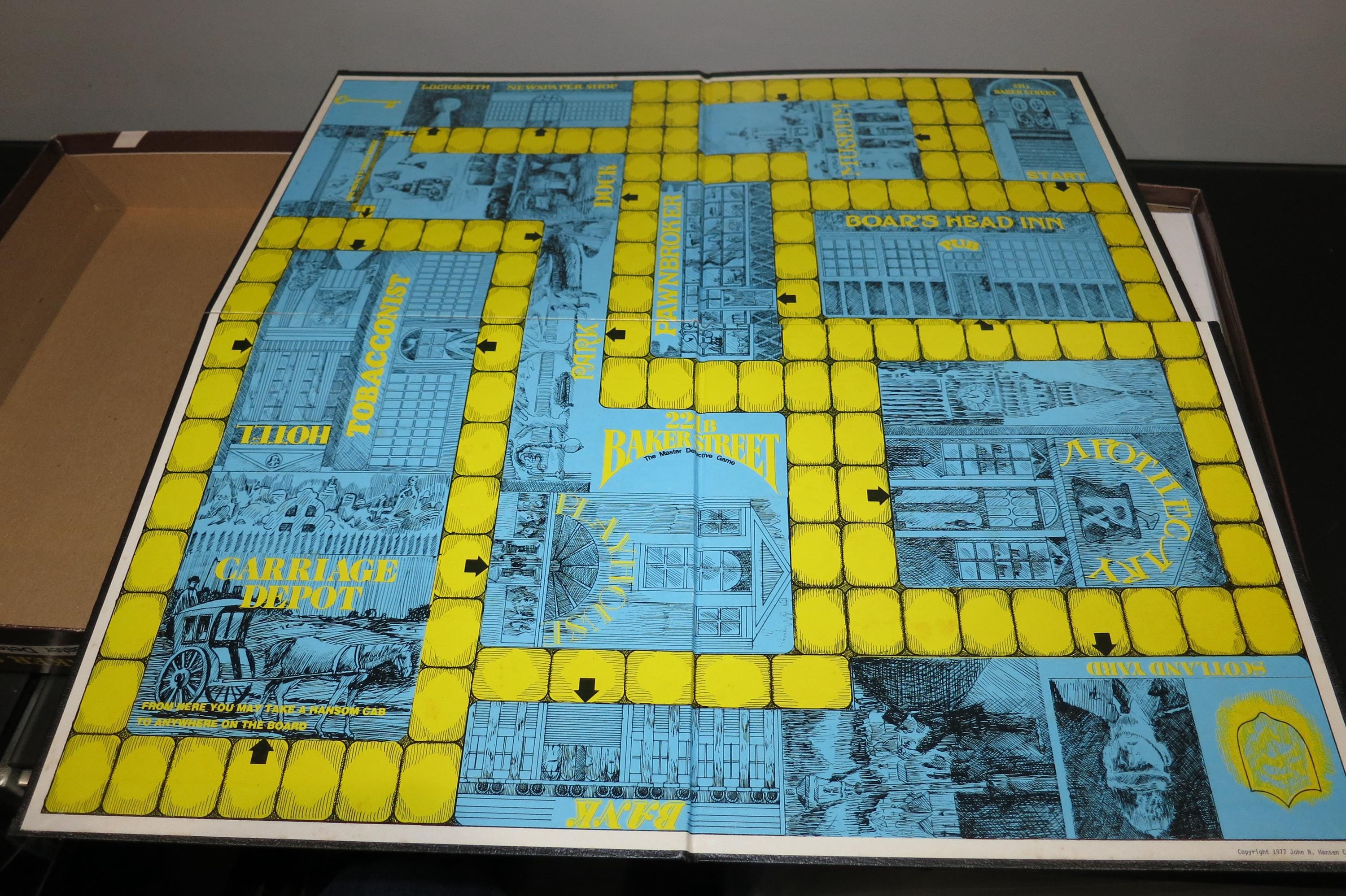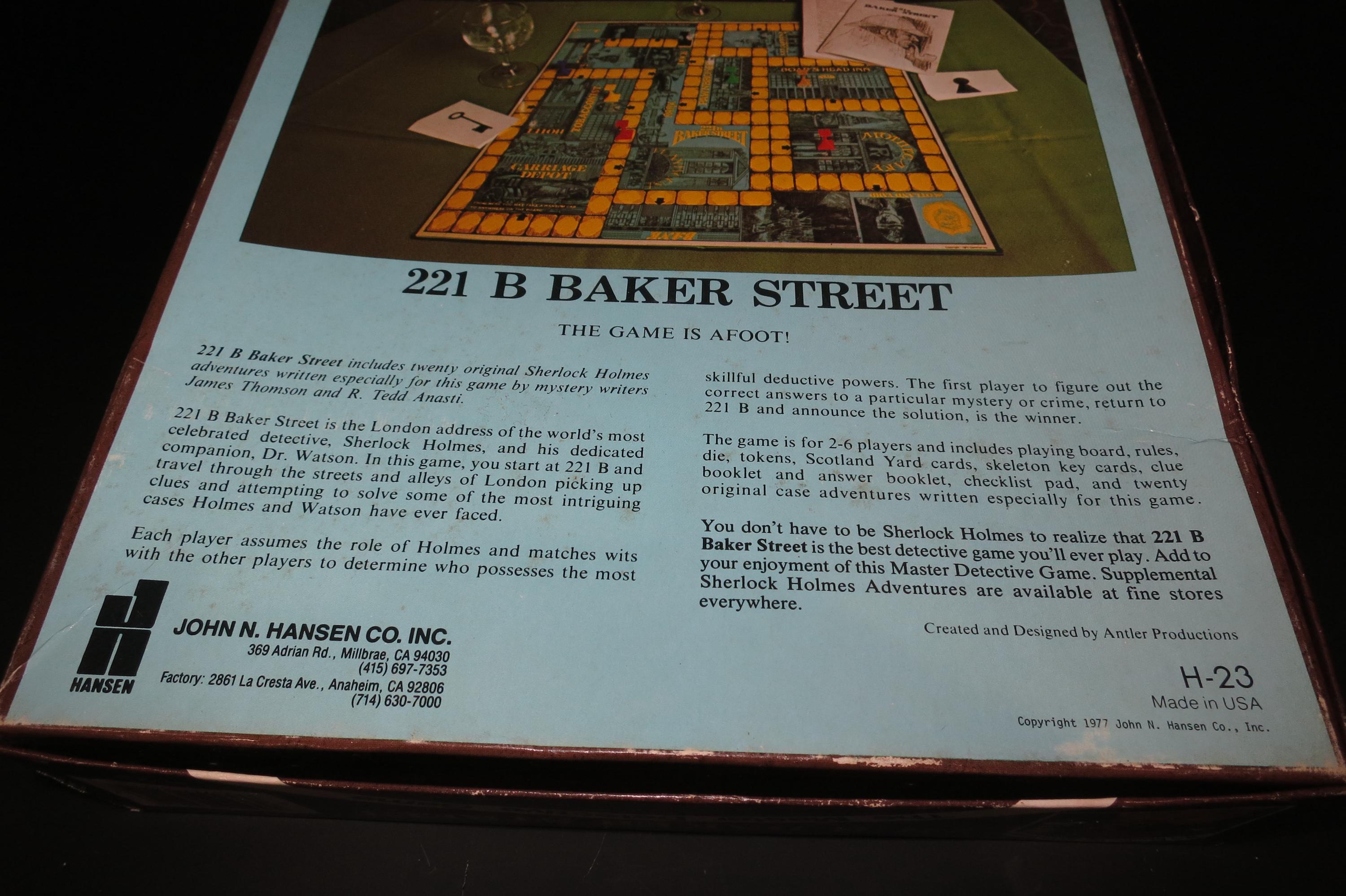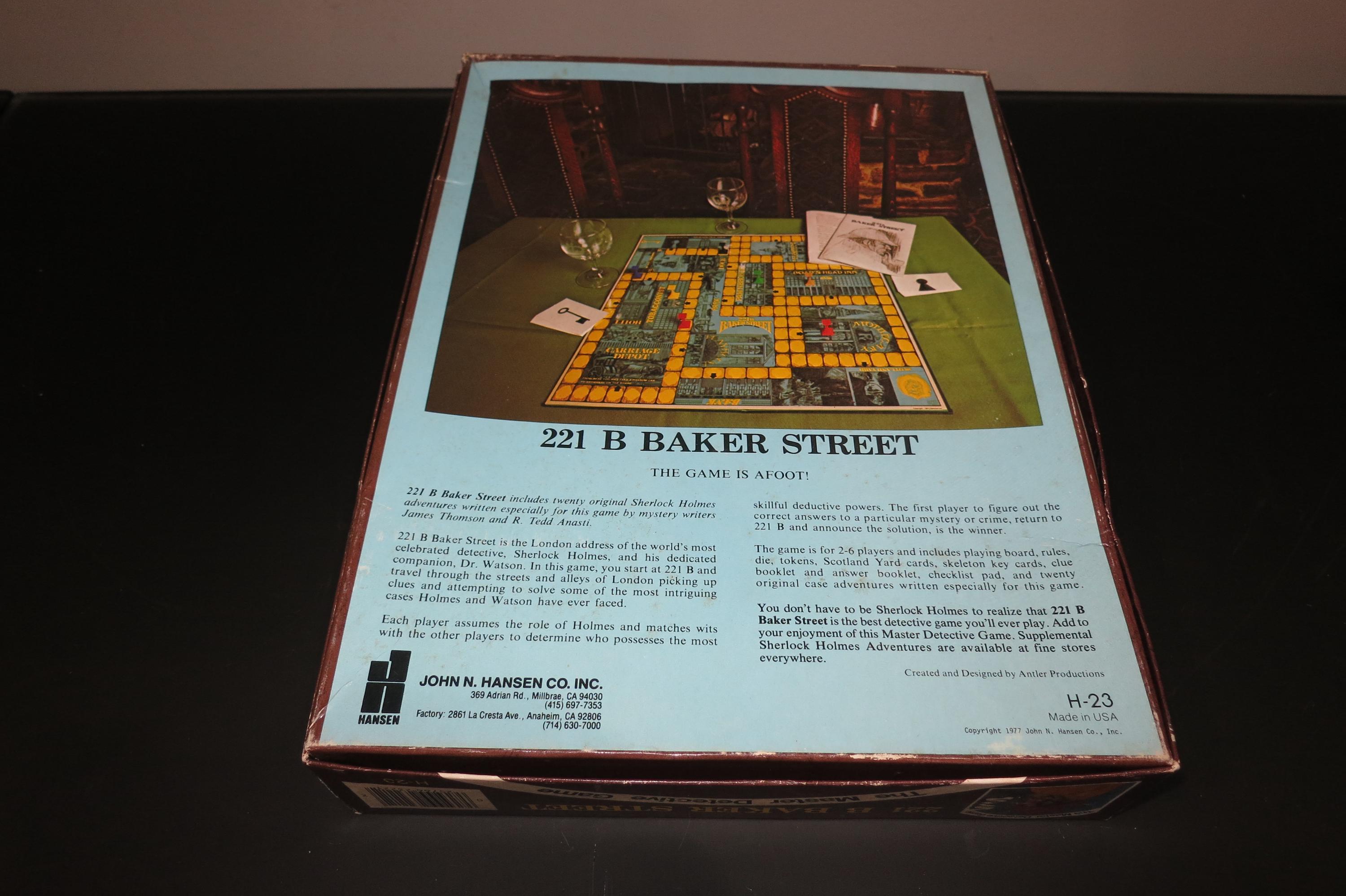 Vintage 1977 Hansen Board Game Sherlock Holmes 221B Baker Street The Master Detective Game 100% Complete, including all the case cards. Fun game to play.