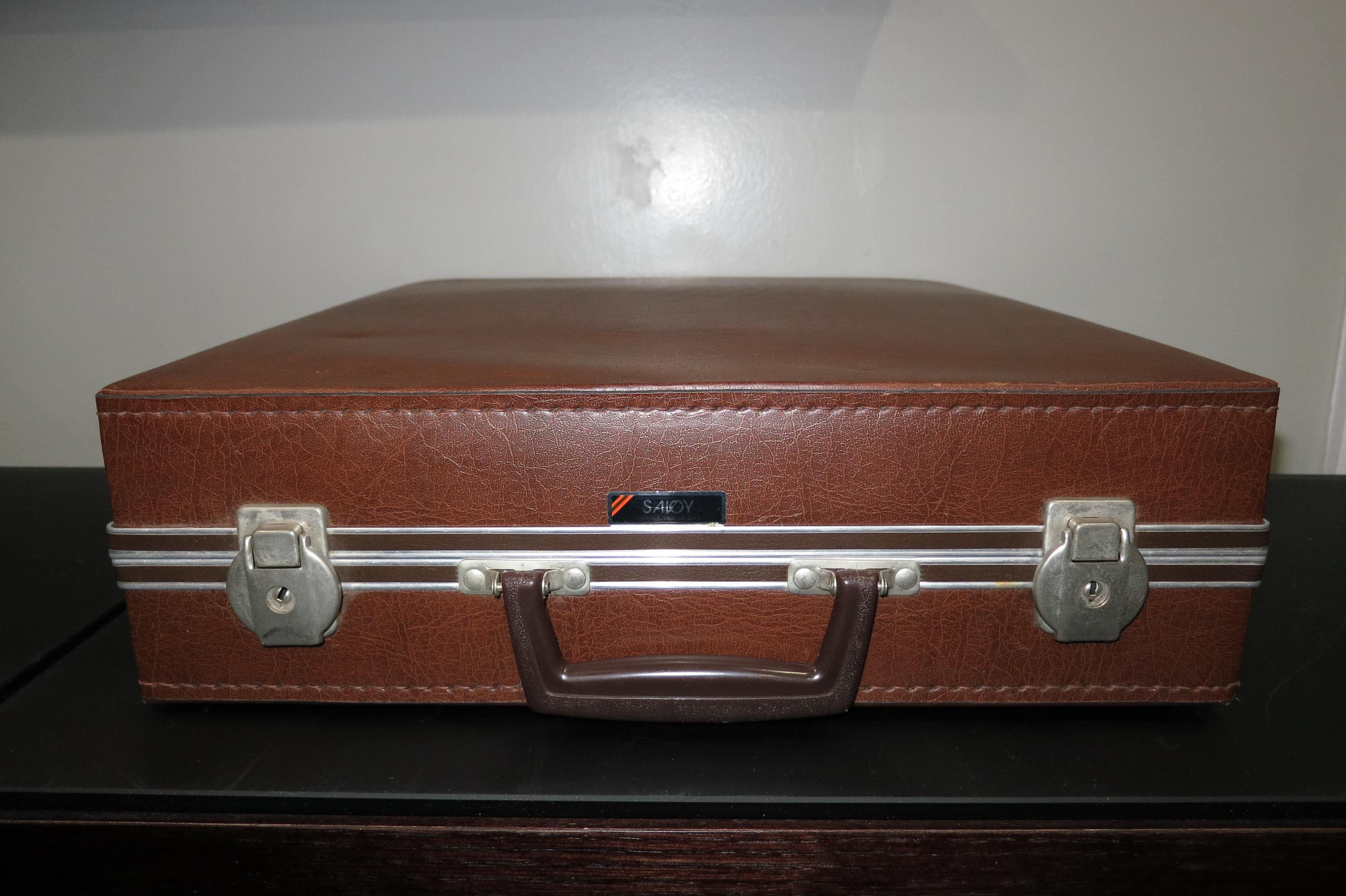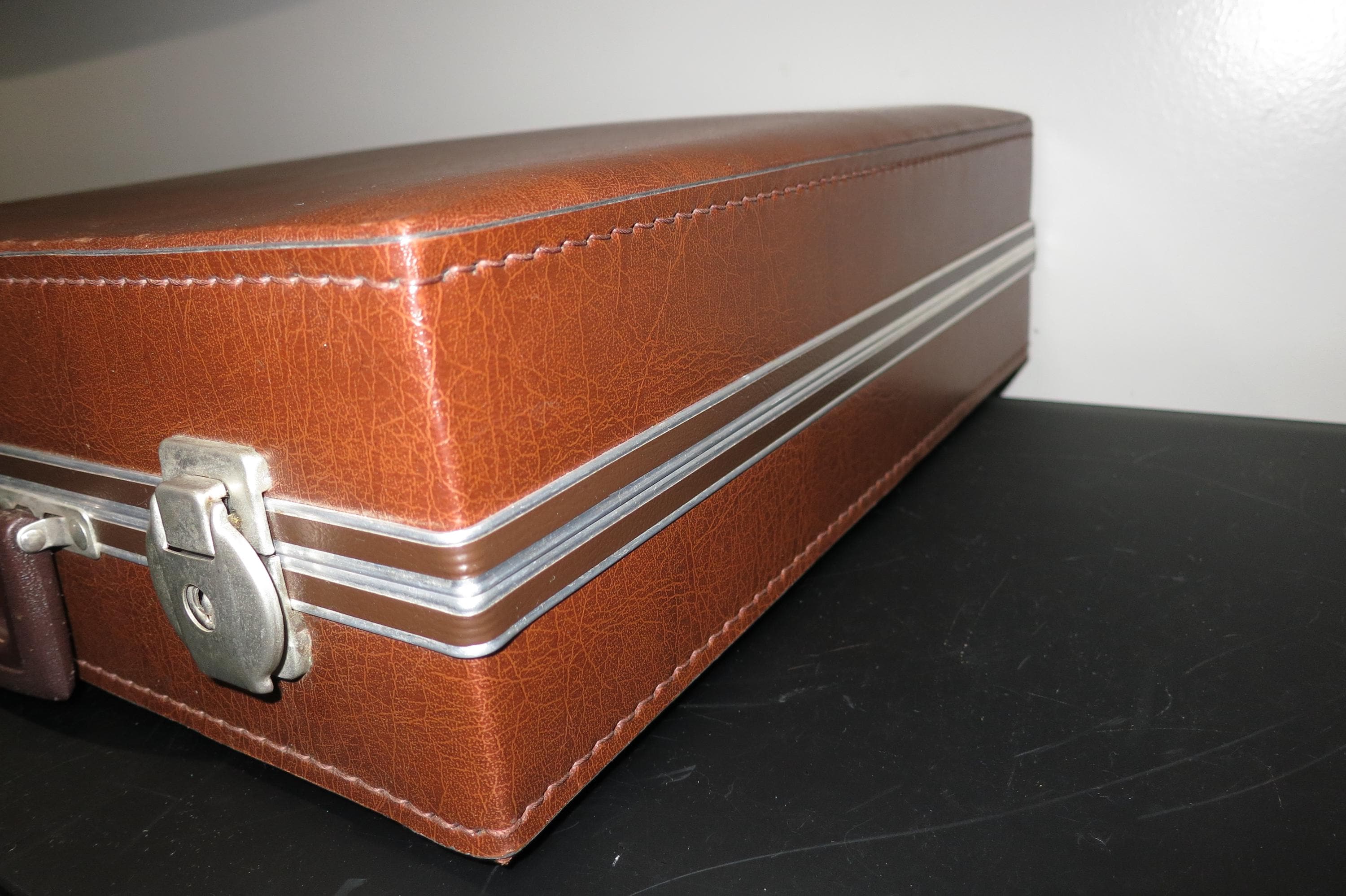 Vintage Brown Faux Leather VHS Carrying Case with Latches, Locks and Keys HTF