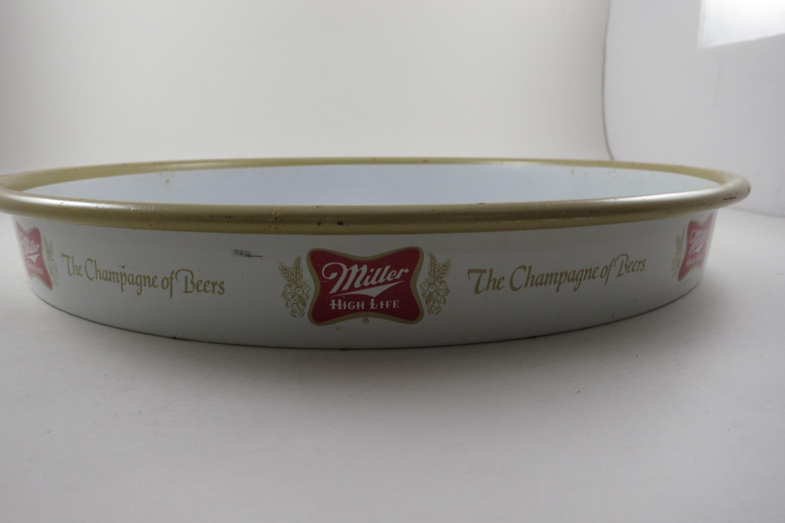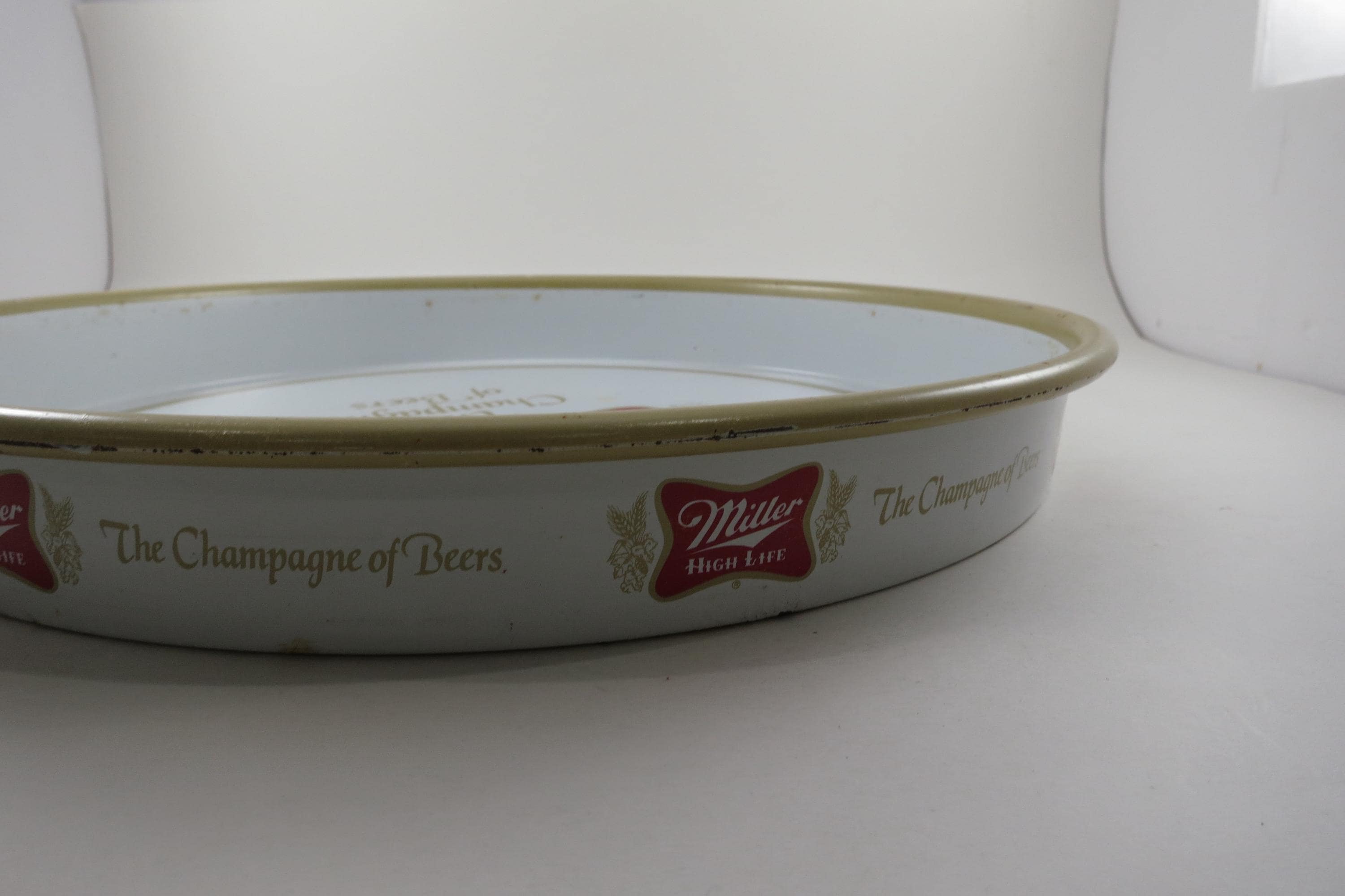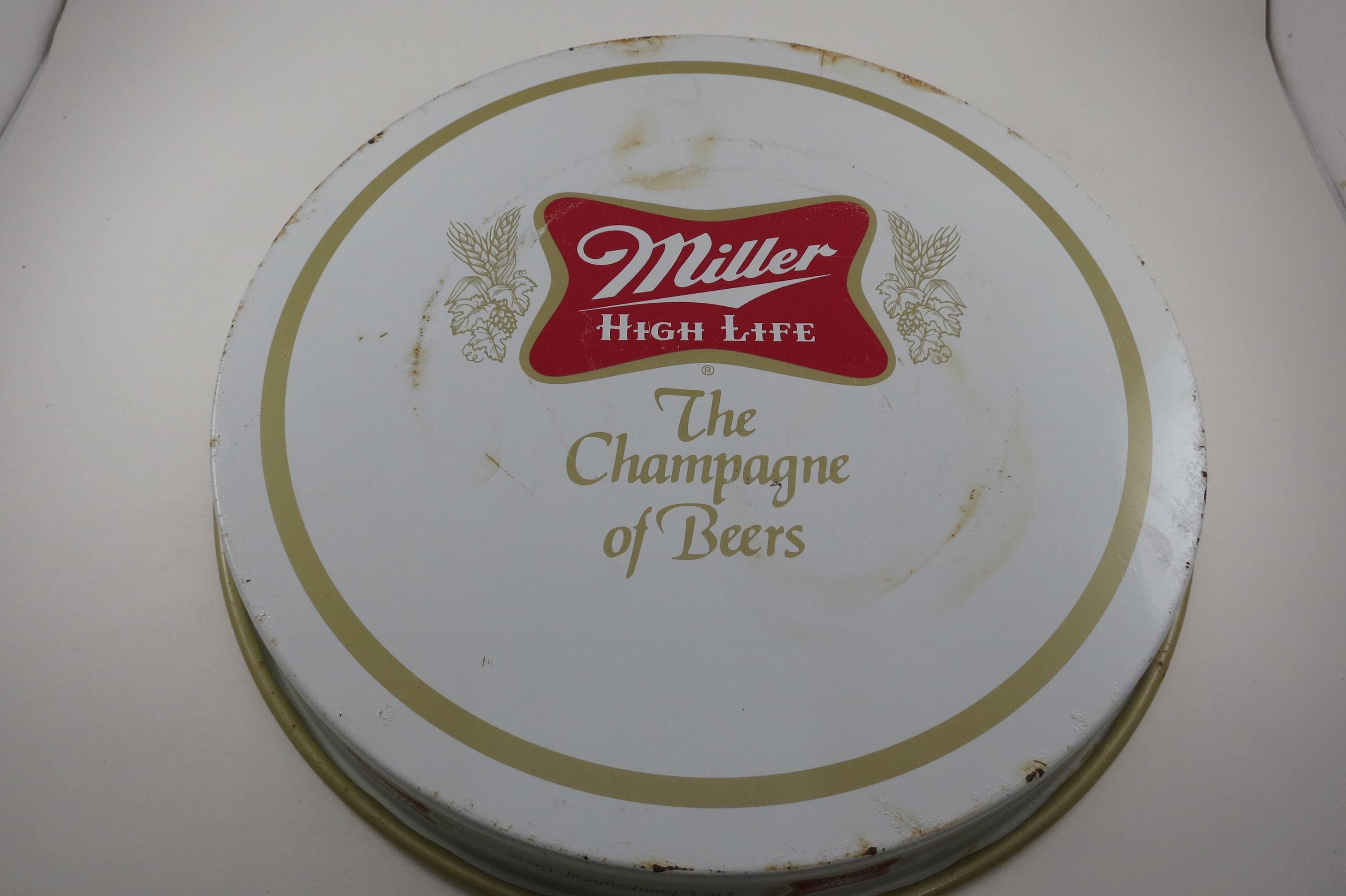 Vintage 13 Inch Miller High Life The Champagne of Beers Round Metal Tray.