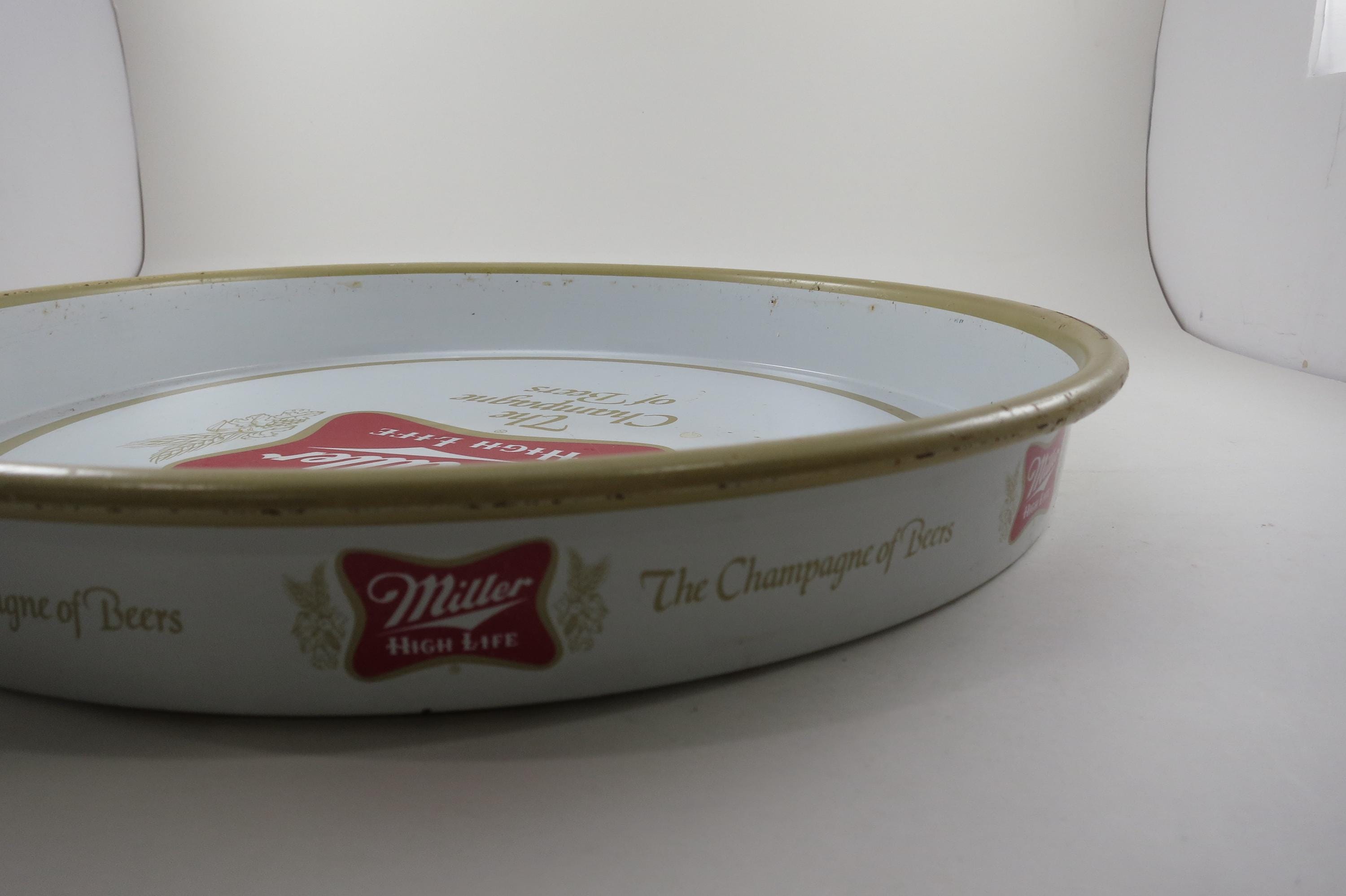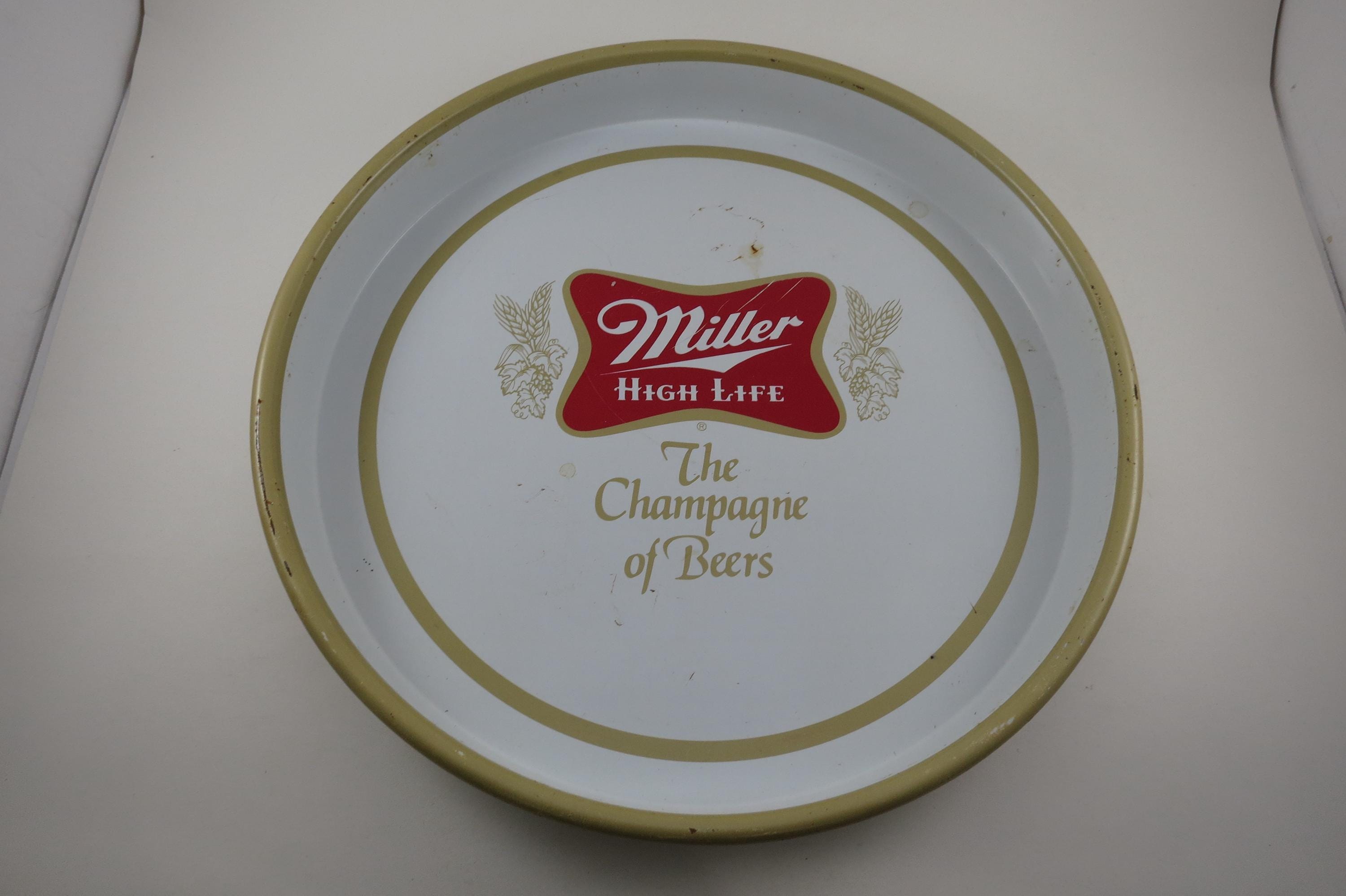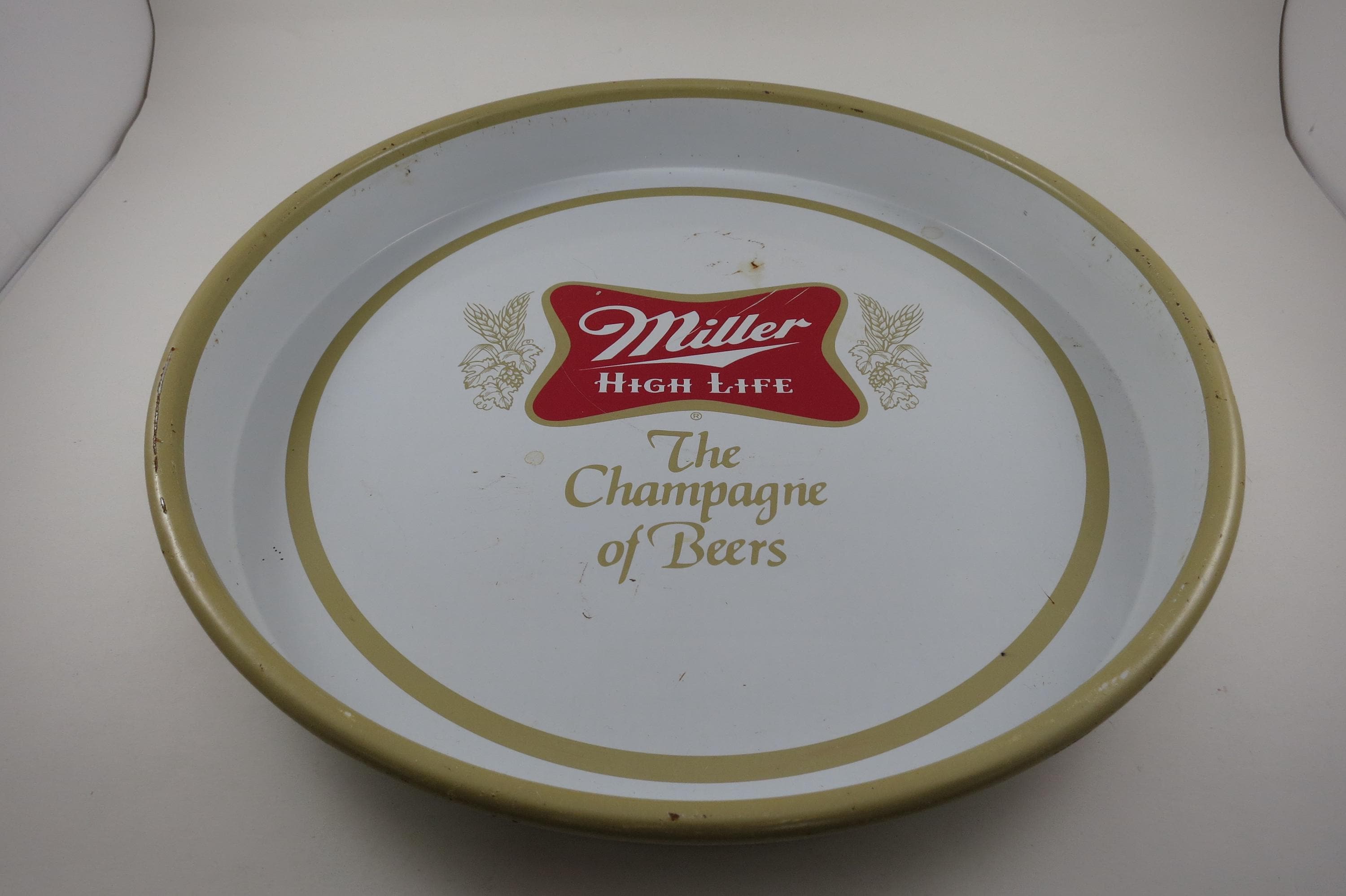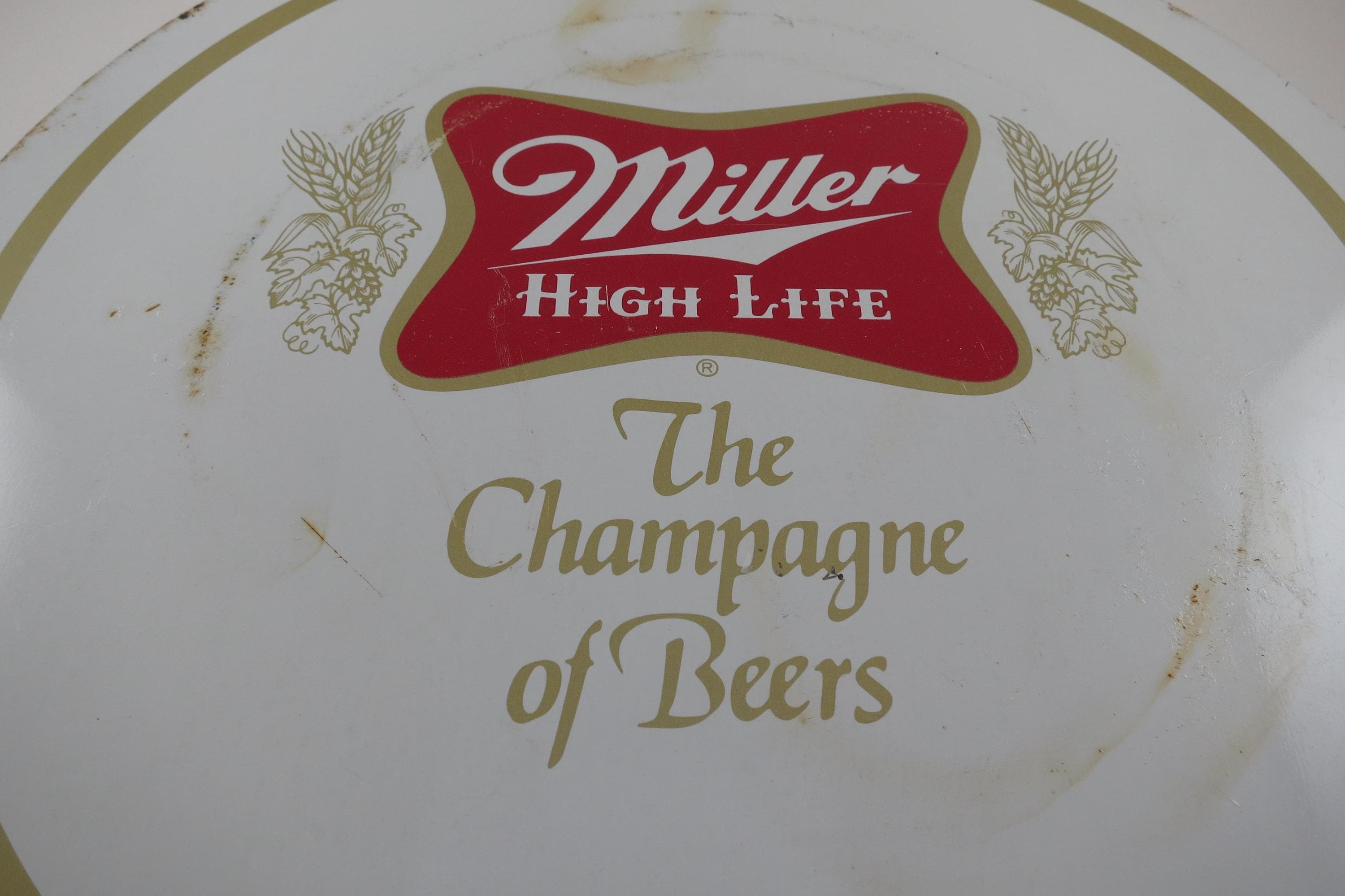 Vintage 13 Inch Miller High Life The Champagne of Beers Round Metal Tray.