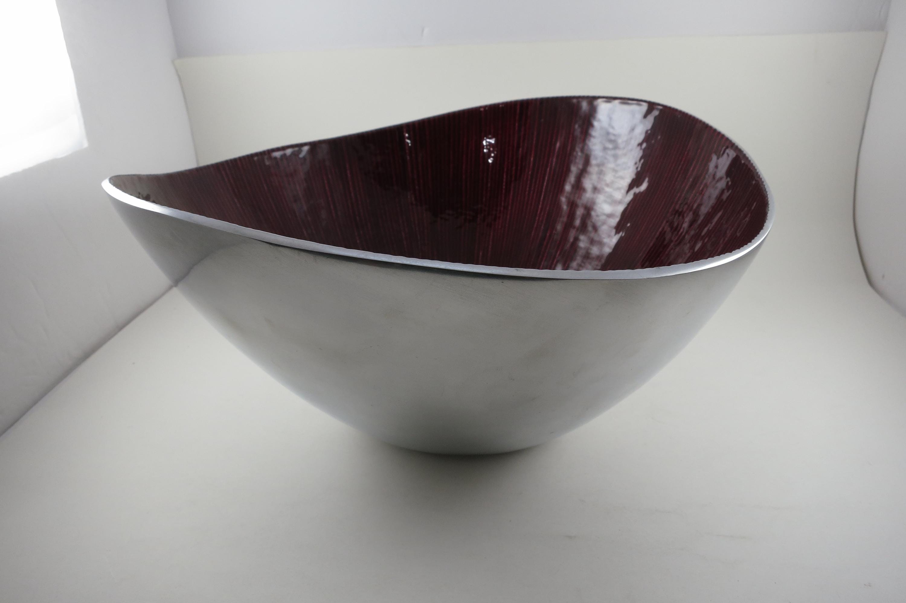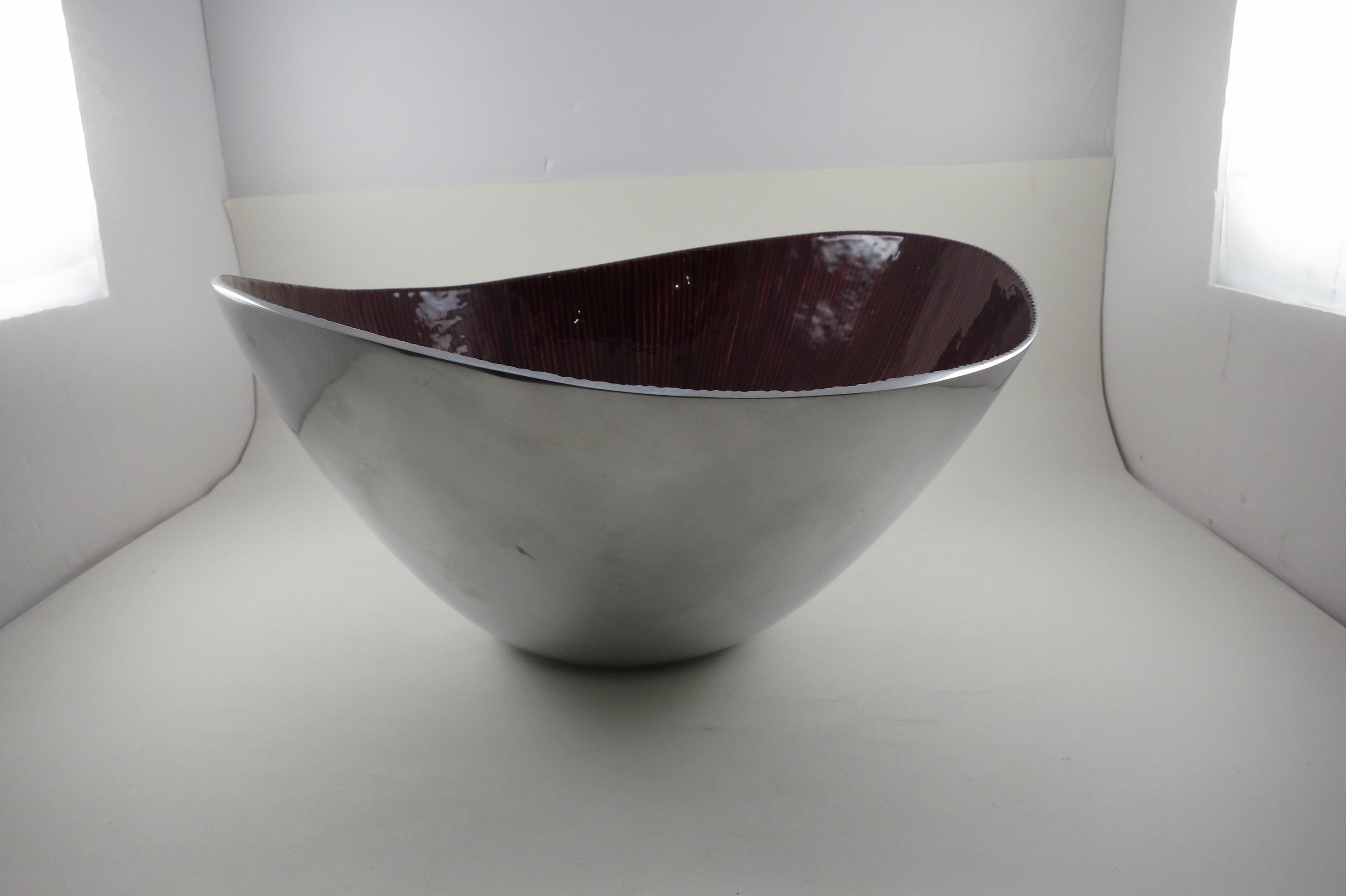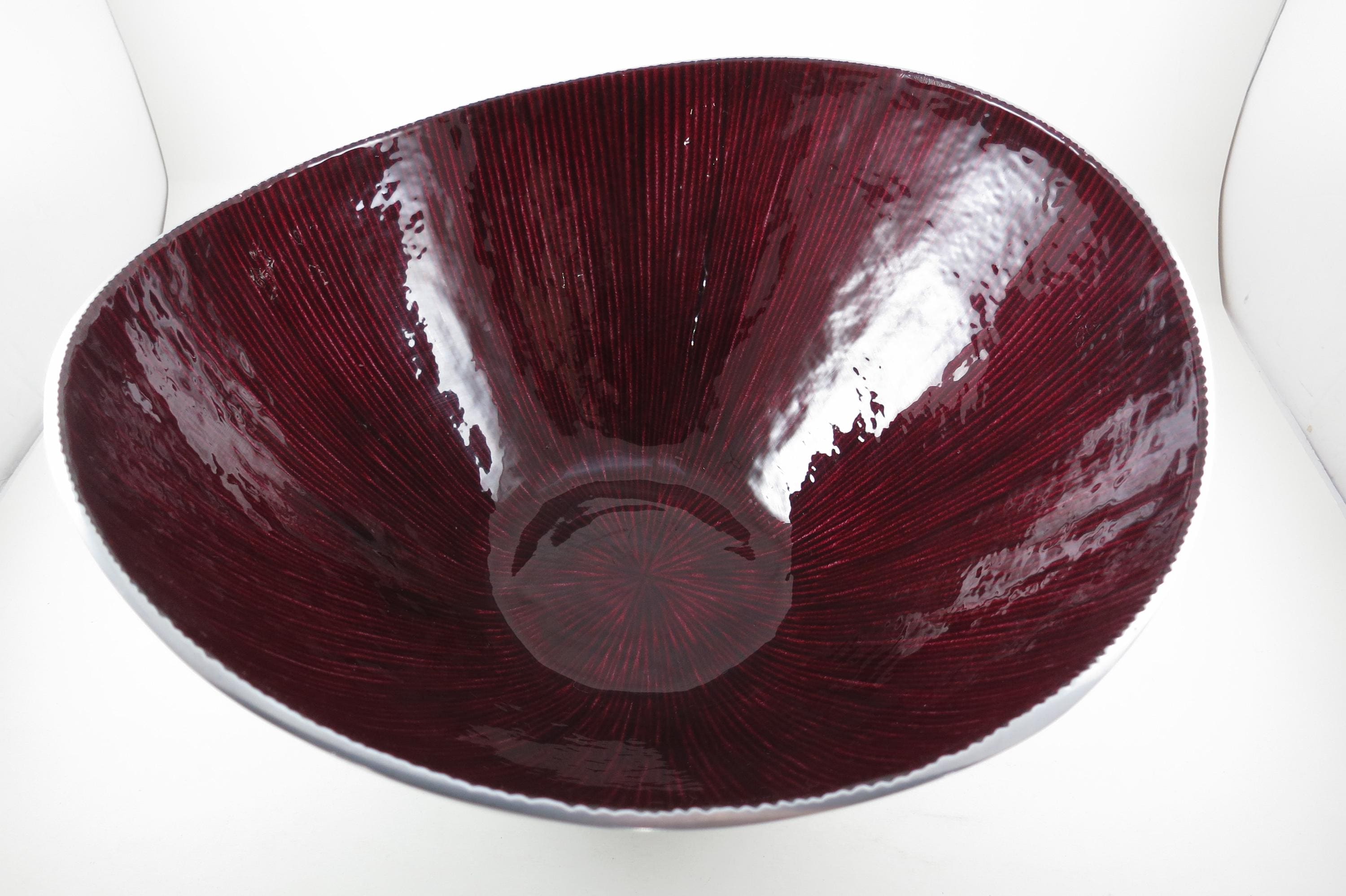 Vintage Dark Red Silver Serving Bowl – Hand Crafted 12-Inch Organic Collection