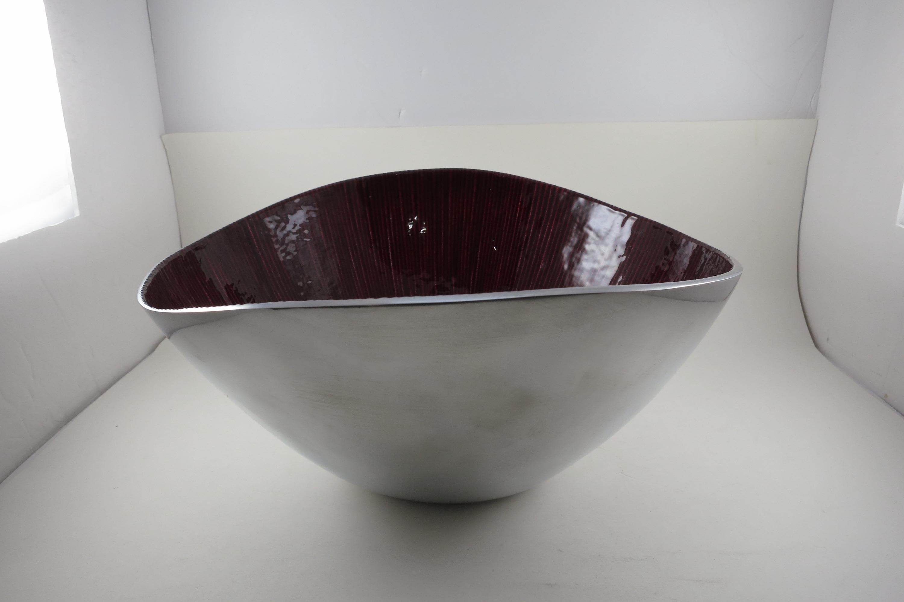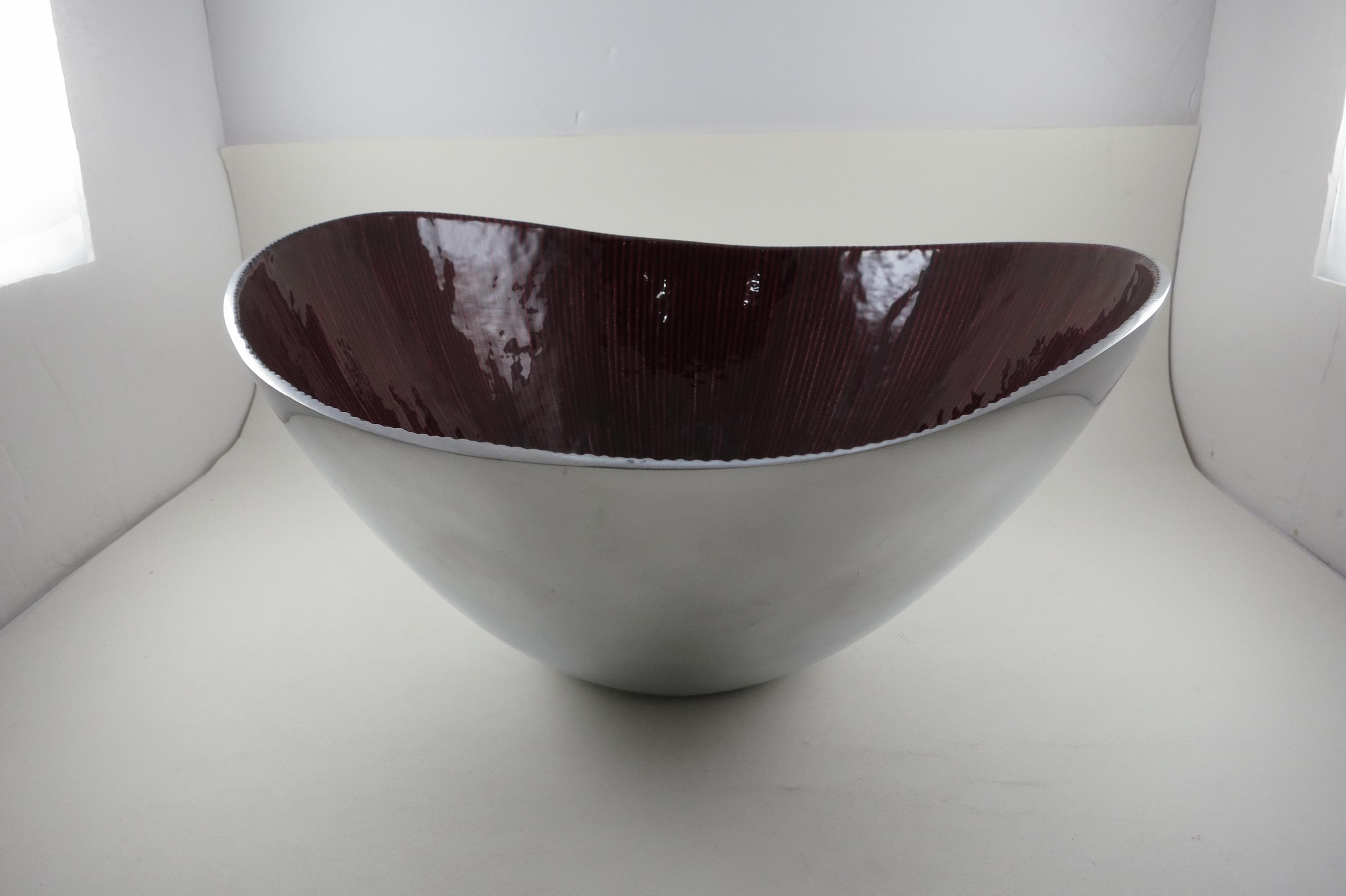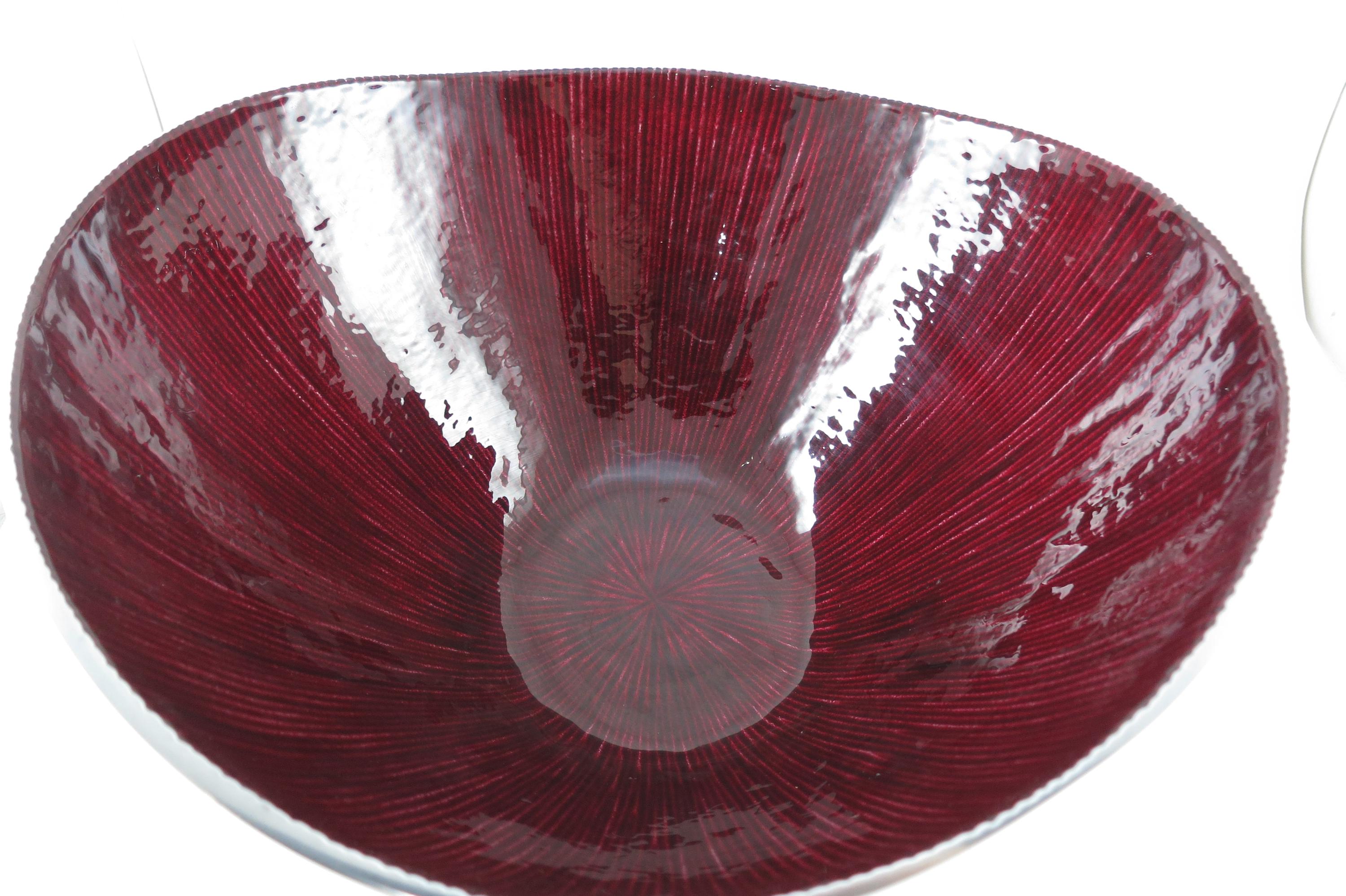 Vintage Dark Red Silver Serving Bowl – Hand Crafted 12-Inch Organic Collection