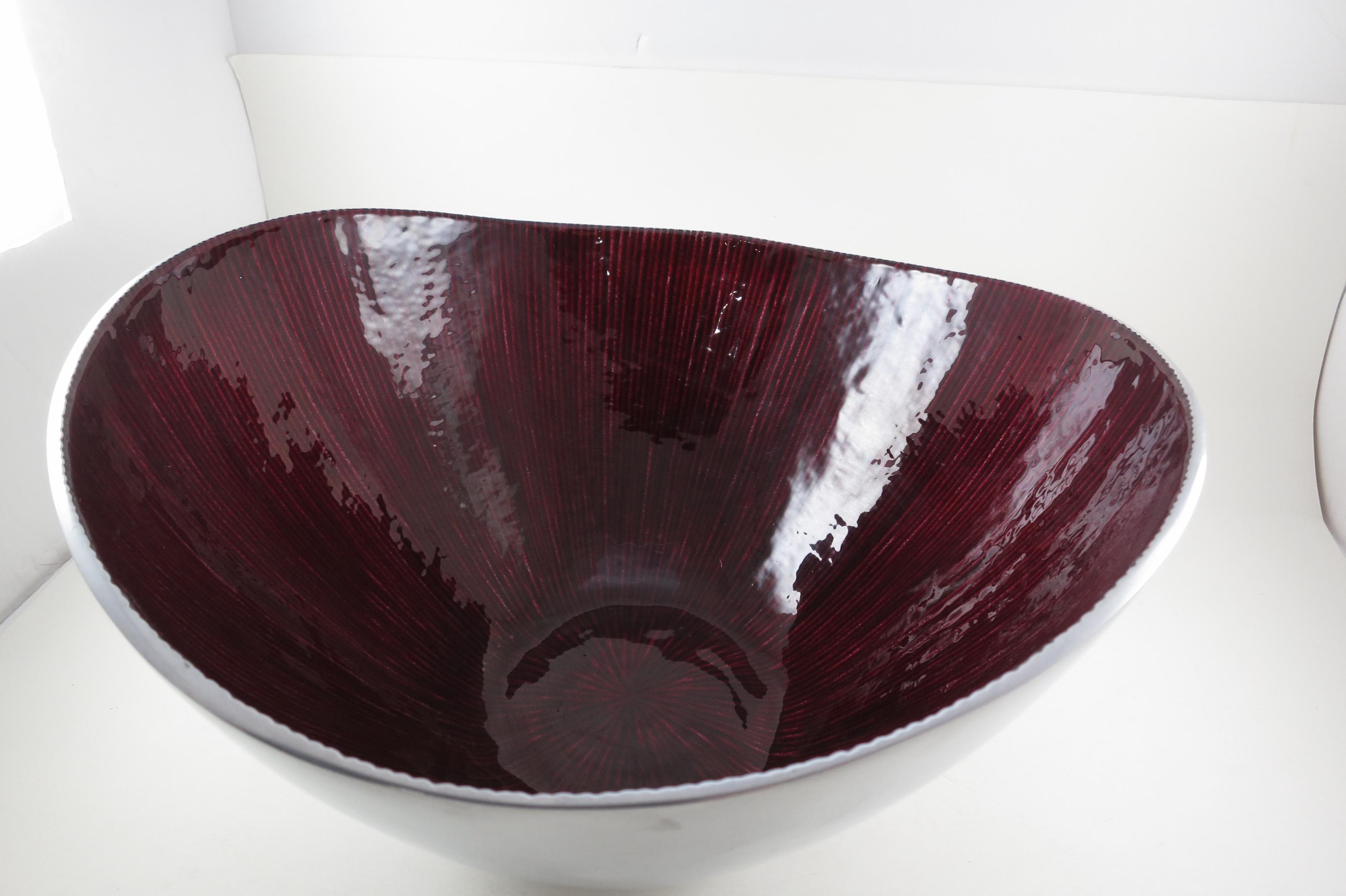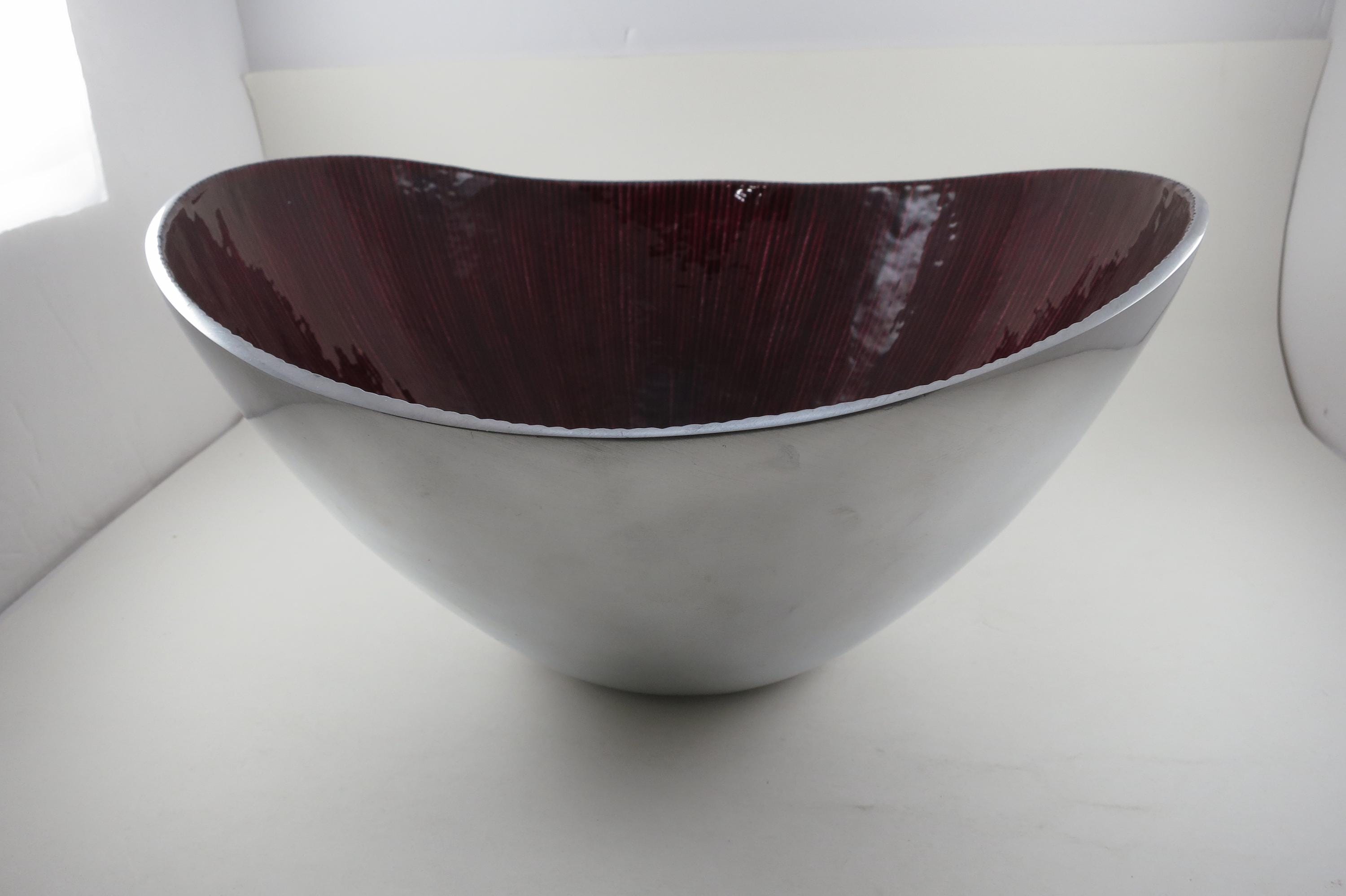 Vintage Simply Designz Organic Collection Dark Red & Silver Hand Crafted 12 Inch Large Serving Bowl Excellent Condition. 6 1/2 inches deep.