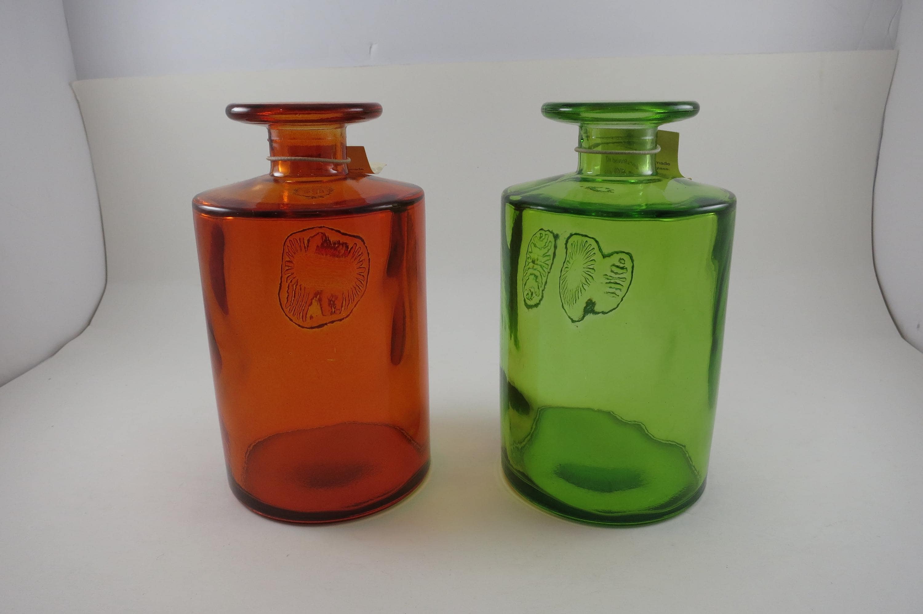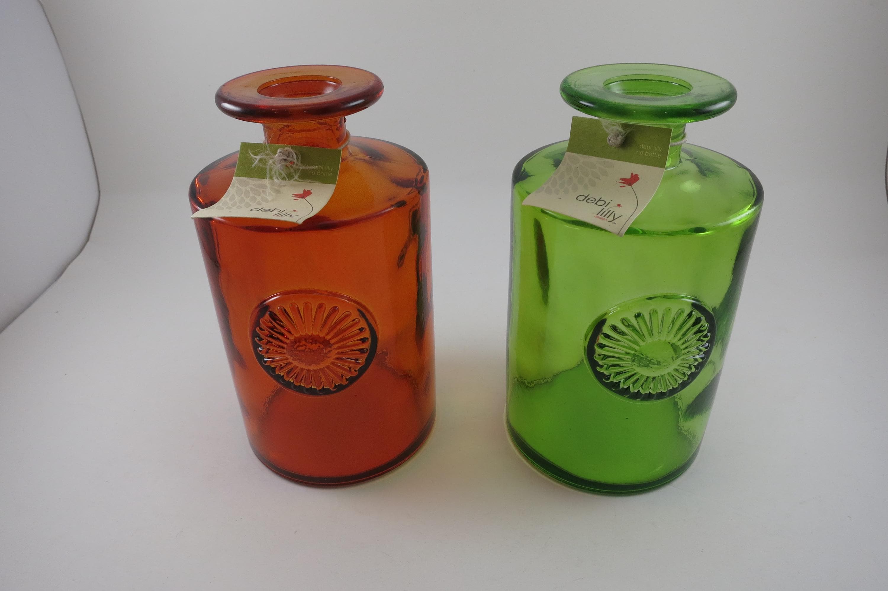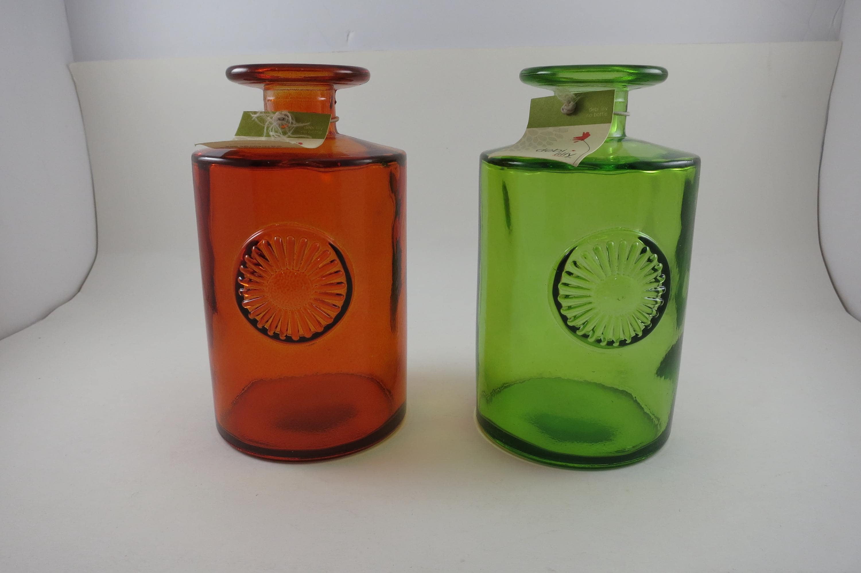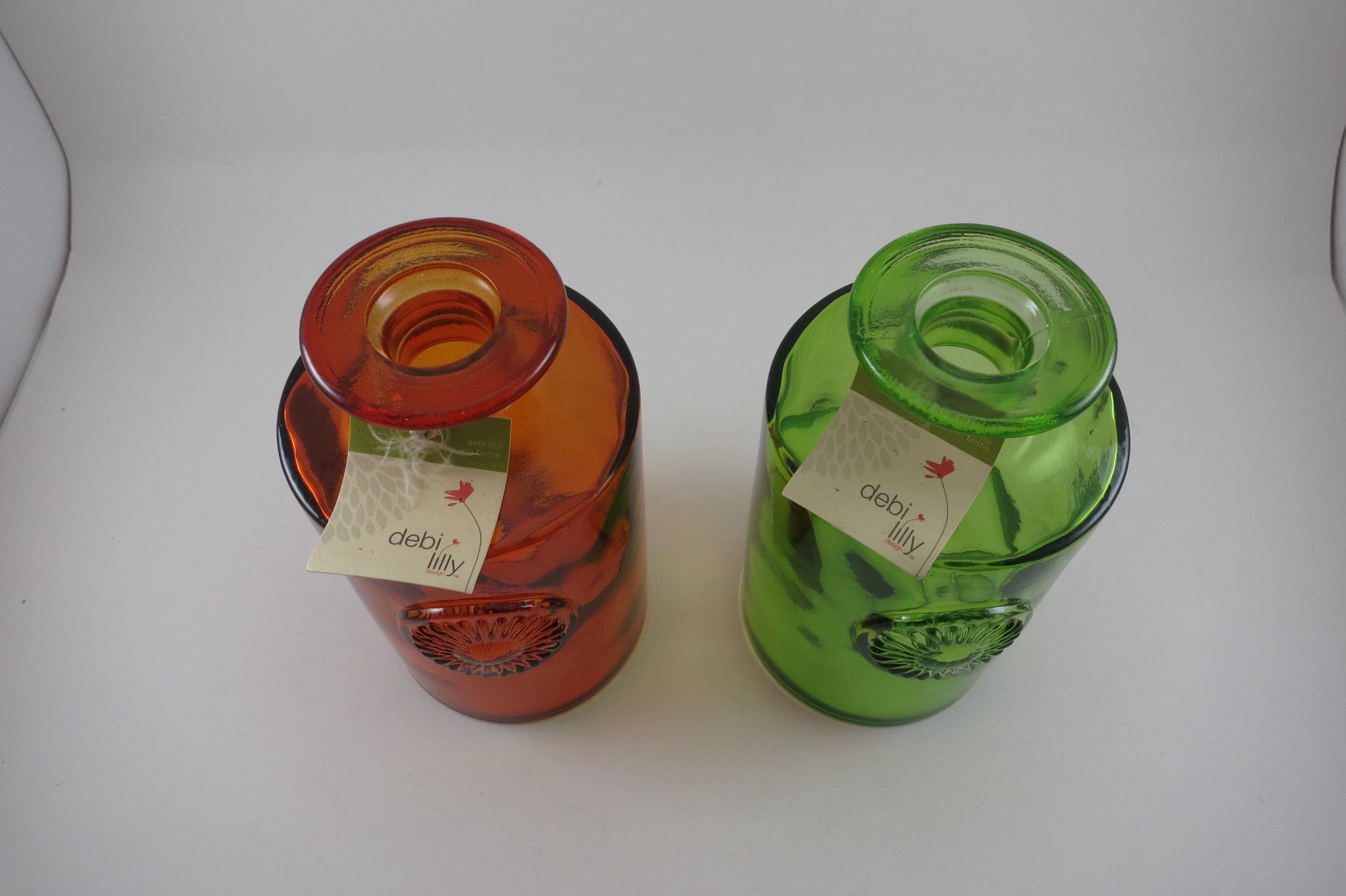 Pair of Debi Lilly Handcrafted Vases Made in Spain Unique Red Green.