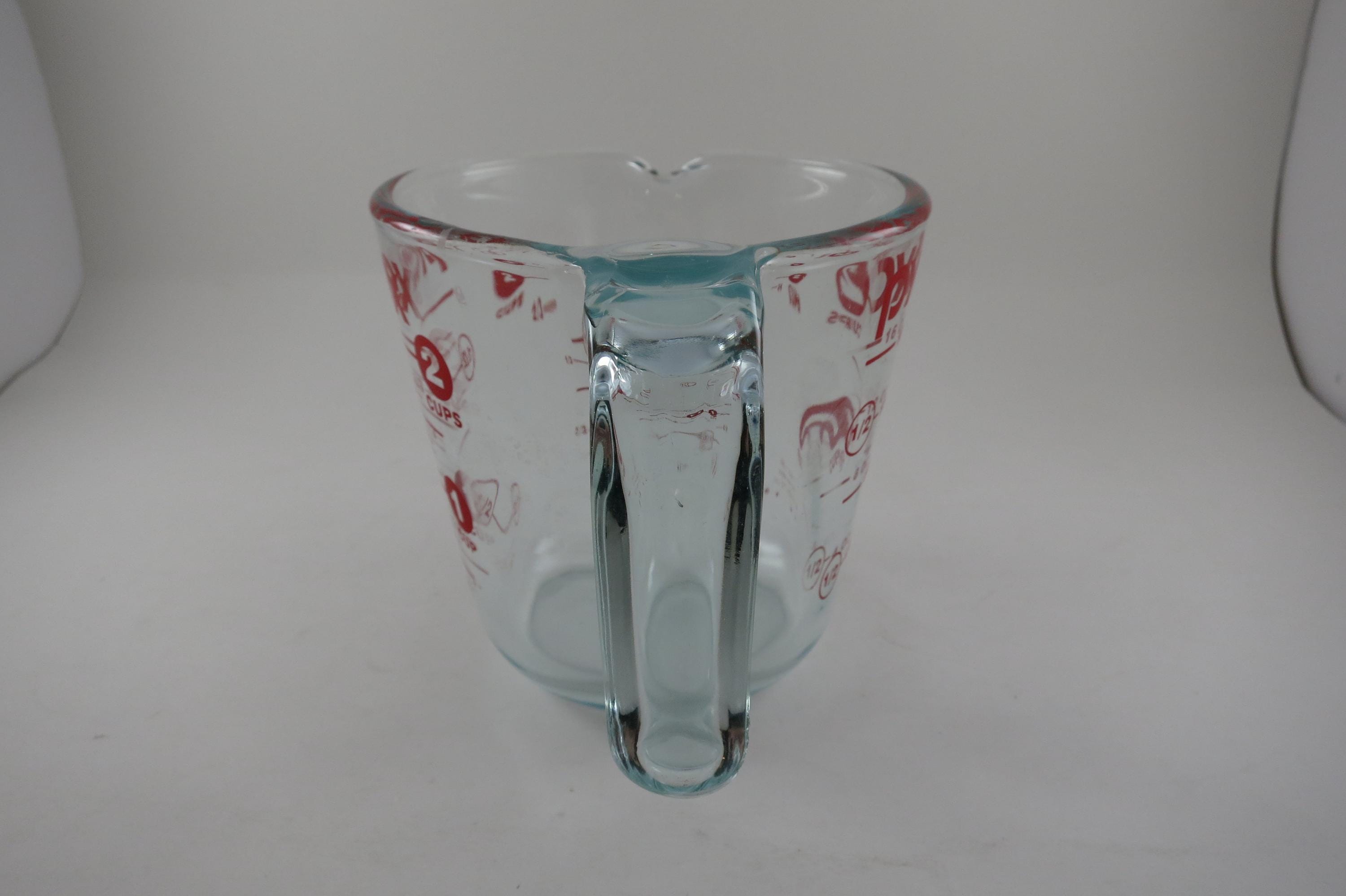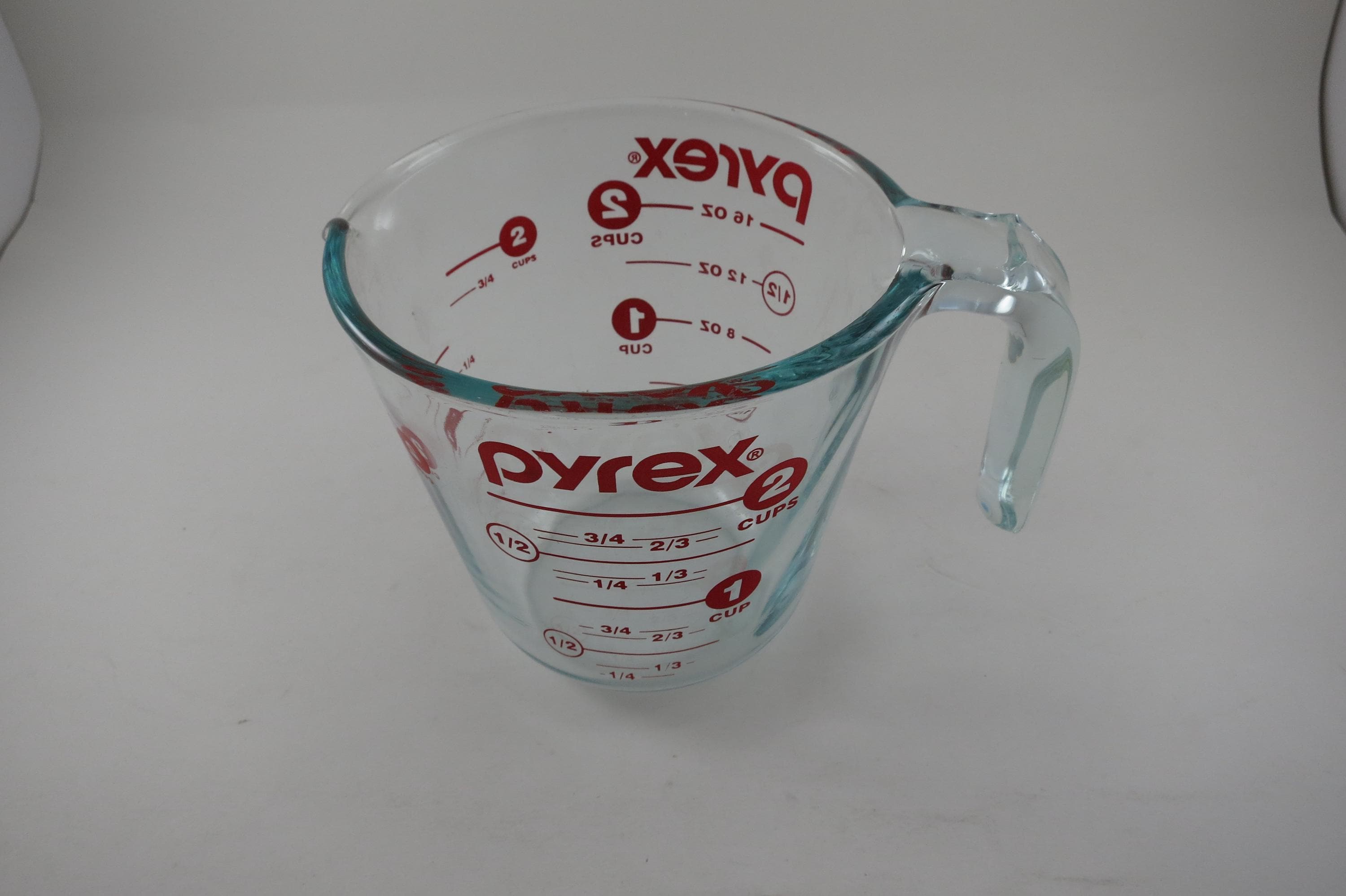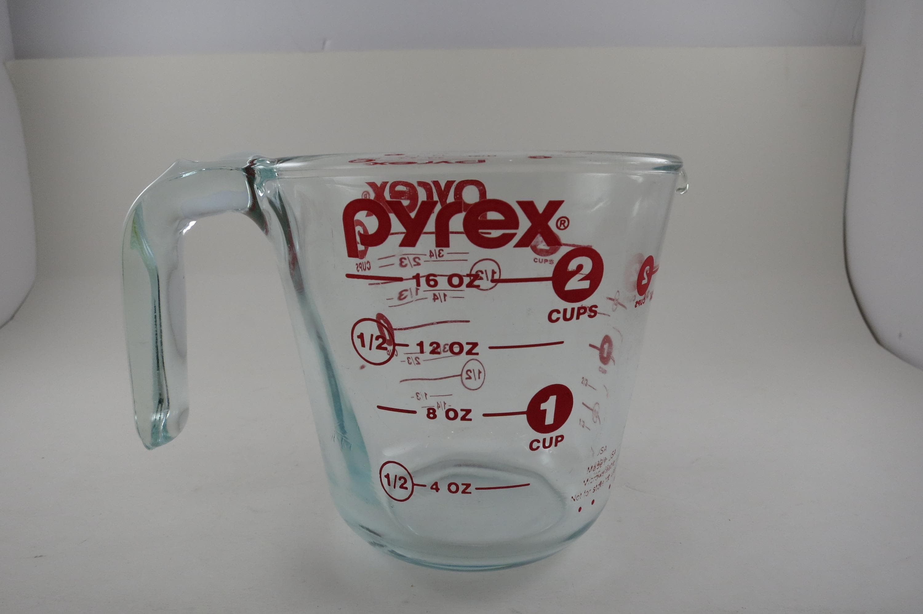 Vintage Red Letter Pyrex 2 Cup Measuring Cup with Handle Excellent Condition, no chips, cracks or damages. Light Use Wear.
