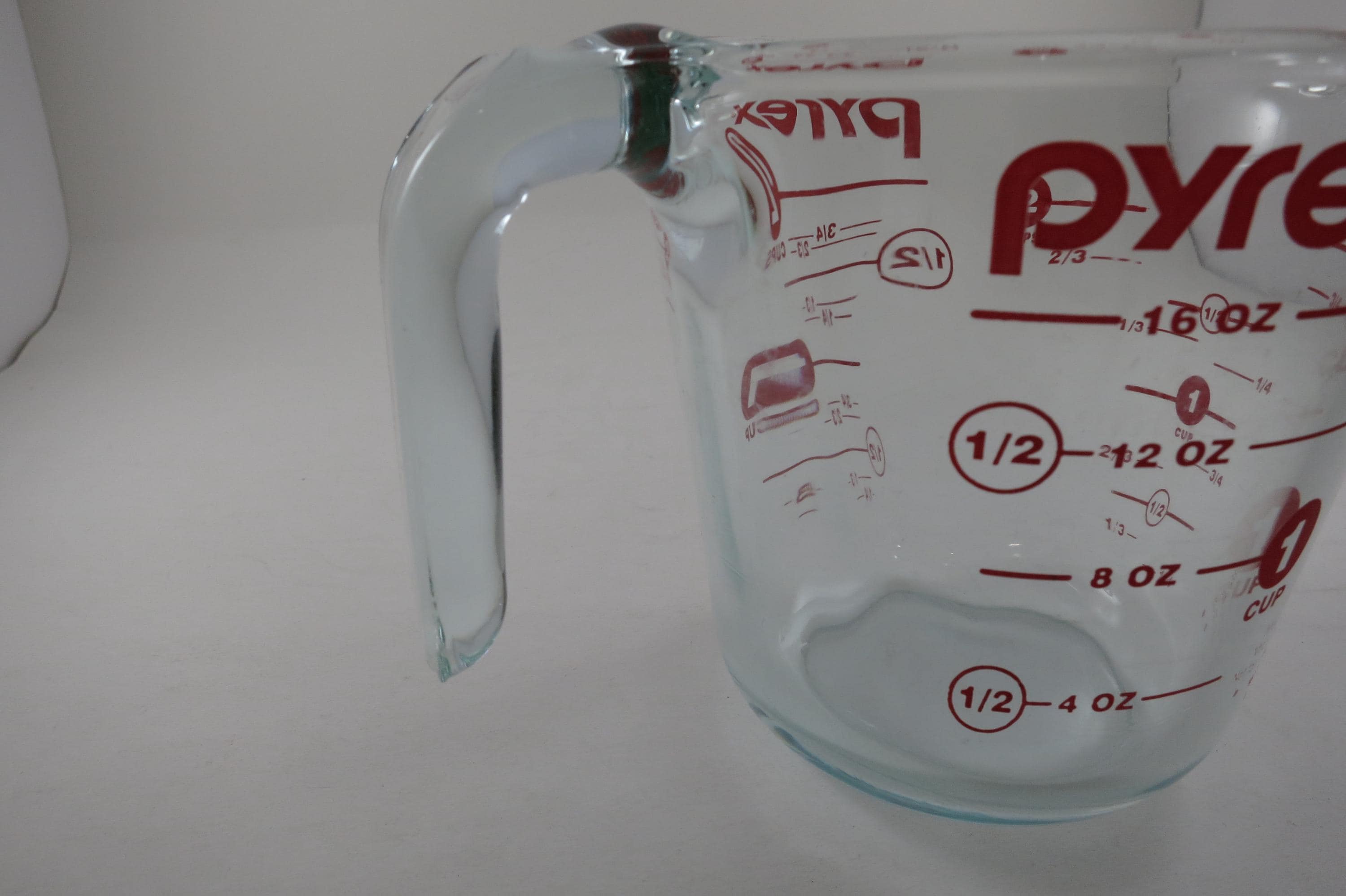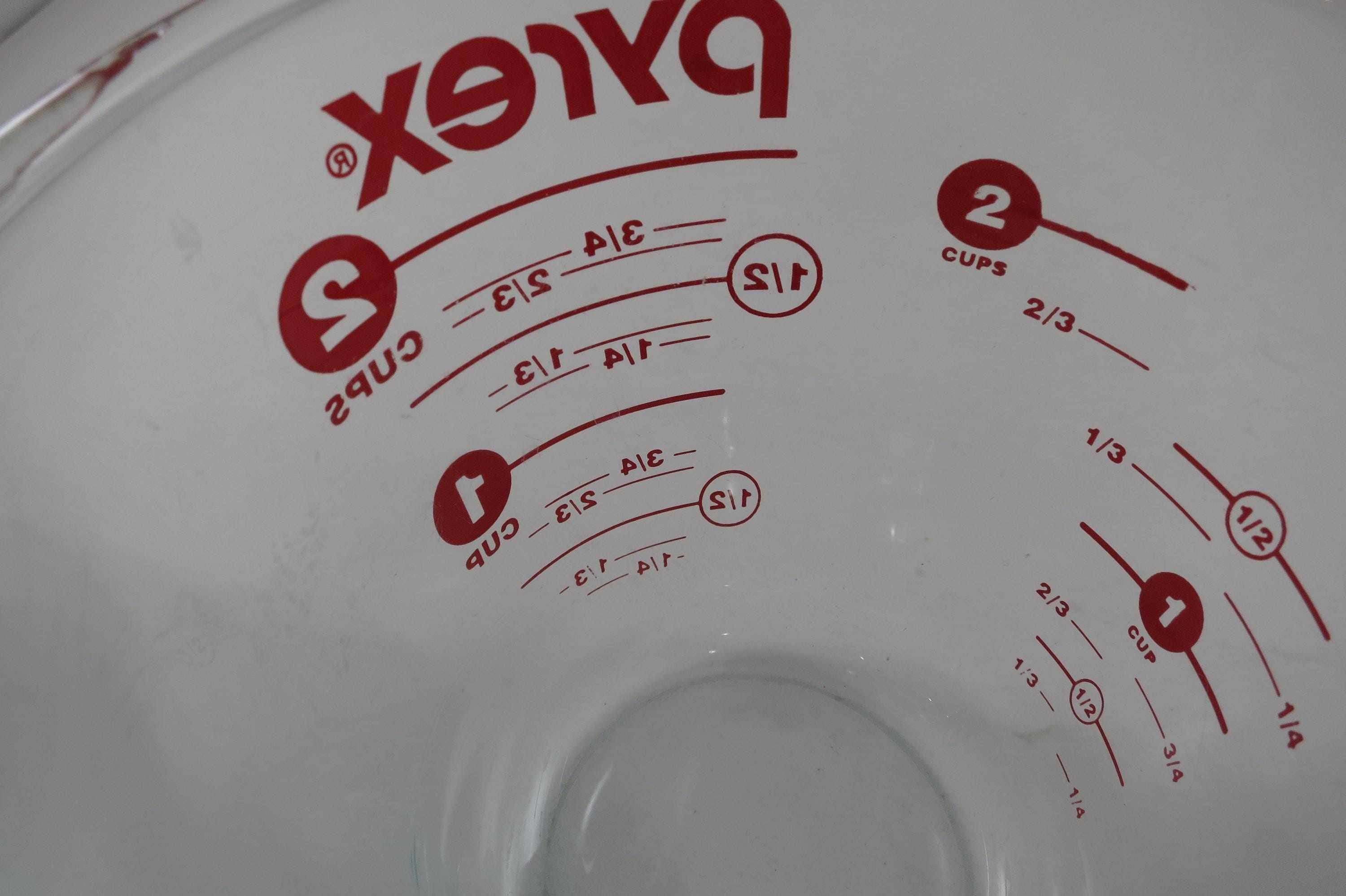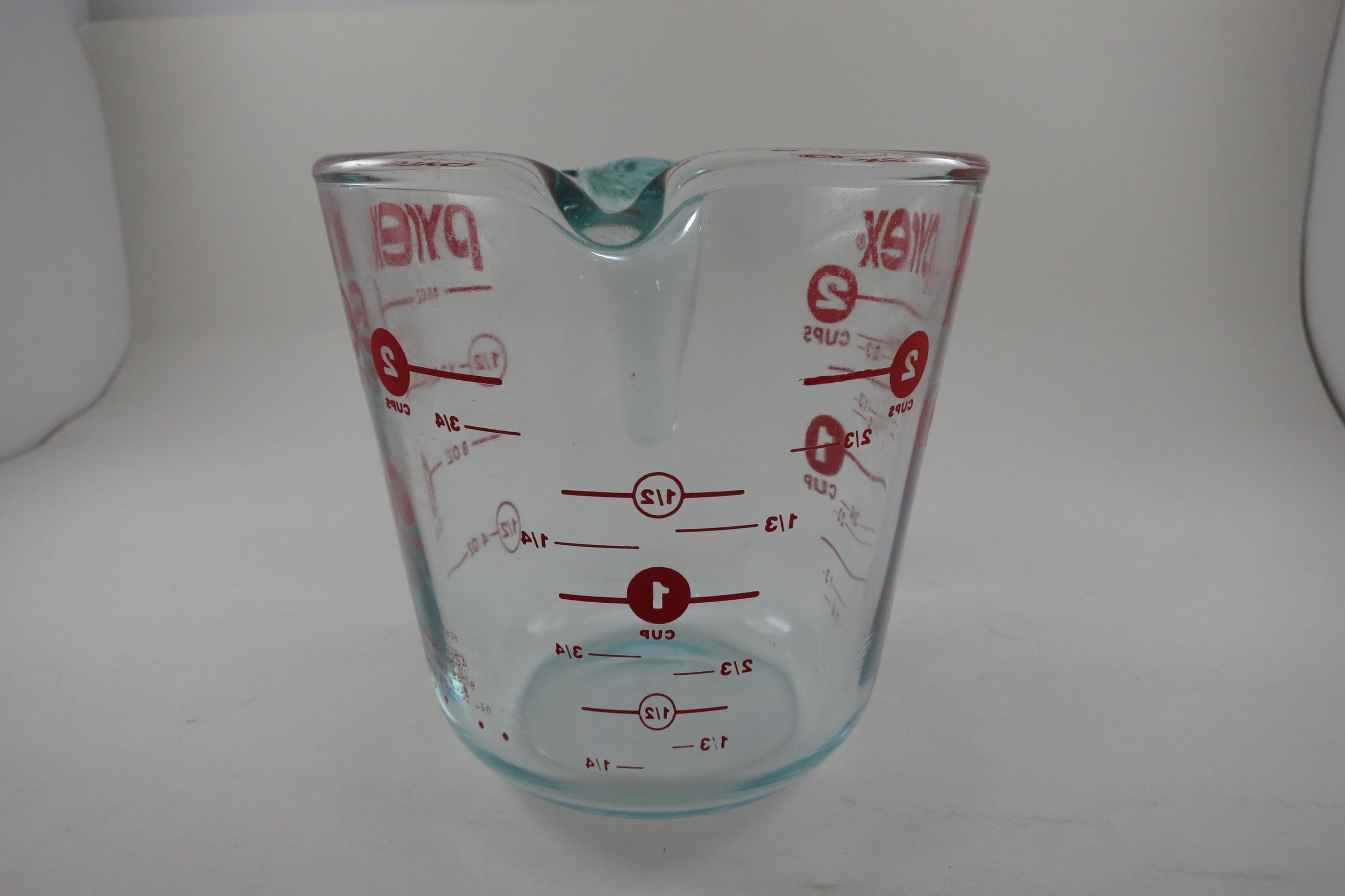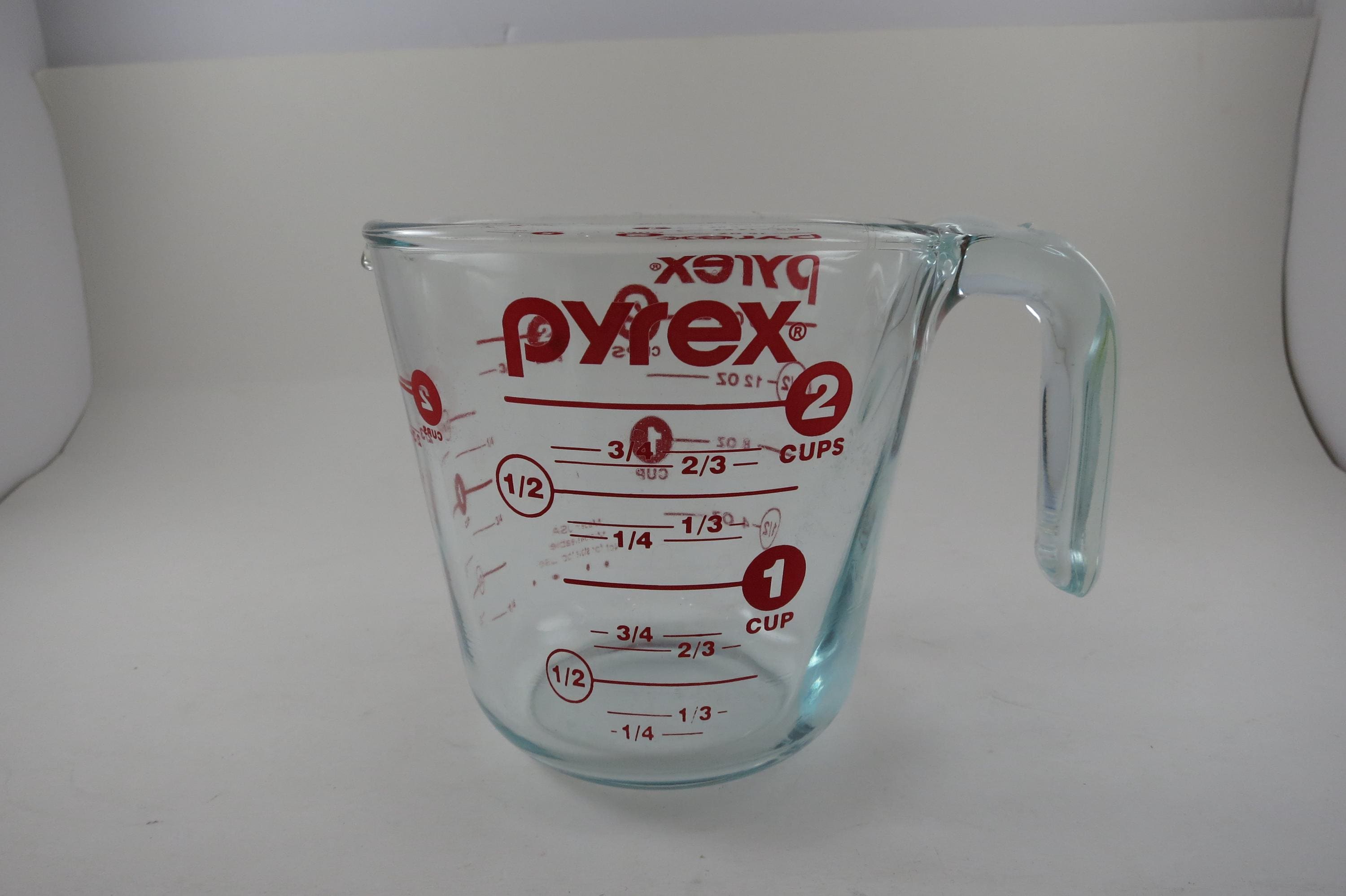 Vintage Red Letter Pyrex 2 Cup Measuring Cup with Handle Excellent Condition, no chips, cracks or damages. Light Use Wear.