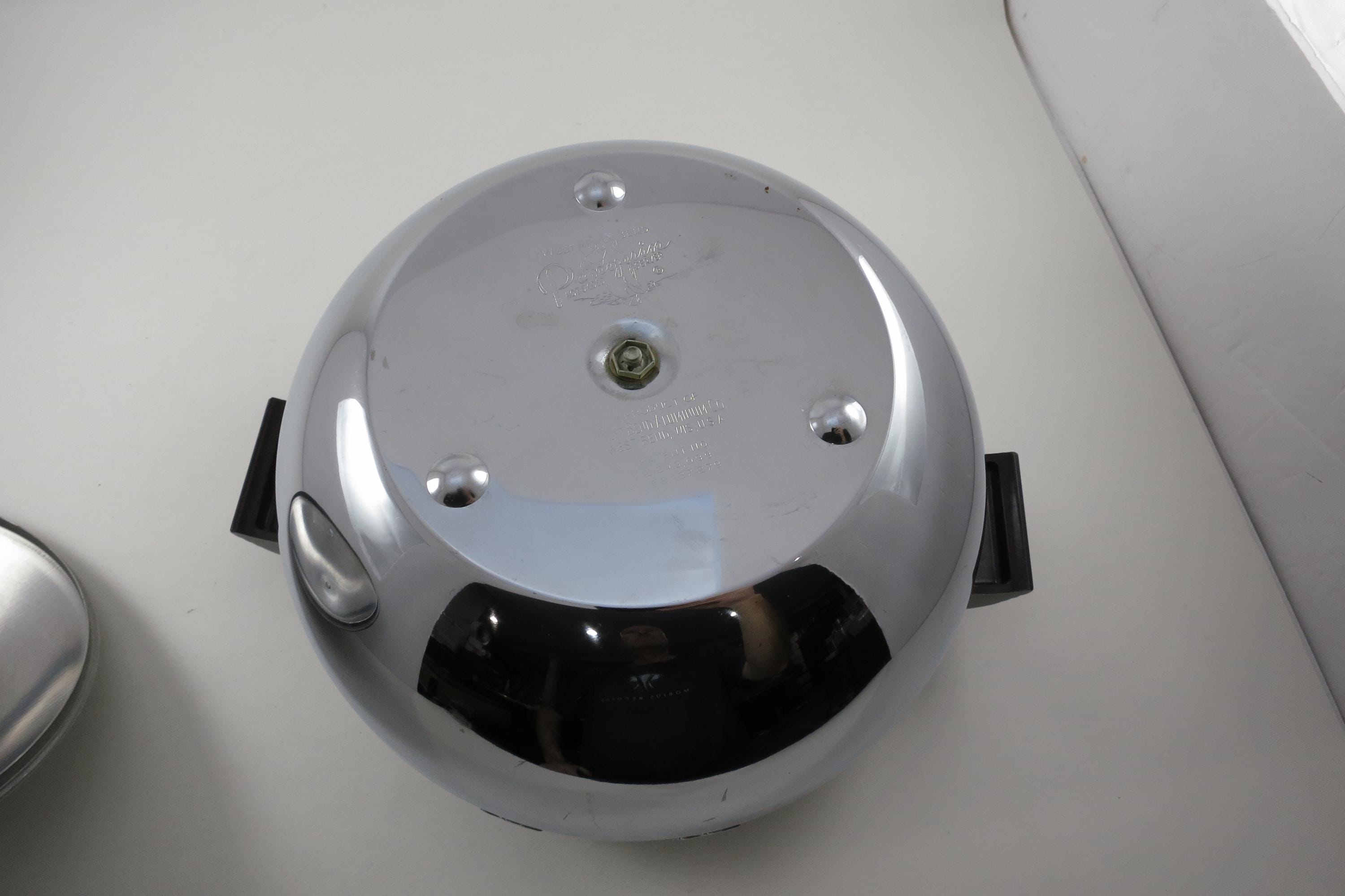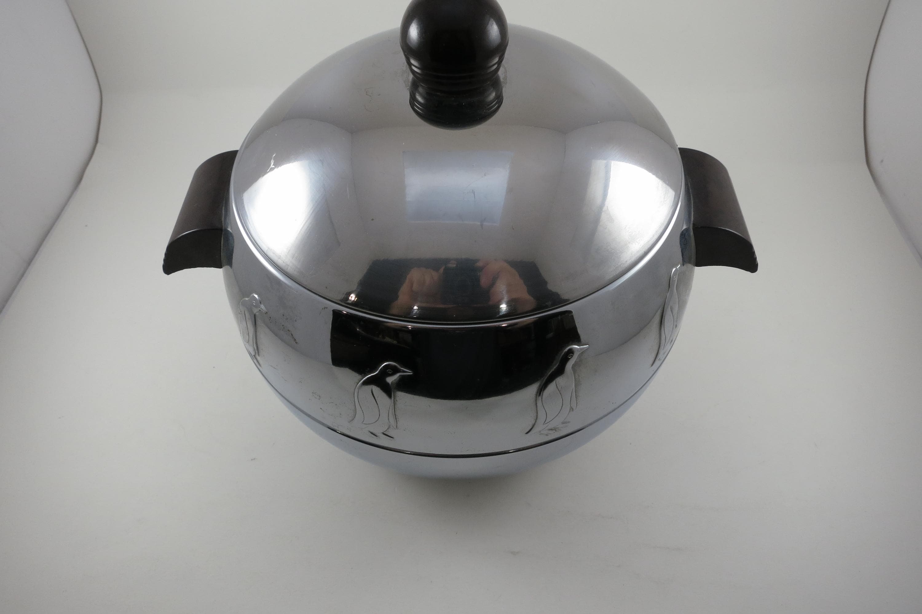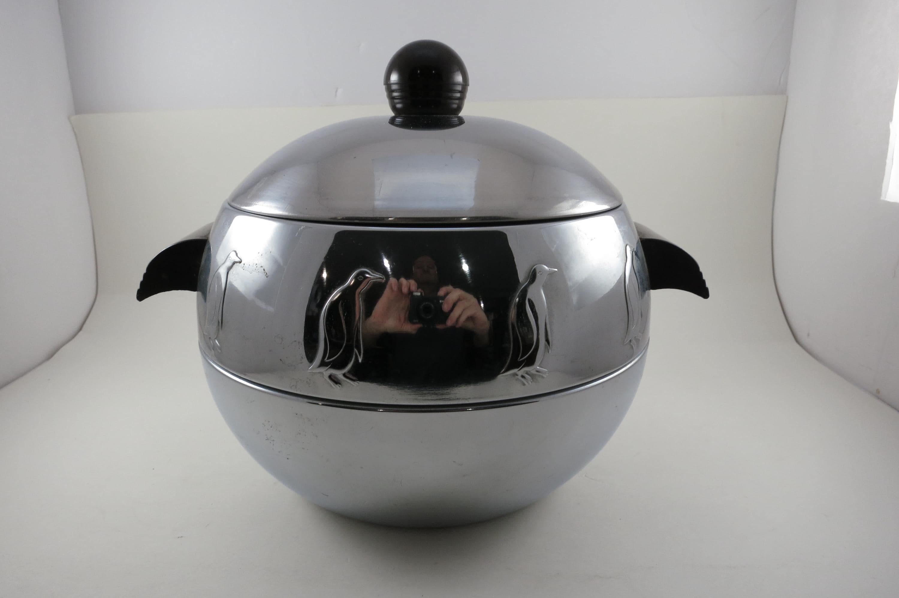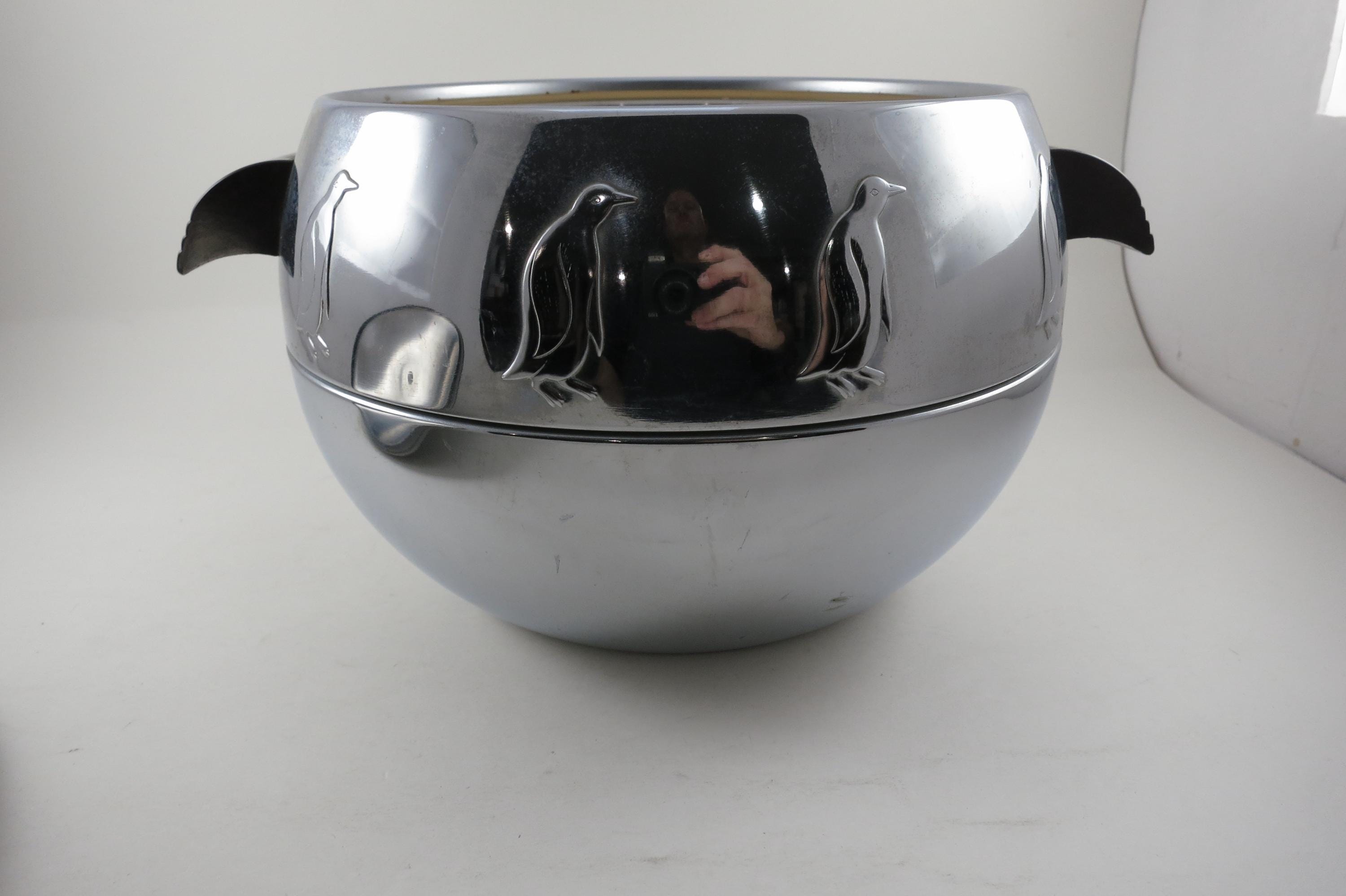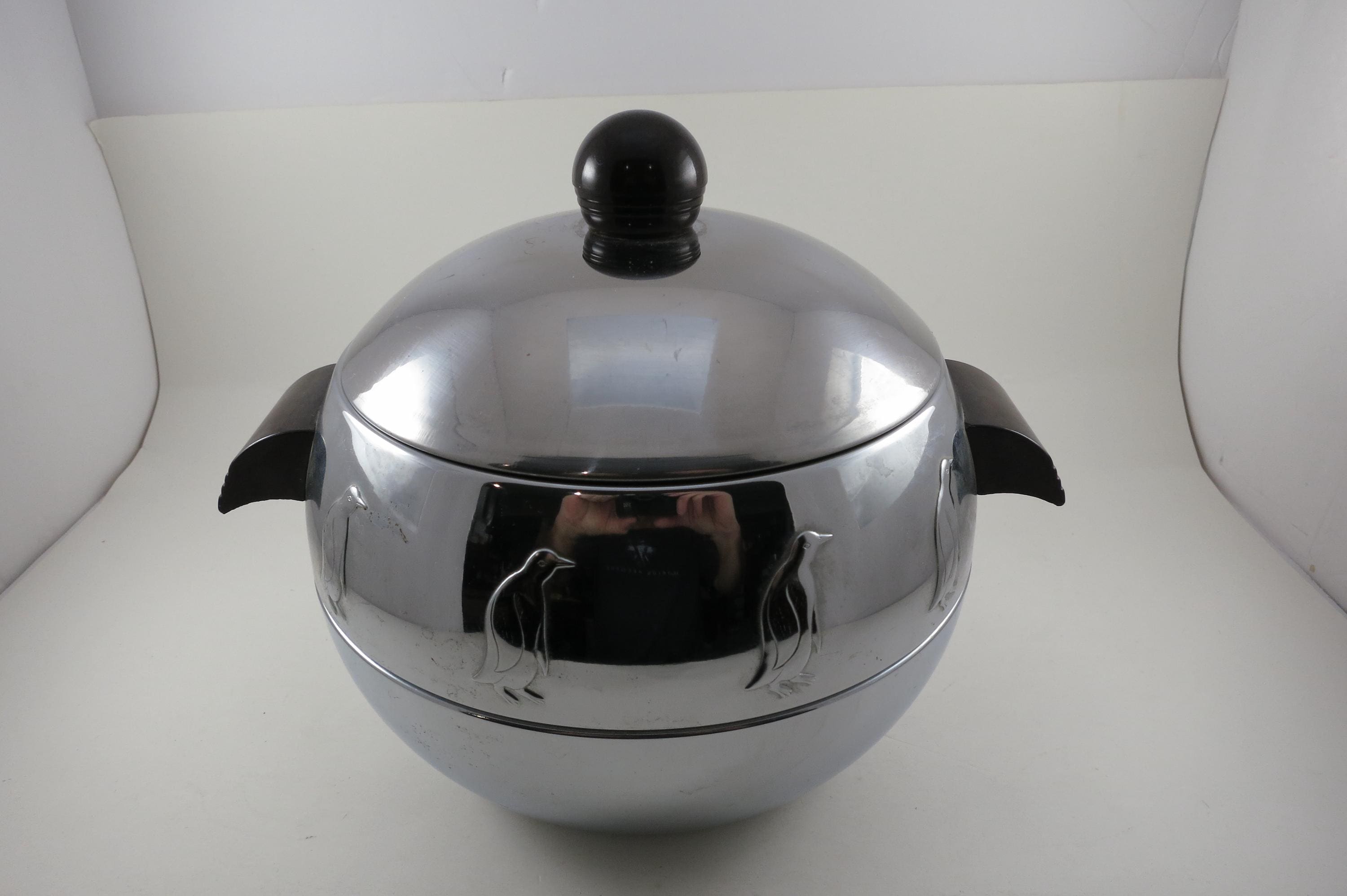Vintage West Bend Penguin Chrome Ice Bucket with Bakelite Handles.
