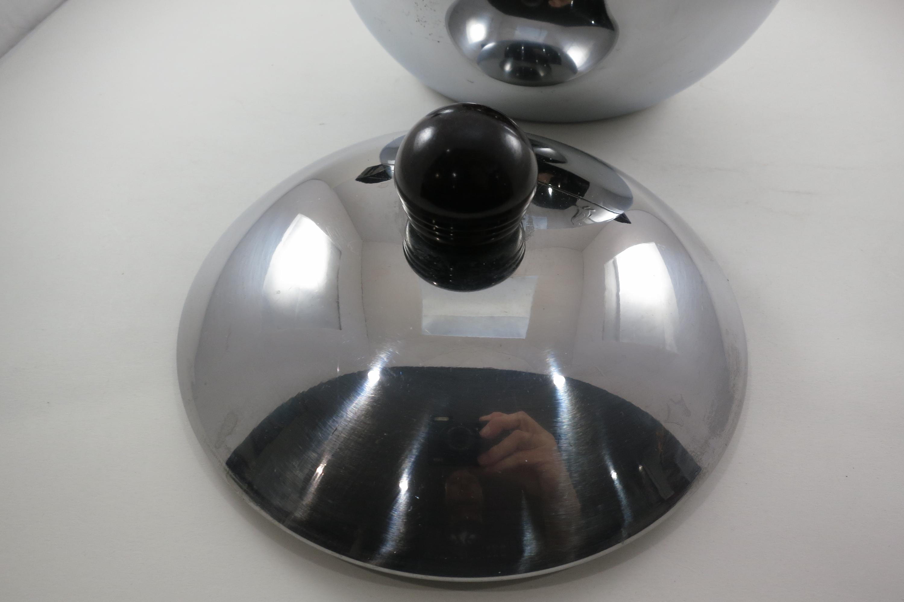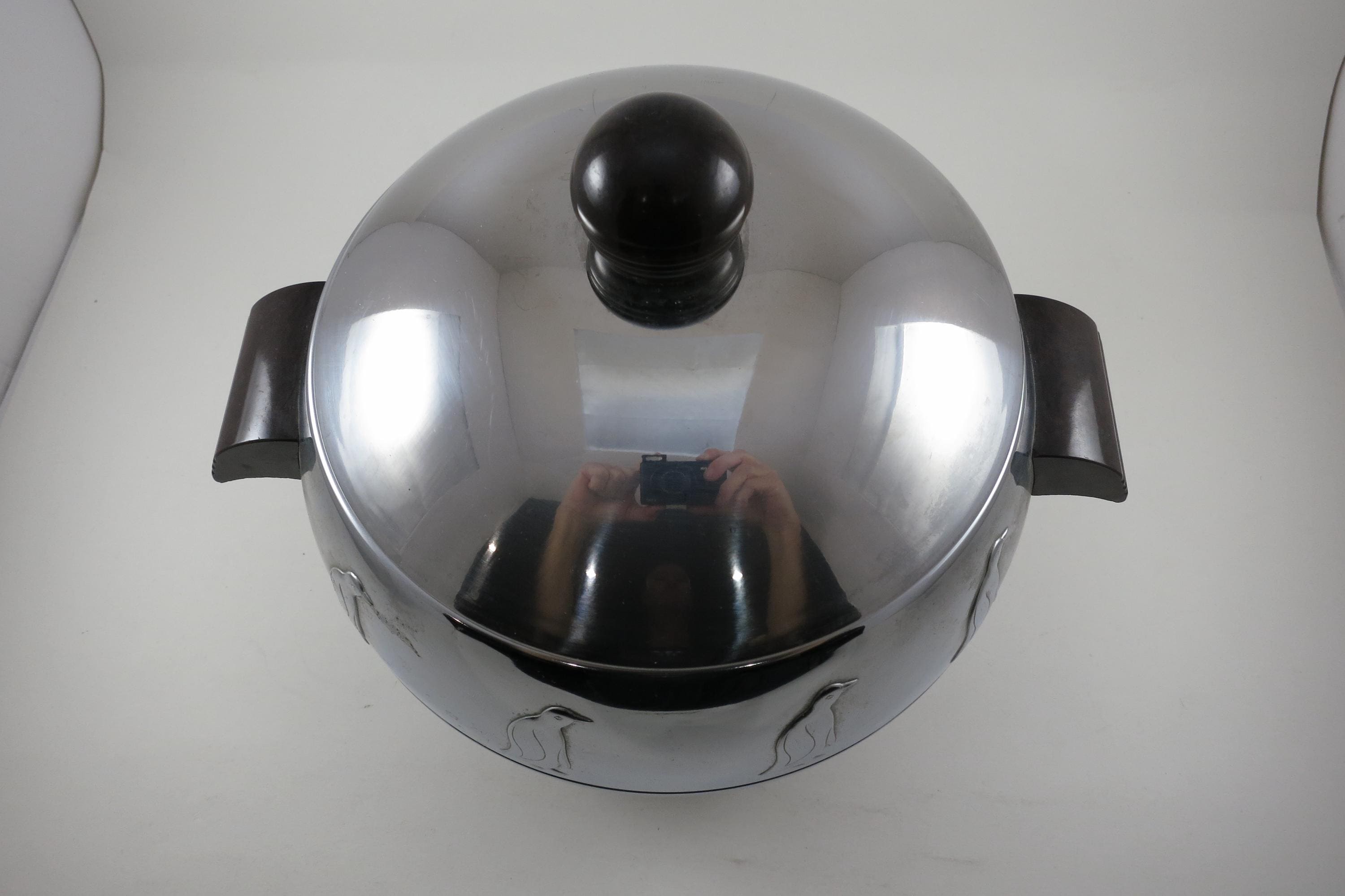 Neat MCM Art Deco Piece, Original Lid, Hot or Cold. Measures 8 1/2 inches tall and 9 1/2 inches wide. Excellent original condition.